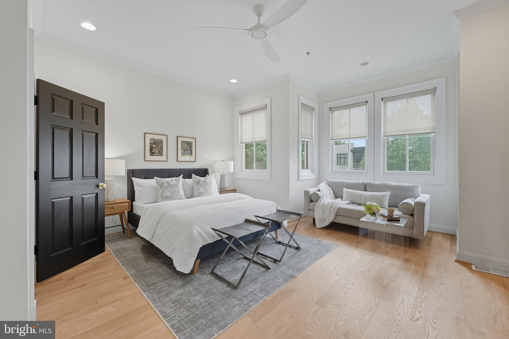 Offering luxury and convenience this meticulously reinvented 4 level rowhome is only 1 block to the heart of everything DC has to offer – award winning dining, shopping, theater, and so much more. This exceptional residence spans over 3,300 square feet across the four finished levels – the 3 level main house and a first floor 2-bedroom separate unit. Enter the main level of the house and notice the high ceilings and spectacular natural light. A grand open concept living and dining space, a chef’s kitchen with high-end appliances, custom finishes, and a bonus family room are just some of the features that will make you fall in love with this home. Meticulous attention to detail throughout, this stunning property offers an unparalleled blend of functionality and modern comfort in one of Washington’s most desirable neighborhoods. The second floor has two guest bedrooms sharing a full bath, plus an expansive primary suite. The primary features a luxurious newly updated bathroom with striking walk-in shower and soaking tub. Go up one level to your private home library with custom built-ins that leads to a fabulous roof deck with views of the city. Stunning skylights highlight the upper levels. The extraordinarily expansive first floor provides an amazing opportunity for income potential. With a living room, dining area, kitchen, 2 bedrooms and 1.5 bathrooms, this is a great space for extended family or paying tenants. The property also has a two car secure parking pad. This beautiful home offers the perfect combination of the city’s most coveted location, timeless architecture, and modern amenities.