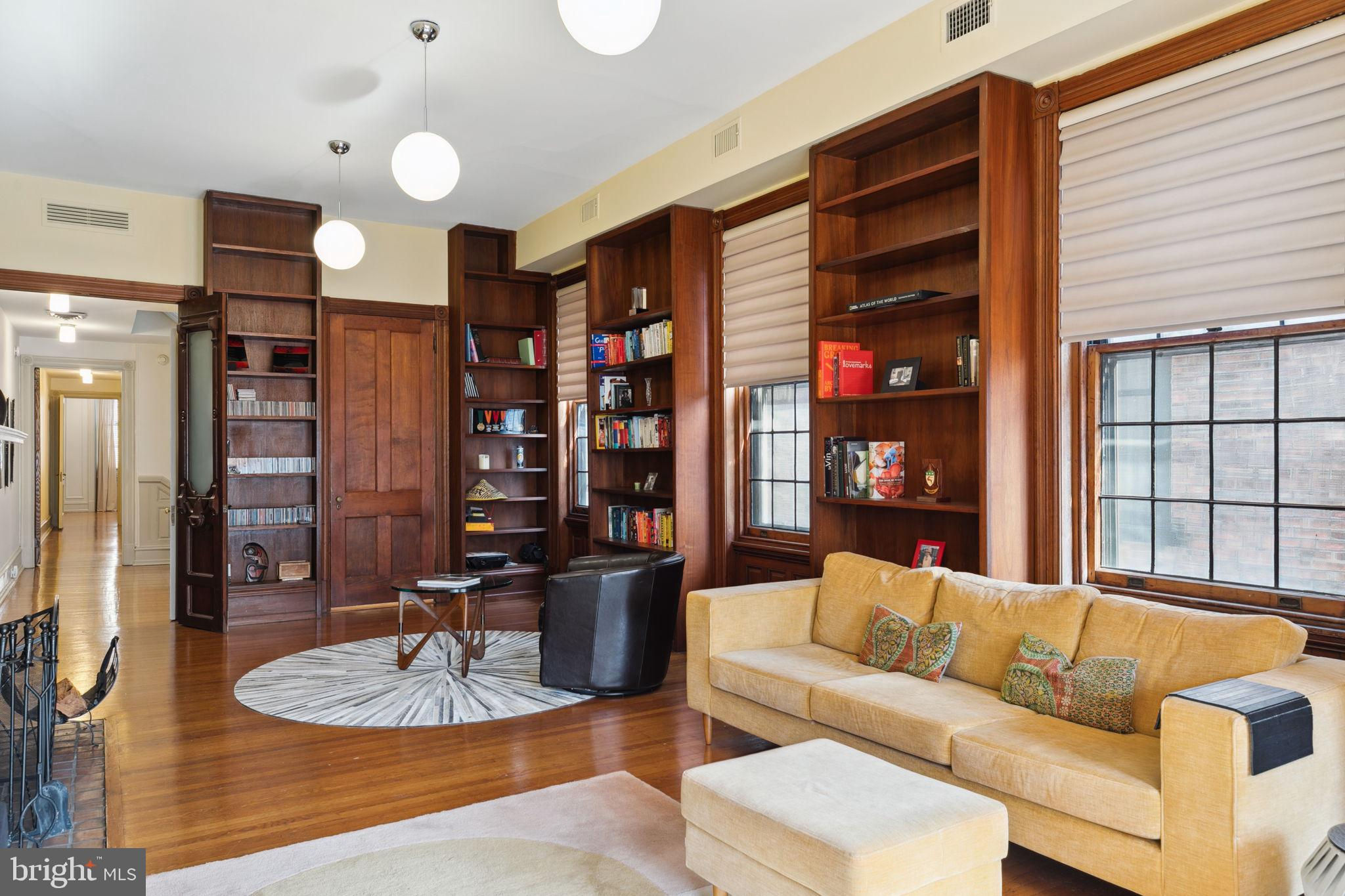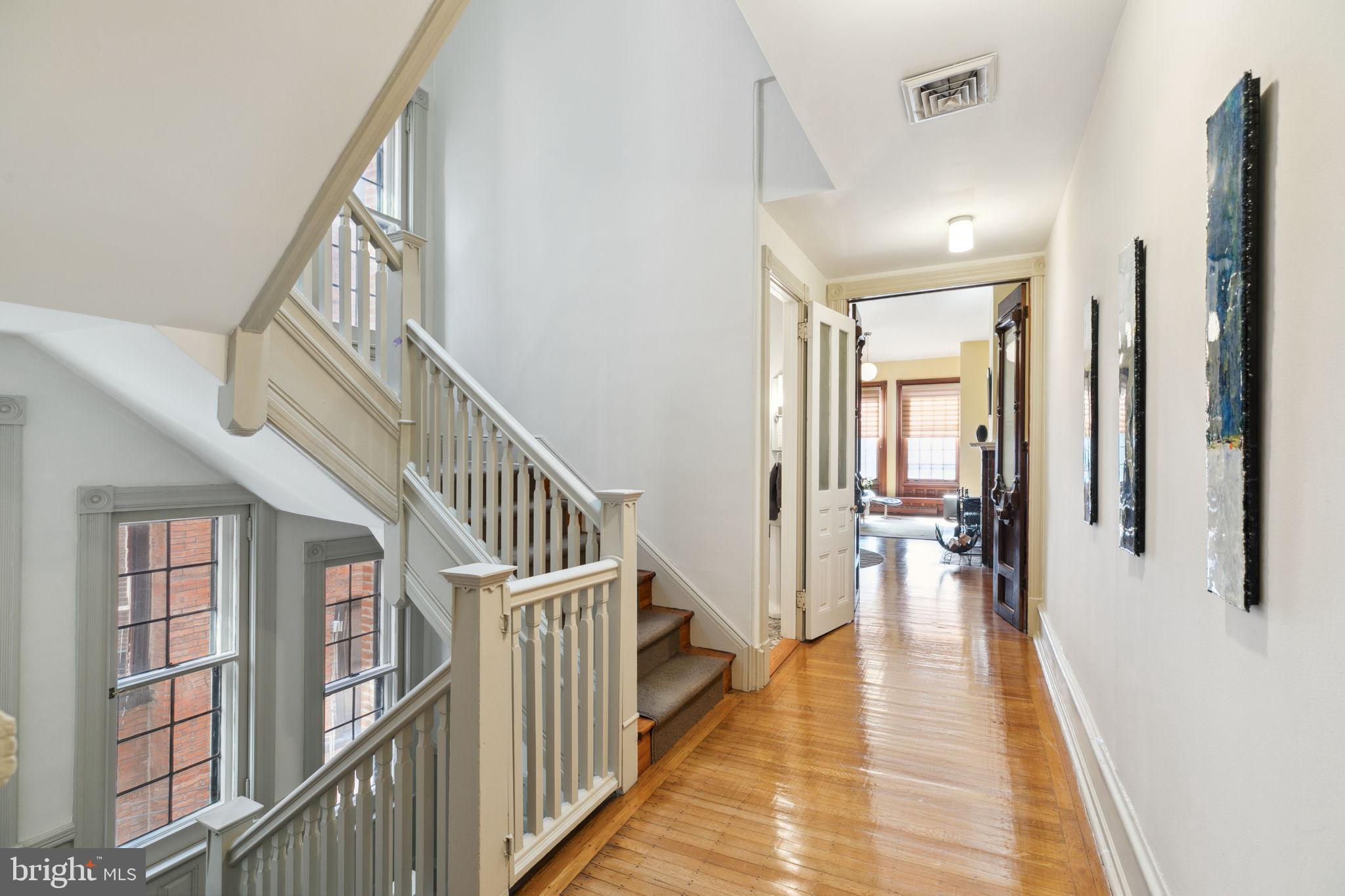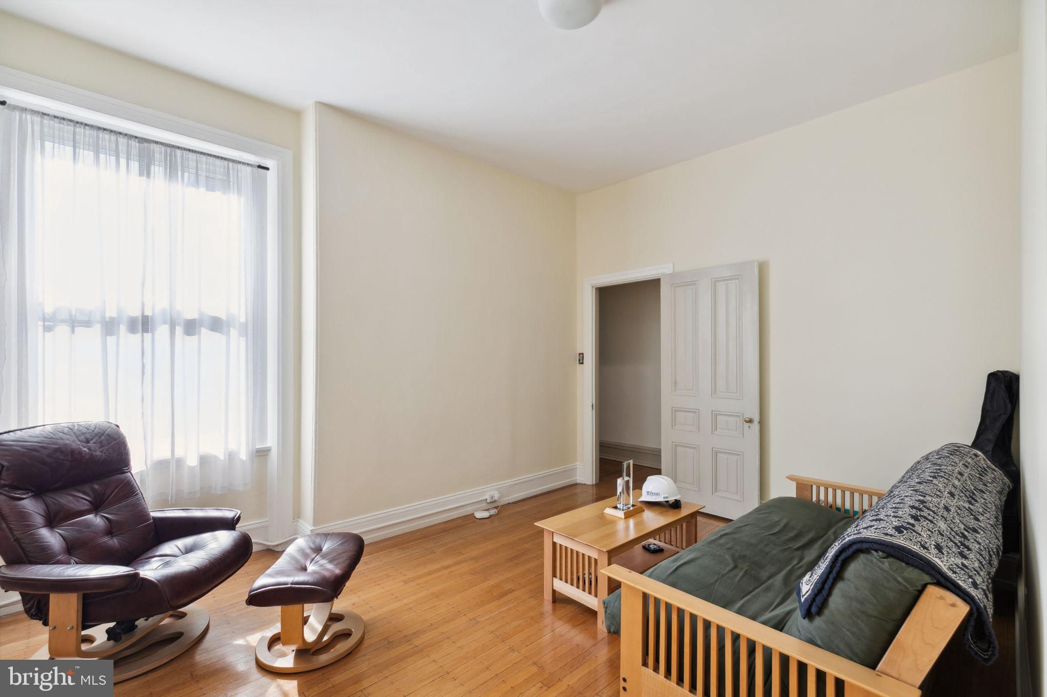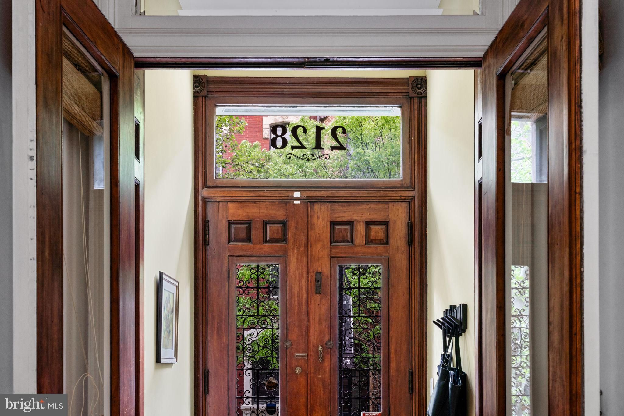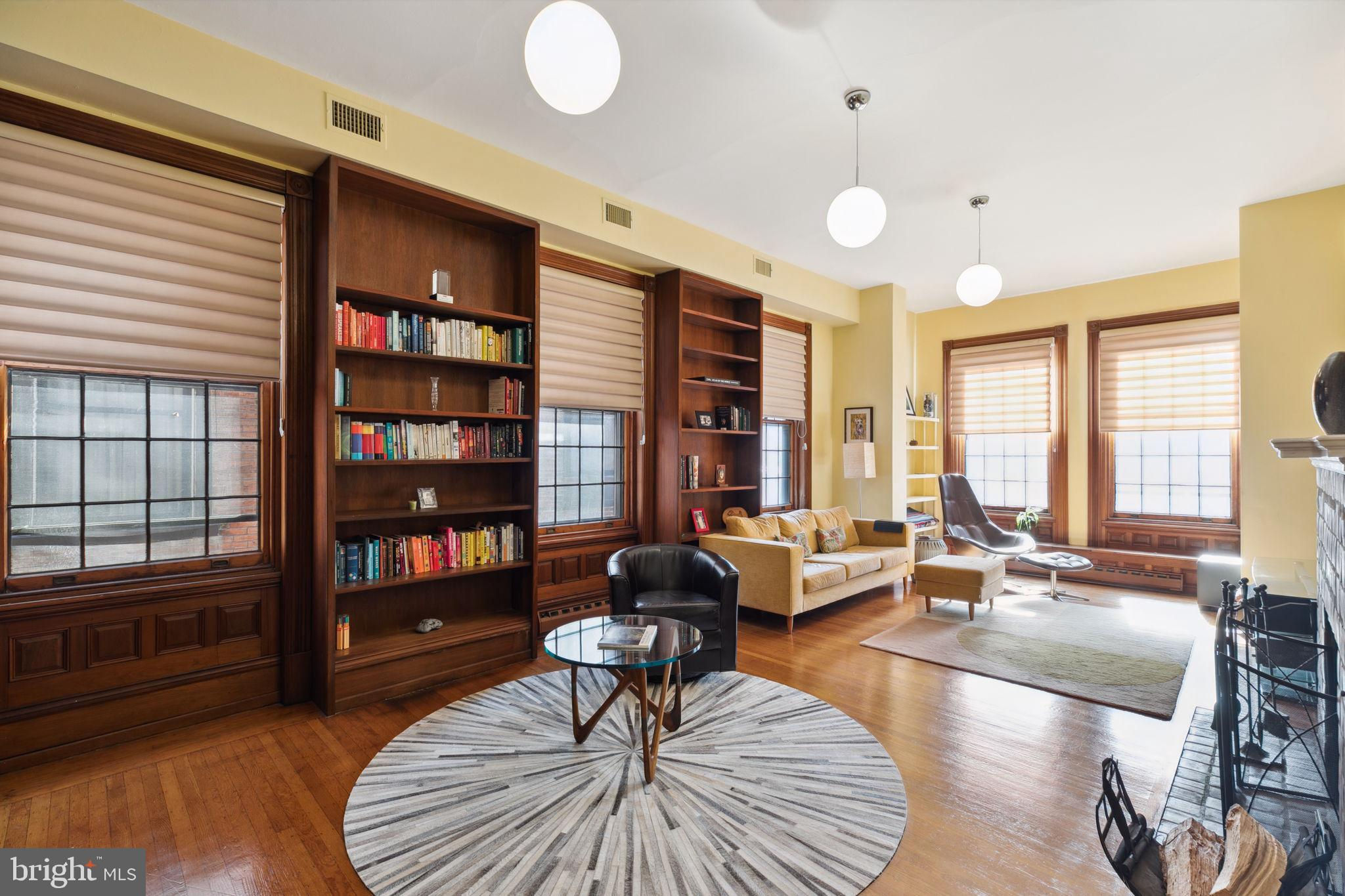 Seller is including one year of prepaid parking with an acceptable offer. Welcome to 2128 Spruce Street in Fitler Square! This stately 5-bedroom townhouse sits 20 ft wide on a 105 ft lot with high ceilings, hardwood flooring, and original details throughout. Enter through the vestibule into a spacious and light-filled living room with 12 ft ceilings and a sleek contemporary fireplace. Just off of the living area is a tucked-away powder room & 2 large coat closets. The eat-in kitchen is also on the main level and features a large chef's island with butcher block countertops, maple cabinets with stainless steel counters, and stainless appliances. The dining area is open to the kitchen with a wood-burning stove and overlooks the spacious back terrace with a south-facing garden. A charming center staircase takes you up to the next level of this home which is equally as grand with a handsome library in the rear that features a fireplace and beautiful built-in bookshelves, a full modern bathroom with a shower and pedestal sink that has access from the hall as well as the library. The front of the 2nd level is the primary suite with an elegant bedroom with 3 large windows overlooking Spruce Street, a fireplace, built-ins and features an en-suite dressing room with a walk-in closet, and contemporary bathroom with a seamless glass shower, soaking tub, mosaic tile flooring and an oversized single vanity sink. Two additional guest rooms with a hall bathroom plus a home office and a large laundry room are all on the 3rd level with an additional 2 bedrooms and a hall-accessed vintage bathroom on the 4th level. The lower level of this home is on the garden level with a full studio that has direct access to the back terrace. This space is perfect for a home gym, guest suite, artist studio, rec room, or play space. The other part of the lower level is ample storage and mechanicals. Located in the Greenfield School catchment, this property is situated between Fitler Square Park and Rittenhouse Square with easy access to the Schuylkill River park and trails, 30th Street Station, Penn, CHOP, and Drexel, and nearby neighborhood favorite restaurants and retail.