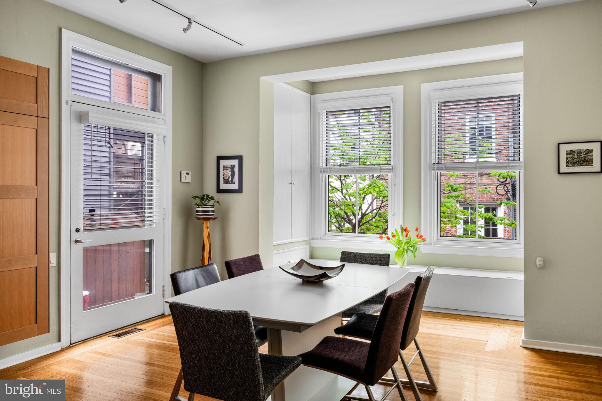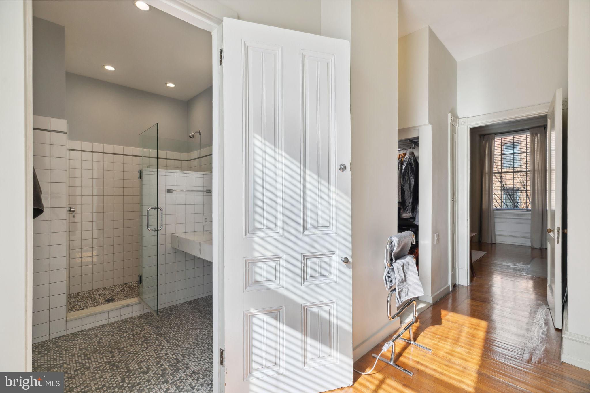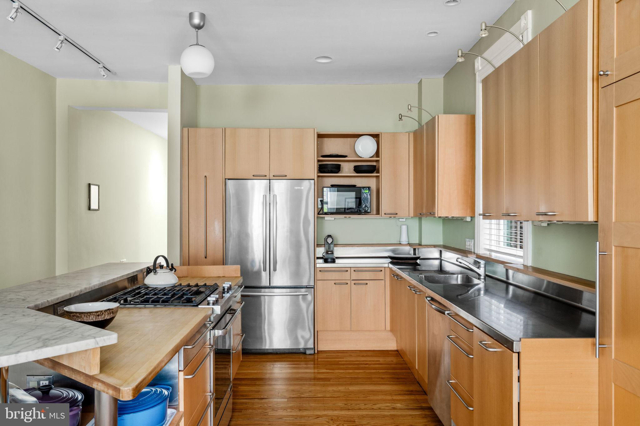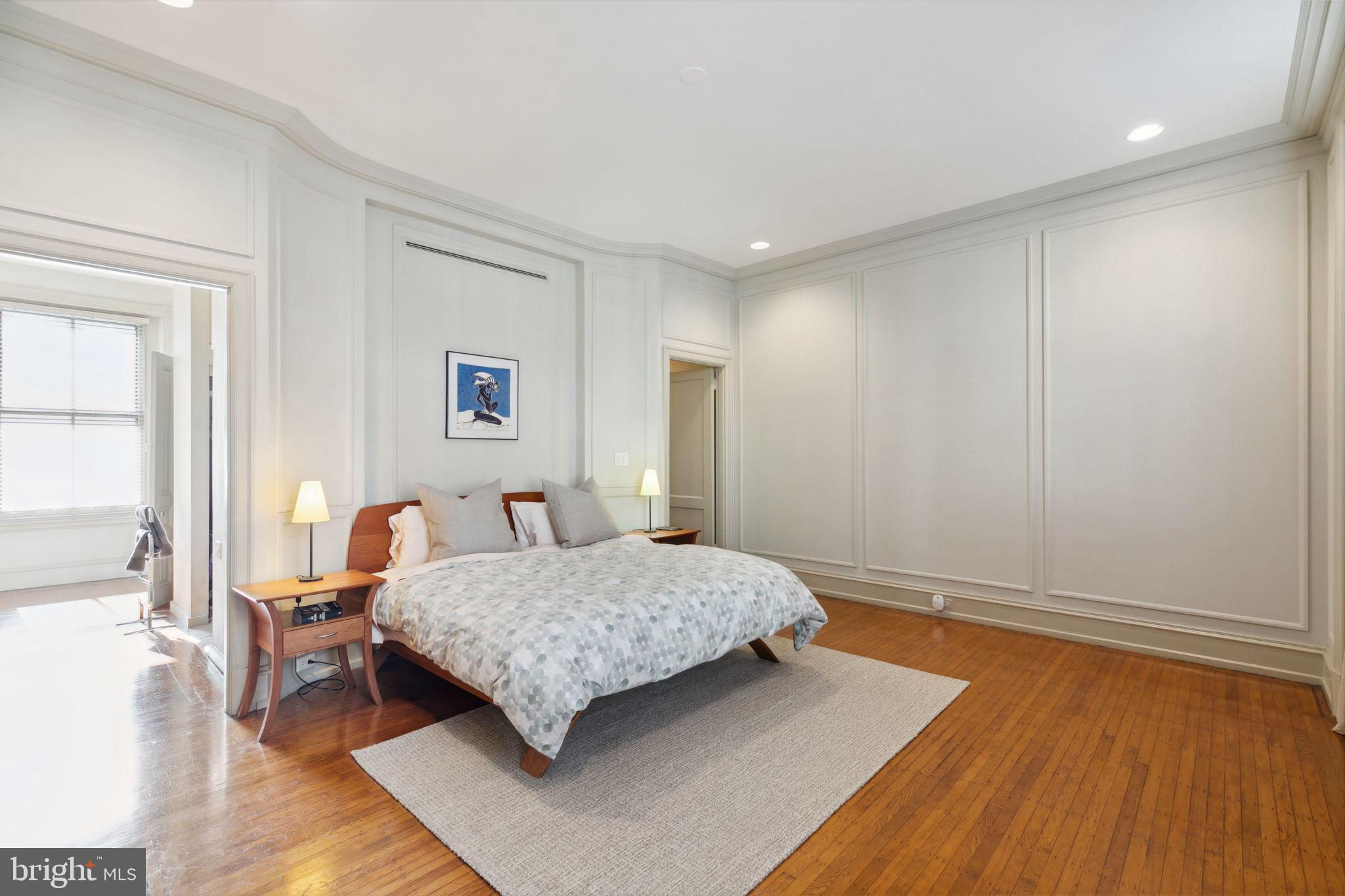 Seller is including one year of prepaid parking with an acceptable offer. Welcome to 2128 Spruce Street in Fitler Square! This stately 5-bedroom townhouse sits 20 ft wide on a 105 ft lot with high ceilings, hardwood flooring, and original details throughout. Enter through the vestibule into a spacious and light-filled living room with 12 ft ceilings and a sleek contemporary fireplace. Just off of the living area is a tucked-away powder room & 2 large coat closets. The eat-in kitchen is also on the main level and features a large chef's island with butcher block countertops, maple cabinets with stainless steel counters, and stainless appliances. The dining area is open to the kitchen with a wood-burning stove and overlooks the spacious back terrace with a south-facing garden. A charming center staircase takes you up to the next level of this home which is equally as grand with a handsome library in the rear that features a fireplace and beautiful built-in bookshelves, a full modern bathroom with a shower and pedestal sink that has access from the hall as well as the library. The front of the 2nd level is the primary suite with an elegant bedroom with 3 large windows overlooking Spruce Street, a fireplace, built-ins and features an en-suite dressing room with a walk-in closet, and contemporary bathroom with a seamless glass shower, soaking tub, mosaic tile flooring and an oversized single vanity sink. Two additional guest rooms with a hall bathroom plus a home office and a large laundry room are all on the 3rd level with an additional 2 bedrooms and a hall-accessed vintage bathroom on the 4th level. The lower level of this home is on the garden level with a full studio that has direct access to the back terrace. This space is perfect for a home gym, guest suite, artist studio, rec room, or play space. The other part of the lower level is ample storage and mechanicals. Located in the Greenfield School catchment, this property is situated between Fitler Square Park and Rittenhouse Square with easy access to the Schuylkill River park and trails, 30th Street Station, Penn, CHOP, and Drexel, and nearby neighborhood favorite restaurants and retail.