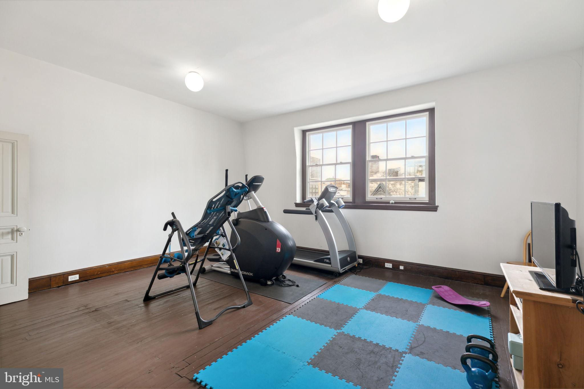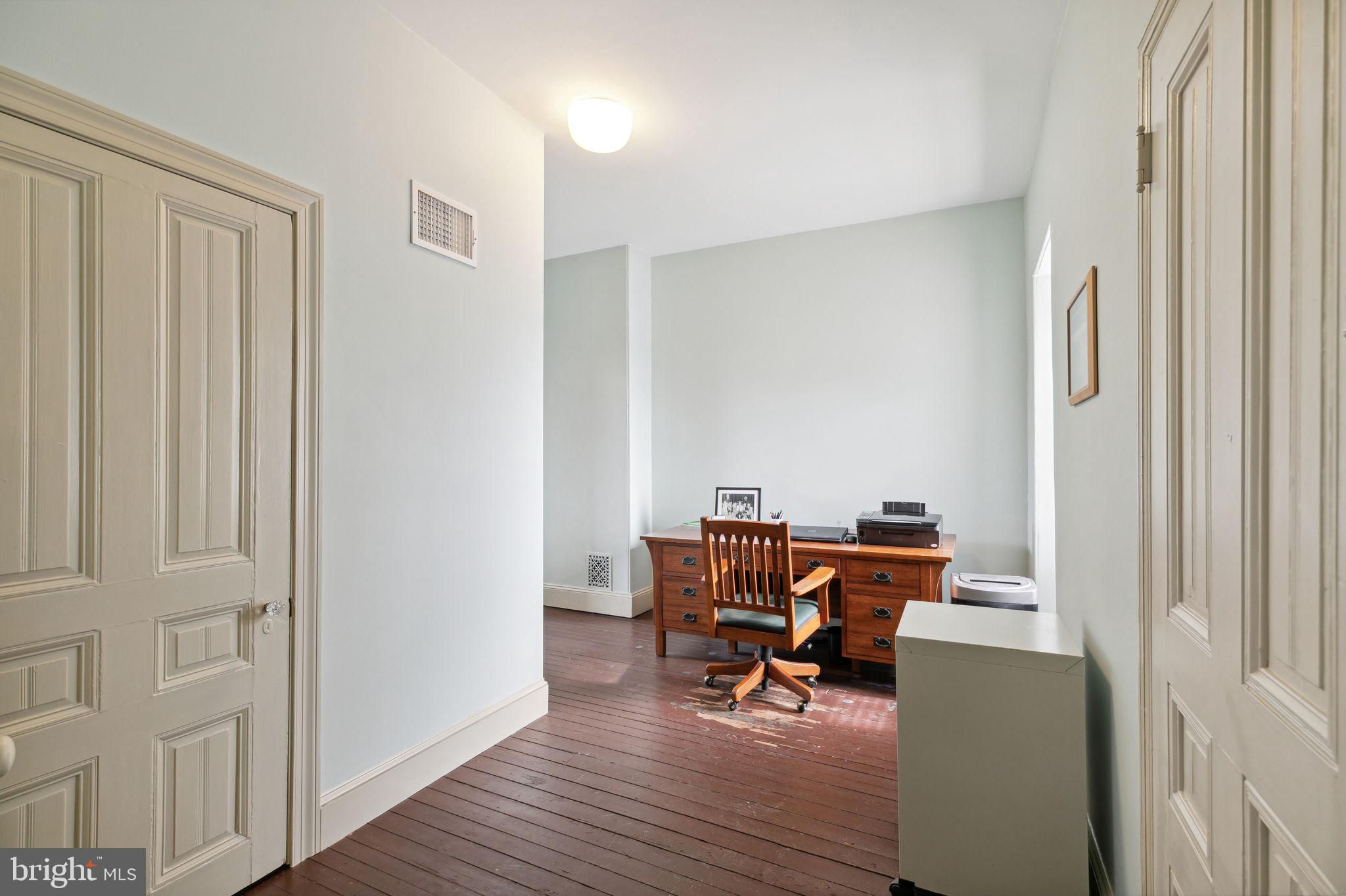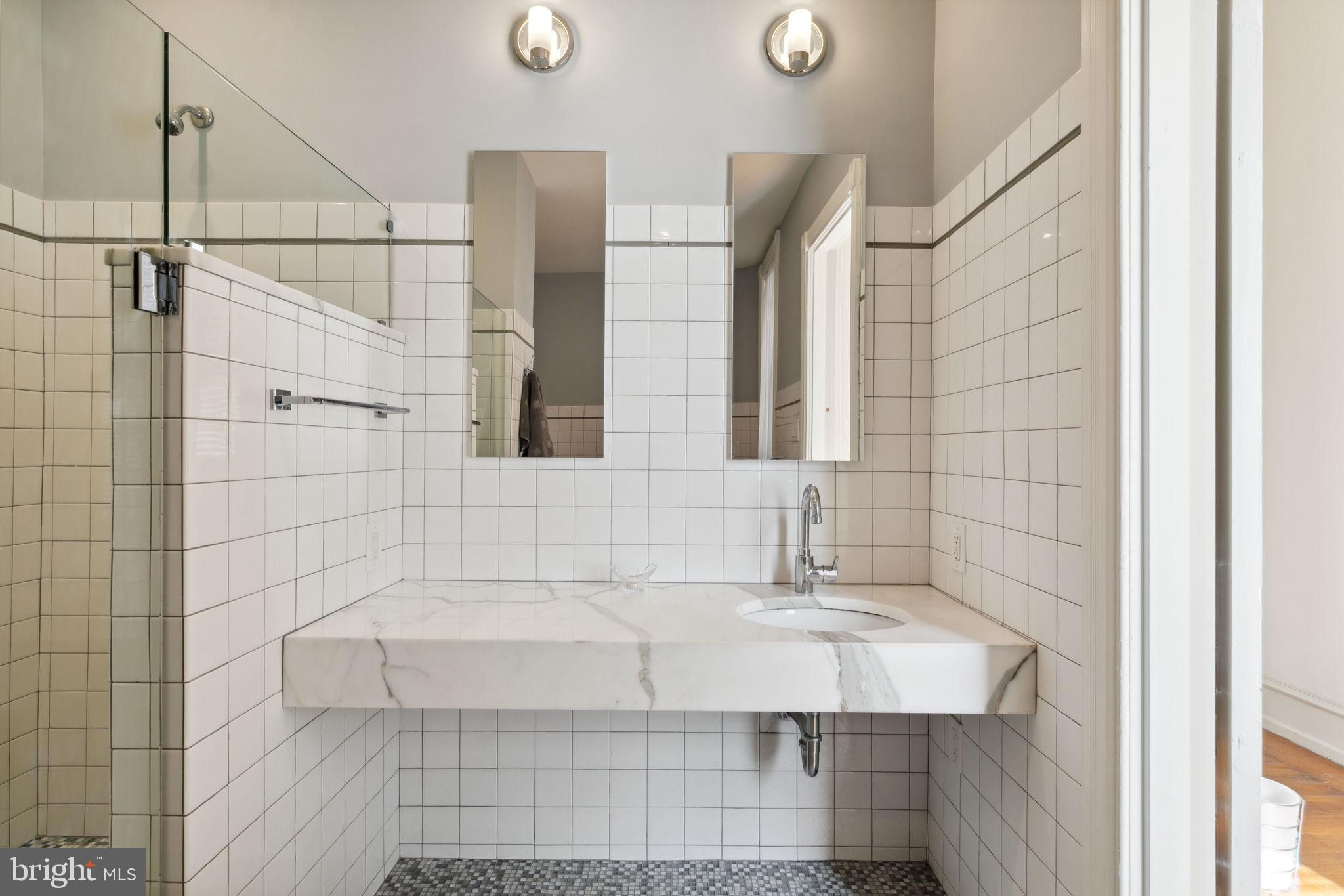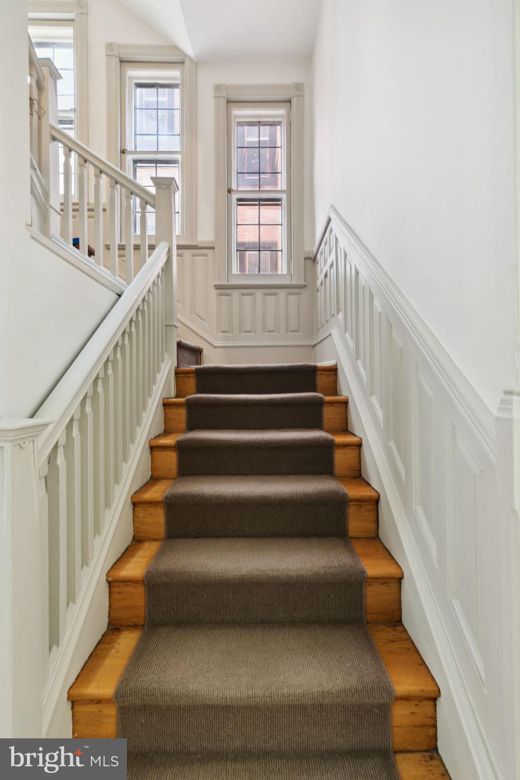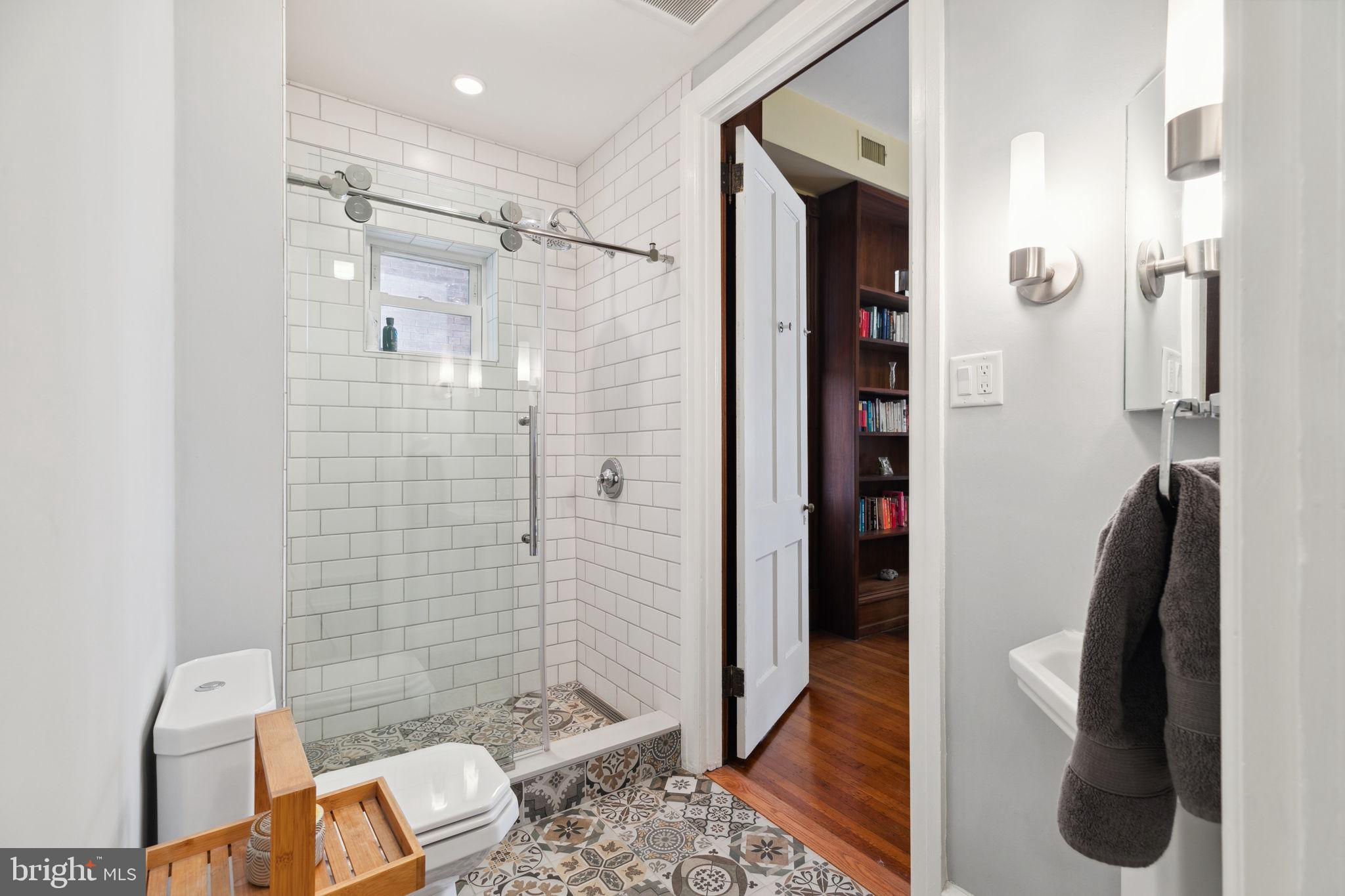 Seller is including one year of prepaid parking with an acceptable offer. Welcome to 2128 Spruce Street in Fitler Square! This stately 5-bedroom townhouse sits 20 ft wide on a 105 ft lot with high ceilings, hardwood flooring, and original details throughout. Enter through the vestibule into a spacious and light-filled living room with 12 ft ceilings and a sleek contemporary fireplace. Just off of the living area is a tucked-away powder room & 2 large coat closets. The eat-in kitchen is also on the main level and features a large chef's island with butcher block countertops, maple cabinets with stainless steel counters, and stainless appliances. The dining area is open to the kitchen with a wood-burning stove and overlooks the spacious back terrace with a south-facing garden. A charming center staircase takes you up to the next level of this home which is equally as grand with a handsome library in the rear that features a fireplace and beautiful built-in bookshelves, a full modern bathroom with a shower and pedestal sink that has access from the hall as well as the library. The front of the 2nd level is the primary suite with an elegant bedroom with 3 large windows overlooking Spruce Street, a fireplace, built-ins and features an en-suite dressing room with a walk-in closet, and contemporary bathroom with a seamless glass shower, soaking tub, mosaic tile flooring and an oversized single vanity sink. Two additional guest rooms with a hall bathroom plus a home office and a large laundry room are all on the 3rd level with an additional 2 bedrooms and a hall-accessed vintage bathroom on the 4th level. The lower level of this home is on the garden level with a full studio that has direct access to the back terrace. This space is perfect for a home gym, guest suite, artist studio, rec room, or play space. The other part of the lower level is ample storage and mechanicals. Located in the Greenfield School catchment, this property is situated between Fitler Square Park and Rittenhouse Square with easy access to the Schuylkill River park and trails, 30th Street Station, Penn, CHOP, and Drexel, and nearby neighborhood favorite restaurants and retail.