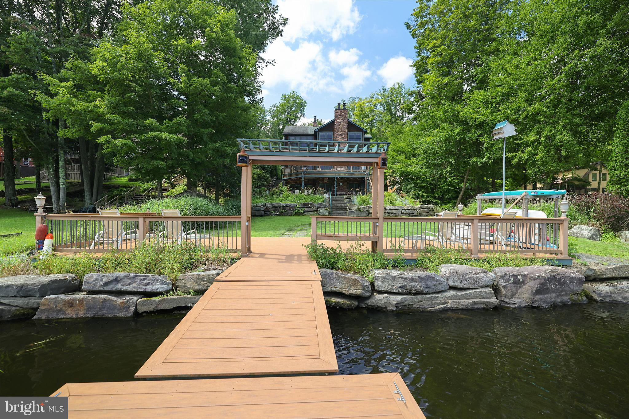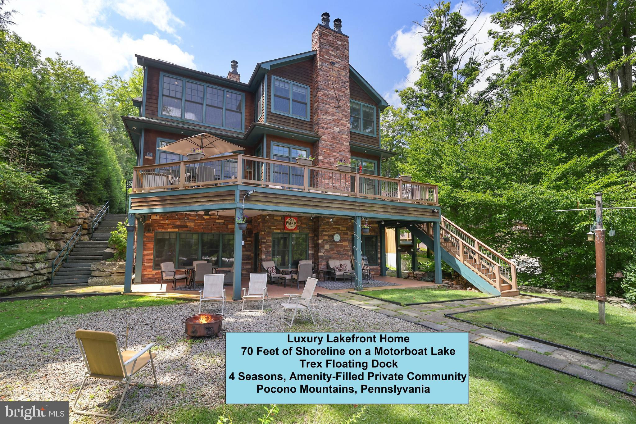 Nestled in the Pocono Mountains in Pennsylvania is a Luxury Lakefront Home that exudes modern sophistication and architectural finesse. It has 70 feet of shoreline with a floating dock on a motorboat lake with a flat backyard! There are too many hidden features to list that make this property extraordinary, but to name a few, there is a heated driveway, 3- car garage, 3 fireplaces, heated floors, a gourmet kitchen with all Viking appliances, an elevator on 3 floors, whole house back-up generator, top-notch security features in a Private Four-Seasons, amenity-filled, private community that includes a golf course, skiing, tubing & ice skating, beaches & pools! The high-quality Funiture and home decor can be included with a full asking price.