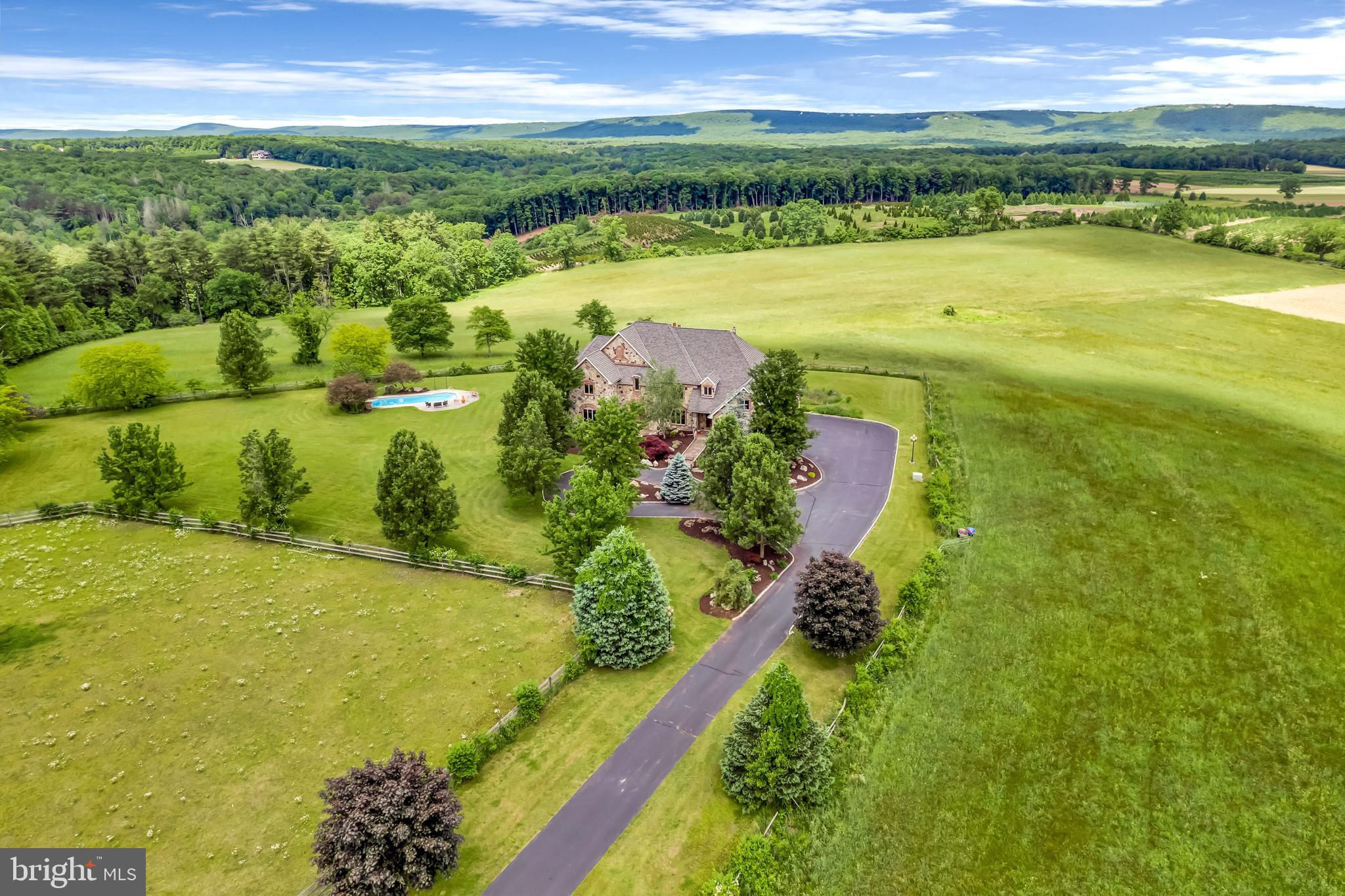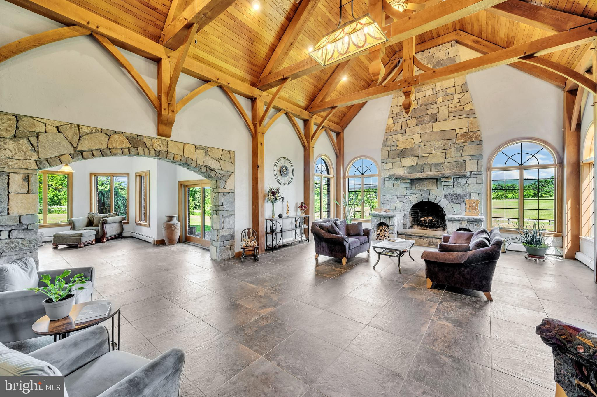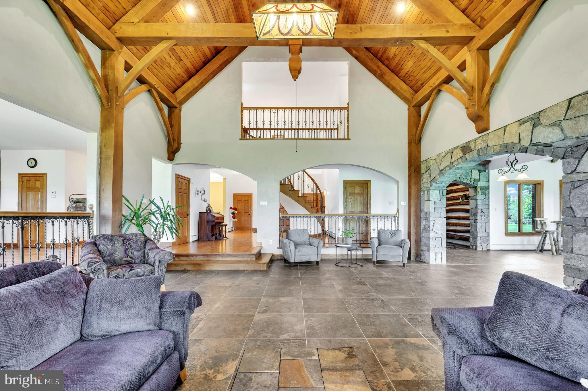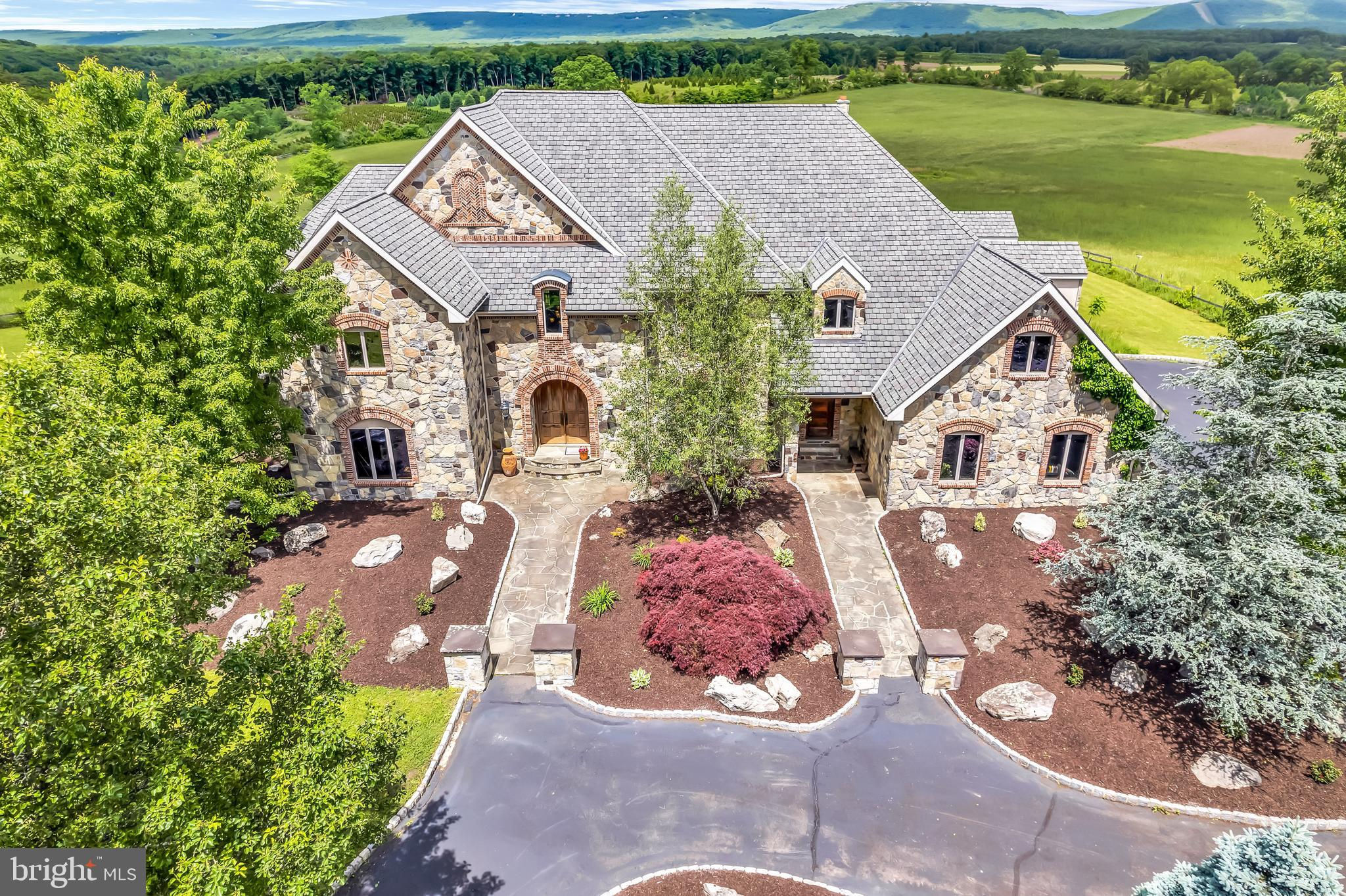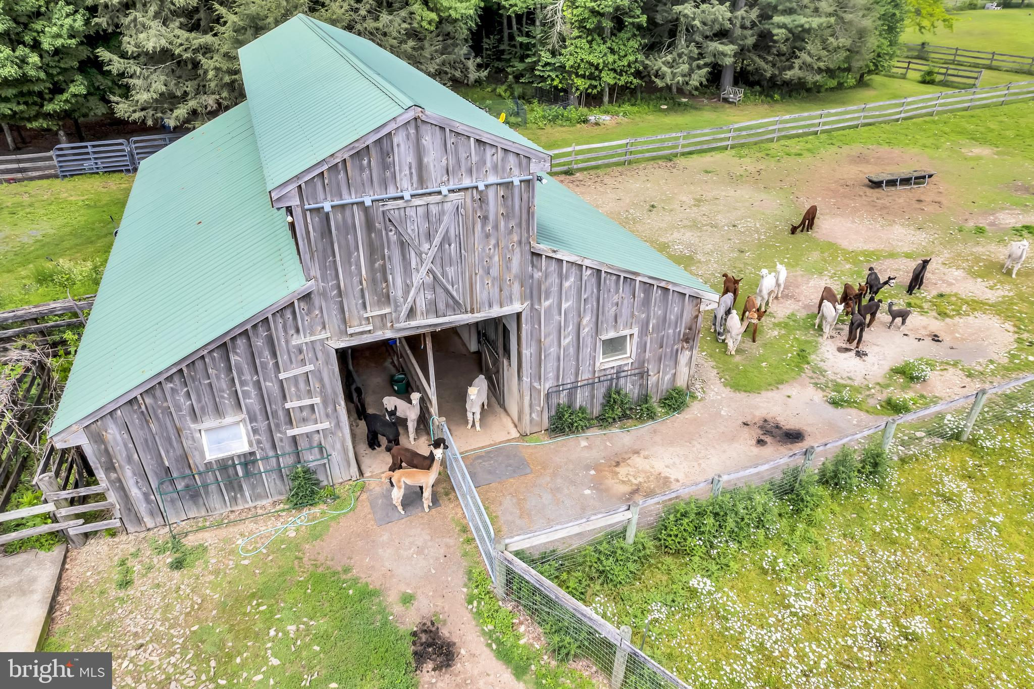 A legendary estate where paradise is found in the Poconos version of Big Sky country. An opportunity to establish a family legacy property on this uncommonly large piece of awe-inspiring land (72+ acres) with unrivaled views & a masterfully crafted home. Welcome to the recently created B&B, Chestnuthill Countryside Manor, also home to Pohopoco Creek Alpacas. Tranquility abounds in the very secluded yet convenient setting with grocery shopping under 4 miles away, 45 mins to Lehigh Valley airport, 11 miles to St Lukes hospital, under 2 hrs to NYC & Philly. A 2400’ paved driveway leads to a 6400’ French-inspired stone estate with 5 bedrooms, 3 ½ bathrooms, 4 car garage, in-ground pool & 6 stall barn. A private setting with stunning views seen from just about every window. An impressive entry with massive double French doors sets the stage for the magnificence of this home. The foyer is spacious and has a spiral wooden staircase with wrought iron banisters. It opens to a dramatic great-room with timber rafters complementing a soaring tongue & groove ceiling. A 2-story stone fireplace flanked by built-in stone log huts, porcelain tiled floors & arched windows complete this large room. Adjacent is a unique polygon room with a rustic log & plaster wet-bar cleverly incorporated into this perfect entertainment space. A near-by half bath is decorated with a beautiful painted mural & nice fixtures. Radiant heat Terracotta tile floors, granite counter tops, tile backsplashes & a walk-in pantry are some of the features of the gourmet custom kitchen. It’s equipped with a Viking stove, double ovens & a Subzero refrigerator. The formal dining room has a kitchen & foyer entry. French doors open from the foyer into a spacious sunken office w/ handsome custom wood paneling & a decorative mosaic design in the middle of the tiled floor. Craftsmanship & character continue to the upper level with an elongated loft enhanced by wood & wrought-iron banisters. Another vantage point of the great-room & raftered ceiling had to be the goal of this design. The master bedroom suite enjoys privacy being at one end of the corridor. It has an abundance of windows, a balcony, 2 large walk-in closets & luxurious bathroom with a radiant heat floor . Located at the other end are 4 spacious bedrooms which are serving as guestrooms for the B&B. 2 Jack & Jill bathrooms create a semi-private bathroom for guests. The laundry room is conveniently located on this floor. A 2nd staircase leads back down to a hall with a separate entrance. The barn has 6 box stalls with upper bars as dividers so horses can socialize & a sizable loft for hay storage. Aisleway & wash/grooming area. Attached is a dry-lot that opens to larger pastures. A small building has been converted to a cute boutique that sells Alpaca fleece products. There is a run-in shed in a small paddock. A large pole building can be used for equipment storage, cars, supplies or tools. A creek runs through the lower portion of the property. An older barn used for storage is located near the road by the driveway entrance. One of the finest views & settings I’ve encountered in all my years of brokerage. Eagles can be seen flying to their nest in the woods. This is a very special property. Continue on with the B&B, expand to a vineyard, a horse breeding or training farm or simply enjoy as a second home oasis. Seller is an inactive real estate broker - license is in escrow.
