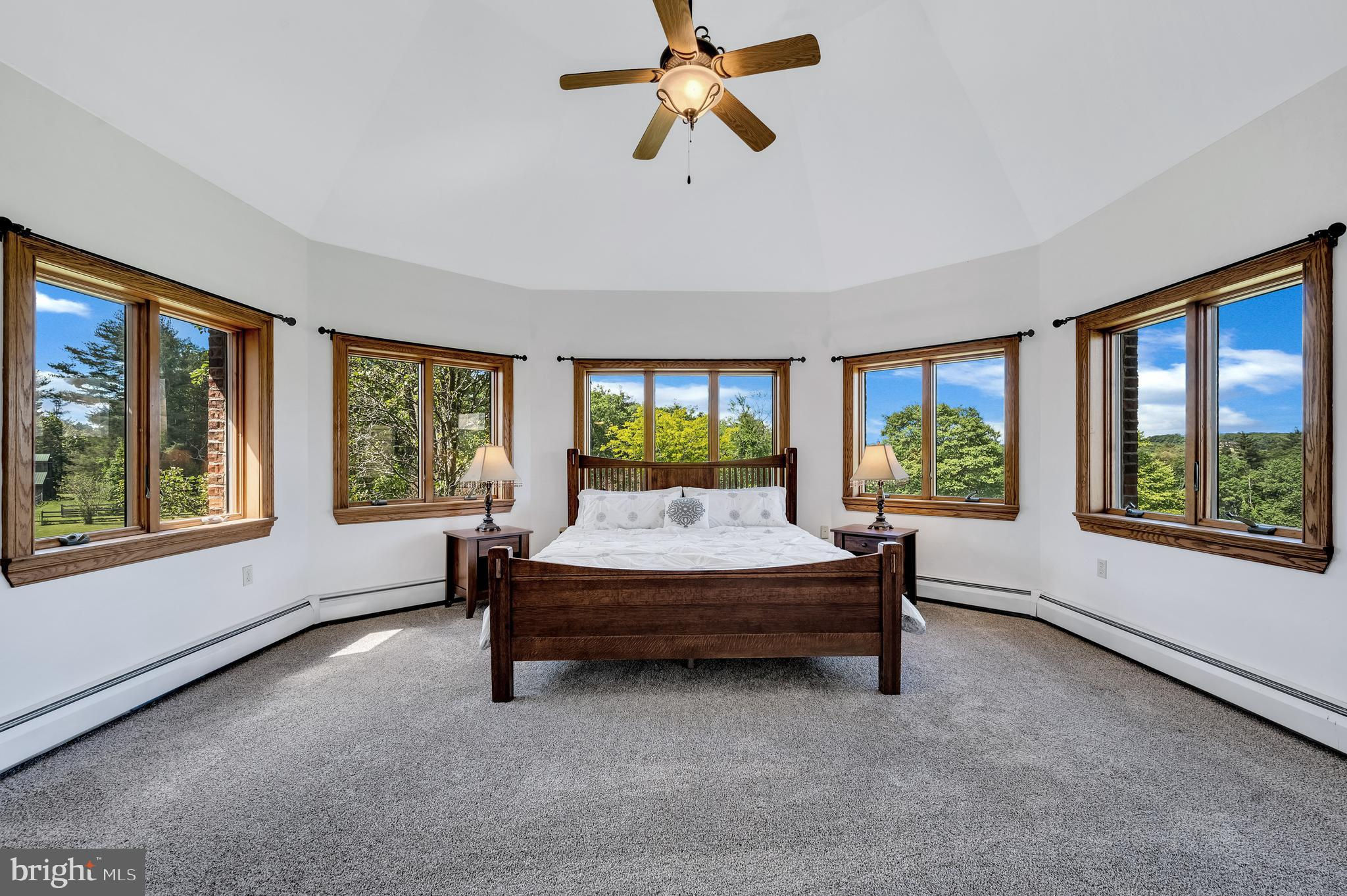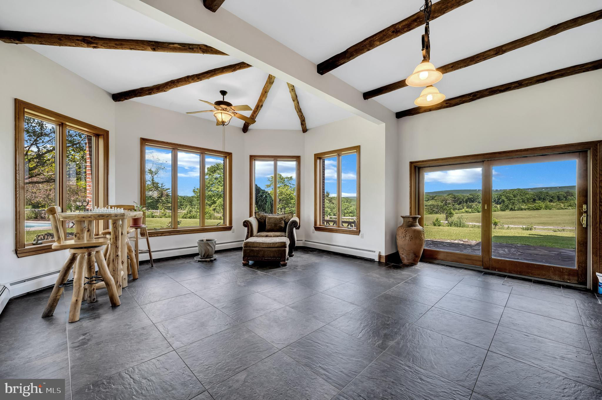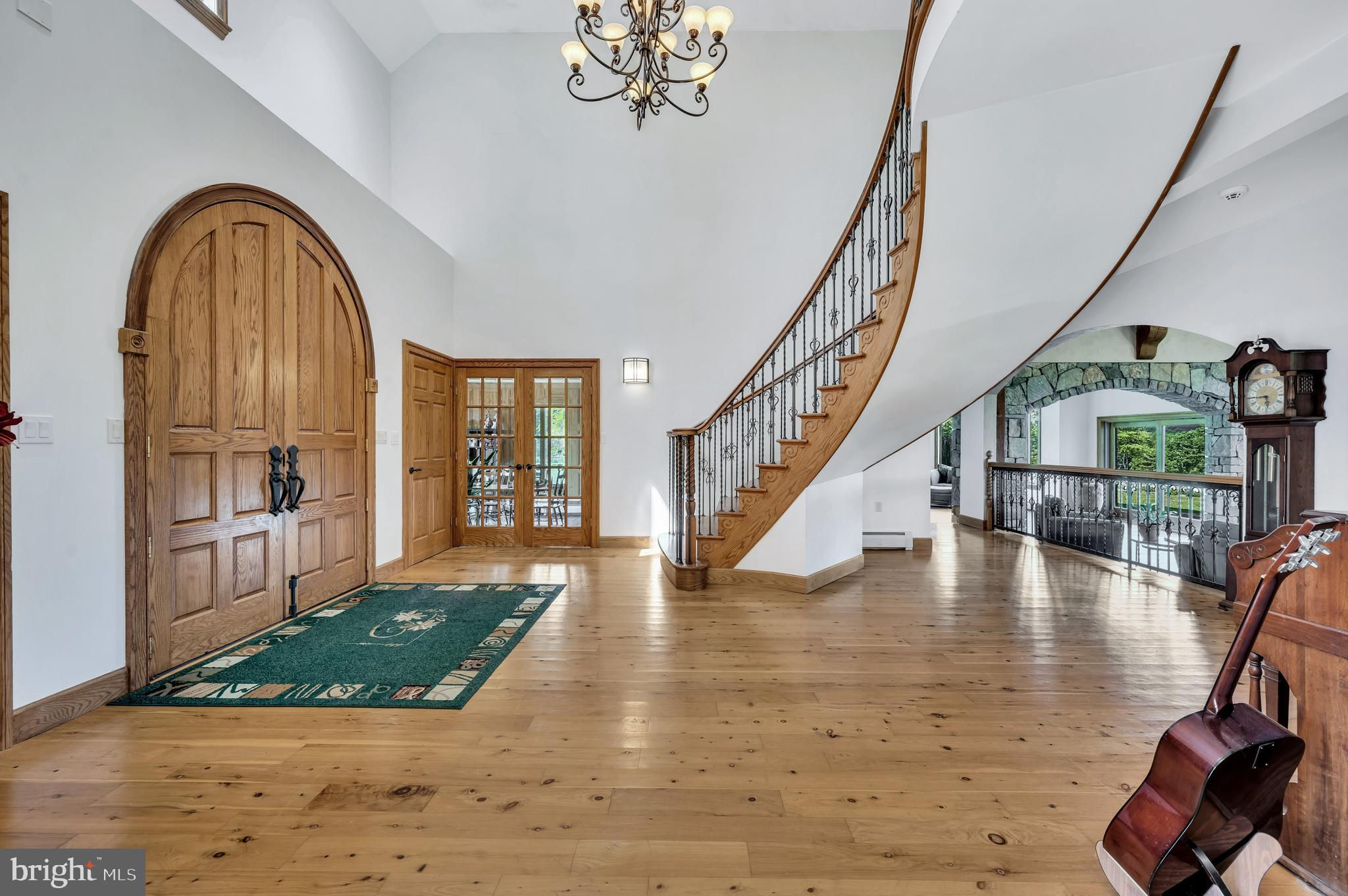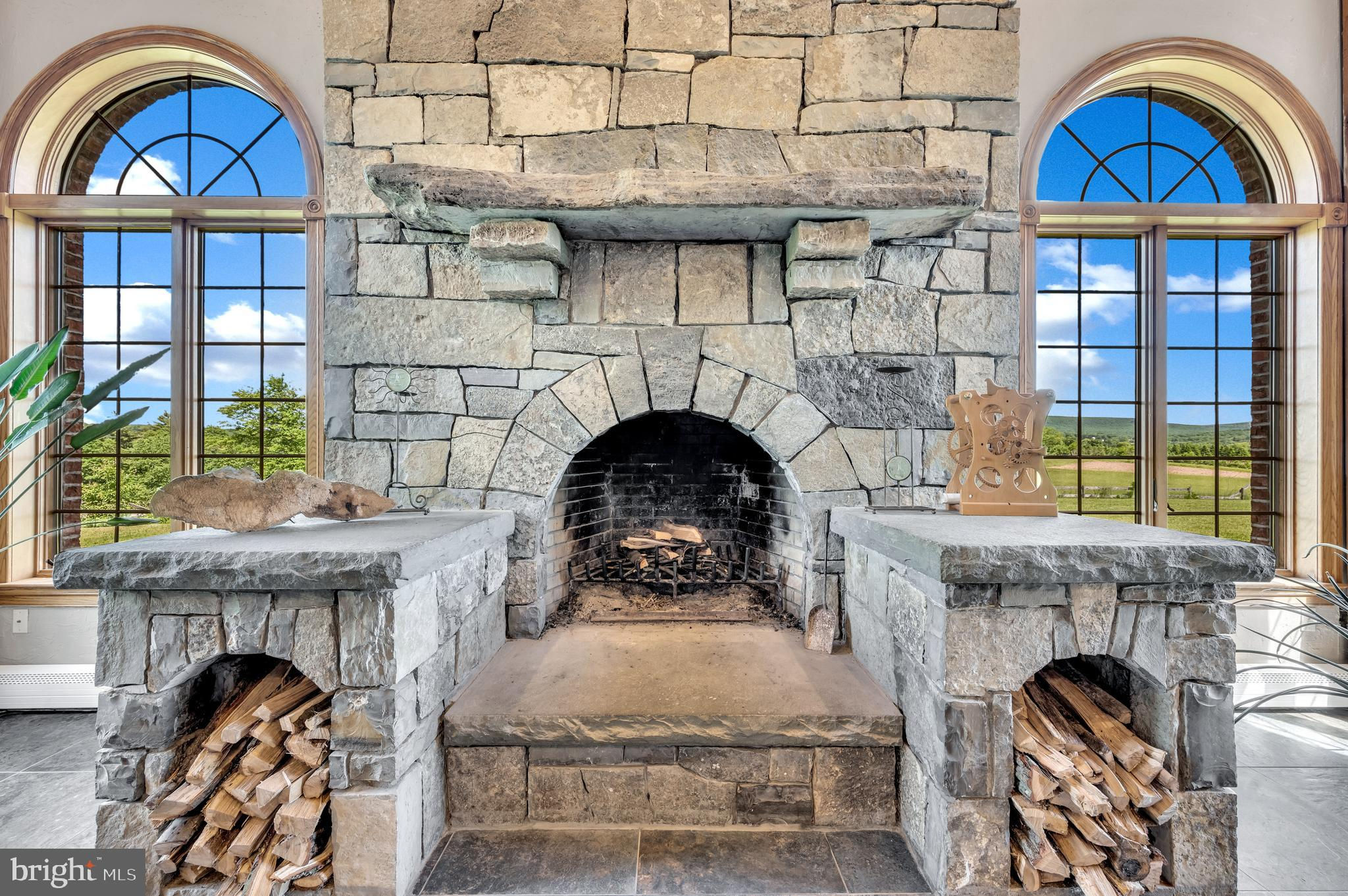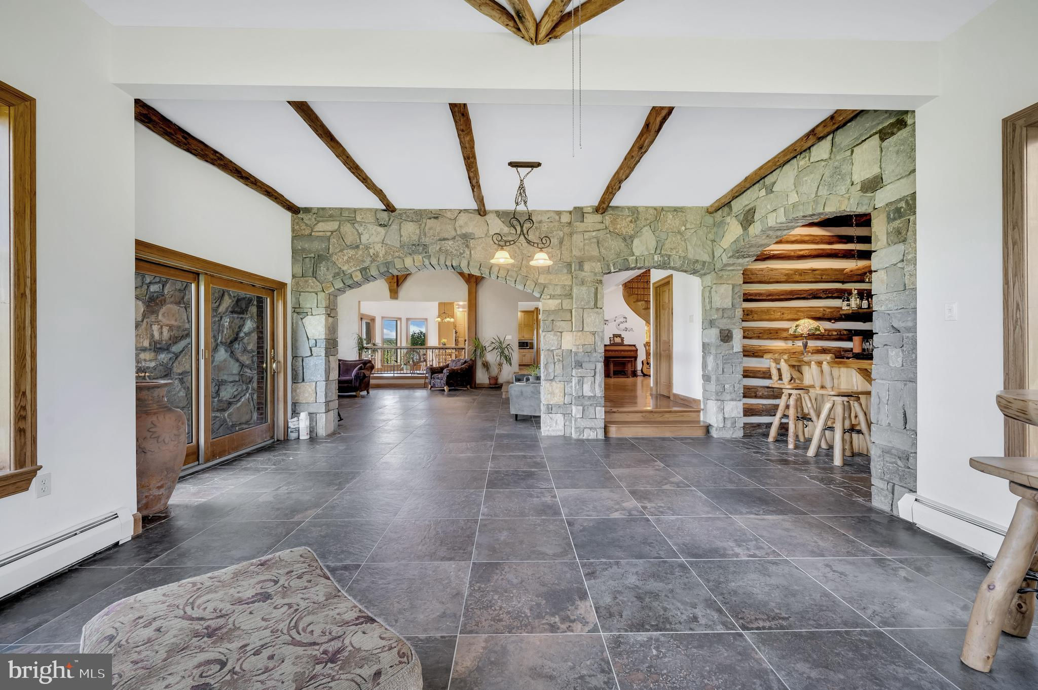 A legendary estate where paradise is found in the Poconos version of Big Sky country. An opportunity to establish a family legacy property on this uncommonly large piece of awe-inspiring land (72+ acres) with unrivaled views & a masterfully crafted home. Welcome to the recently created B&B, Chestnuthill Countryside Manor, also home to Pohopoco Creek Alpacas. Tranquility abounds in the very secluded yet convenient setting with grocery shopping under 4 miles away, 45 mins to Lehigh Valley airport, 11 miles to St Lukes hospital, under 2 hrs to NYC & Philly. A 2400’ paved driveway leads to a 6400’ French-inspired stone estate with 5 bedrooms, 3 ½ bathrooms, 4 car garage, in-ground pool & 6 stall barn. A private setting with stunning views seen from just about every window. An impressive entry with massive double French doors sets the stage for the magnificence of this home. The foyer is spacious and has a spiral wooden staircase with wrought iron banisters. It opens to a dramatic great-room with timber rafters complementing a soaring tongue & groove ceiling. A 2-story stone fireplace flanked by built-in stone log huts, porcelain tiled floors & arched windows complete this large room. Adjacent is a unique polygon room with a rustic log & plaster wet-bar cleverly incorporated into this perfect entertainment space. A near-by half bath is decorated with a beautiful painted mural & nice fixtures. Radiant heat Terracotta tile floors, granite counter tops, tile backsplashes & a walk-in pantry are some of the features of the gourmet custom kitchen. It’s equipped with a Viking stove, double ovens & a Subzero refrigerator. The formal dining room has a kitchen & foyer entry. French doors open from the foyer into a spacious sunken office w/ handsome custom wood paneling & a decorative mosaic design in the middle of the tiled floor. Craftsmanship & character continue to the upper level with an elongated loft enhanced by wood & wrought-iron banisters. Another vantage point of the great-room & raftered ceiling had to be the goal of this design. The master bedroom suite enjoys privacy being at one end of the corridor. It has an abundance of windows, a balcony, 2 large walk-in closets & luxurious bathroom with a radiant heat floor . Located at the other end are 4 spacious bedrooms which are serving as guestrooms for the B&B. 2 Jack & Jill bathrooms create a semi-private bathroom for guests. The laundry room is conveniently located on this floor. A 2nd staircase leads back down to a hall with a separate entrance. The barn has 6 box stalls with upper bars as dividers so horses can socialize & a sizable loft for hay storage. Aisleway & wash/grooming area. Attached is a dry-lot that opens to larger pastures. A small building has been converted to a cute boutique that sells Alpaca fleece products. There is a run-in shed in a small paddock. A large pole building can be used for equipment storage, cars, supplies or tools. A creek runs through the lower portion of the property. An older barn used for storage is located near the road by the driveway entrance. One of the finest views & settings I’ve encountered in all my years of brokerage. Eagles can be seen flying to their nest in the woods. This is a very special property. Continue on with the B&B, expand to a vineyard, a horse breeding or training farm or simply enjoy as a second home oasis. Seller is an inactive real estate broker - license is in escrow.