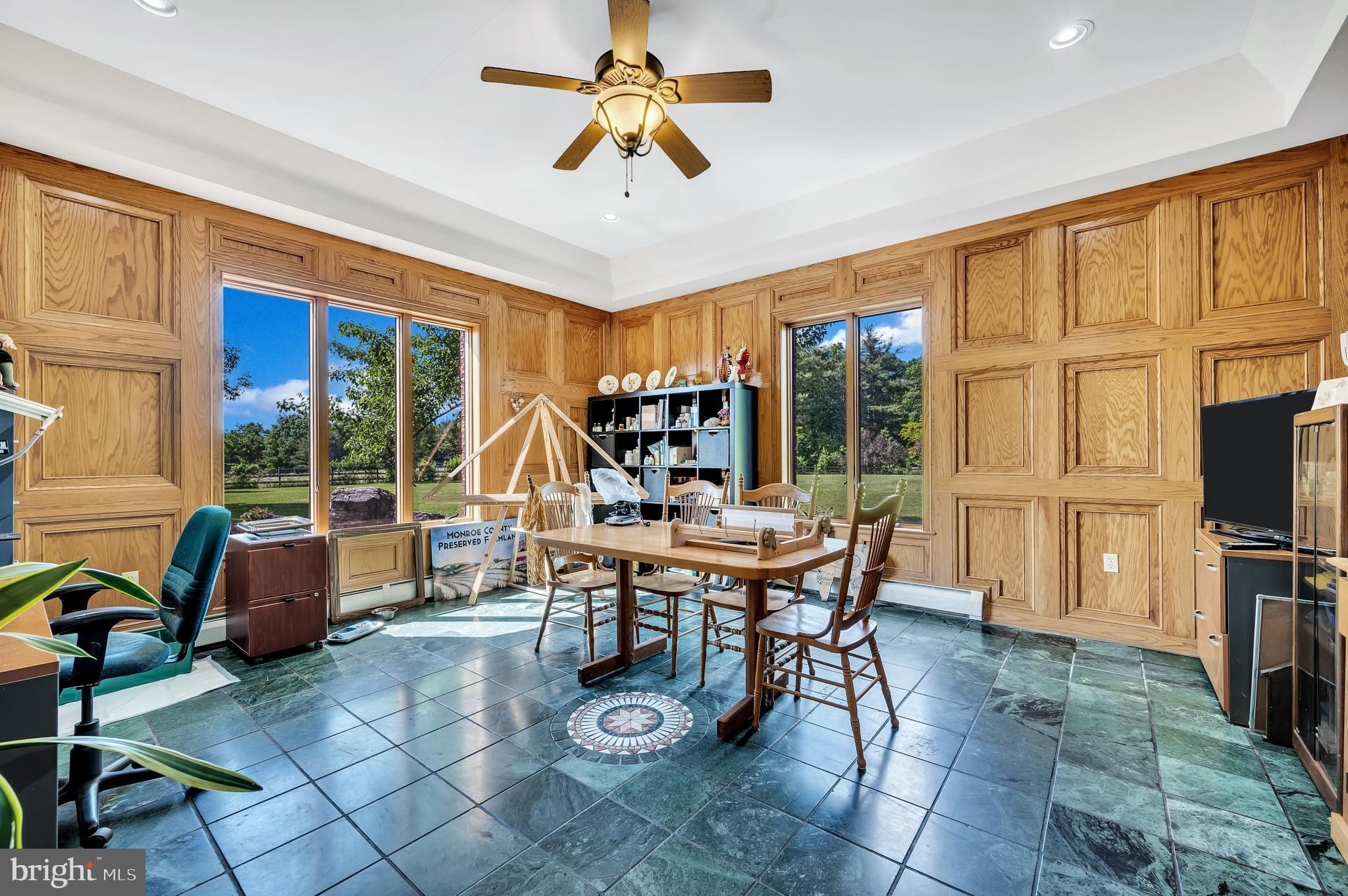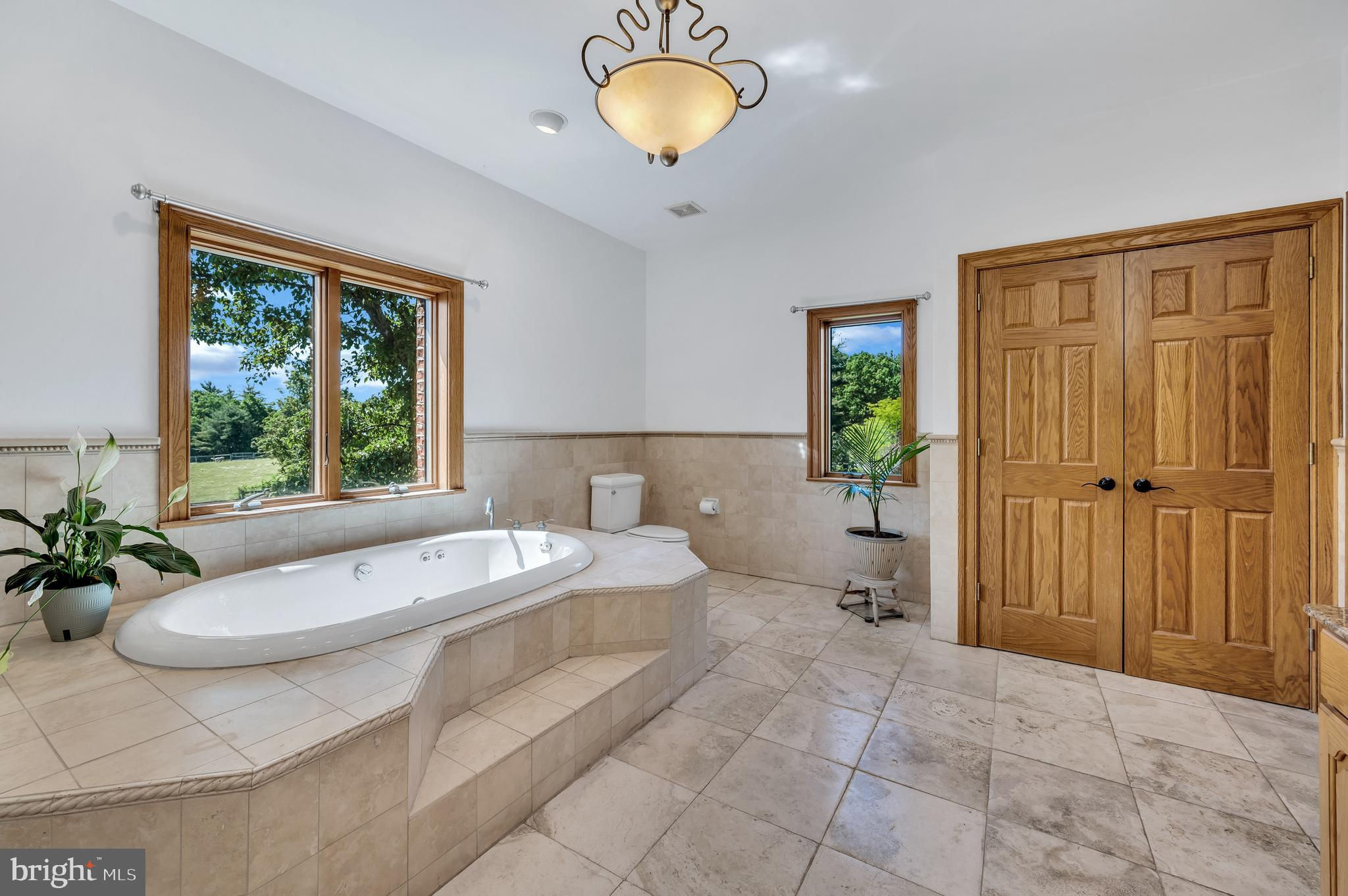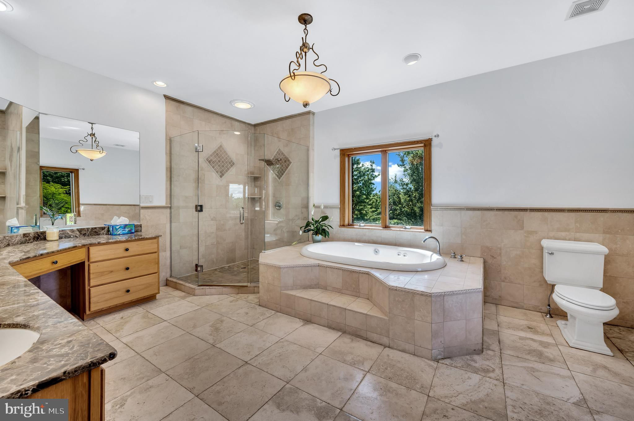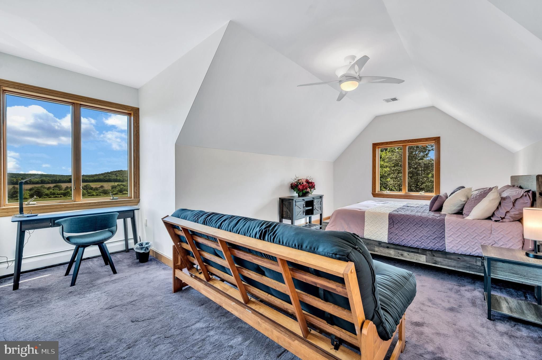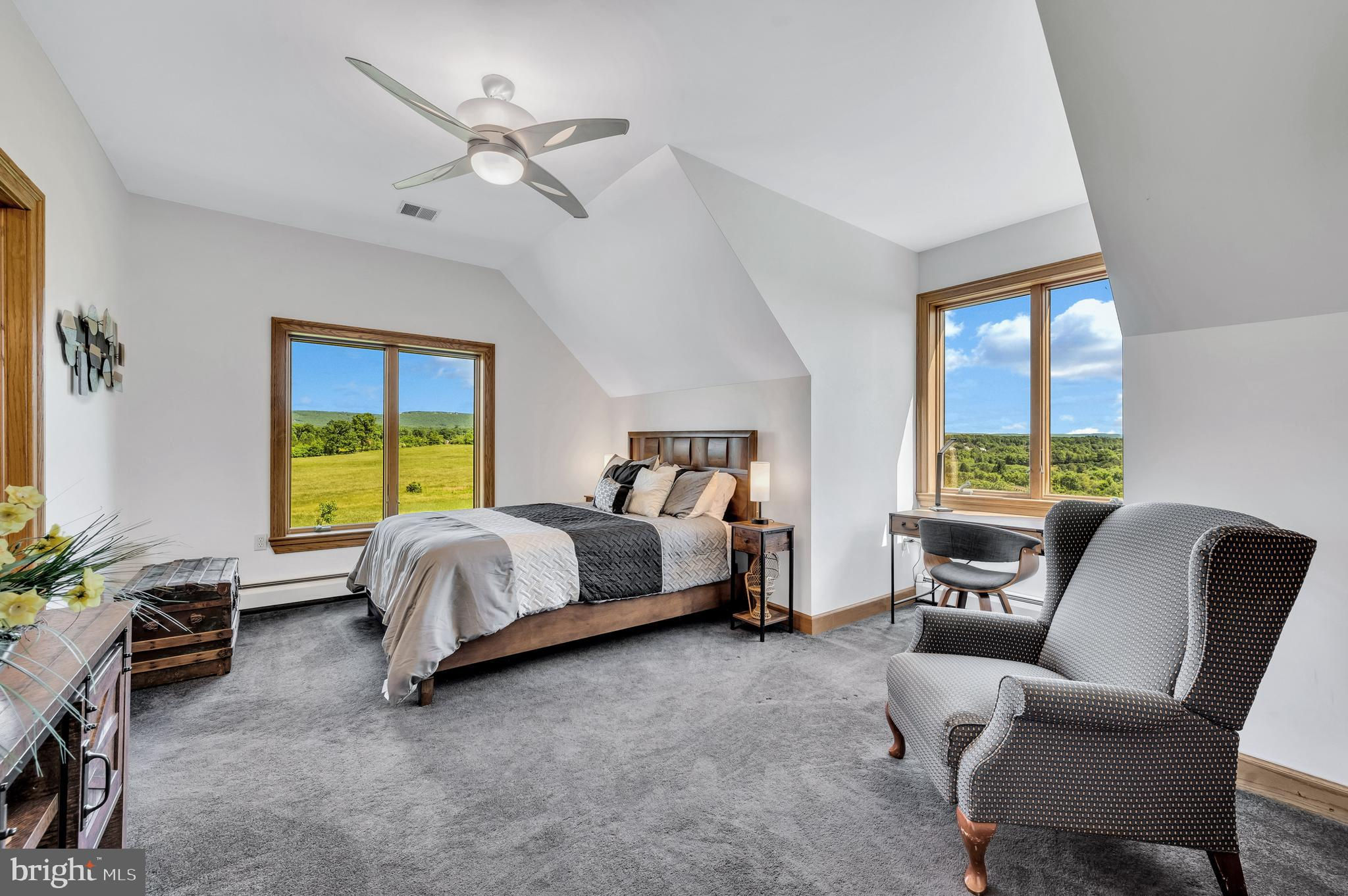 A legendary estate where paradise is found in the Poconos version of Big Sky country. An opportunity to establish a family legacy property on this uncommonly large piece of awe-inspiring land (72+ acres) with unrivaled views & a masterfully crafted home. Welcome to the recently created B&B, Chestnuthill Countryside Manor, also home to Pohopoco Creek Alpacas. Tranquility abounds in the very secluded yet convenient setting with grocery shopping under 4 miles away, 45 mins to Lehigh Valley airport, 11 miles to St Lukes hospital, under 2 hrs to NYC & Philly. A 2400’ paved driveway leads to a 6400’ French-inspired stone estate with 5 bedrooms, 3 ½ bathrooms, 4 car garage, in-ground pool & 6 stall barn. A private setting with stunning views seen from just about every window. An impressive entry with massive double French doors sets the stage for the magnificence of this home. The foyer is spacious and has a spiral wooden staircase with wrought iron banisters. It opens to a dramatic great-room with timber rafters complementing a soaring tongue & groove ceiling. A 2-story stone fireplace flanked by built-in stone log huts, porcelain tiled floors & arched windows complete this large room. Adjacent is a unique polygon room with a rustic log & plaster wet-bar cleverly incorporated into this perfect entertainment space. A near-by half bath is decorated with a beautiful painted mural & nice fixtures. Radiant heat Terracotta tile floors, granite counter tops, tile backsplashes & a walk-in pantry are some of the features of the gourmet custom kitchen. It’s equipped with a Viking stove, double ovens & a Subzero refrigerator. The formal dining room has a kitchen & foyer entry. French doors open from the foyer into a spacious sunken office w/ handsome custom wood paneling & a decorative mosaic design in the middle of the tiled floor. Craftsmanship & character continue to the upper level with an elongated loft enhanced by wood & wrought-iron banisters. Another vantage point of the great-room & raftered ceiling had to be the goal of this design. The master bedroom suite enjoys privacy being at one end of the corridor. It has an abundance of windows, a balcony, 2 large walk-in closets & luxurious bathroom with a radiant heat floor . Located at the other end are 4 spacious bedrooms which are serving as guestrooms for the B&B. 2 Jack & Jill bathrooms create a semi-private bathroom for guests. The laundry room is conveniently located on this floor. A 2nd staircase leads back down to a hall with a separate entrance. The barn has 6 box stalls with upper bars as dividers so horses can socialize & a sizable loft for hay storage. Aisleway & wash/grooming area. Attached is a dry-lot that opens to larger pastures. A small building has been converted to a cute boutique that sells Alpaca fleece products. There is a run-in shed in a small paddock. A large pole building can be used for equipment storage, cars, supplies or tools. A creek runs through the lower portion of the property. An older barn used for storage is located near the road by the driveway entrance. One of the finest views & settings I’ve encountered in all my years of brokerage. Eagles can be seen flying to their nest in the woods. This is a very special property. Continue on with the B&B, expand to a vineyard, a horse breeding or training farm or simply enjoy as a second home oasis. Seller is an inactive real estate broker - license is in escrow.
