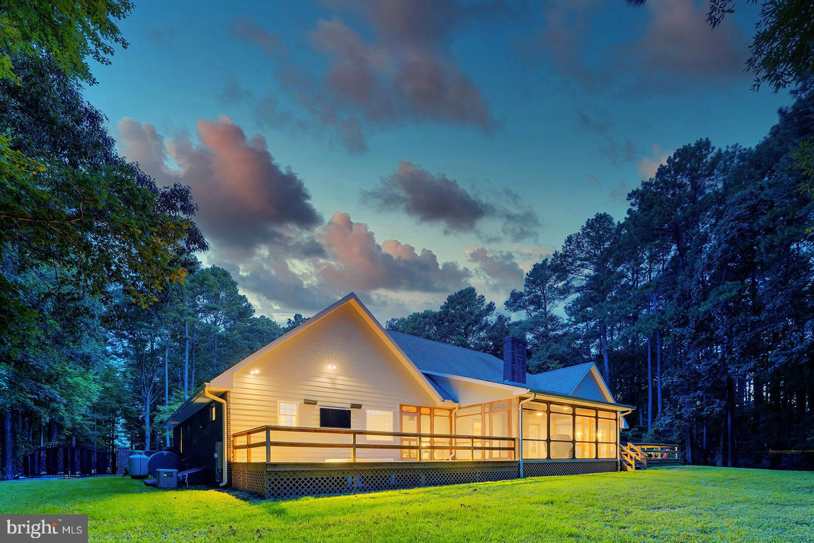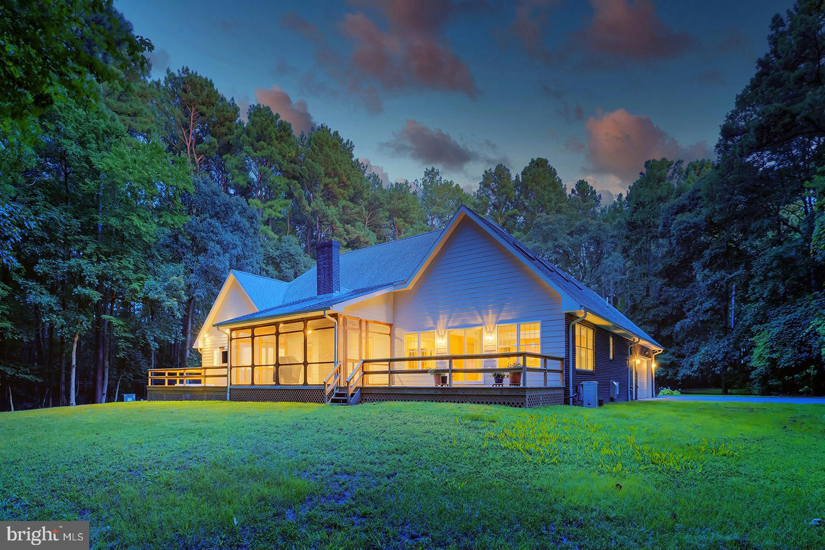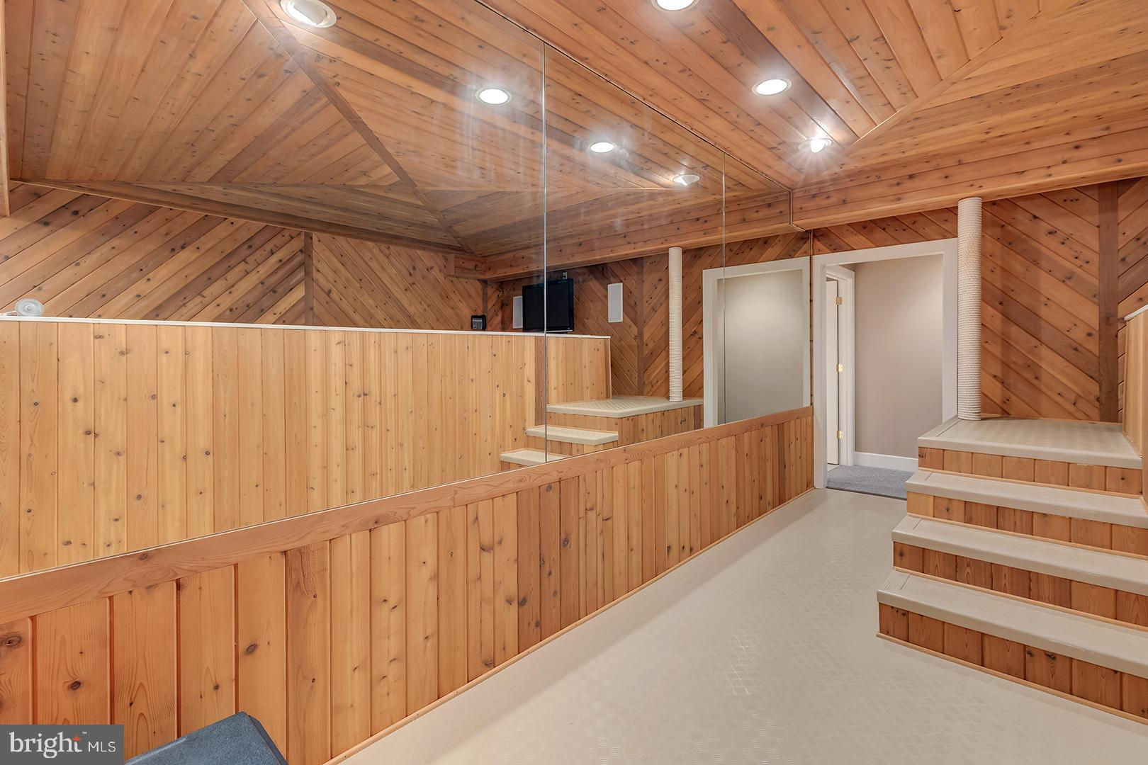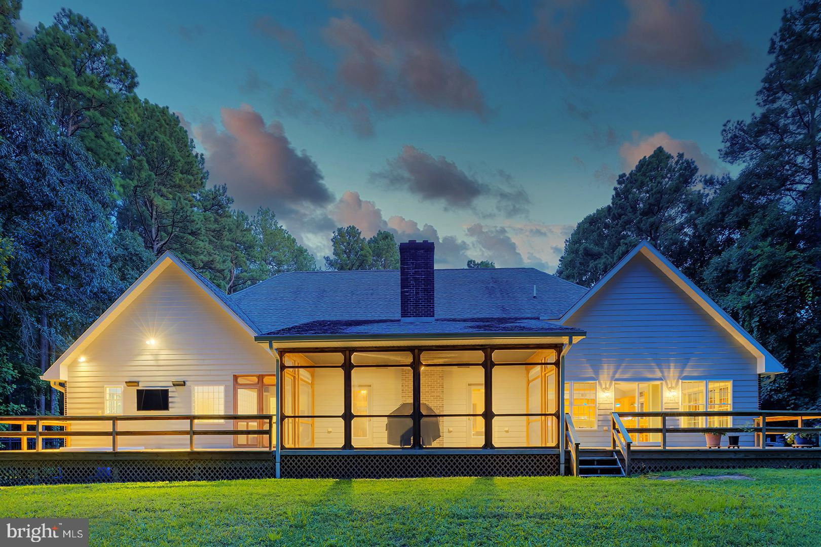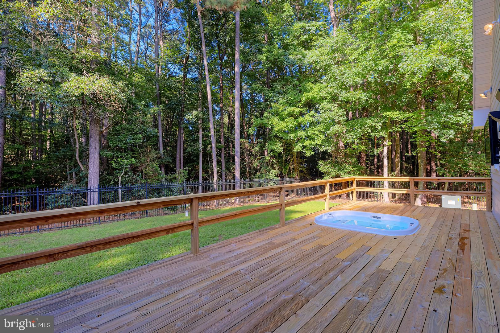 Nestled on more than 3 acres of lush, wooded land, this custom home offers an unparalleled sense of privacy and tranquility. A lighted fountain welcomes you at the center of the circular driveway, setting the tone for the sophisticated yet serene atmosphere of the property. Designed for both grand entertaining and intimate gatherings, the open-concept kitchen is a culinary haven designed by the producer of Emeril Lagasse's TV show and encompasses all of the same appliances as on the show. It flows seamlessly into the expansive great room, while a large deck with hot tub and sunlight weatherproof flat screen TV, and screened porch offer perfect spaces for relaxation or hosting guests in any season. There are 2 powder rooms: one at the foyer entry and one near the butler pantry next to the kitchen. The "Media & Wellness" level is a sanctuary in itself, featuring a state-of-the-art home theater, a resistance pool for fitness and relaxation, a massage room (which can also function as a fourth bedroom), a changing area, and a convenient 3/4 bathroom. Radiant heated floors run throughout the home, ensuring comfort no matter the season. The main level houses the primary bedroom suite, offering a peaceful retreat, while two additional bedrooms and a shared bathroom also reside on this level, making the home perfect for families or guests. The property is fully gated and fenced, with dense woods encircling the perimeter to enhance the seclusion and privacy of this exceptional estate. Set back from the road, the home exudes a serene atmosphere, providing an oasis of calm just moments away from everyday conveniences