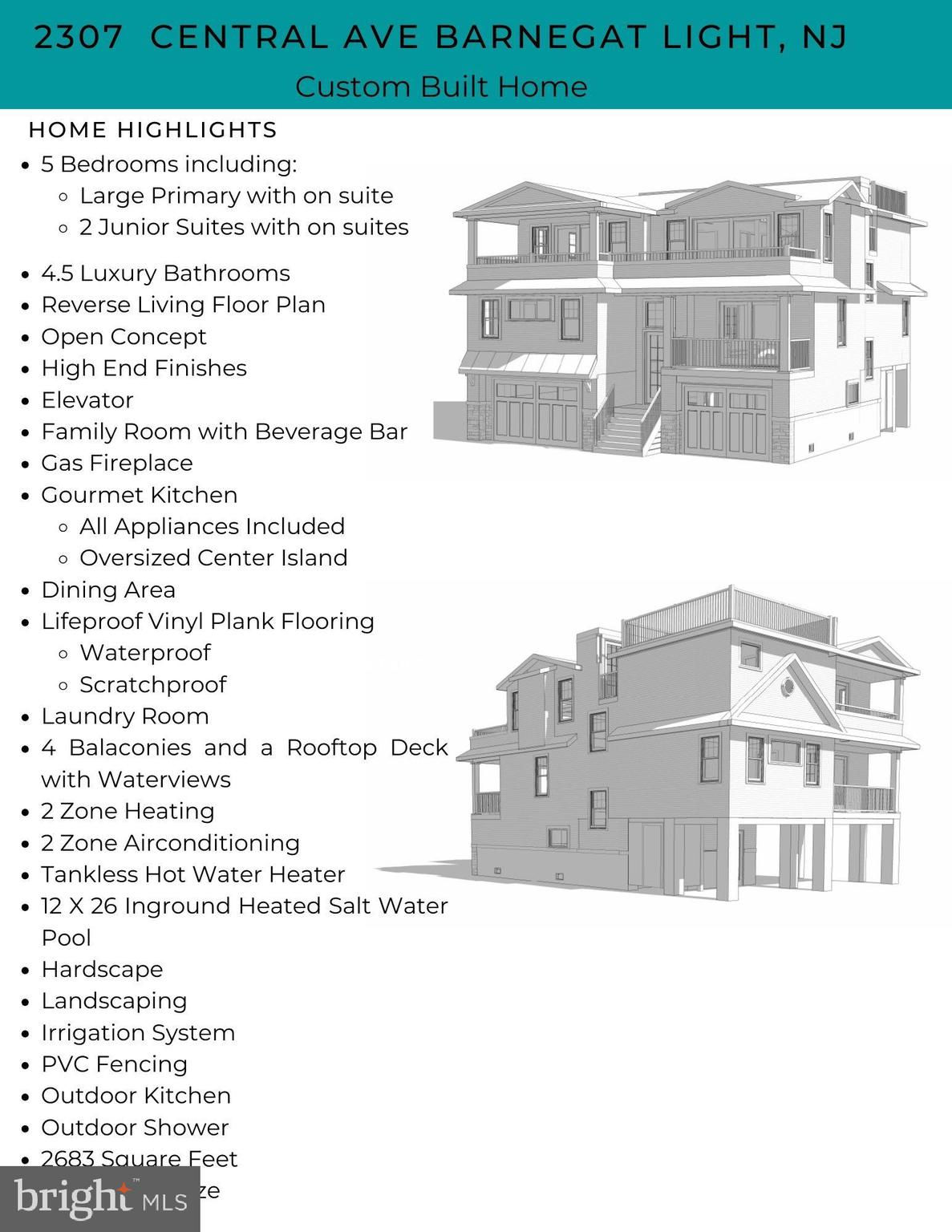 Indulge in coastal luxury with this exceptional new construction in the heart of Barnegat Light, NJ. Featuring 5 bedrooms including a spacious primary suite and 2 junior suites, along with 4.5 luxurious bathrooms, this home offers an exquisite blend of sophistication and practicality. Entertain effortlessly in the open-concept living spaces adorned with upscale finishes, a gourmet kitchen, and a cozy family room complete with a beverage bar and gas fireplace. Outside, savor stunning views from one of the four balconies and water views from the rooftop deck, or unwind in the heated saltwater pool. Elevator access and an outdoor kitchen add further allure to this coastal haven, perfectly situated just moments from the beach and local amenities.
