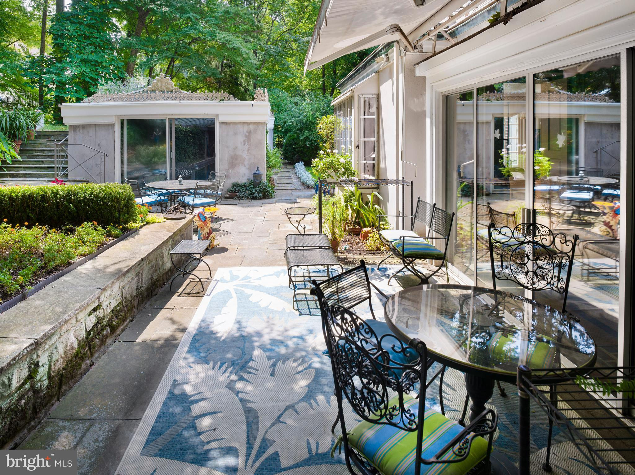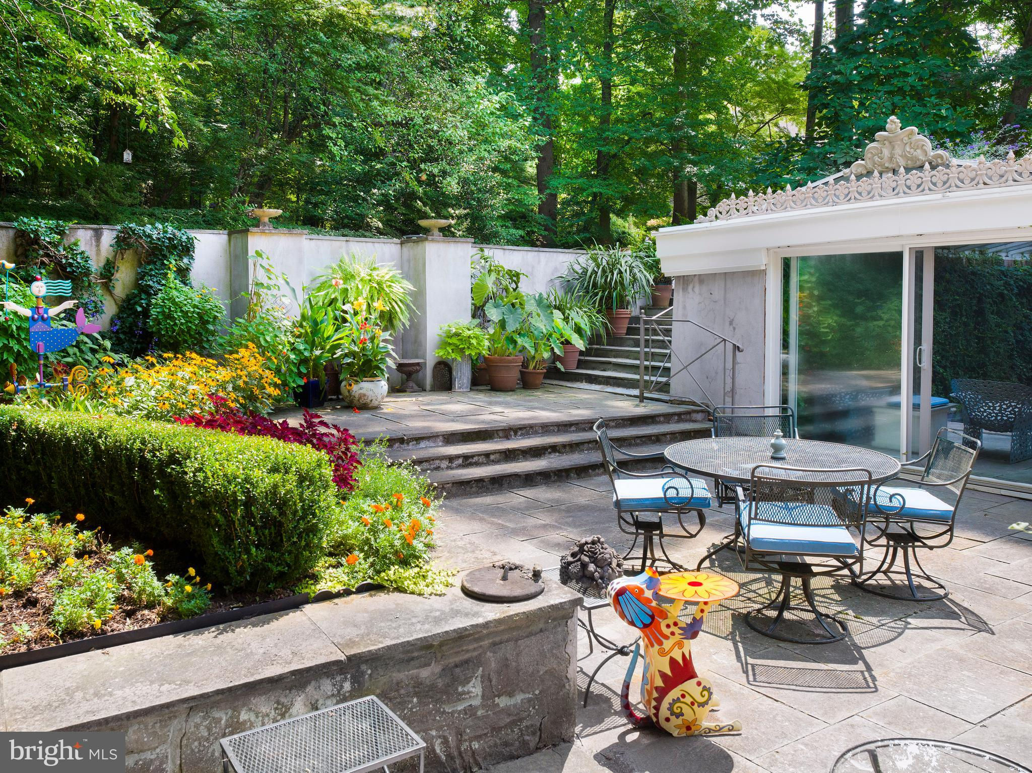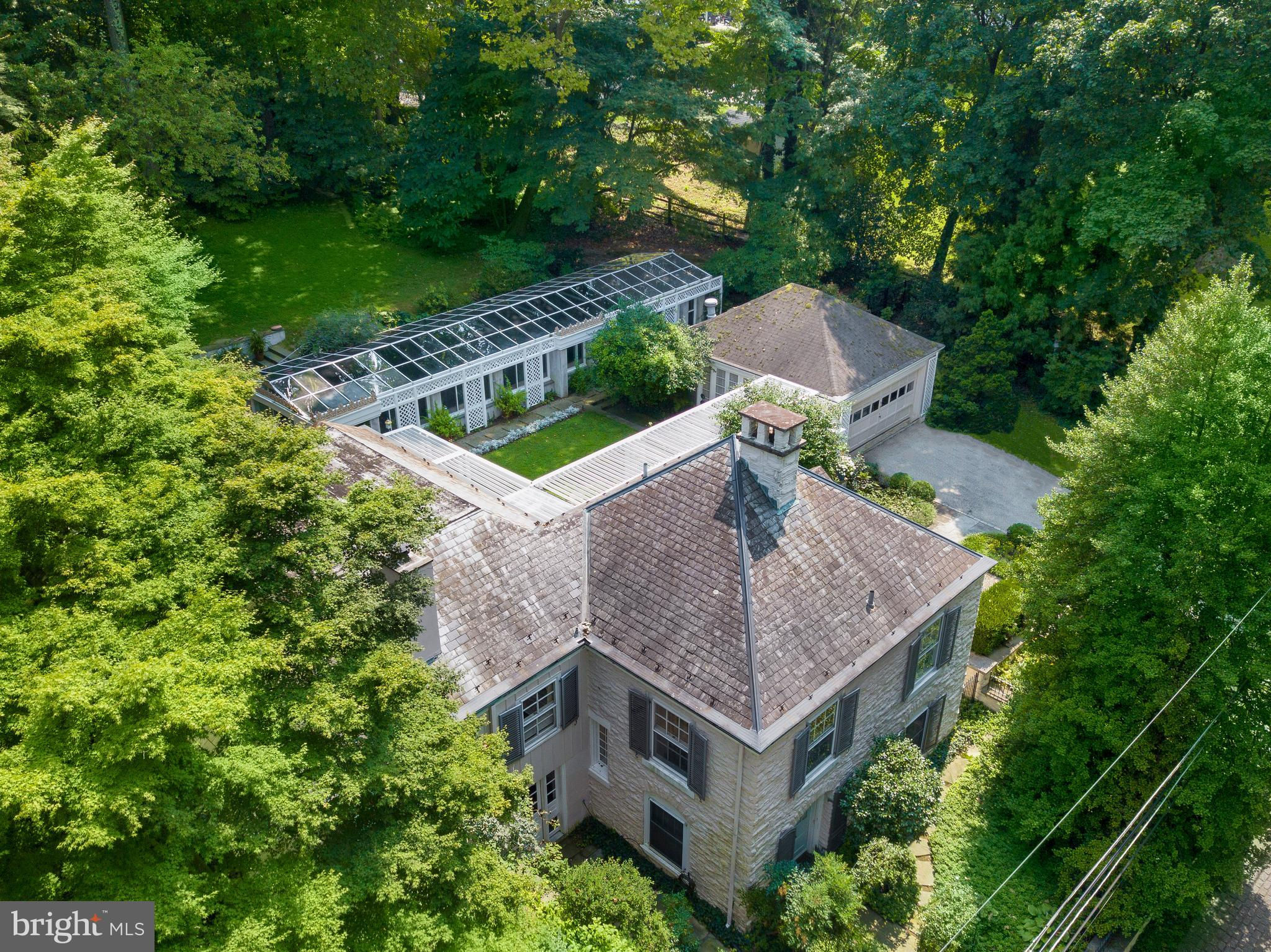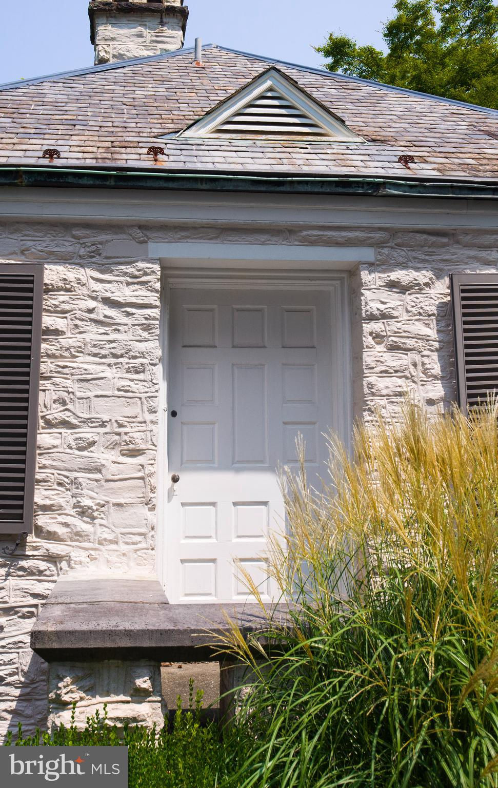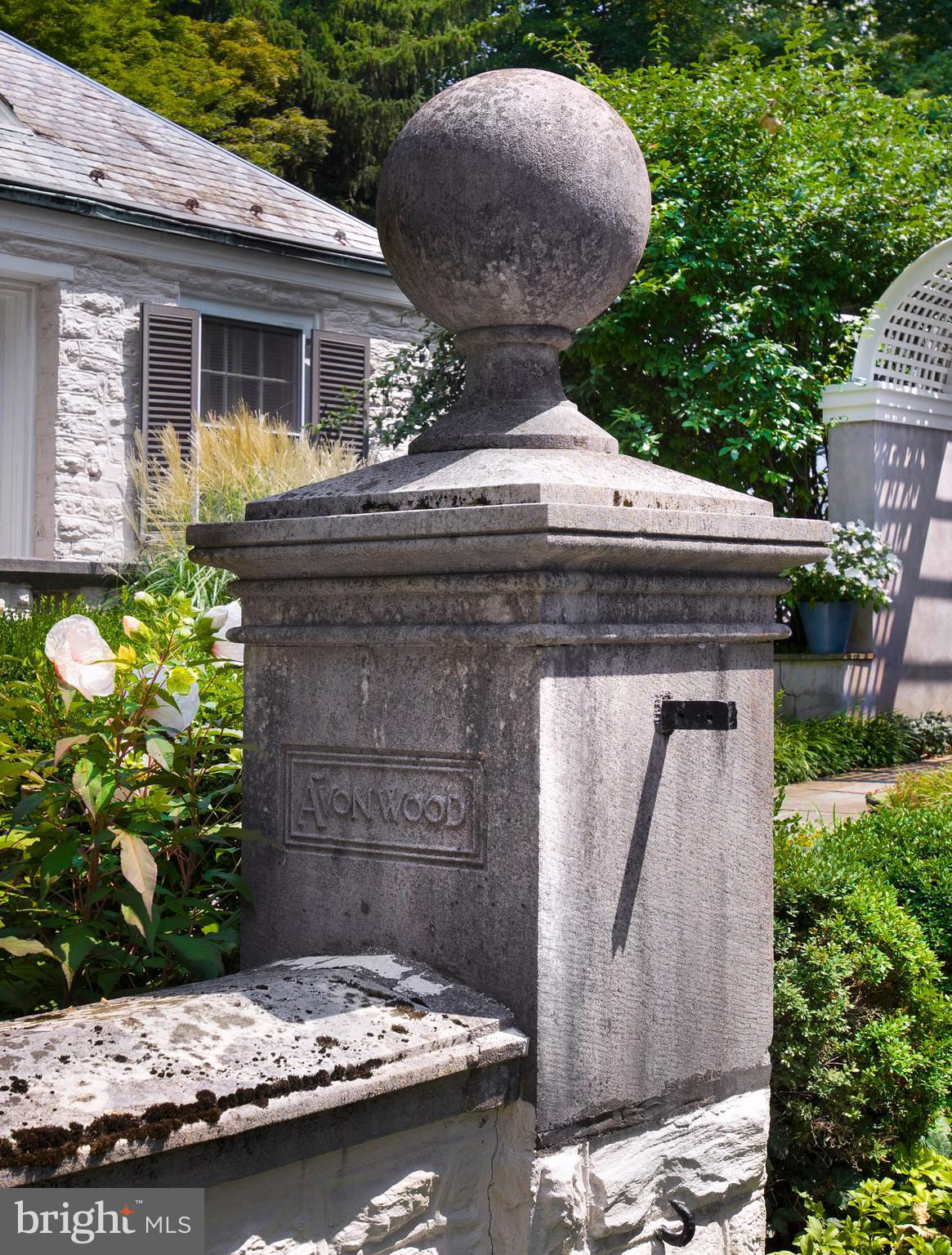 Welcome to this charming residence on Avon Road in Haverford, originally the gatehouse to the grand "Avonwood" estate. This historic property retains original entrance pillars and stone walls and is set amidst beautiful, serene surroundings on a quiet road with little through traffic. The painted stone home features a slate roof, flagstone walkways, and Belgian block details. Enter through the lattice arch and follow a trellis-covered flagstone walkway along a peaceful courtyard to the main entrance. The foyer, which boasts terra-cotta tiled flooring, offers a warm welcome and includes a staircase leading to the lower level. The bright, spacious living room has large windows with two exposures plus two sets of French doors that open to the courtyard. It also includes built-in display cabinetry, a large wood-burning fireplace, and captivating views of the grounds. An elegant dining room is accessible through two sets of tall doors from the living room and a swinging door from the kitchen. This large room features moldings, hardwood flooring, and built-in lighted display and storage cabinetry. The walls were hand-painted by PAFA artist Iwan Nazarewicz. Windows on two sides, including a wall of sliding glass doors, open to the rear flagstone terrace. A nearby den, with its cozy gas log fireplace, built-in bookcase and moldings, connects to both the living room and eat-in kitchen, and makes an ideal retreat for reading and relaxation. The kitchen, blending functionality with charm, features a cushioned window seat for casual dining, tall wood cabinetry, a triple stainless sink, bar sink, and appliances including a KitchenAid 4-burner gas cooktop with grill and double wall ovens. The primary bedroom, located on the first floor, has exquisite Zuber wallpaper and a hidden king-sized Murphy bed behind wall panels. French doors open to the courtyard and bring in natural light. The primary bath includes a vanity with double sinks and a shower with multiple side sprays. An adjacent small bedroom, which can also be used as a dressing room, has windows on two sides and three closets. A nearby powder room adds convenience and style. The lower level is daylit with walk-out access to the front walled garden’s roses and camellias. There is a bedroom suite with windows on two sides, a closet, and a full bathroom with a tub/shower, which is perfect for guests or as a separate living space. This level also includes a sitting room, a large storage closet, and a room that could serve as another bedroom or fitness area. It has bookcases and double doors to the front garden. A small utility/office area ends at a laundry room. The expansive rear grounds include a large flagstone terrace with stone knee walls, an ivy-covered wall, multiple flower gardens, and a wide stone staircase ascending to a meadow. From there a path leads through the woods to a back gate on Avonwood Road. A separate structure, inspired by the architecture of European orangeries, houses a stunning 50-foot indoor lap pool with a glass roof. Mature trees provide privacy, while a detached two-car garage has convenient French doors opening toward the home and courtyard. This property combines historic charm and modern expansions, set in a peaceful, private woodland. The fully fenced grounds include multiple gardens and sitting areas. The flexible floor plan of the home adapts to many lifestyles. This historic oasis on the Main Line is a private sanctuary for luxurious living, all within convenient walking distance to the Haverford and Bryn Mawr train stations.