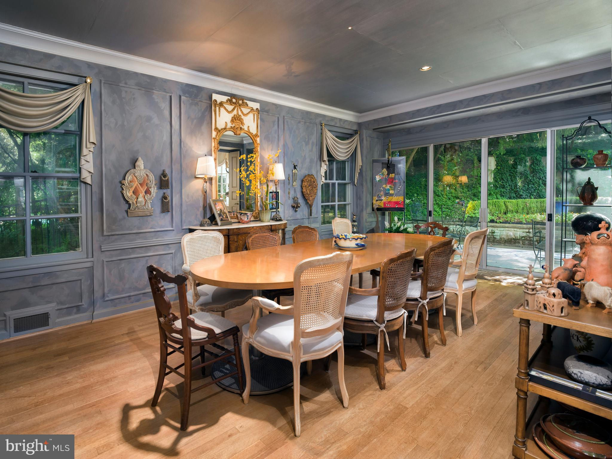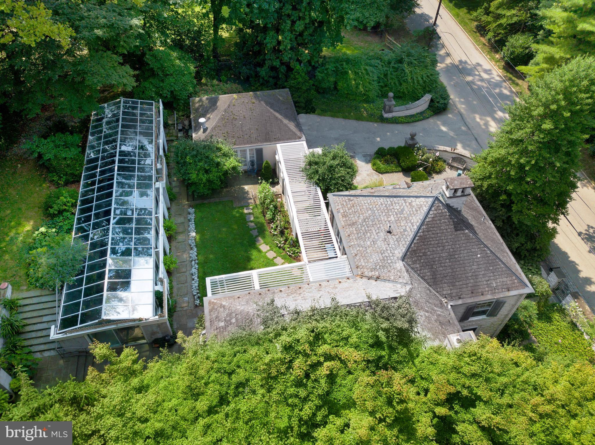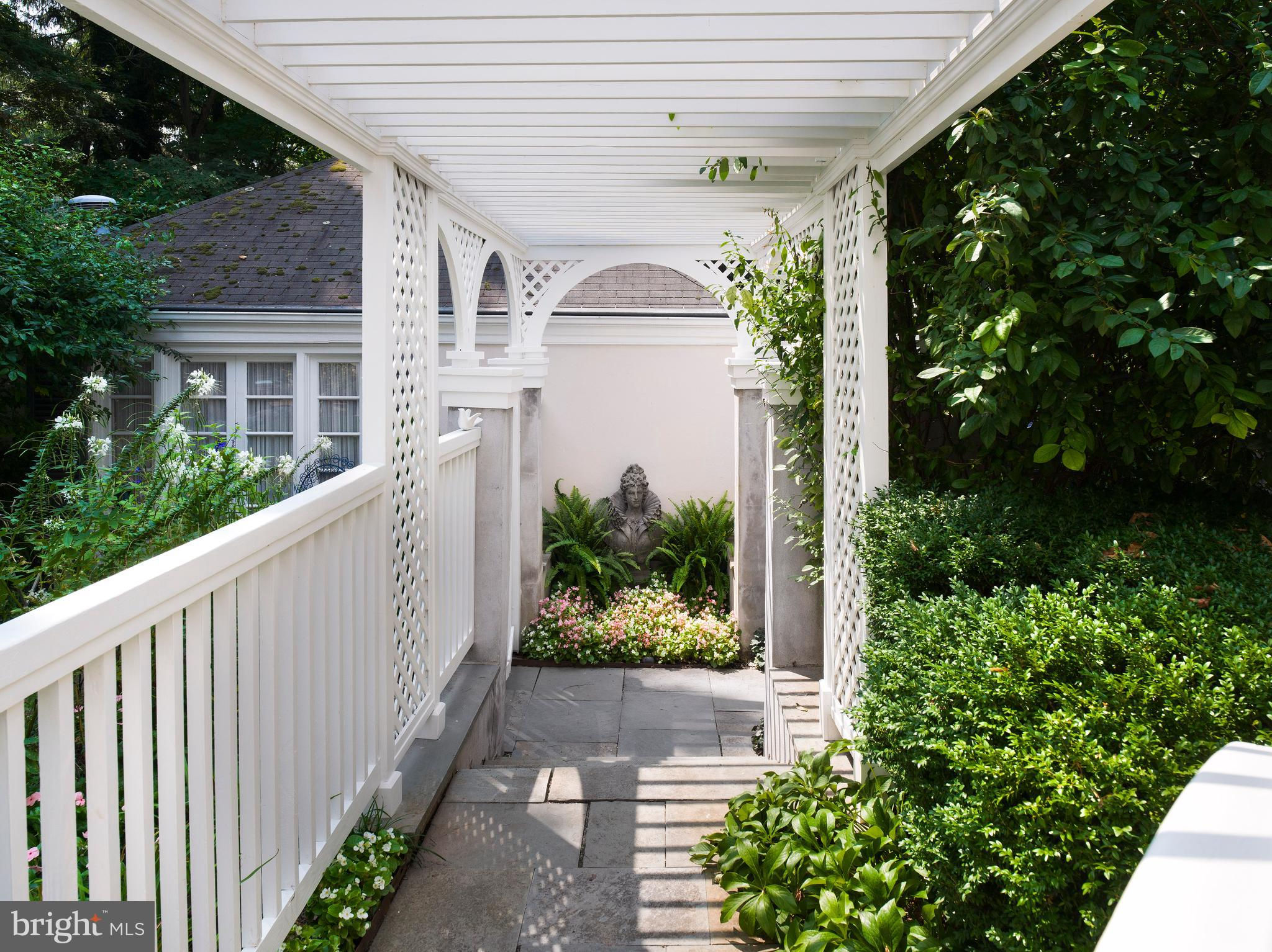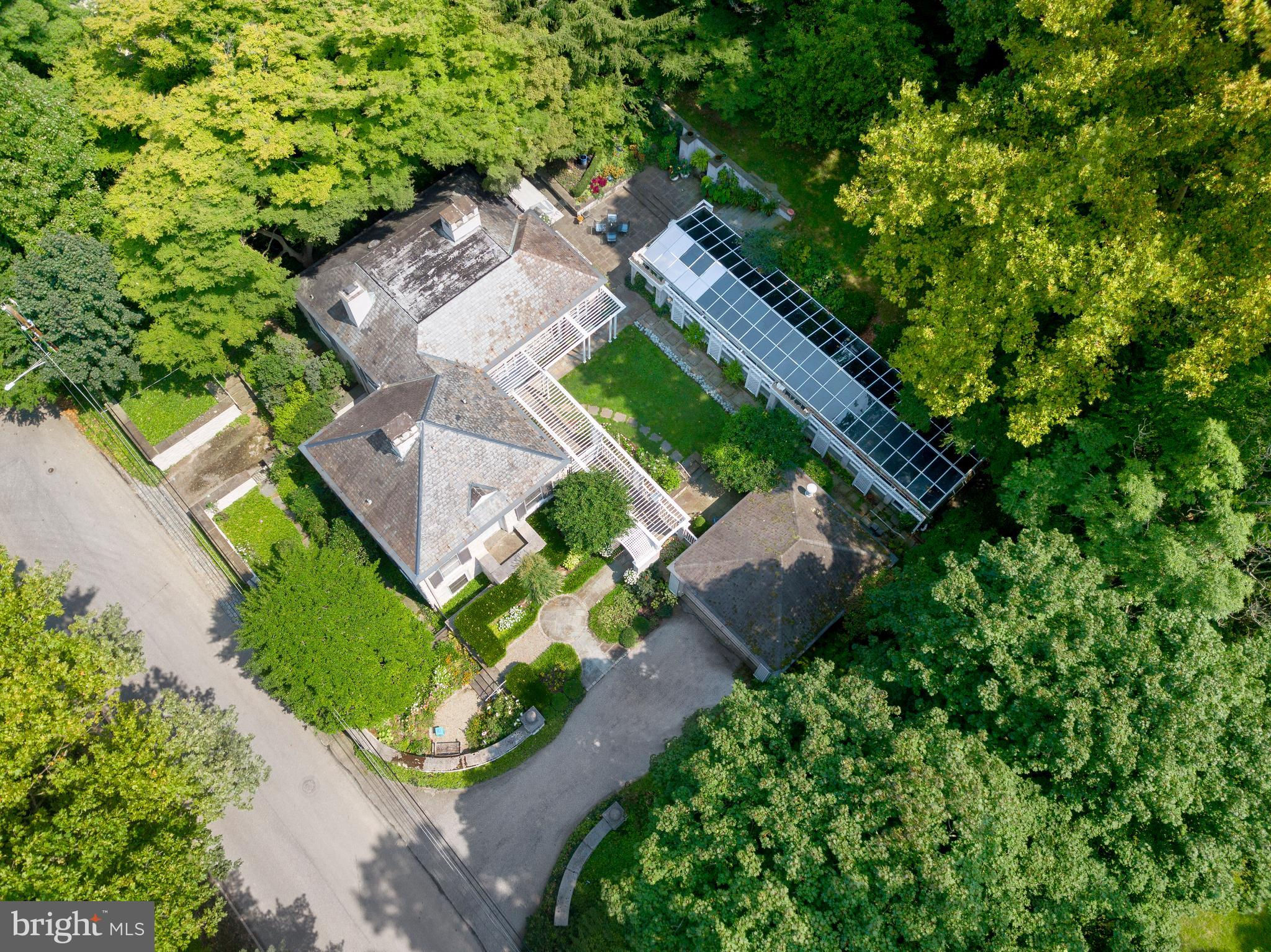 Welcome to this charming residence on Avon Road in Haverford, originally the gatehouse to the grand "Avonwood" estate. This historic property retains original entrance pillars and stone walls and is set amidst beautiful, serene surroundings on a quiet road with little through traffic. The painted stone home features a slate roof, flagstone walkways, and Belgian block details. Enter through the lattice arch and follow a trellis-covered flagstone walkway along a peaceful courtyard to the main entrance. The foyer, which boasts terra-cotta tiled flooring, offers a warm welcome and includes a staircase leading to the lower level. The bright, spacious living room has large windows with two exposures plus two sets of French doors that open to the courtyard. It also includes built-in display cabinetry, a large wood-burning fireplace, and captivating views of the grounds. An elegant dining room is accessible through two sets of tall doors from the living room and a swinging door from the kitchen. This large room features moldings, hardwood flooring, and built-in lighted display and storage cabinetry. The walls were hand-painted by PAFA artist Iwan Nazarewicz. Windows on two sides, including a wall of sliding glass doors, open to the rear flagstone terrace. A nearby den, with its cozy gas log fireplace, built-in bookcase and moldings, connects to both the living room and eat-in kitchen, and makes an ideal retreat for reading and relaxation. The kitchen, blending functionality with charm, features a cushioned window seat for casual dining, tall wood cabinetry, a triple stainless sink, bar sink, and appliances including a KitchenAid 4-burner gas cooktop with grill and double wall ovens. The primary bedroom, located on the first floor, has exquisite Zuber wallpaper and a hidden king-sized Murphy bed behind wall panels. French doors open to the courtyard and bring in natural light. The primary bath includes a vanity with double sinks and a shower with multiple side sprays. An adjacent small bedroom, which can also be used as a dressing room, has windows on two sides and three closets. A nearby powder room adds convenience and style. The lower level is daylit with walk-out access to the front walled garden’s roses and camellias. There is a bedroom suite with windows on two sides, a closet, and a full bathroom with a tub/shower, which is perfect for guests or as a separate living space. This level also includes a sitting room, a large storage closet, and a room that could serve as another bedroom or fitness area. It has bookcases and double doors to the front garden. A small utility/office area ends at a laundry room. The expansive rear grounds include a large flagstone terrace with stone knee walls, an ivy-covered wall, multiple flower gardens, and a wide stone staircase ascending to a meadow. From there a path leads through the woods to a back gate on Avonwood Road. A separate structure, inspired by the architecture of European orangeries, houses a stunning 50-foot indoor lap pool with a glass roof. Mature trees provide privacy, while a detached two-car garage has convenient French doors opening toward the home and courtyard. This property combines historic charm and modern expansions, set in a peaceful, private woodland. The fully fenced grounds include multiple gardens and sitting areas. The flexible floor plan of the home adapts to many lifestyles. This historic oasis on the Main Line is a private sanctuary for luxurious living, all within convenient walking distance to the Haverford and Bryn Mawr train stations.