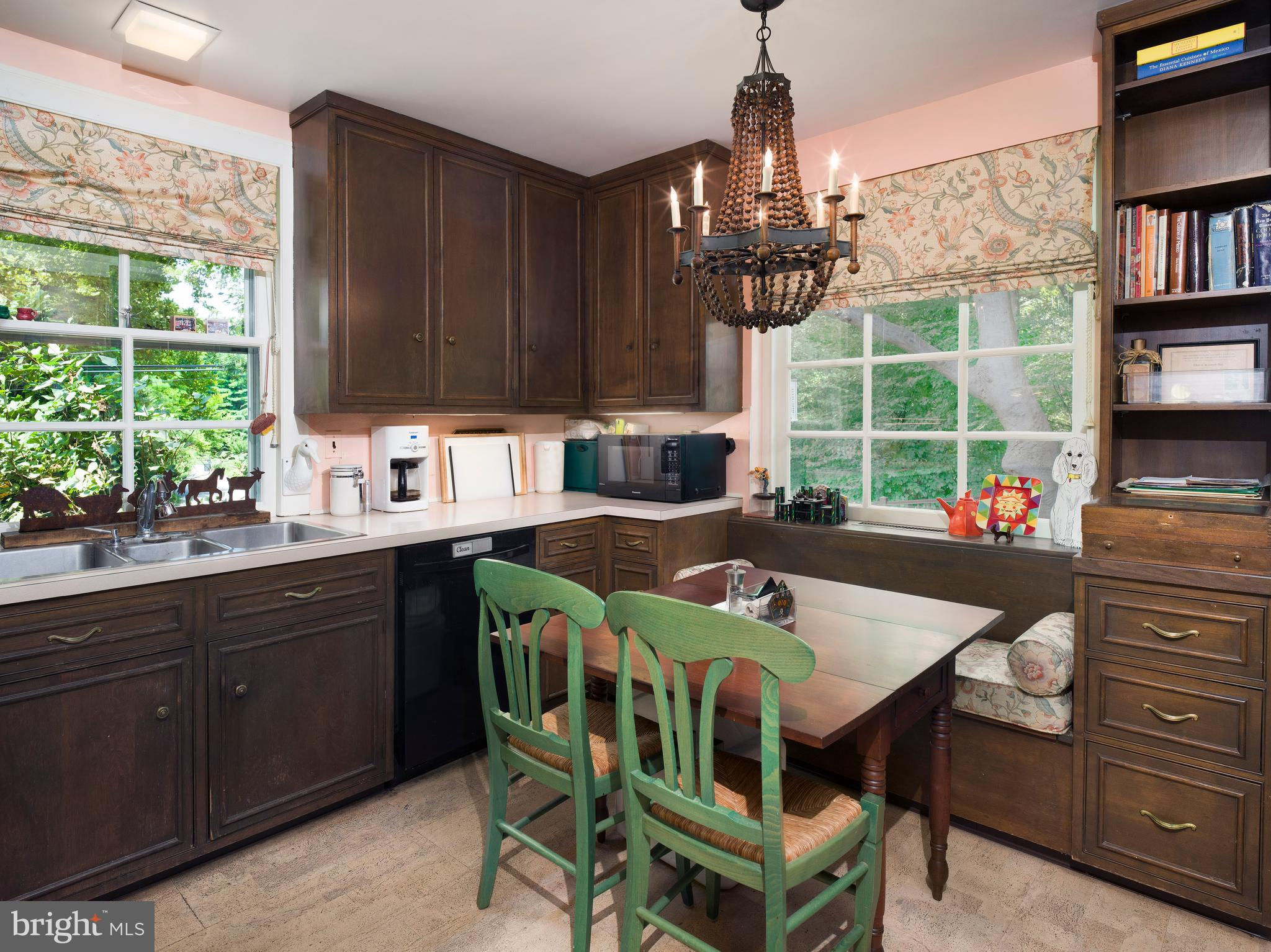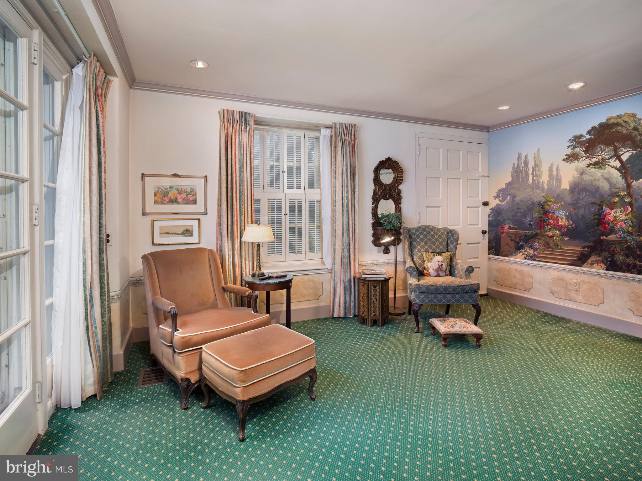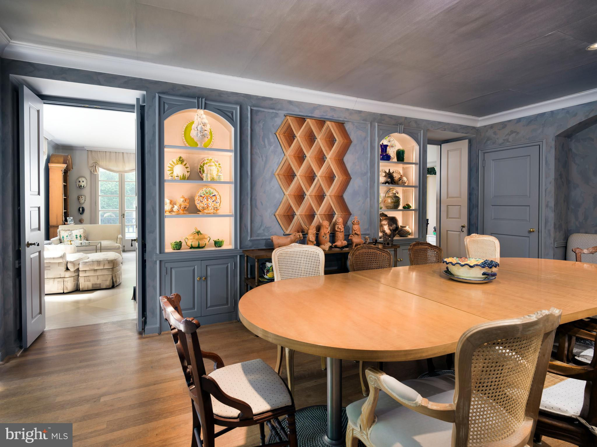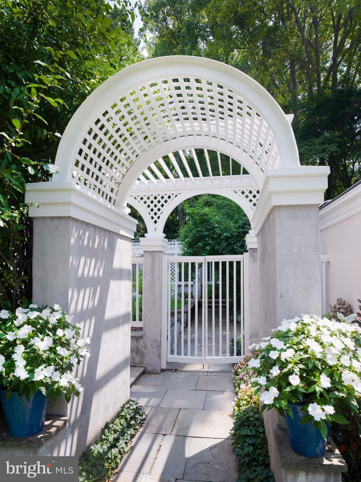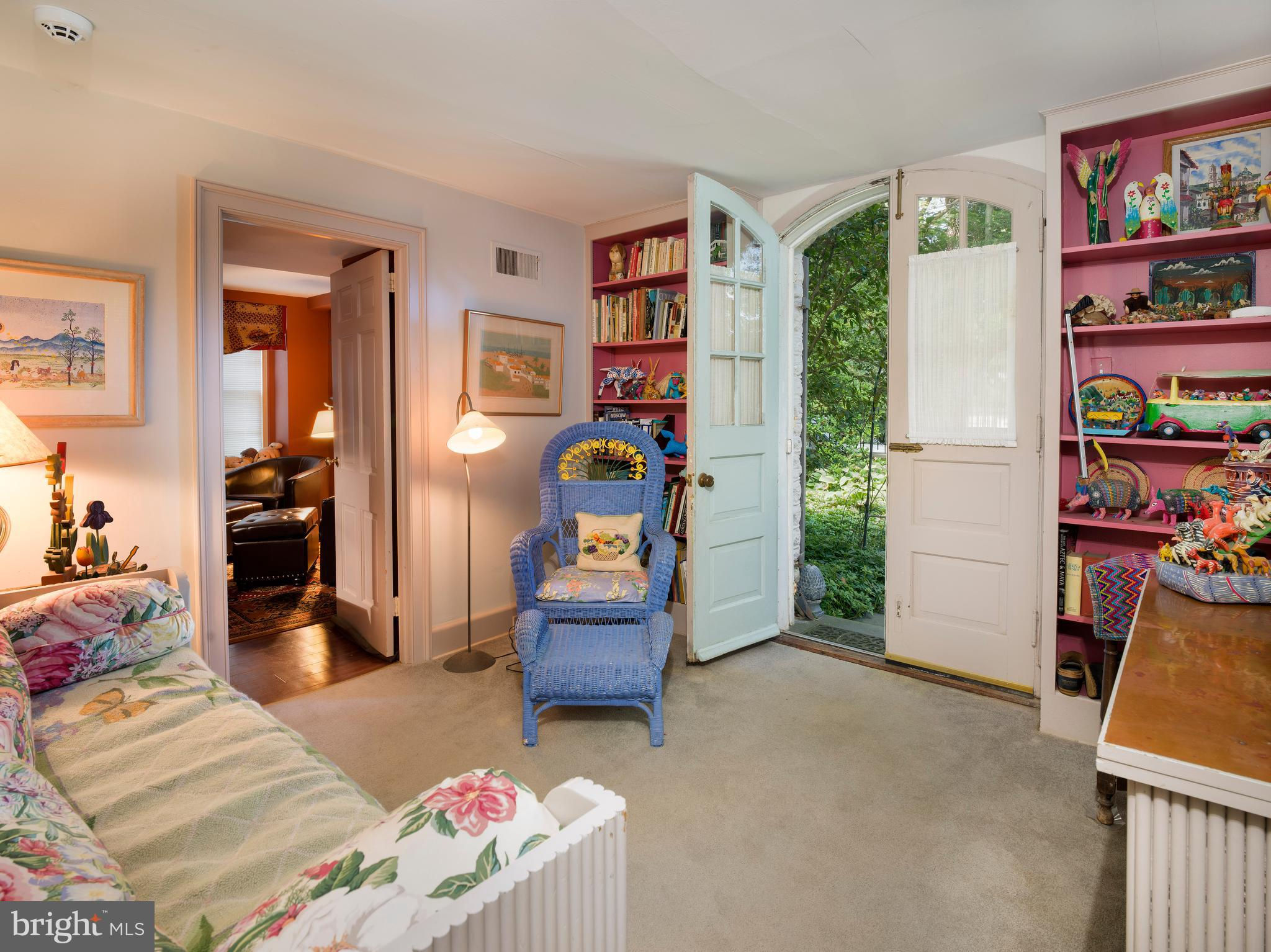 Welcome to this charming residence on Avon Road in Haverford, originally the gatehouse to the grand "Avonwood" estate. This historic property retains original entrance pillars and stone walls and is set amidst beautiful, serene surroundings on a quiet road with little through traffic. The painted stone home features a slate roof, flagstone walkways, and Belgian block details. Enter through the lattice arch and follow a trellis-covered flagstone walkway along a peaceful courtyard to the main entrance. The foyer, which boasts terra-cotta tiled flooring, offers a warm welcome and includes a staircase leading to the lower level. The bright, spacious living room has large windows with two exposures plus two sets of French doors that open to the courtyard. It also includes built-in display cabinetry, a large wood-burning fireplace, and captivating views of the grounds. An elegant dining room is accessible through two sets of tall doors from the living room and a swinging door from the kitchen. This large room features moldings, hardwood flooring, and built-in lighted display and storage cabinetry. The walls were hand-painted by PAFA artist Iwan Nazarewicz. Windows on two sides, including a wall of sliding glass doors, open to the rear flagstone terrace. A nearby den, with its cozy gas log fireplace, built-in bookcase and moldings, connects to both the living room and eat-in kitchen, and makes an ideal retreat for reading and relaxation. The kitchen, blending functionality with charm, features a cushioned window seat for casual dining, tall wood cabinetry, a triple stainless sink, bar sink, and appliances including a KitchenAid 4-burner gas cooktop with grill and double wall ovens. The primary bedroom, located on the first floor, has exquisite Zuber wallpaper and a hidden king-sized Murphy bed behind wall panels. French doors open to the courtyard and bring in natural light. The primary bath includes a vanity with double sinks and a shower with multiple side sprays. An adjacent small bedroom, which can also be used as a dressing room, has windows on two sides and three closets. A nearby powder room adds convenience and style. The lower level is daylit with walk-out access to the front walled garden’s roses and camellias. There is a bedroom suite with windows on two sides, a closet, and a full bathroom with a tub/shower, which is perfect for guests or as a separate living space. This level also includes a sitting room, a large storage closet, and a room that could serve as another bedroom or fitness area. It has bookcases and double doors to the front garden. A small utility/office area ends at a laundry room. The expansive rear grounds include a large flagstone terrace with stone knee walls, an ivy-covered wall, multiple flower gardens, and a wide stone staircase ascending to a meadow. From there a path leads through the woods to a back gate on Avonwood Road. A separate structure, inspired by the architecture of European orangeries, houses a stunning 50-foot indoor lap pool with a glass roof. Mature trees provide privacy, while a detached two-car garage has convenient French doors opening toward the home and courtyard. This property combines historic charm and modern expansions, set in a peaceful, private woodland. The fully fenced grounds include multiple gardens and sitting areas. The flexible floor plan of the home adapts to many lifestyles. This historic oasis on the Main Line is a private sanctuary for luxurious living, all within convenient walking distance to the Haverford and Bryn Mawr train stations.