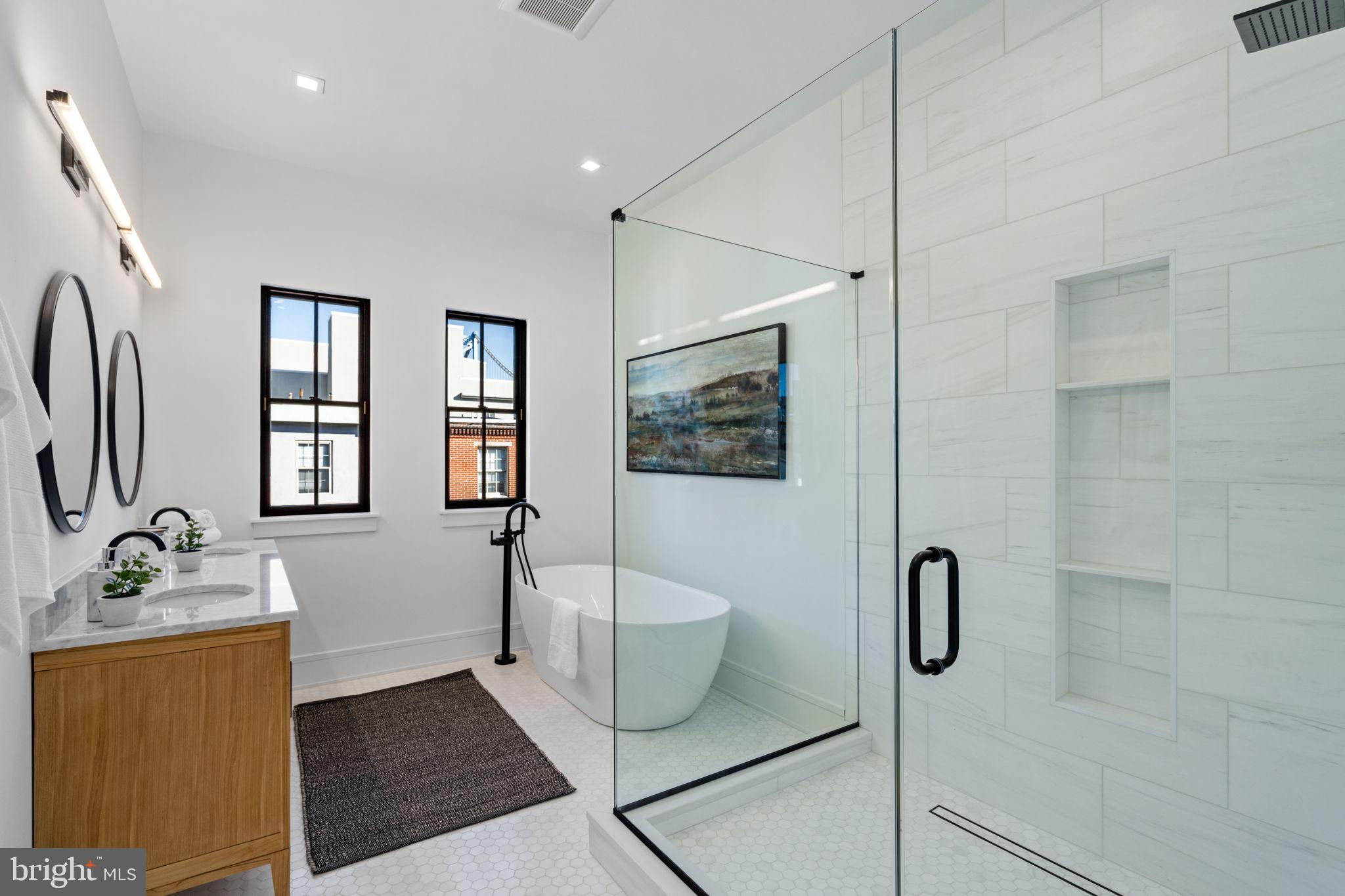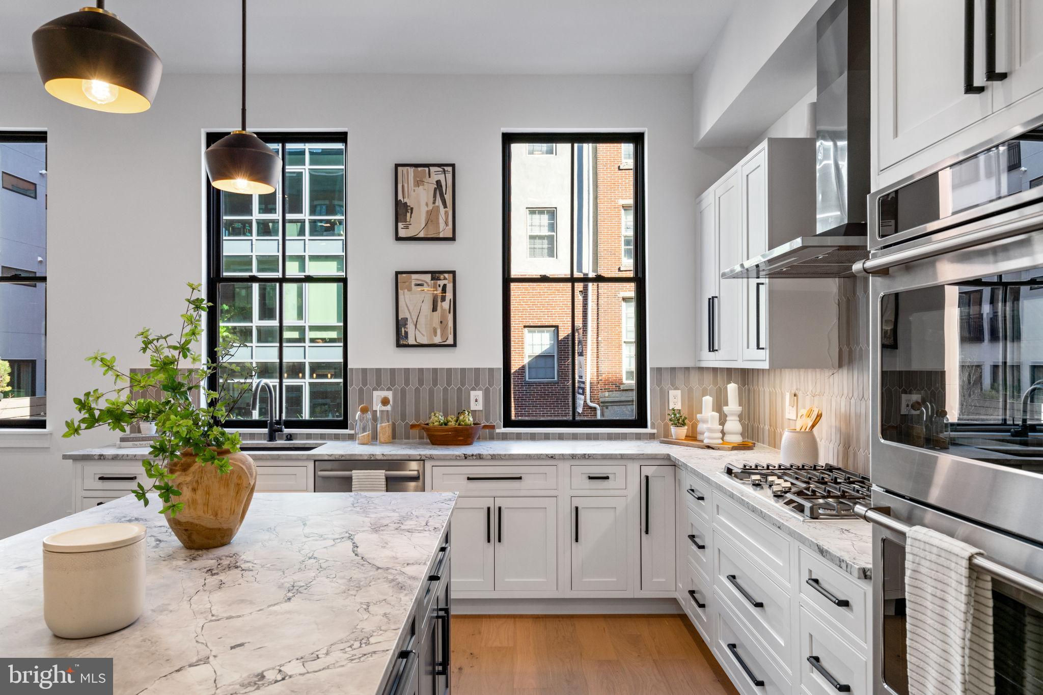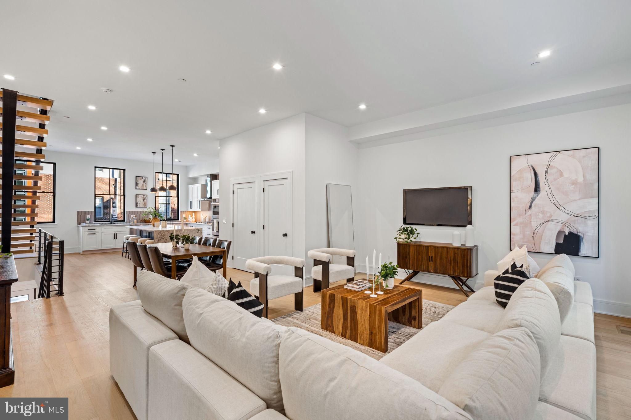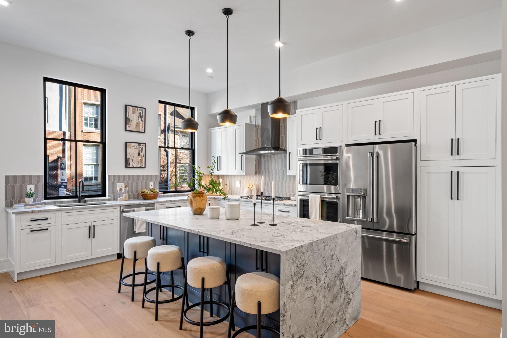 This development of 4-story luxury townhomes in Old City, delivering in Winter 2023, has 2 car attached garage parking, a gated drive aisle, 10 foot + ceiling heights, 3 private outdoor entertaining areas, and spectacular city skyline and bridge views from the roof deck. Located in the historic heart of Philadelphia, these homes feature beautiful brick facades paying homage to the surrounding colonial architecture! Enter the home onto the landing of the floating metal staircase with large Pella windows with striking black window frames that allow for light to pour in through the front of the home. The main floor kitchen features a Cafe' stainless steel appliance package with Bosh Dishwasher, quartzite countertops, custom tile backsplash, and high-end cabinetry. Continue on the main floor through the dining room and past the powder room into the living area complete with three sets of French doors that open up to the terrace. Go up the stairs to the second floor where you will find 2 large bedrooms, each with a full en-suite bathroom, and a laundry room complete with included front load washer and dryer units. The third-floor master suite is oversized and flooded with natural light and includes large custom outfitted walk-in closets, a five-piece bathroom with heated tile floors, a free-standing oval tub, huge walk-in shower with glass doors, body sprays, and handheld shower fixtures. Upstairs is the pilot house with a double roof deck, each side with 360 degree views of Old City, the Benjamin Franklin bridge, and Philly skyline. The basement of the home has a full bathroom , 10’ ceilings, and could serve as a perfect office space, kids play room, or guest bedroom. These homes have multi-zone heating and A/C systems as well as smart technology such as a Ring doorbell camera, Nest thermostats, and Schlage keyless entry smartlock. The home is complete with fully finished basement with heated floors throughout and can be an addition office space, kids playroom, movie theater or extra bedroom. This home is uniquely located next to Northern Liberties and just steps away from the river waterfront. You can walk down to the pier to enjoy the calm waters of the river and take a walk on the Benjamin Franklin Bridge and see great city skyline views. Easy access to I-95, shopping, restaurants, coffee shops and within the McCall Elementary School catchment. Each home comes with a Ten Year Real Estate Tax Abatement Under Councilmanic Ordinance 1456-A, Section 19-1303.4 of the Philadelphia Code, and a 1 yr builders warranty. **Taxes and Square Footage are to be independently verified by the buyer and their agent. **