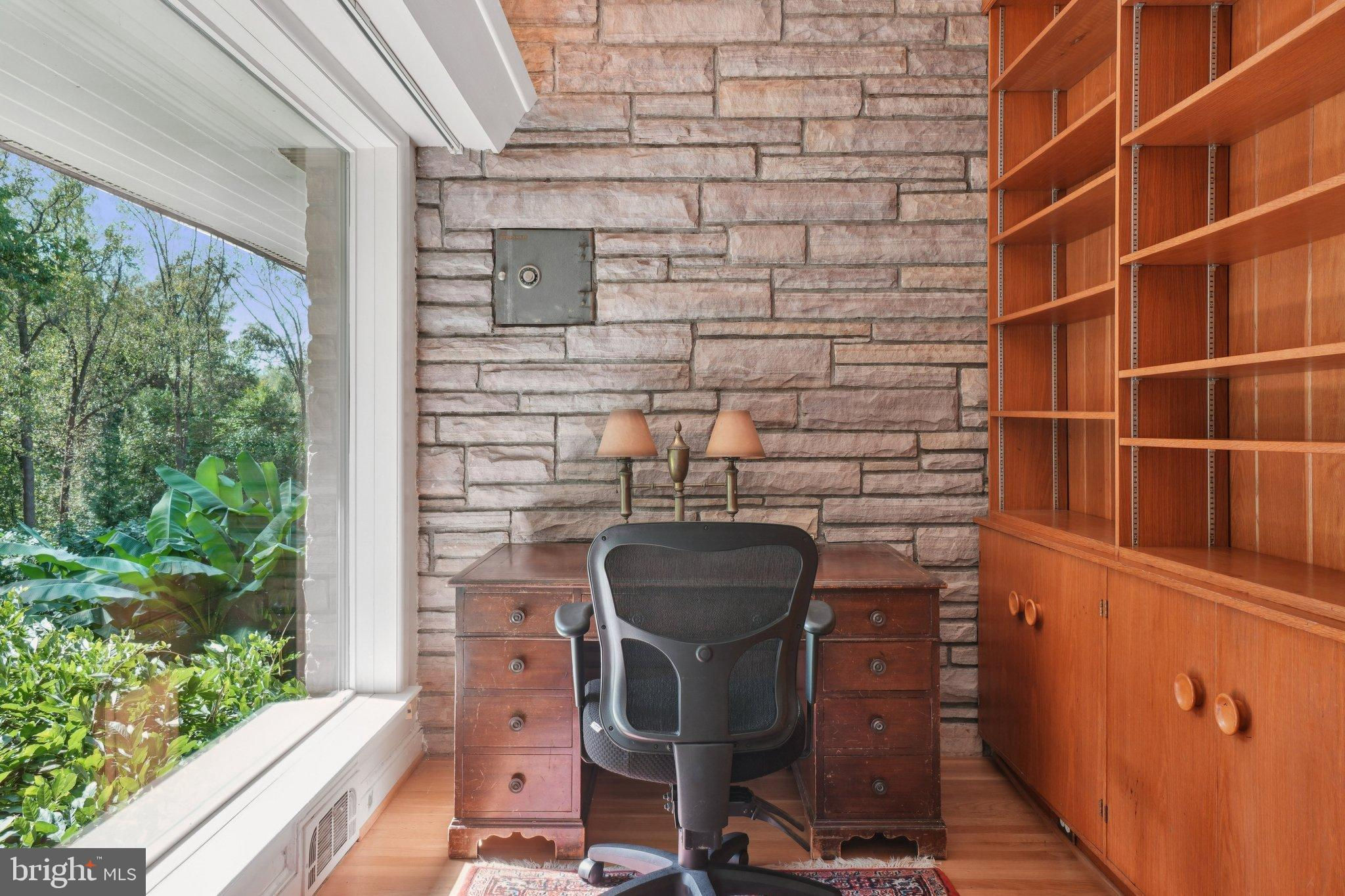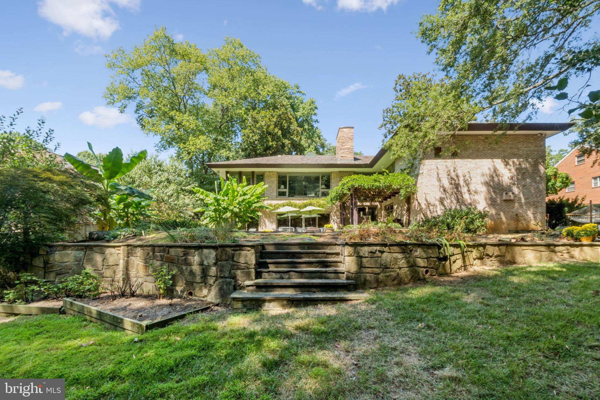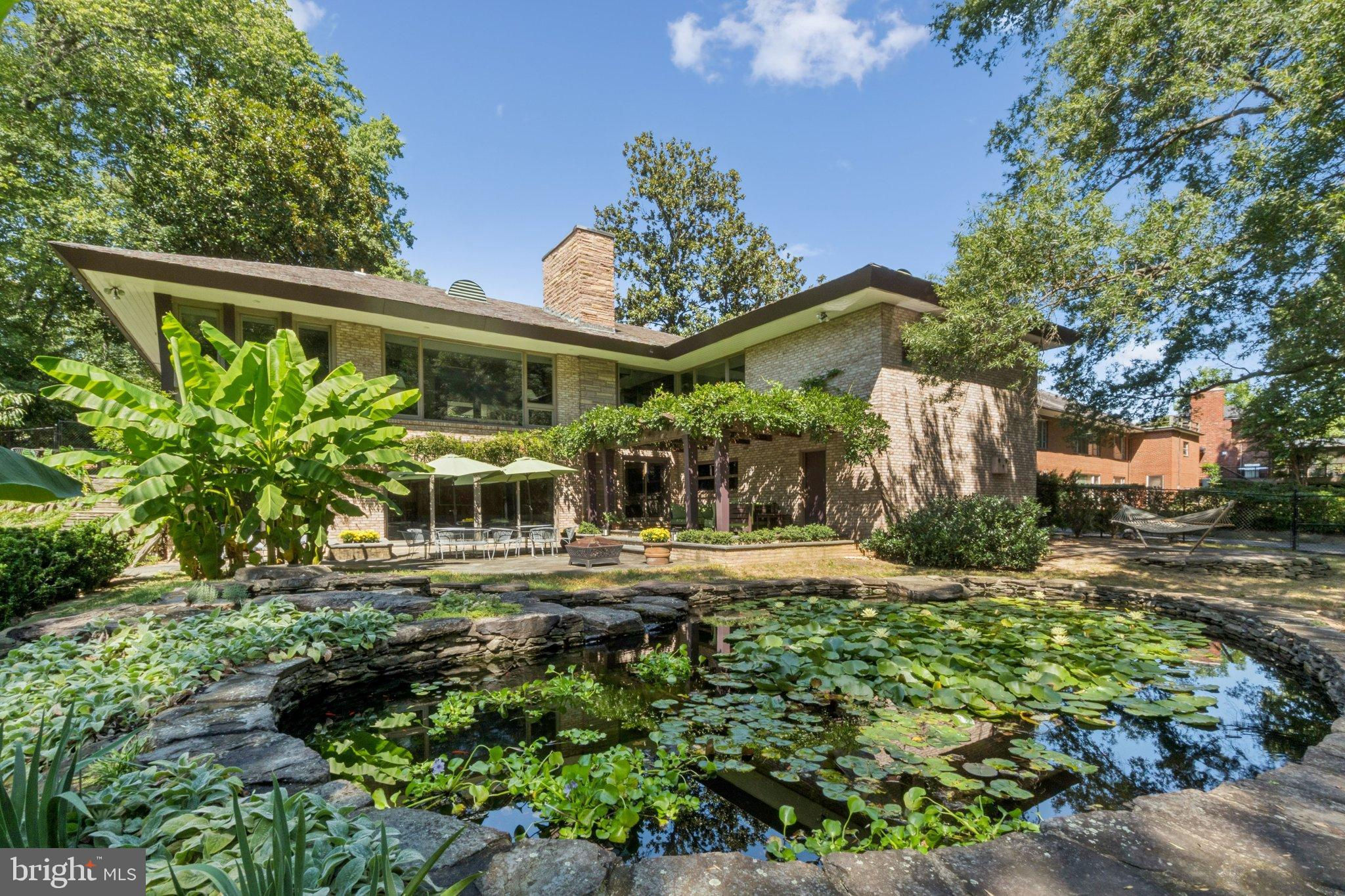 Welcome to this stunning 4-bedroom, 3.5-bathroom Mid-Century Modern residence nestled in the highly sought-after Riverwood neighborhood of North Arlington, 3 miles and one stoplight from Washington, D.C. This architectural gem with expansive windows sits on a vast 1.362-acre lot and offers a unique sanctuary where design and nature converge. Designed by John S. Samperton, an apprentice to Frank Lloyd Wright, it stands high above the rock cliffs of the Windy Run waterfall trail, offering a private path to the park and 180-degree forest views. Also nearby is the Custis bike trail. House Features & Tranquil Outdoors The home is a testament to seamless integration with nature. Lush Backyard & Integration: The expansive property feels like a secluded retreat. Open your windows to the gentle cascade of your own personal waterfall feeding a large, natural stacked stone pond with waterlilies, extending into gardens and forest. Enjoy outdoor living on the two-level rear bluestone patio, grilling patio, or under the Wisteria-covered pergola. The property adjoins Windy Run Park and extends into the Chesapeake Bay Preservation area, ensuring unrivaled privacy. Luxury Interior Amenities: Thoughtful Materials: Features include unique cork flooring, solid walnut cabinetry, cypress wood walls and beautiful oak flooring, consistent with the architect’s vision. Kitchen & Dining: The gourmet kitchen (updated in 2006) retains its character with an original mid-century stainless steel range hood and a classic George Nelson Ball Clock. Ambiance & Warmth: Two wood-burning fireplaces with striking stacked stone Prairie Style Masonry walls serve as focal points. Open Design: Enjoy an open plan with high ceilings and vast window walls. Integrated Living: The former screened porch was fully renovated in 2006 into an interior sunroom. Premium Detailing: Includes Pella windows, full attic insulation, and updates to the electrical system, foundation, and drainage (2006). Architectural Design: A Frank Lloyd Wright Legacy ️ Samperton’s design is deeply inspired by Wright’s Prairie Style, perfectly harmonizing the home with its environment. Echoing Nature: The design masterfully brings nature inside. Cantilevered piers visually echo the tall trees, while the immense Prairie Style Masonry walls at the center make the structure feel built directly against the cliff face. Light Control: The sweeping overhang of the eaves and slate roof is ingeniously designed to provide cool shade in summer yet flood the rooms with warm sunshine in winter. Atmospheric Lighting: Calming cove lighting mimics sun filtering through the forest leaves. Distinctive Details: The home features signature angles, cantilevered pier columns, and masonry detailing. Original architectural drawings are available to the new owner, connecting them to the home's distinguished lineage. Garages & Exterior Notes An attached oversized two-car garage provides secure parking and storage. There is also a detached one-car garage (sold as-is) and dedicated outdoor parking spaces. The exterior features Prairie Style masonry planter boxes. This is a rare opportunity to own a piece of architectural history in a coveted, scenic location. Pre-offer inspections are welcomed and encouraged. Please see the Documents section for age of system and 2 as-is items.