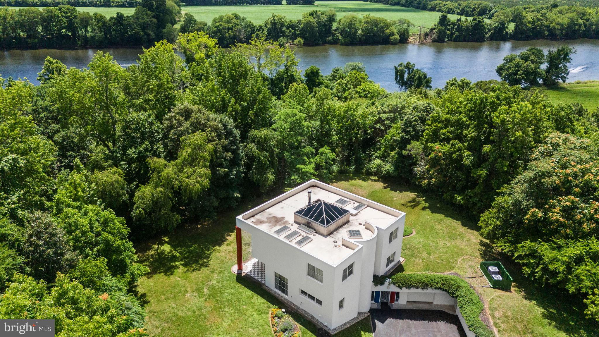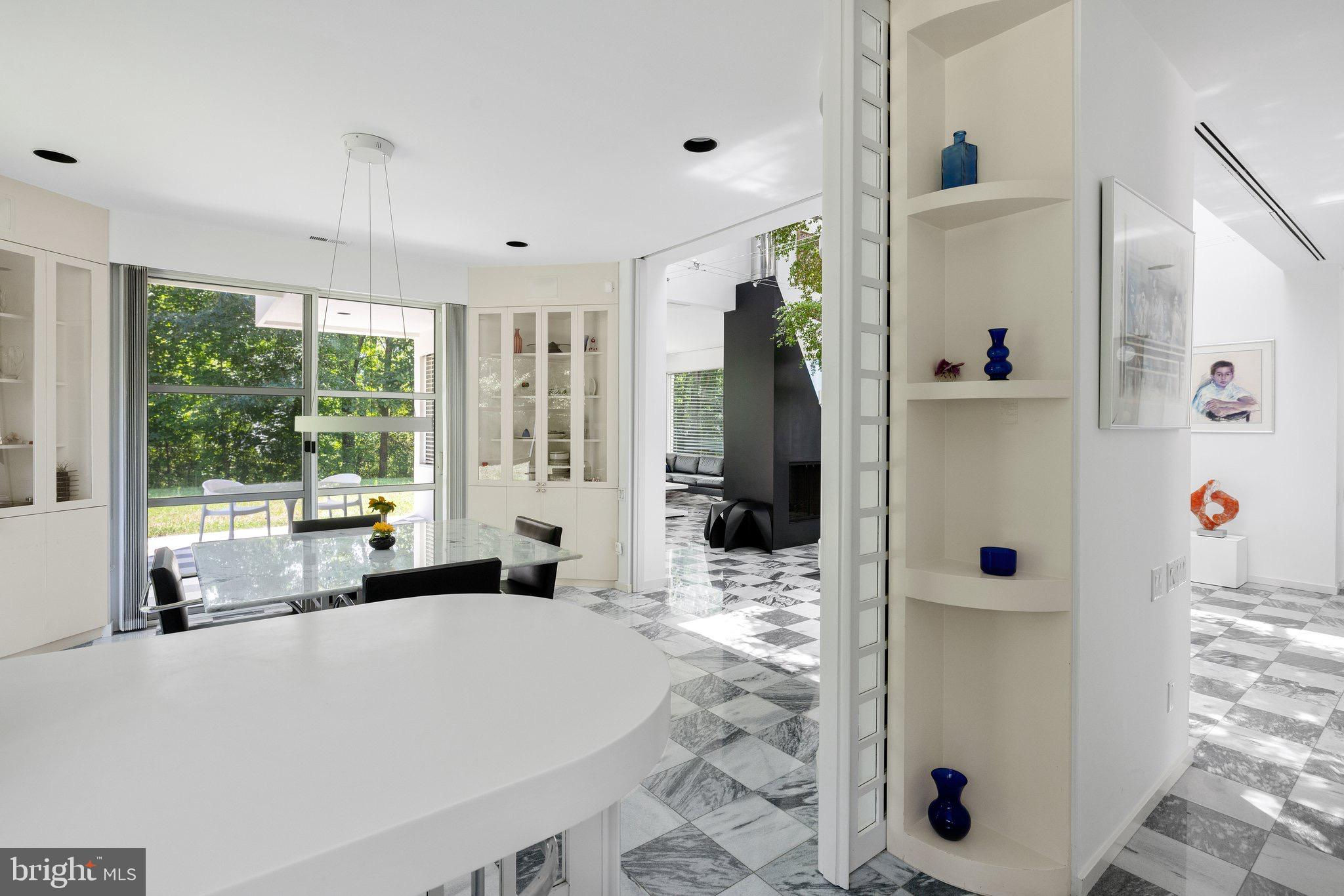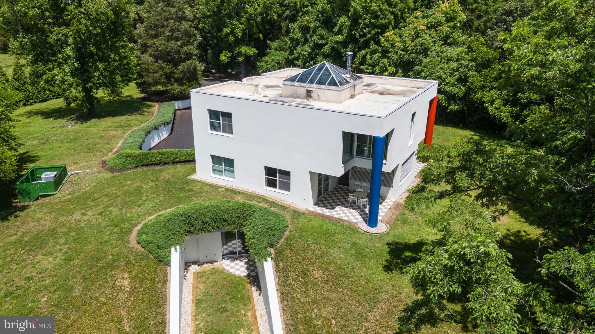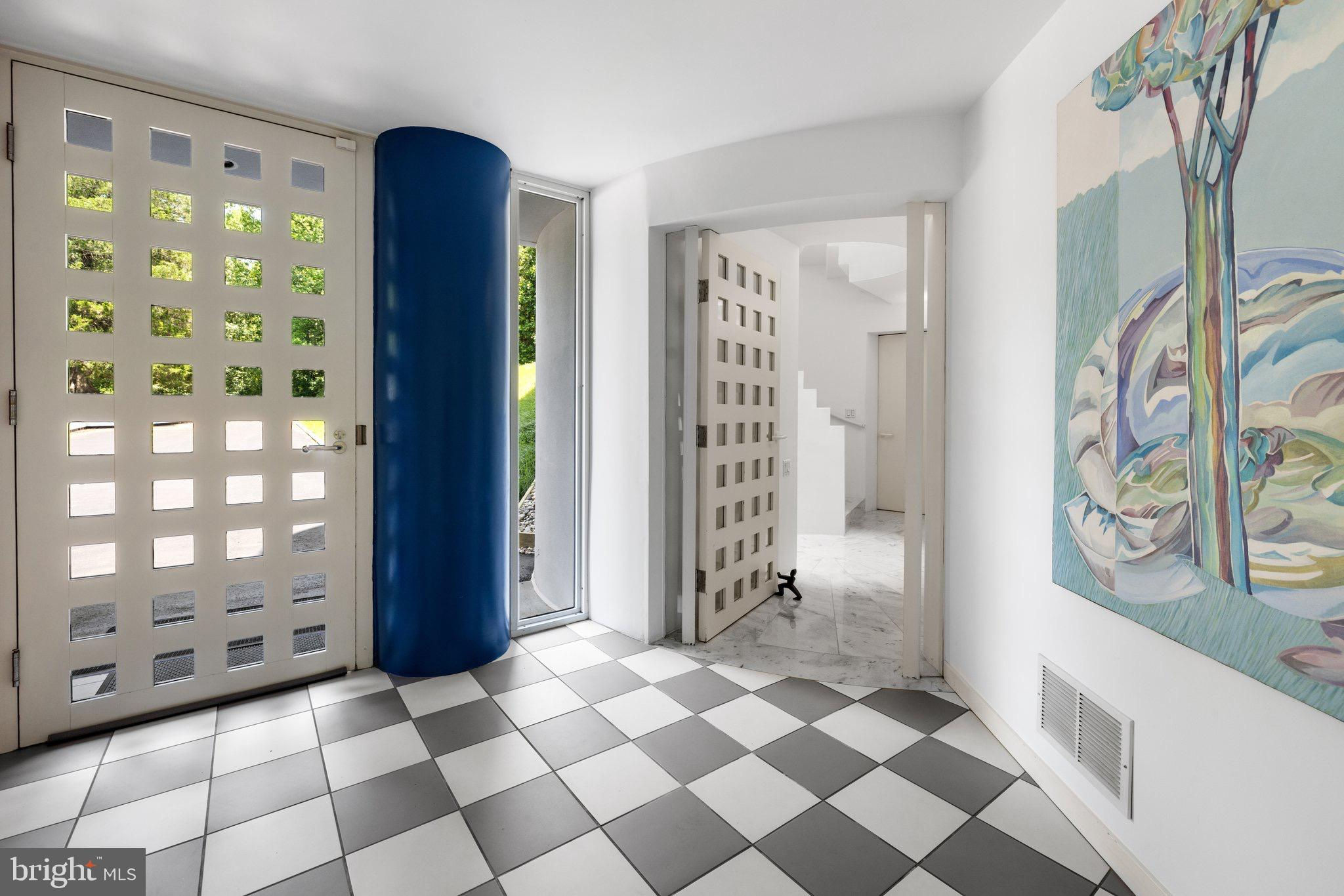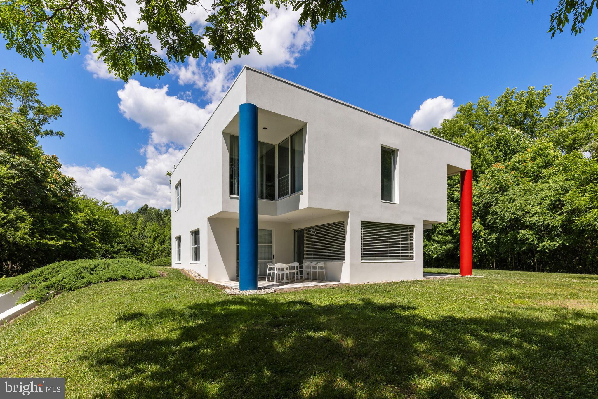 Price Reduced--A rare opportunity to own a custom, contemporary-international style home in the coveted Pembroke neighborhood along the River Road corridor awaits. This home features large picture windows in all but two spaces in the home, bathing the interiors in light throughout the day and the night. Built w/ cutting-edge sustainable techniques at the time, the home remains energy-efficient and features a rooftop greenspace above the garage. Upon entering the marbled foyer, discover the first of 5 BRs, complete w/ an ensuite bath, built-in Murphy bed, and sliding glass doors that open to the outdoors, offering flexible use. To the left, the striking spiral staircase, crafted as a single piece of steel and poured concrete, is bathed in natural light from above. On the main level, marbled flooring in a gray & white checkerboard gives a formal finish to the open space. A 2-story sky-lit atrium anchors the 4 living spaces that flow freely into one another. Just beyond the double-sided fireplace, the LR is tucked in a square bay flanked by large windows. The kitchen and DR are stunningly simple and efficiently designed to serve their purposes. A home office w/ custom cabinetry connects seamlessly to a sitting room, also outfitted w/ custom built-in shelving. Glass and wood grid-patterned pocket doors can be utilized to separate the spaces. Following the natural light, the terrace off the dining area faces east, while the terrace off the LR faces west and is perfect for sunset entertaining. Follow the spiral staircase up to find 4 BRs, each w/ an ensuite bath. The primary suite features a wall of mirrored closet doors to reflect the westward facing view. A guest room features a built-in Murphy bed for flexibility to be used as an upstairs den if desired. Set on nearly 4 acres, this property offers unparalleled privacy, while still being part of a vibrant community with views and access to the James River. Don't miss this opportunity to own a truly unique and enduring property that brings intention and functionality together.