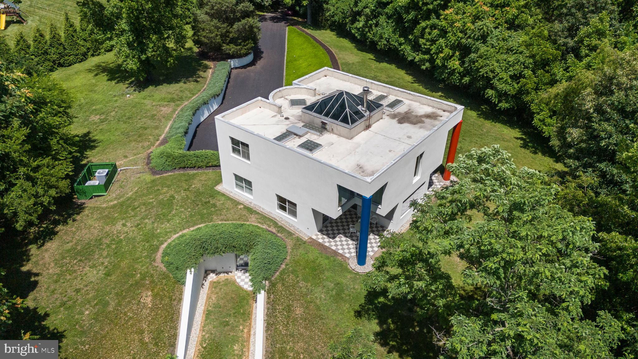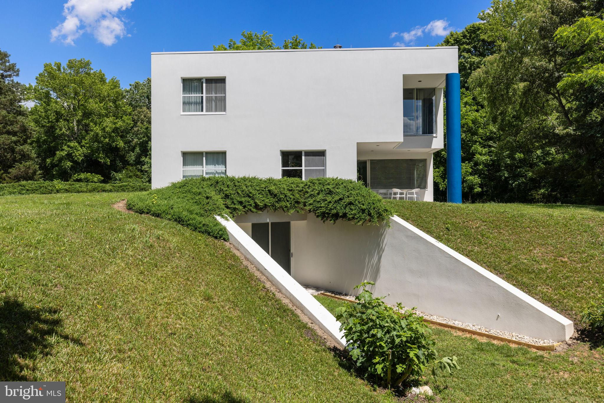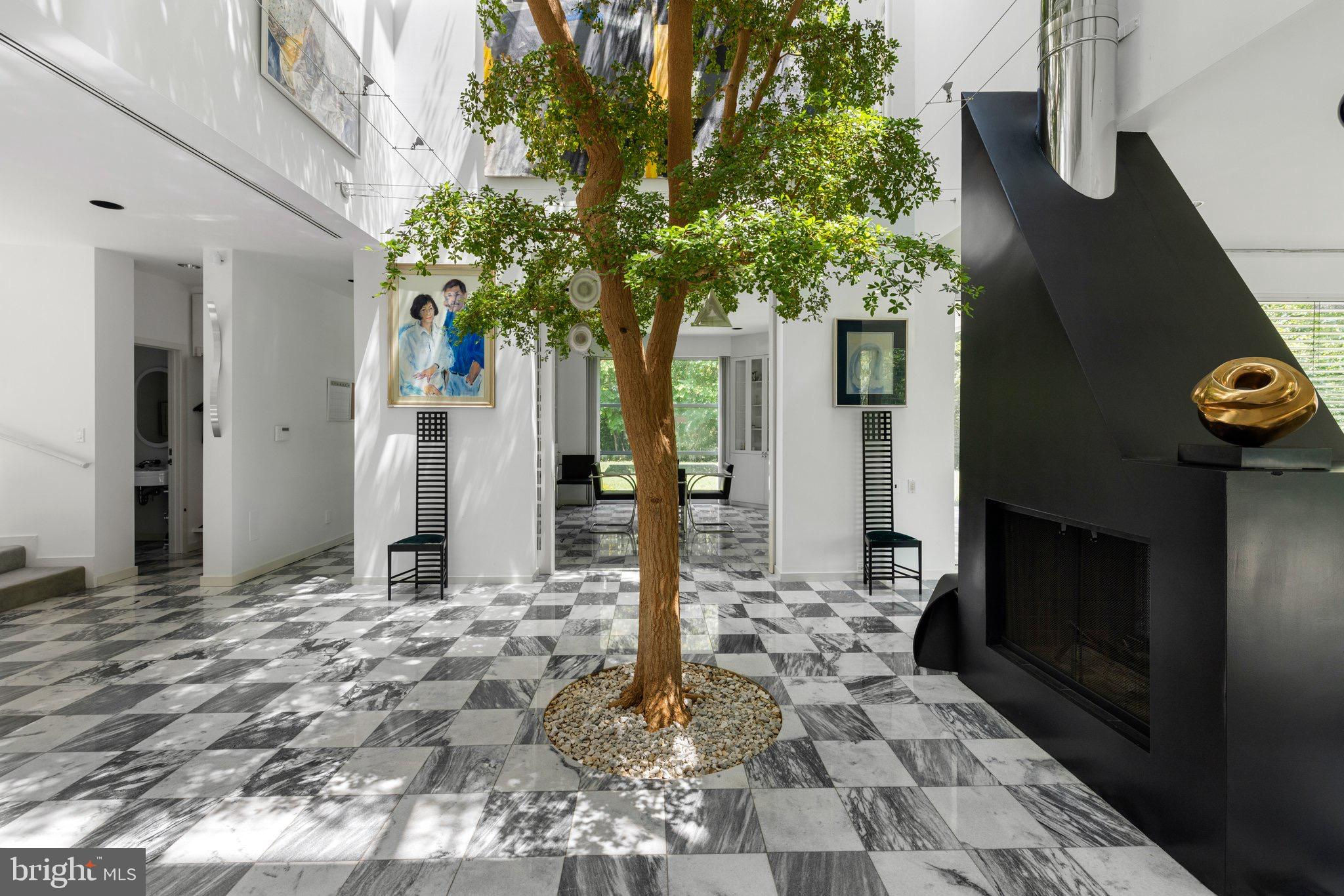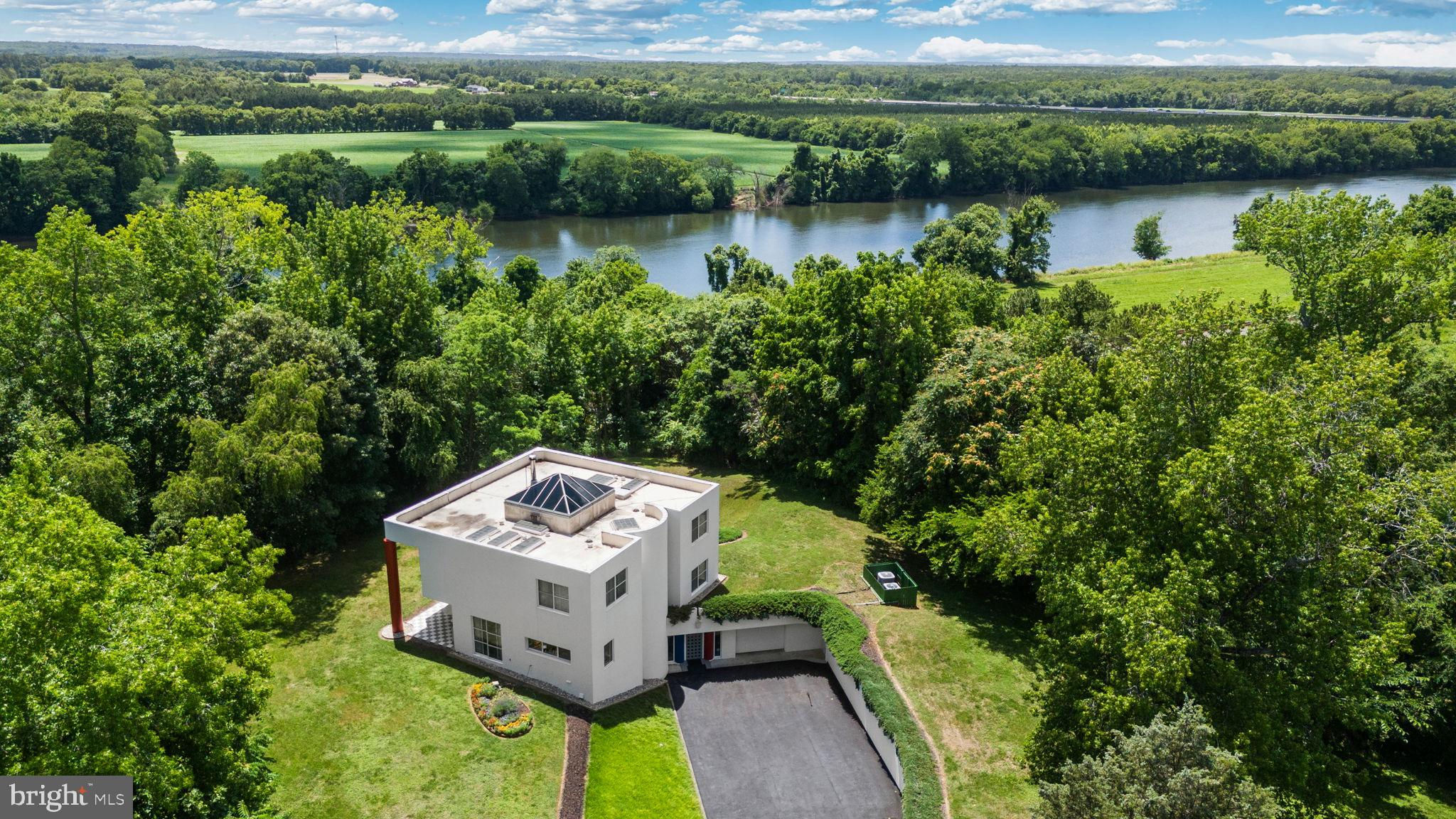 Price Reduced--A rare opportunity to own a custom, contemporary-international style home in the coveted Pembroke neighborhood along the River Road corridor awaits. This home features large picture windows in all but two spaces in the home, bathing the interiors in light throughout the day and the night. Built w/ cutting-edge sustainable techniques at the time, the home remains energy-efficient and features a rooftop greenspace above the garage. Upon entering the marbled foyer, discover the first of 5 BRs, complete w/ an ensuite bath, built-in Murphy bed, and sliding glass doors that open to the outdoors, offering flexible use. To the left, the striking spiral staircase, crafted as a single piece of steel and poured concrete, is bathed in natural light from above. On the main level, marbled flooring in a gray & white checkerboard gives a formal finish to the open space. A 2-story sky-lit atrium anchors the 4 living spaces that flow freely into one another. Just beyond the double-sided fireplace, the LR is tucked in a square bay flanked by large windows. The kitchen and DR are stunningly simple and efficiently designed to serve their purposes. A home office w/ custom cabinetry connects seamlessly to a sitting room, also outfitted w/ custom built-in shelving. Glass and wood grid-patterned pocket doors can be utilized to separate the spaces. Following the natural light, the terrace off the dining area faces east, while the terrace off the LR faces west and is perfect for sunset entertaining. Follow the spiral staircase up to find 4 BRs, each w/ an ensuite bath. The primary suite features a wall of mirrored closet doors to reflect the westward facing view. A guest room features a built-in Murphy bed for flexibility to be used as an upstairs den if desired. Set on nearly 4 acres, this property offers unparalleled privacy, while still being part of a vibrant community with views and access to the James River. Don't miss this opportunity to own a truly unique and enduring property that brings intention and functionality together.