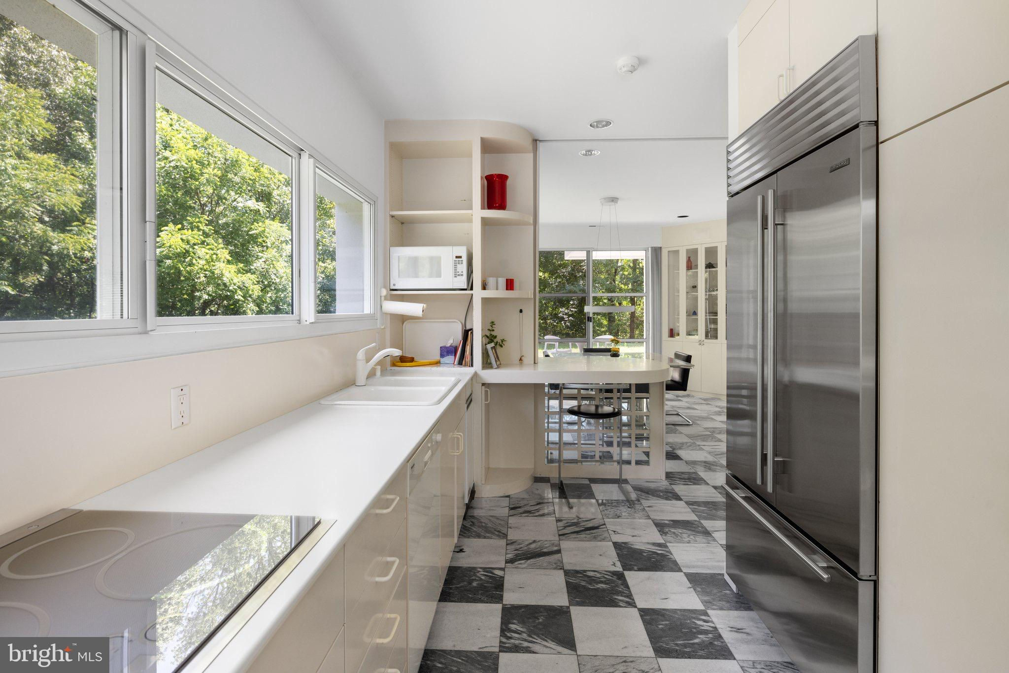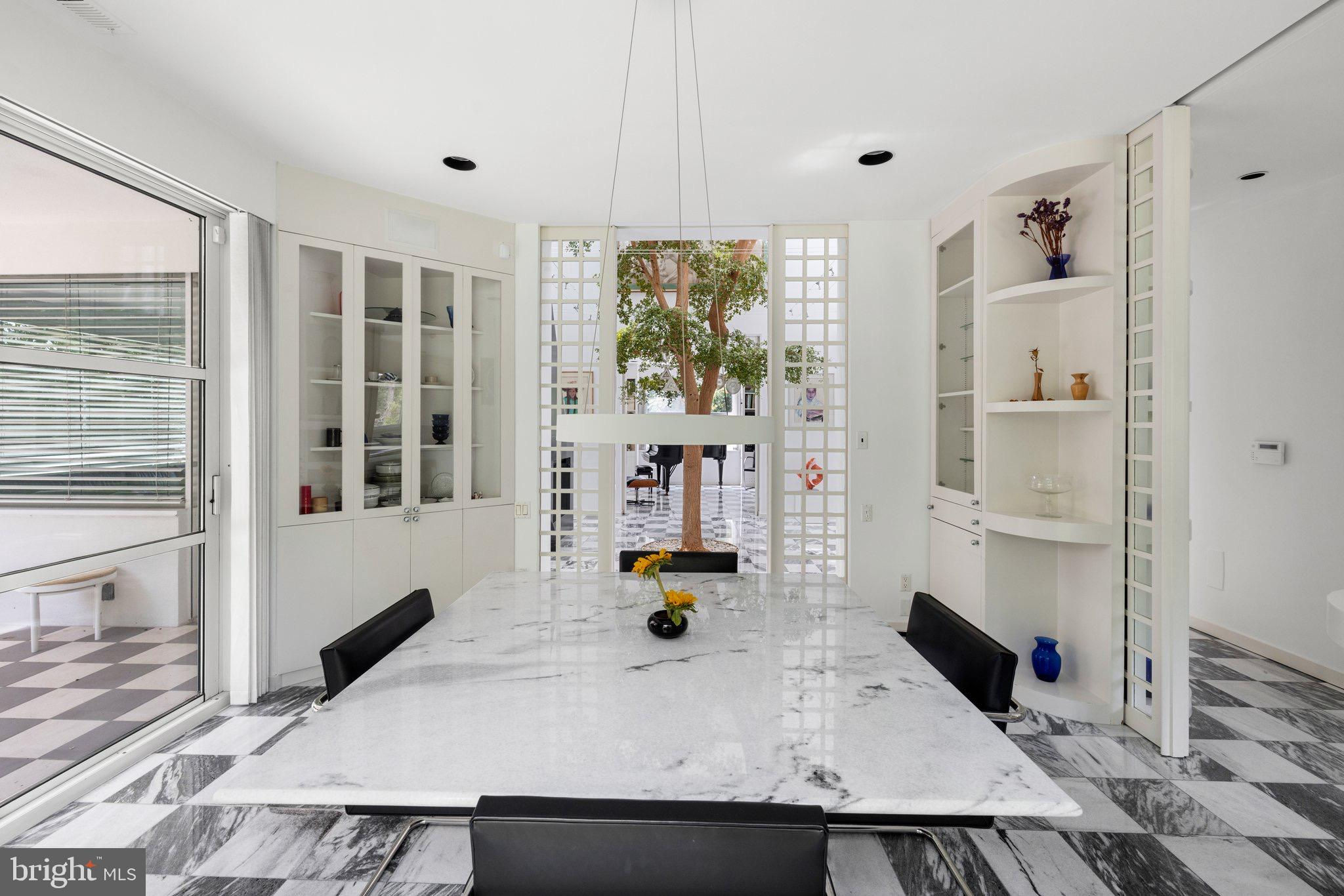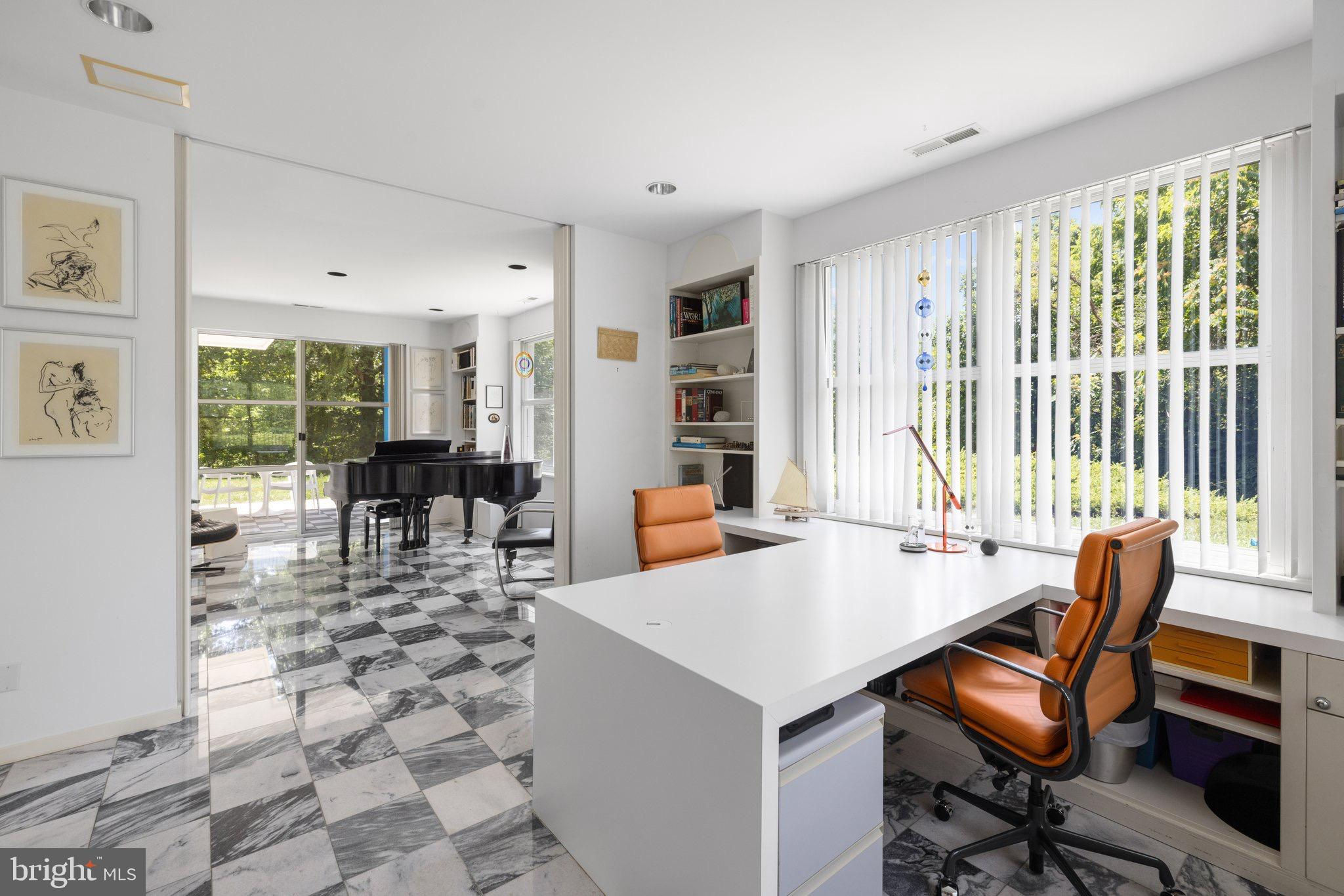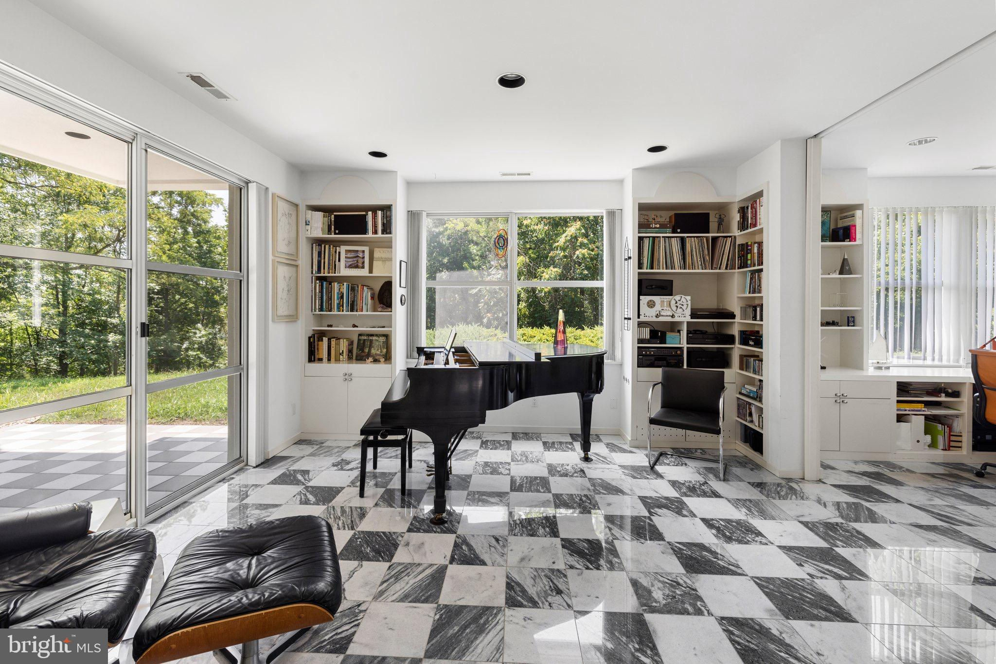 Price Reduced--A rare opportunity to own a custom, contemporary-international style home in the coveted Pembroke neighborhood along the River Road corridor awaits. This home features large picture windows in all but two spaces in the home, bathing the interiors in light throughout the day and the night. Built w/ cutting-edge sustainable techniques at the time, the home remains energy-efficient and features a rooftop greenspace above the garage. Upon entering the marbled foyer, discover the first of 5 BRs, complete w/ an ensuite bath, built-in Murphy bed, and sliding glass doors that open to the outdoors, offering flexible use. To the left, the striking spiral staircase, crafted as a single piece of steel and poured concrete, is bathed in natural light from above. On the main level, marbled flooring in a gray & white checkerboard gives a formal finish to the open space. A 2-story sky-lit atrium anchors the 4 living spaces that flow freely into one another. Just beyond the double-sided fireplace, the LR is tucked in a square bay flanked by large windows. The kitchen and DR are stunningly simple and efficiently designed to serve their purposes. A home office w/ custom cabinetry connects seamlessly to a sitting room, also outfitted w/ custom built-in shelving. Glass and wood grid-patterned pocket doors can be utilized to separate the spaces. Following the natural light, the terrace off the dining area faces east, while the terrace off the LR faces west and is perfect for sunset entertaining. Follow the spiral staircase up to find 4 BRs, each w/ an ensuite bath. The primary suite features a wall of mirrored closet doors to reflect the westward facing view. A guest room features a built-in Murphy bed for flexibility to be used as an upstairs den if desired. Set on nearly 4 acres, this property offers unparalleled privacy, while still being part of a vibrant community with views and access to the James River. Don't miss this opportunity to own a truly unique and enduring property that brings intention and functionality together.