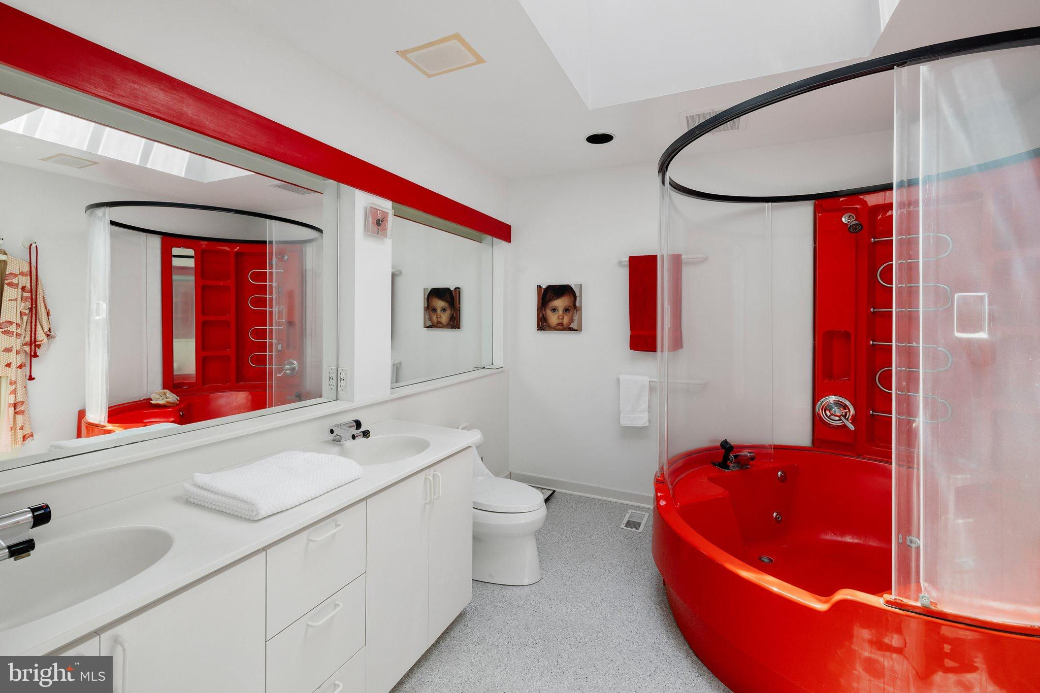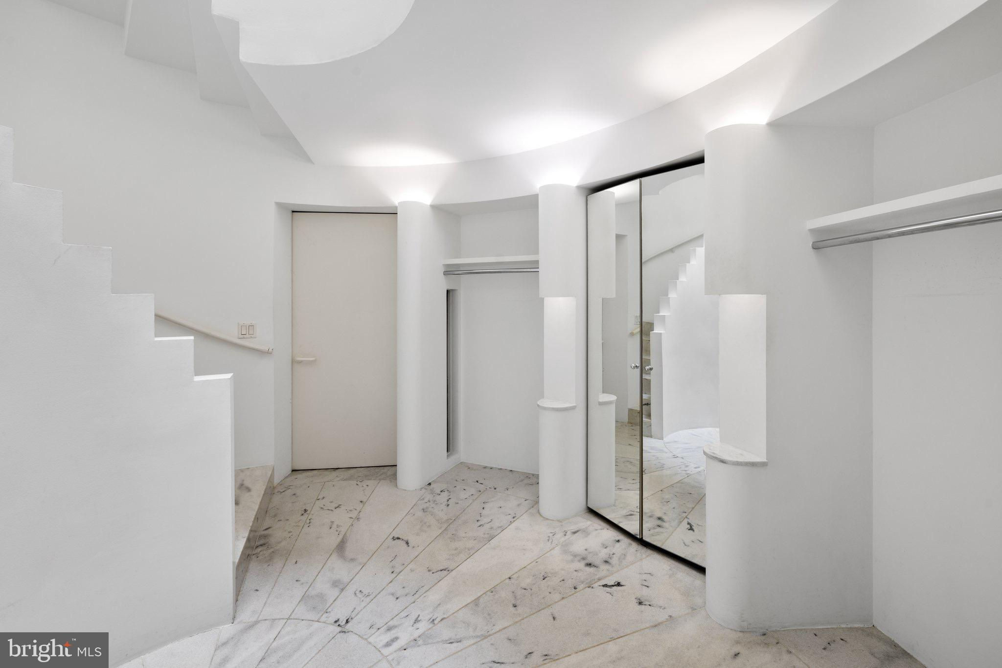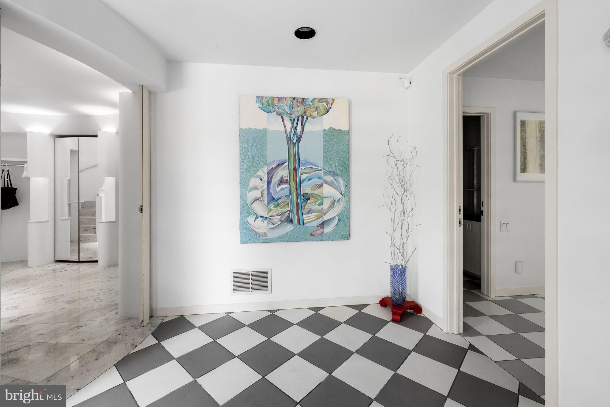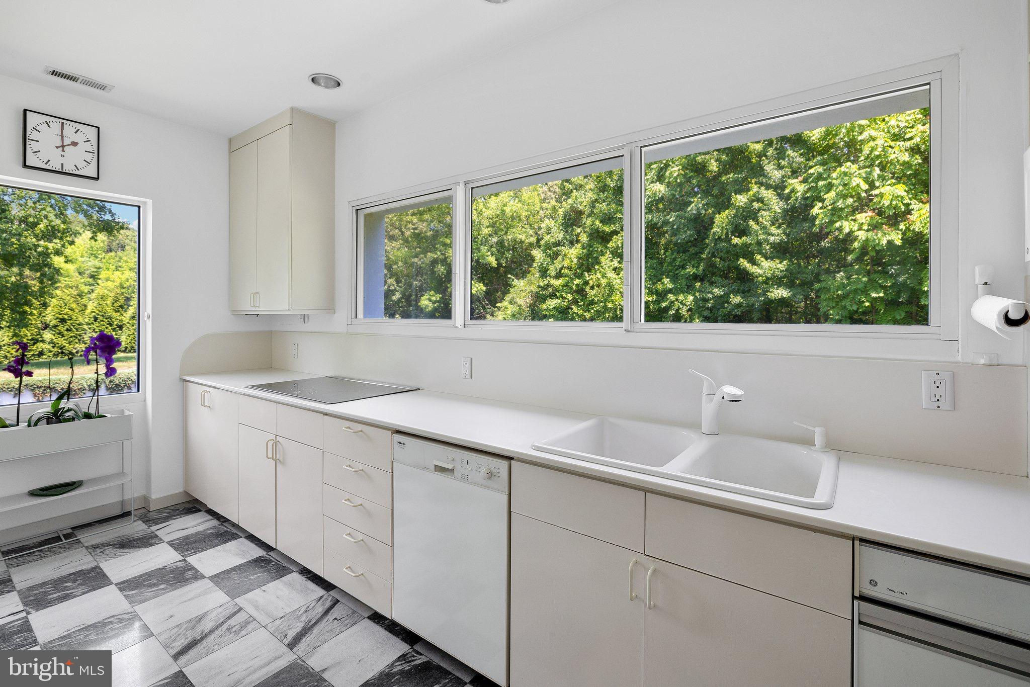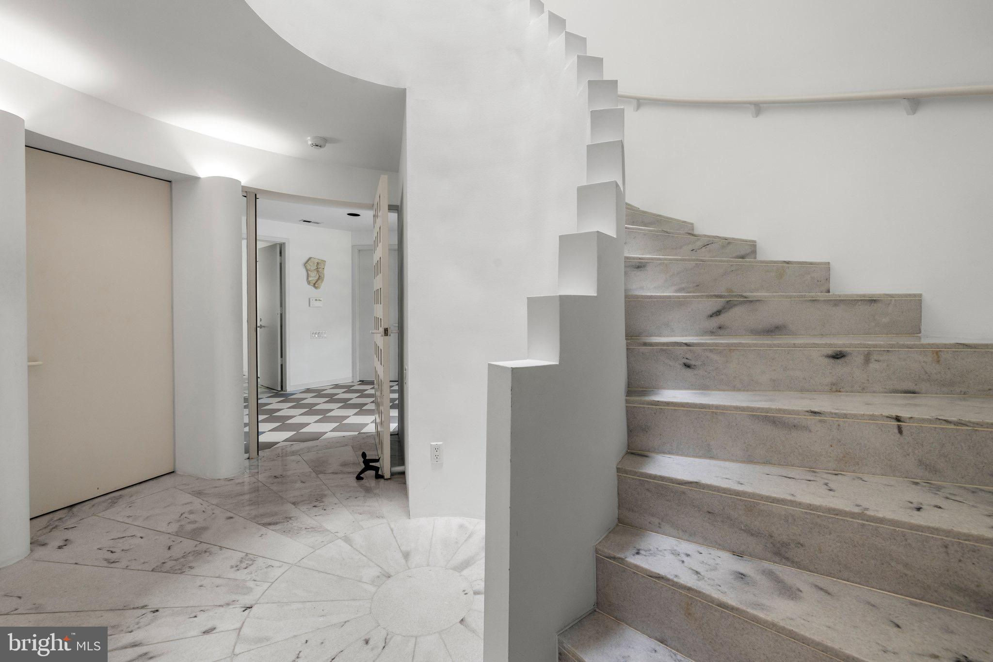 Price Reduced--A rare opportunity to own a custom, contemporary-international style home in the coveted Pembroke neighborhood along the River Road corridor awaits. This home features large picture windows in all but two spaces in the home, bathing the interiors in light throughout the day and the night. Built w/ cutting-edge sustainable techniques at the time, the home remains energy-efficient and features a rooftop greenspace above the garage. Upon entering the marbled foyer, discover the first of 5 BRs, complete w/ an ensuite bath, built-in Murphy bed, and sliding glass doors that open to the outdoors, offering flexible use. To the left, the striking spiral staircase, crafted as a single piece of steel and poured concrete, is bathed in natural light from above. On the main level, marbled flooring in a gray & white checkerboard gives a formal finish to the open space. A 2-story sky-lit atrium anchors the 4 living spaces that flow freely into one another. Just beyond the double-sided fireplace, the LR is tucked in a square bay flanked by large windows. The kitchen and DR are stunningly simple and efficiently designed to serve their purposes. A home office w/ custom cabinetry connects seamlessly to a sitting room, also outfitted w/ custom built-in shelving. Glass and wood grid-patterned pocket doors can be utilized to separate the spaces. Following the natural light, the terrace off the dining area faces east, while the terrace off the LR faces west and is perfect for sunset entertaining. Follow the spiral staircase up to find 4 BRs, each w/ an ensuite bath. The primary suite features a wall of mirrored closet doors to reflect the westward facing view. A guest room features a built-in Murphy bed for flexibility to be used as an upstairs den if desired. Set on nearly 4 acres, this property offers unparalleled privacy, while still being part of a vibrant community with views and access to the James River. Don't miss this opportunity to own a truly unique and enduring property that brings intention and functionality together.