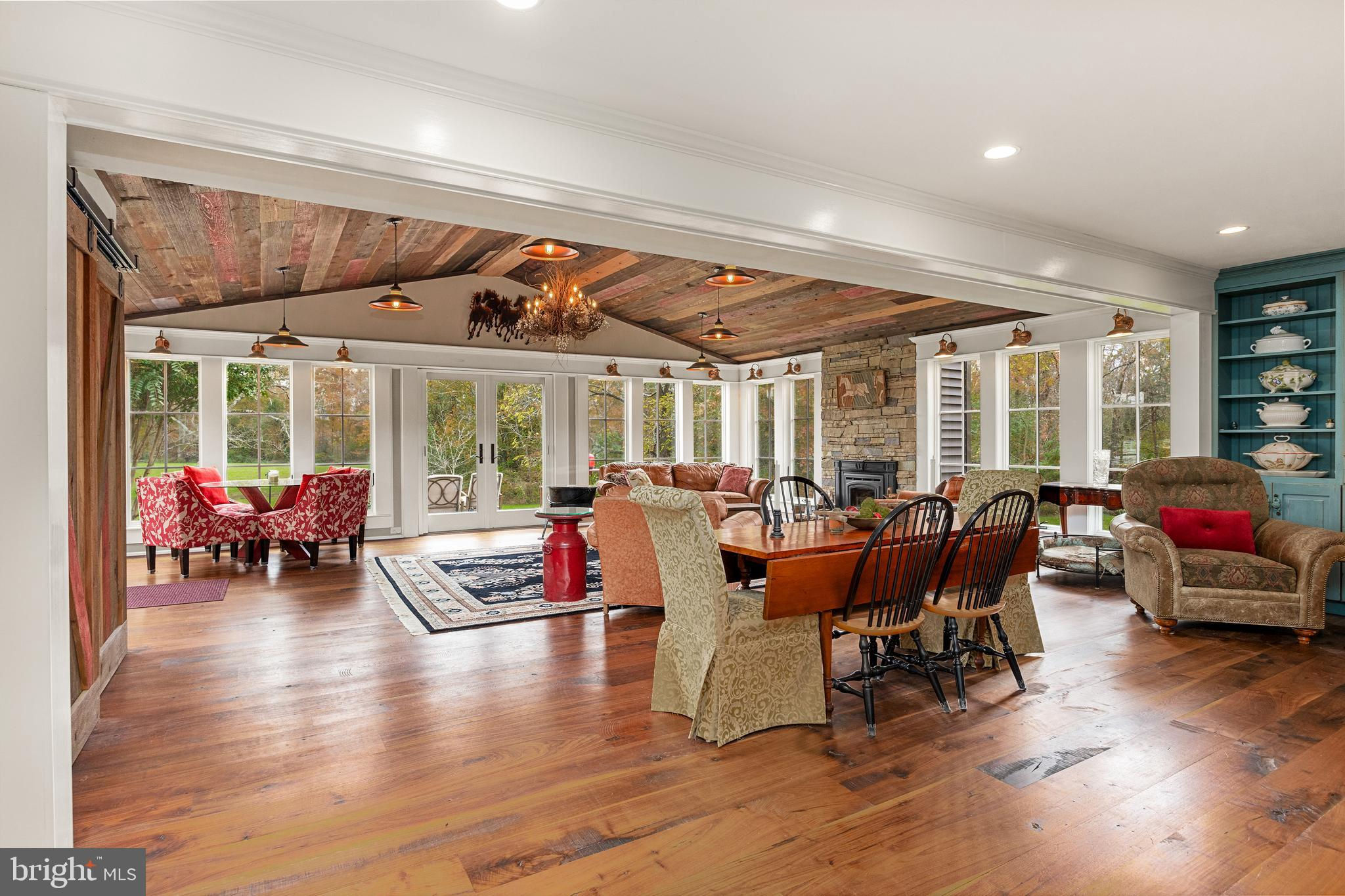 Here you will find a property that is an excellent location for someone desiring privacy, space, and the benefit of having a location that is multi-functional. Something Special Stables sits on 15 acres of land with two residential dwellings, a 20 stable barn, and the ability to be used as a commercial location. The main home is a 5-bedroom, 4-bathroom home with roughly 5000 square feet of living space. Enter the home into a large open floor plan with picturesque views of the lush grounds which is created by 14 six-foot tempered glass Andersen windows and 3 glass doors. This home was created with a designer's eye and there’s not a detail missed which is seen upon entry! Your main floor is made of oil finished wide plank walnut floors, includes a stone fireplace with a wood burning stove that can easily heat the whole home, and is finished with a hearth brought in from Kentucky. This opens to a chef's dream kitchen supported by plenty of storage, a two-toned custom cabinet by Wood Harbour, two separate farmhouse fire clay sinks, and an additional raised wood burning stove that can double as a pizza oven. The appliances throughout include two oversized Monogram refrigerators with freezer flexibility, cabinet covered dishwasher, microwave drawer, and an 8-burner stove imported from Venice. This unique piece is dual fueled and includes a grill, doubles as a rotisserie, and more! To finish off this dream space, you have marble tiles, quartzite counters, and an oversized polished walnut island. Just when you think you have seen it all, hidden behind the kitchen is an additional smaller kitchen in the butler’s pantry with plenty of storage, and then a separate wine room which is perfect to hide away after a long day. Throughout the home you will find even more space for entertainment! Downstairs has an oversized den, two bedrooms, laundry/mud room and a full bath with a walk-in shower. Bedrooms 3 and 4 are on the upper level, as well as two additional bathrooms and a massive hall closet. Continue up to the primary bedroom where you will see that the designer's eye has struck again with unique features throughout. Here you will find a large closet fitted with drawers and shelves, two window seats with outlooks to the property, plenty of natural light, and hand-crafted pine ceilings and doors. Sprawling across the room are natural beams cut from cypress trees and stained to create the design features throughout. The master bath has the same touches of design, including a one-of-a-kind wooden barrel tub, frameless glass door shower, separate vanities and more! Please be sure to look at the bullet points for more detailed descriptions of each room's upgrades of the main house. The outdoor space is breathtaking, and the zoning on this property creates so many opportunities for the next buyer. Currently the 15 acres is used as a horse farm with a stable for 20 horses, a handcrafted bar and office space, and restroom. This stable can be easily manipulated to accommodate other things if horses are not your passion since the modular stalls can be reformatted for other passions such as classic cars, venue space, artists, and more. However, if horses are your passion, you will love the wide perimeter path for riding along the property line, the ringmaster arena already in place, a round pen, separate feed and tack rooms, and hot water wash stall. But if you are looking for other options in this space there is little work needed to create those opportunities. The barn is fully insulated, has drop ceilings with 2 attic fans and a full exhaust system, cameras already installed, a metal roof, and more. The possibilities are endless! On the property is an additional home currently being used as a second dwelling. Upgrades have been done over the years. There is a large glassed-in patio, fenced in a private yard, and separate driveway. It’s a wonderful addition to what is already a place of perfection!