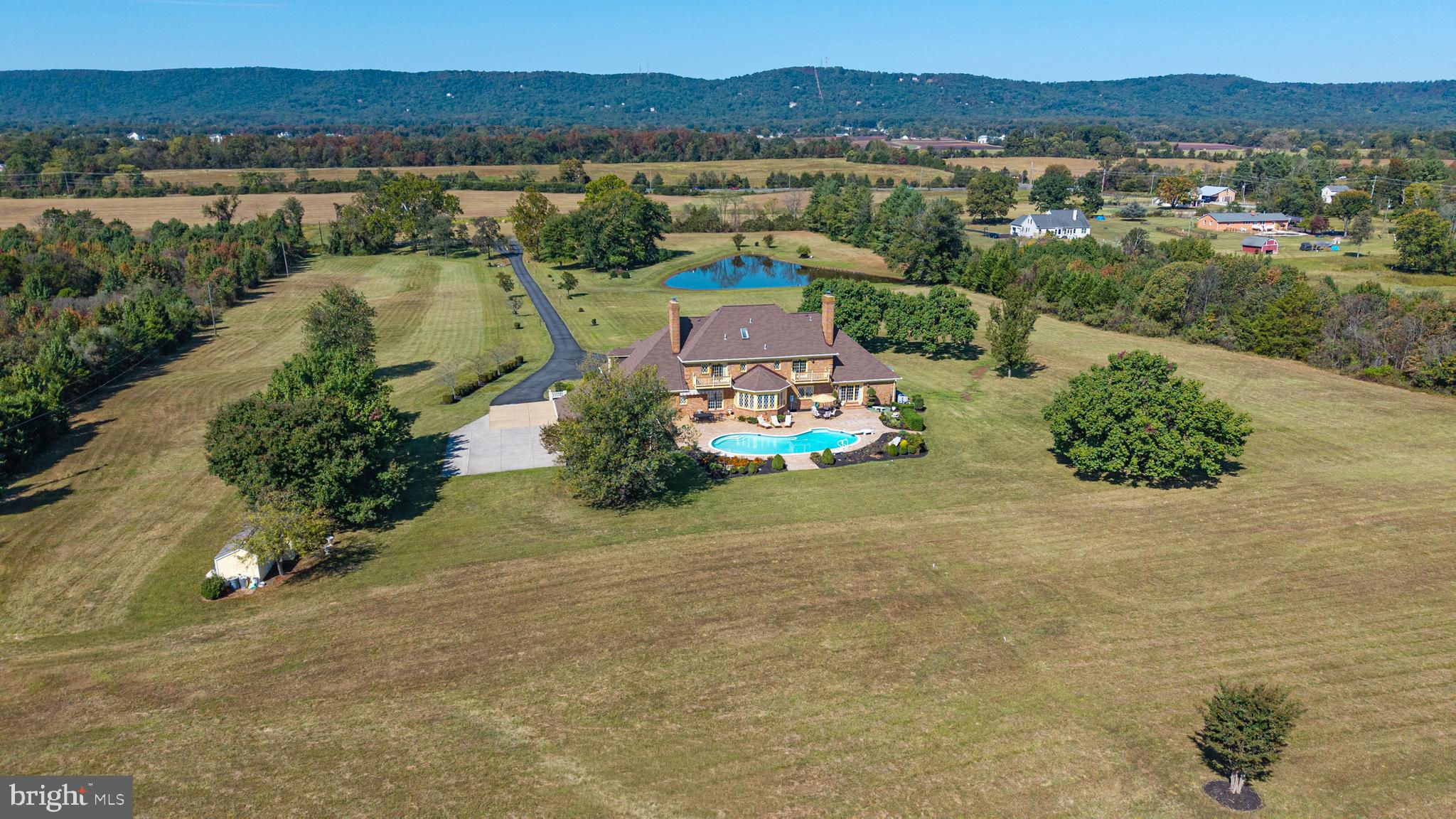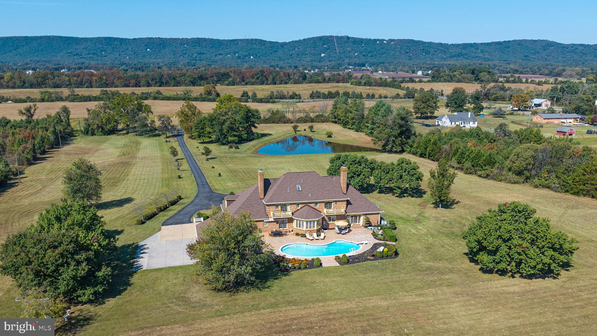 Truly extraordinary and rarely available. Set on 19.9 breathtaking acres in the Log Mill Road area of Prince William County, this all-brick Tudor-style estate is a rare jewel surrounded by open fields and framed by sweeping views of Bull Run Mountain. To the front, a stocked pond and gently sloping meadows enhance the setting, while to the rear, a Caribbean-blue pool and expansive outdoor entertaining area create a private enclave perfect for family gatherings, pool parties, and Sunday brunches by the pool. A tree-lined driveway leads to a circular approach and introduces the home with presence and elegance. This property is exceptional not only for its location and scale, but also because it has no HOA and no conservation easements, providing total freedom for your lifestyle and future plans. Inside, a grand two-story foyer welcomes guests with marble floors, a sweeping circular staircase, and a gracious keeping/overflow area perfect for greeting visitors or allowing guests to linger at the end of an evening. The main floor showcases intricate moldings, including dental and ornate details, highlighting the craftsmanship throughout. The kitchen is a chef’s dream, featuring granite counters, custom cabinetry, and spectacular views of the pool. The formal dining room with fireplace offers a warm and inviting space for entertaining. The family room, positioned close to the kitchen, features its own fireplace, access to a conveniently located bathroom, and walks out to the pool while leading seamlessly into the entertainment room. The entertainment room is a true showstopper: huge in scale with marble floors, direct pool access, a full bar, and a full sports bar that overlooks the TV—perfect for watching the Masters, the Super Bowl, or your favorite Netflix series. This space is designed for hours of joy, whether hosting Sunday night movies, game-day celebrations, or large-scale gatherings. Its scale feels grand, yet the layout allows for a warm, inviting atmosphere where friends and family can relax and enjoy every moment. On the opposite side of the home, a full-sized library or executive office awaits, complete with built-in bookshelves, a full fireplace, and access to the pool—an inspiring space for work, reading, or quiet reflection. Adjacent is a guest suite that is both enormous and cozy, offering a private retreat with ensuite bath and stunning pond views. Upstairs, the primary suite is a true retreat, featuring a private balcony with views of the pool, windows that capture dramatic sunset views over the mountains, his and her bathrooms, enormous his and her walk-in closets, a fireplace, and a generous sitting/dressing room. Two additional bedrooms on the upper level are equally impressive, each with ensuite baths and oversized walk-in closets. One bedroom also has a balcony, offering views of the pool. The princess balcony overlooking the foyer is equally stunning, with intricate moldings continuing all the way up the two-story space, enhancing the dramatic architectural presence of the home. The lower level provides even more lifestyle space with a recreation room, finished storage, a gym with sauna, and a large laundry/workshop area complete with a laundry chute. Completing the home is an impressive 3-car side-load garage, providing both function and curb appeal. The home is built with incredible solid construction that inspires confidence while still feeling welcoming and livable. With its combination of wide-open acreage, pond, pool, mountain vistas, and extraordinary interior spaces, this estate is truly an impossible find. Located just 3 minutes from Loudoun County and close to local breweries, the town of Middleburg, and all the amenities of Haymarket. The lot is the perfect canvas—with room for a barn, an indoor riding arena, a driving range, or an enormous garden. For those who love to fish, the stocked pond is ready to provide hours of enjoyment. All offers due by Tuesday, October 7 at 2:00 PM