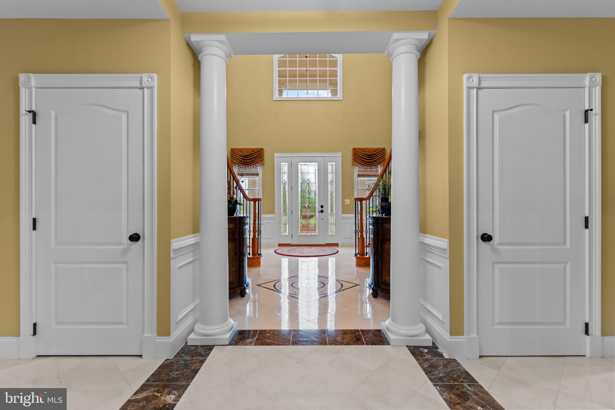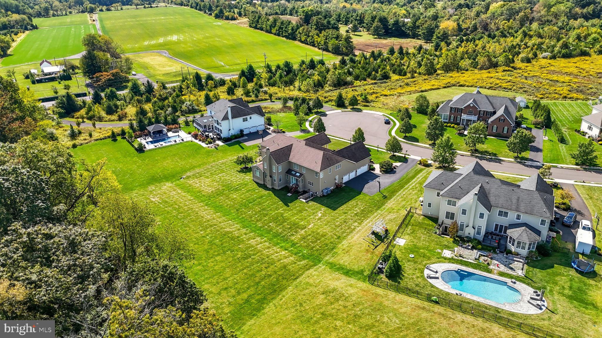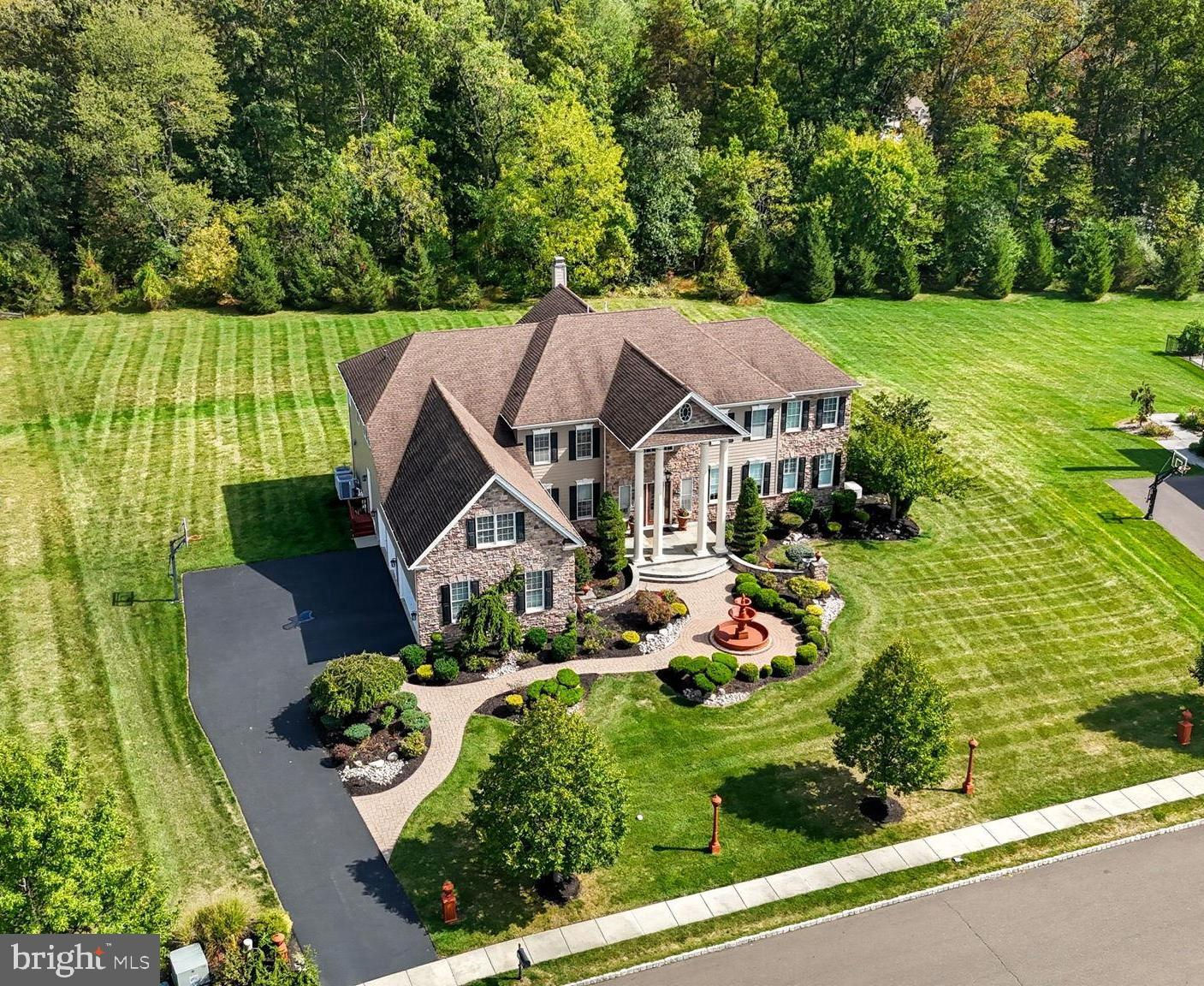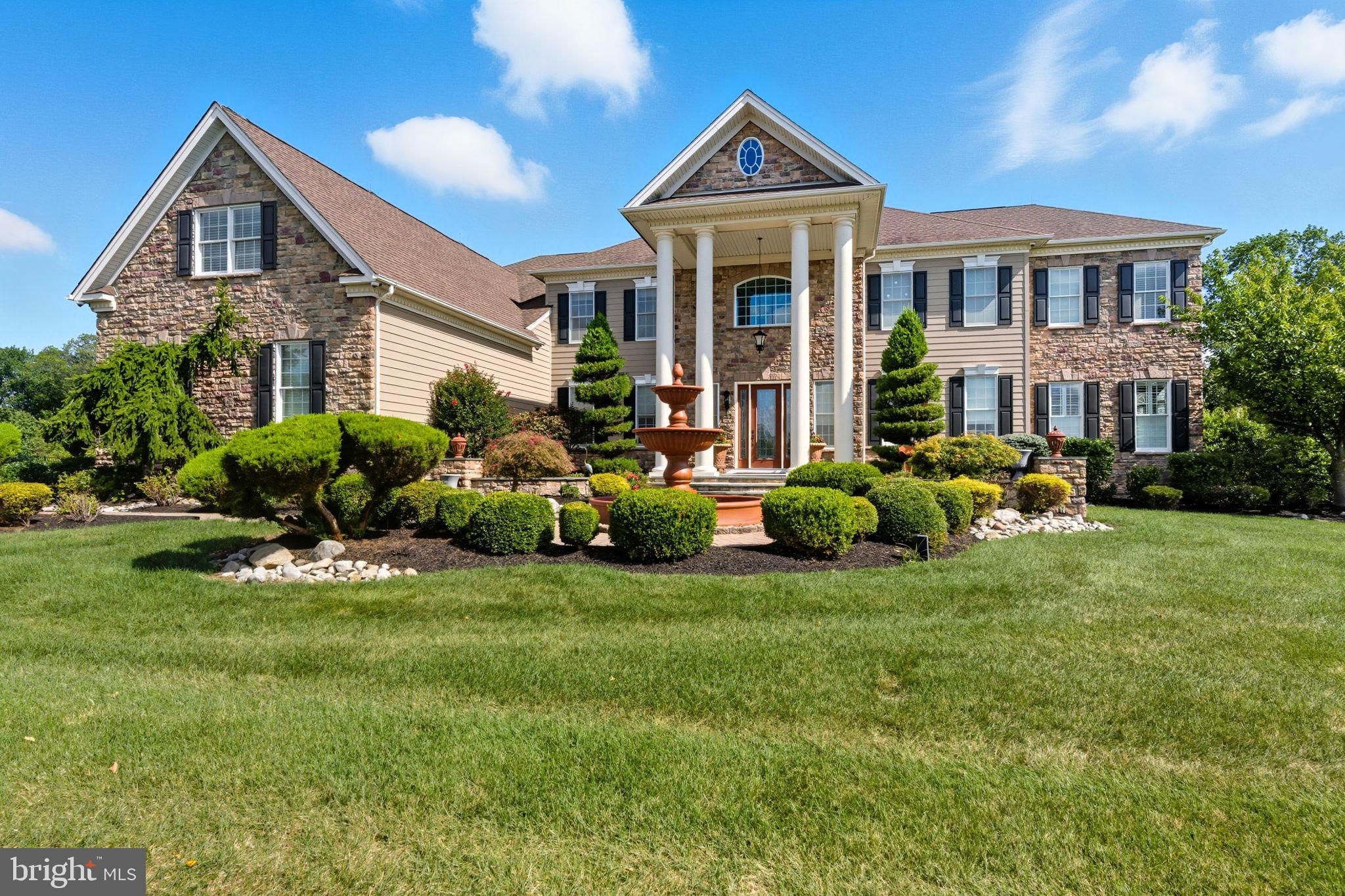 Welcome to this exceptional 5-bedroom, 4.5-bath estate, offering 6,584 square feet of luxurious living space, located on a quiet cul-de-sac in the coveted Chapman’s Corner community. Built in 2013 by Toll Brothers, this Henley Versailles model home features over $400,000 in premium upgrades, exquisite architectural details, and high-end finishes throughout. A dramatic two-story foyer with dual curved staircases sets the tone for elegance and grandeur. Soaring 10-foot ceilings on the main level and 9-foot ceilings upstairs create an open, airy feel, complemented by oversized windows and custom millwork. Beautiful custom hardwood and tile flooring though out, including ceramic medallion in center of the foyer. The spacious two-story great room includes a striking 2 story stone fireplace, stunning “Coffered” ceiling, and flows beautifully into the heart of the home: a chef’s kitchen featuring rich wood cabinetry, granite countertops, a large center island, reverse osmosis water filter, subzero and professional-grade stainless steel appliances, walk-in pantry closet. The rear of the home was expanded during construction, to be even more spacious! Retreat to the luxurious primary suite offering a bonus sitting room/office , 3 walk-in closets, dual toilets, dual vanities, an ultra shower, and a whirlpool soaking tub. Off the primary bedroom is another huge bonus room. The four additional bedrooms include an en-suite and a Jack & Jill layouts, offering privacy and comfort for family or guests. A fifth bedroom or optional office/playroom provides flexible living space that features extra storage closet with built in cabinetry. Designed for both work and play, the main level includes a dedicated office with custom built-in shelving, a gym/playroom, and a bright, window-lined conservatory. The custom 4-car garage features built-in shelving, cabinets for storage, and a specialized floor system - perfect for the car enthusiast or extra storage. A full basement provides endless possibilities, with high ceilings, rough-in plumbing for full bathroom, enabling future expansion. Walkout stairs provide added light and convenience. Additional highlights include a whole-house generator, expansive private backyard, custom designed front hardscape walkway with special features including large decorative water fountain, artistic post lighting and additional accent lighting. This home features full home security system with exterior cameras, and fire sprinkler system. This is an award-winning location in the Council Rock School District with an easy commute to Philadelphia, truly offering the perfect balance of luxury, space, and convenience. The lot boasts one of the best locations in “Chapman’s Corner,” a quiet cul de sac with expansive Bucks County views.