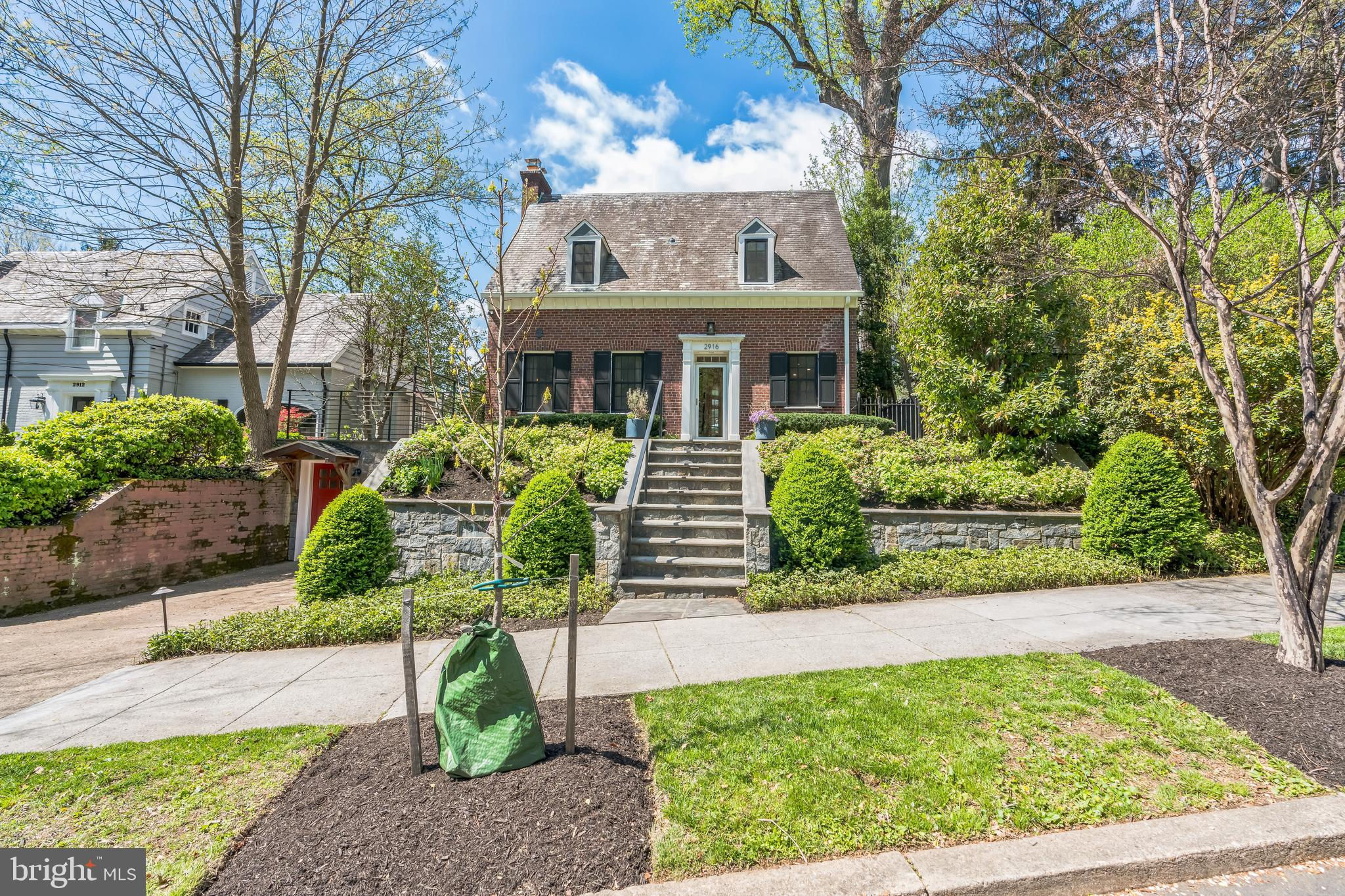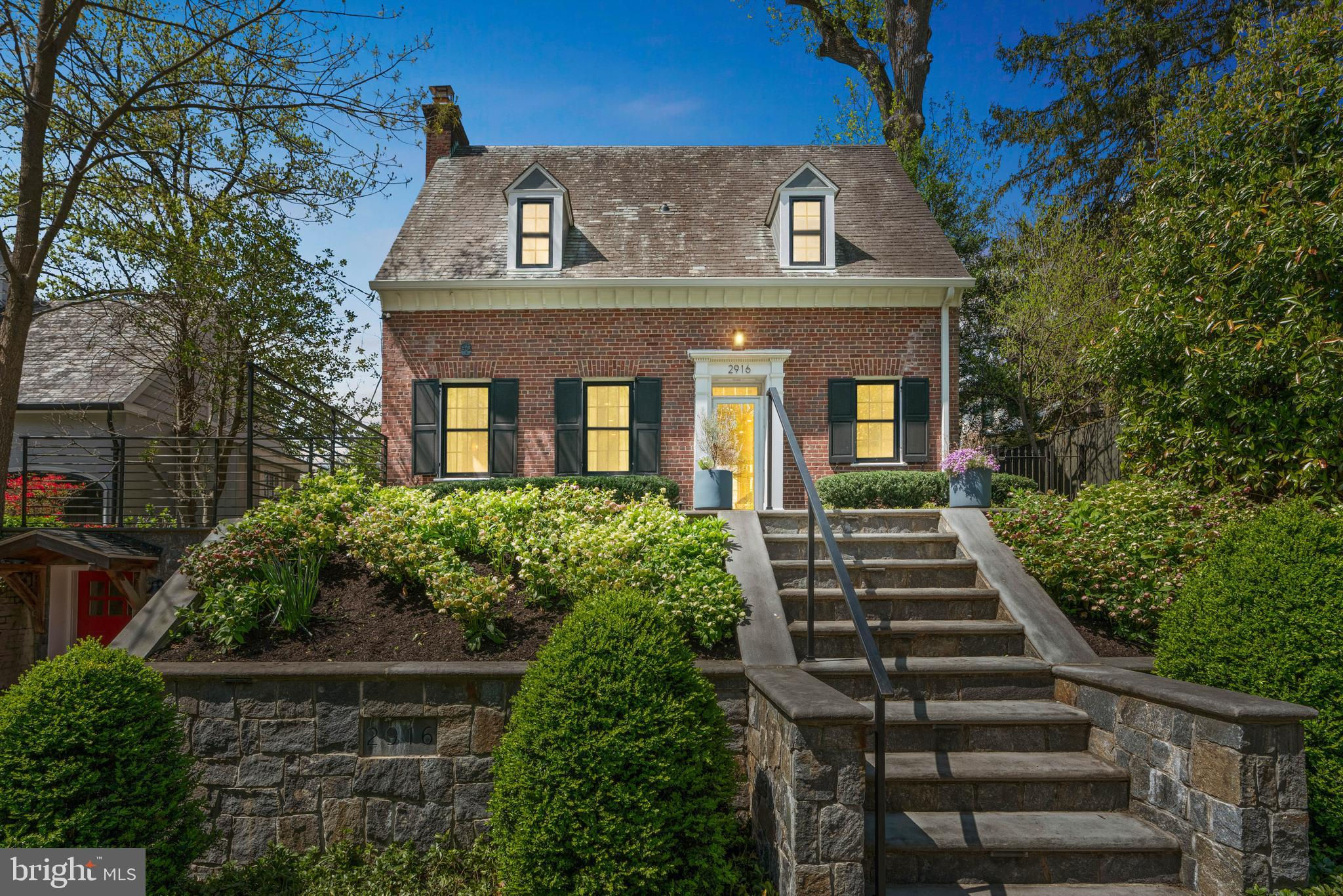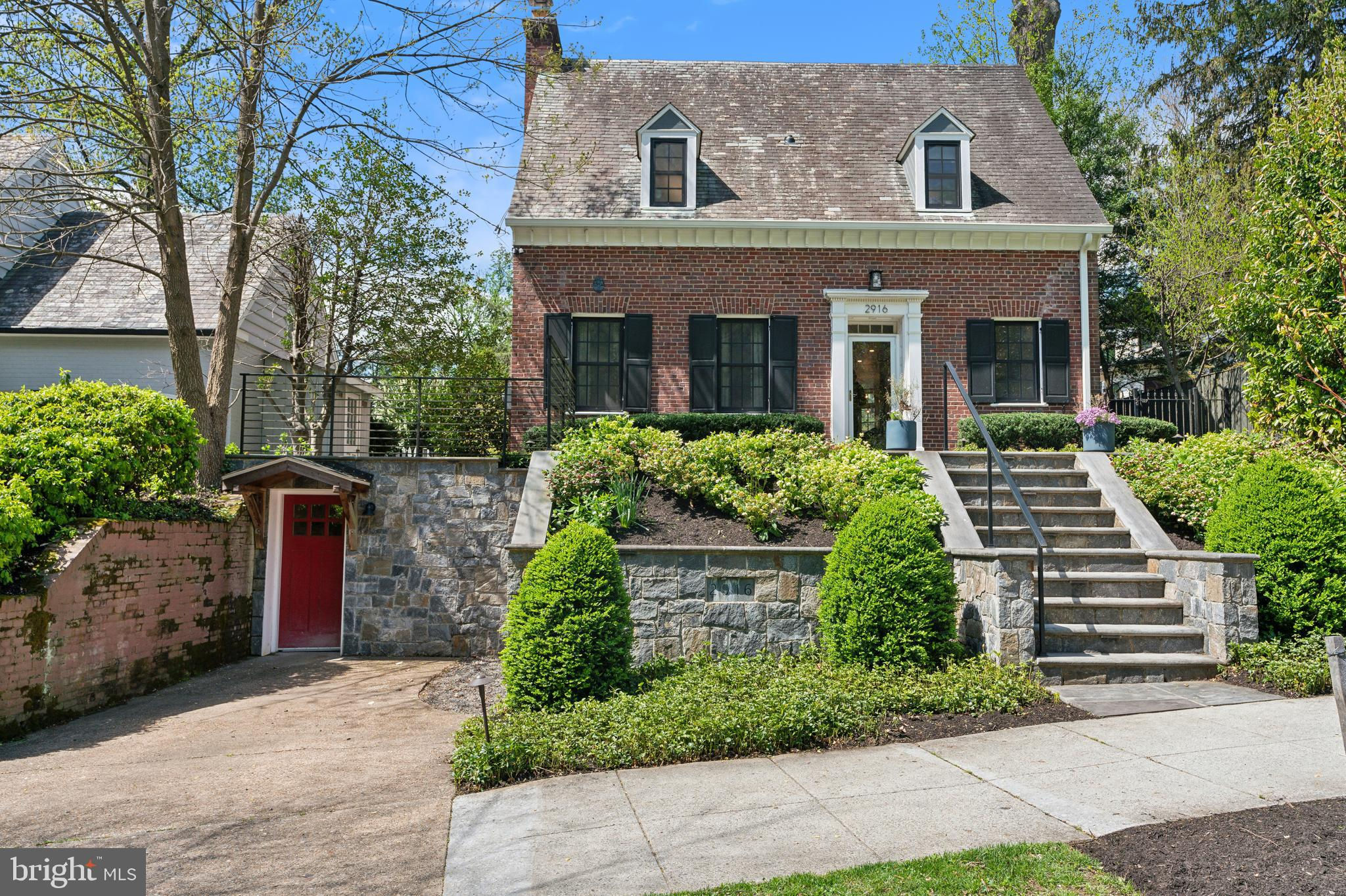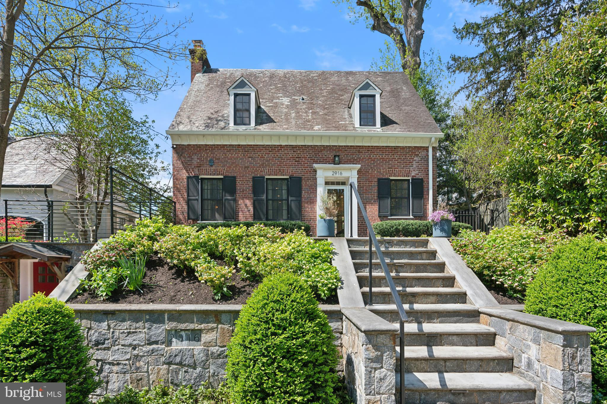 Perched elegantly above the street with views of Glover-Archbold Park, this beautifully maintained home in Wesley Heights is a quintessential example of Cape Cod architecture, blended seamlessly with Colonial Revival influences. With its steep roofline, dormered second story, and classic brick construction, 2916 New Mexico Avenue NW offers a timeless aesthetic that’s both stately and welcoming. Inside, you'll find 4 bedrooms--plus a sleeping loft--and 3.5 baths spread over four levels measuring over 3,600 square feet of finished living space. The fully-finished basement offers a complete living area for in-laws, an au pair or guests, with a full kitchen, large living area with wood-burning fireplace, a full bath, a separate bedroom and a laundry room. No guests?--no problem! Turn the basement into an in-home gym or home office. The former garage has been converted into a workroom but could be converted back by opening up the exterior stone wall. The driveway offers convenient off-street parking. On the main level, you'll enter a cozy foyer that leads to a fully renovated kitchen on one side and a welcoming living room with gas fireplace on the other. The circular flow of the main level takes you from a delicious dinner off the gorgeous open kitchen, to cocktails or conversation in the living room, on to board games or a movie in the back sunroom and a game of fetch and relaxing with family and friends in the beautifully landscaped backyard, complete with built-in gas grill. There is also a half bath and stacked laundry on the main level. Upstairs, you'll find three spacious bedrooms and two renovated full baths--including a primary suite with a large walk-in closet/dressing room and a primary bath with dual sinks and radiant floor heating--plus a sleeping loft on the top floor that is a perfect space for a home office, a playroom or a sewing/arts nook. With hardwood floors throughout, two fireplaces, smart home automation, newly remodeled kitchens and baths, numerous systems upgrades and countless other improvements totaling over $600,000 (a full list is available), this beautifully maintained home is not just a house; it’s a turnkey, style-savvy tribute to mid-century design, thoughtfully adapted for modern living.