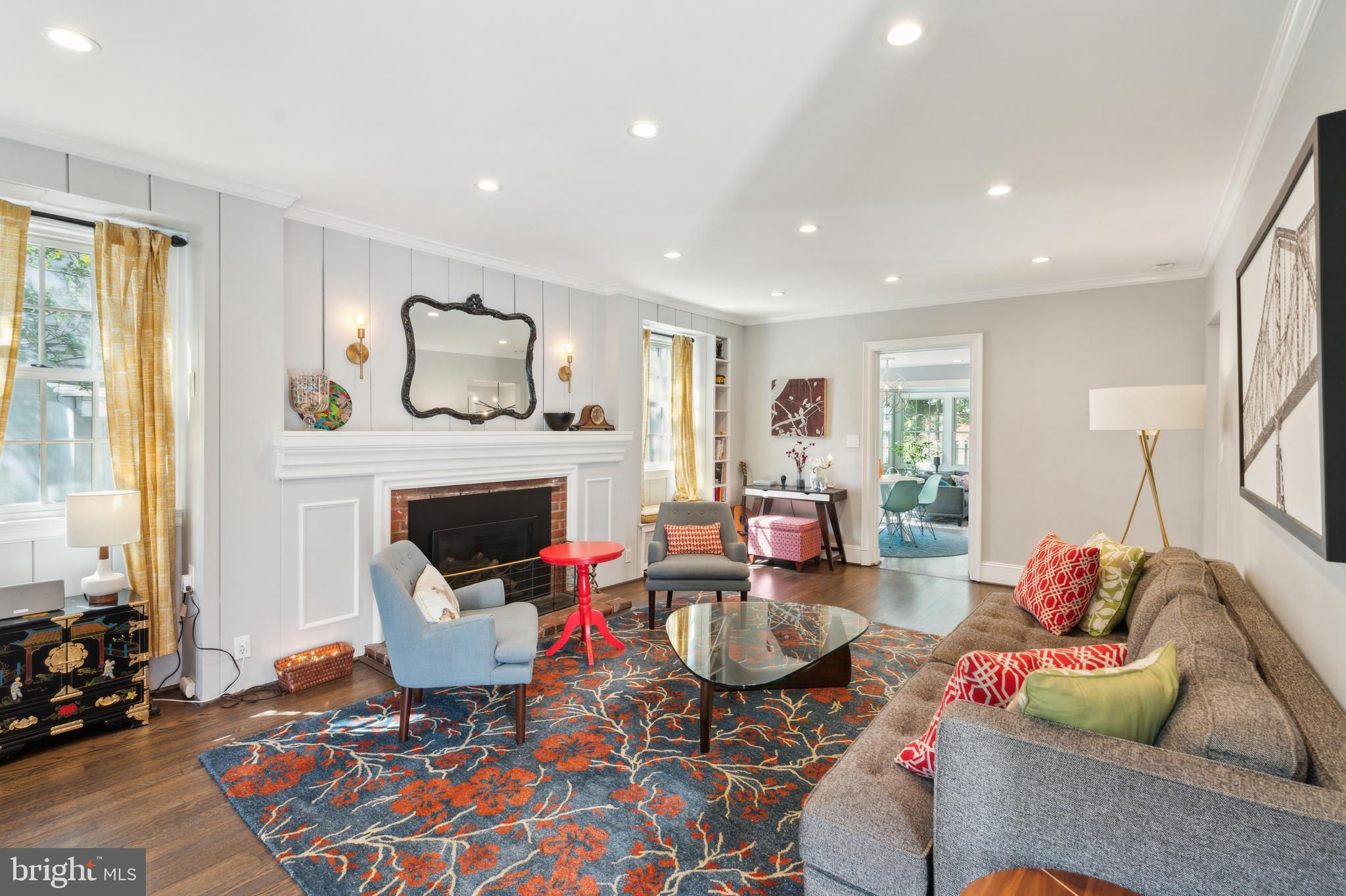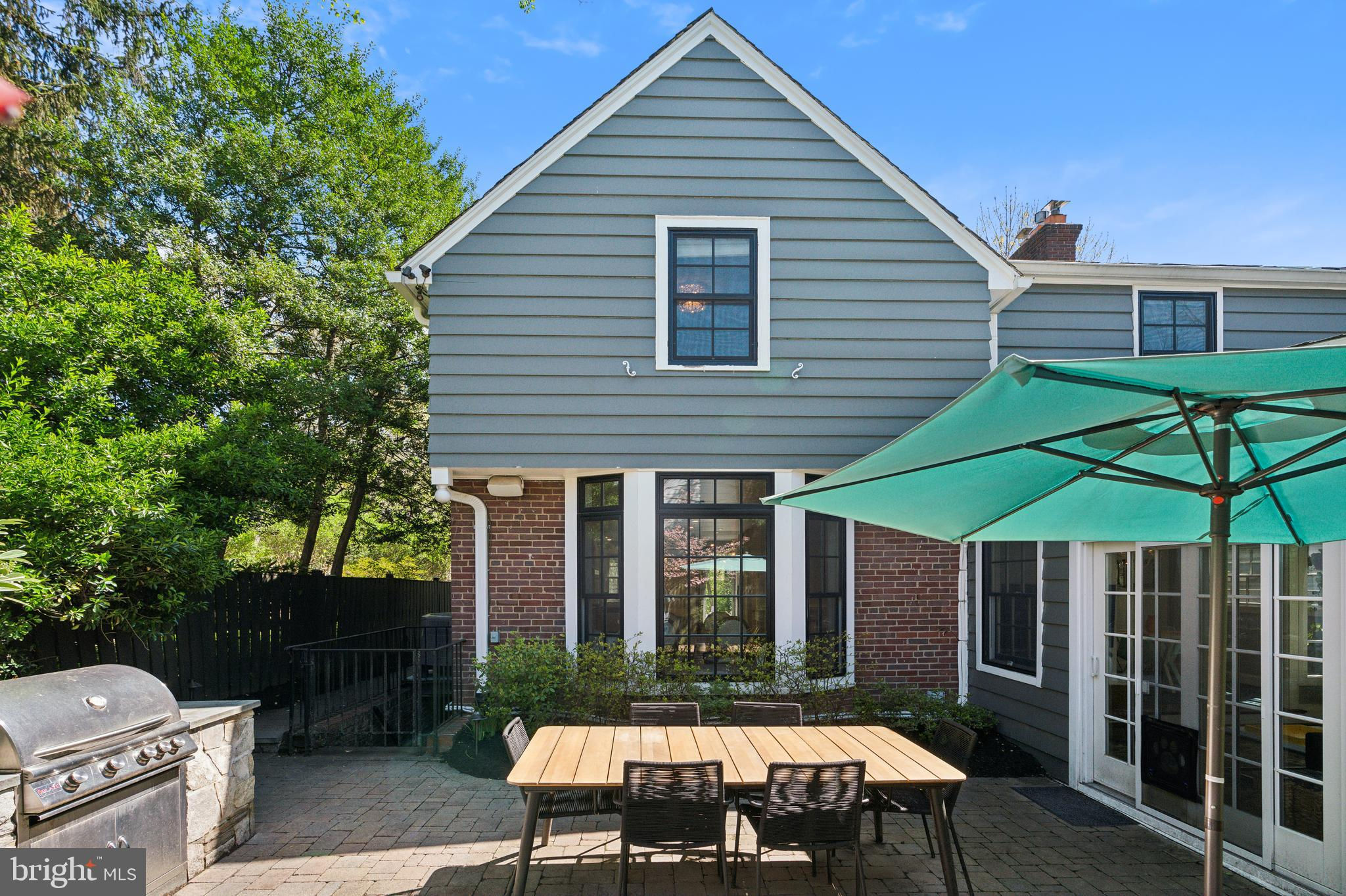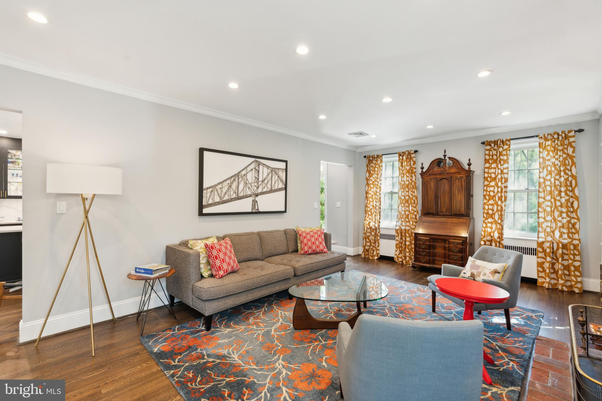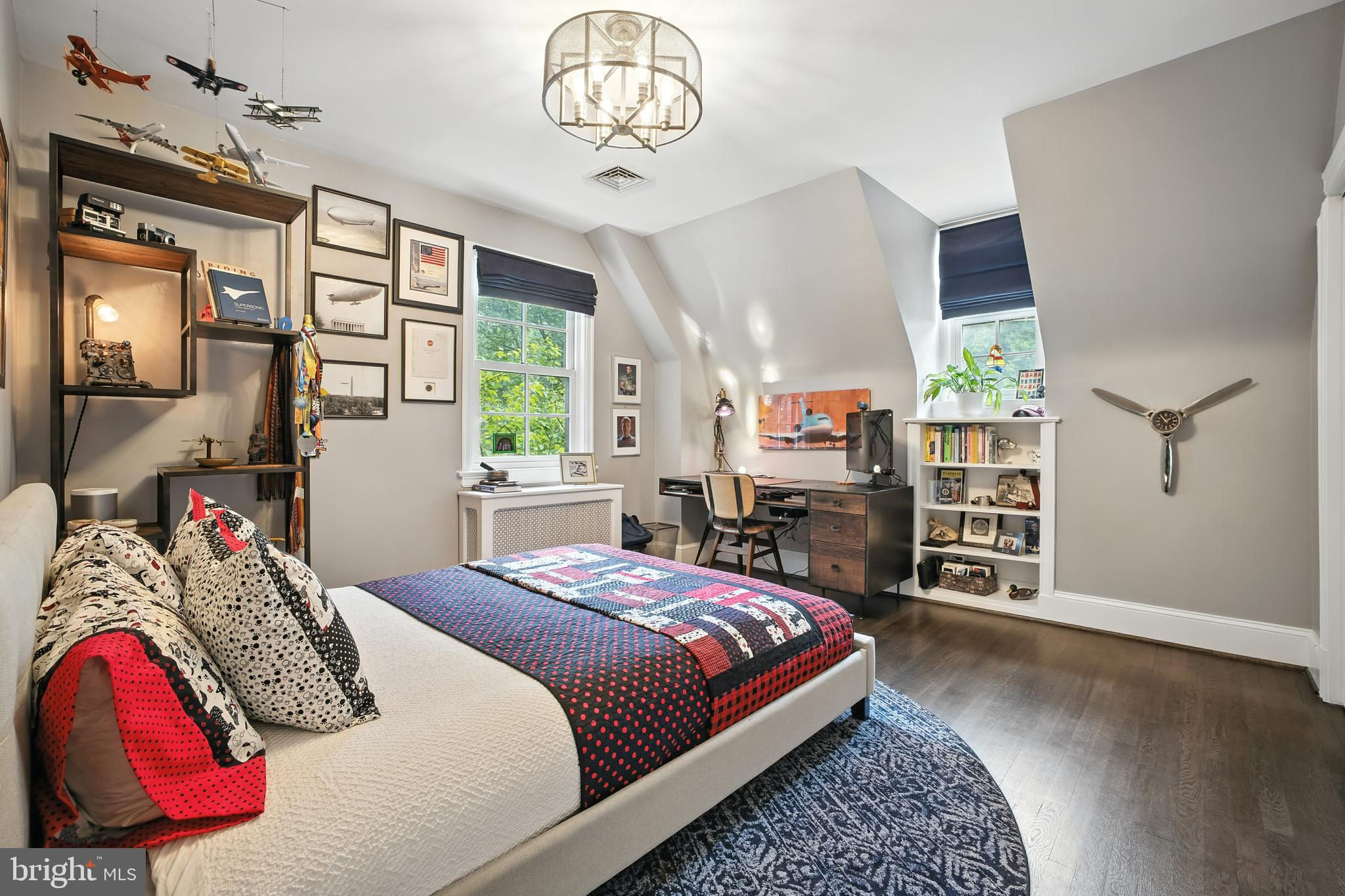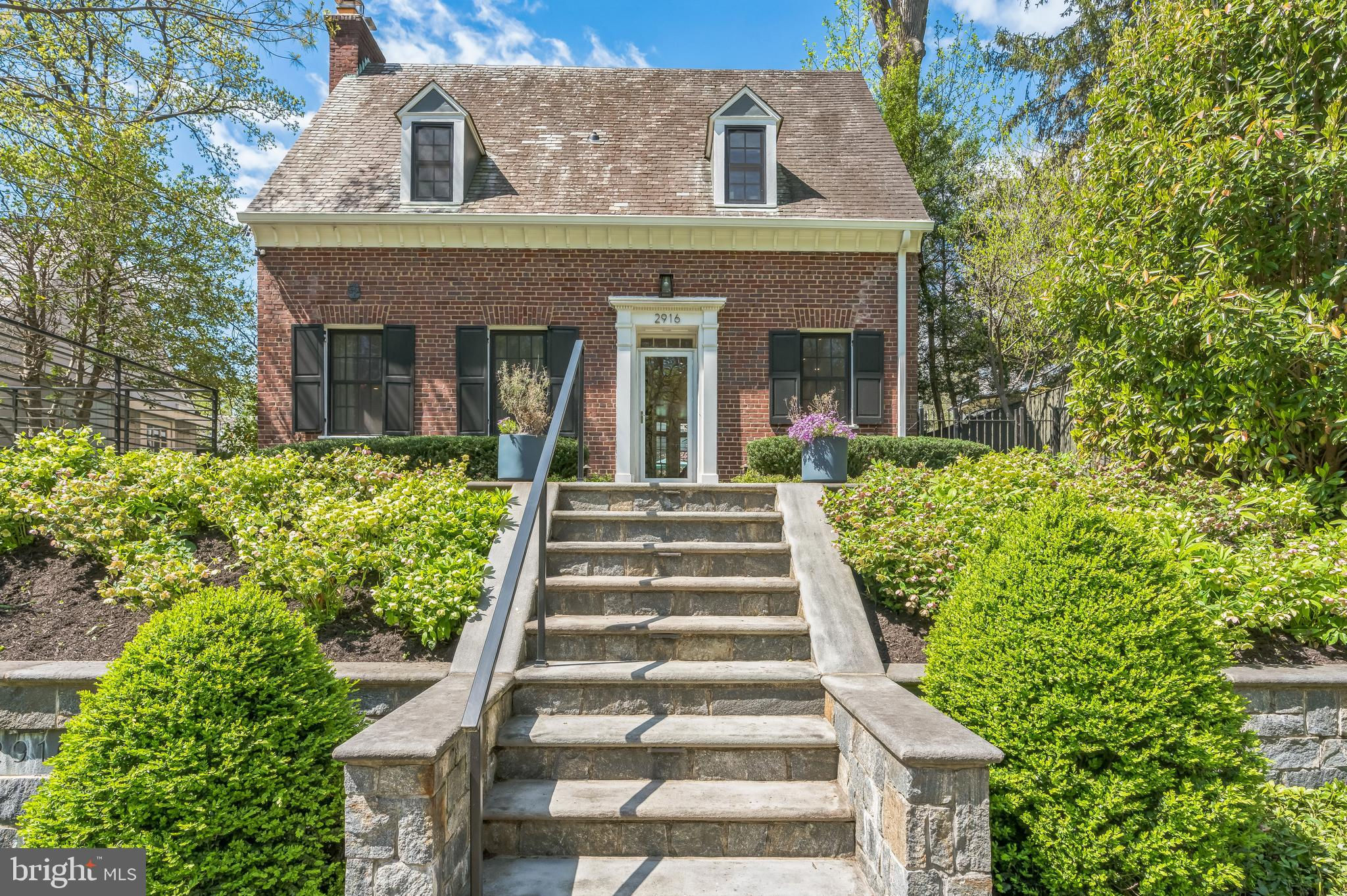 Perched elegantly above the street with views of Glover-Archbold Park, this beautifully maintained home in Wesley Heights is a quintessential example of Cape Cod architecture, blended seamlessly with Colonial Revival influences. With its steep roofline, dormered second story, and classic brick construction, 2916 New Mexico Avenue NW offers a timeless aesthetic that’s both stately and welcoming. Inside, you'll find 4 bedrooms--plus a sleeping loft--and 3.5 baths spread over four levels measuring over 3,600 square feet of finished living space. The fully-finished basement offers a complete living area for in-laws, an au pair or guests, with a full kitchen, large living area with wood-burning fireplace, a full bath, a separate bedroom and a laundry room. No guests?--no problem! Turn the basement into an in-home gym or home office. The former garage has been converted into a workroom but could be converted back by opening up the exterior stone wall. The driveway offers convenient off-street parking. On the main level, you'll enter a cozy foyer that leads to a fully renovated kitchen on one side and a welcoming living room with gas fireplace on the other. The circular flow of the main level takes you from a delicious dinner off the gorgeous open kitchen, to cocktails or conversation in the living room, on to board games or a movie in the back sunroom and a game of fetch and relaxing with family and friends in the beautifully landscaped backyard, complete with built-in gas grill. There is also a half bath and stacked laundry on the main level. Upstairs, you'll find three spacious bedrooms and two renovated full baths--including a primary suite with a large walk-in closet/dressing room and a primary bath with dual sinks and radiant floor heating--plus a sleeping loft on the top floor that is a perfect space for a home office, a playroom or a sewing/arts nook. With hardwood floors throughout, two fireplaces, smart home automation, newly remodeled kitchens and baths, numerous systems upgrades and countless other improvements totaling over $600,000 (a full list is available), this beautifully maintained home is not just a house; it’s a turnkey, style-savvy tribute to mid-century design, thoughtfully adapted for modern living.