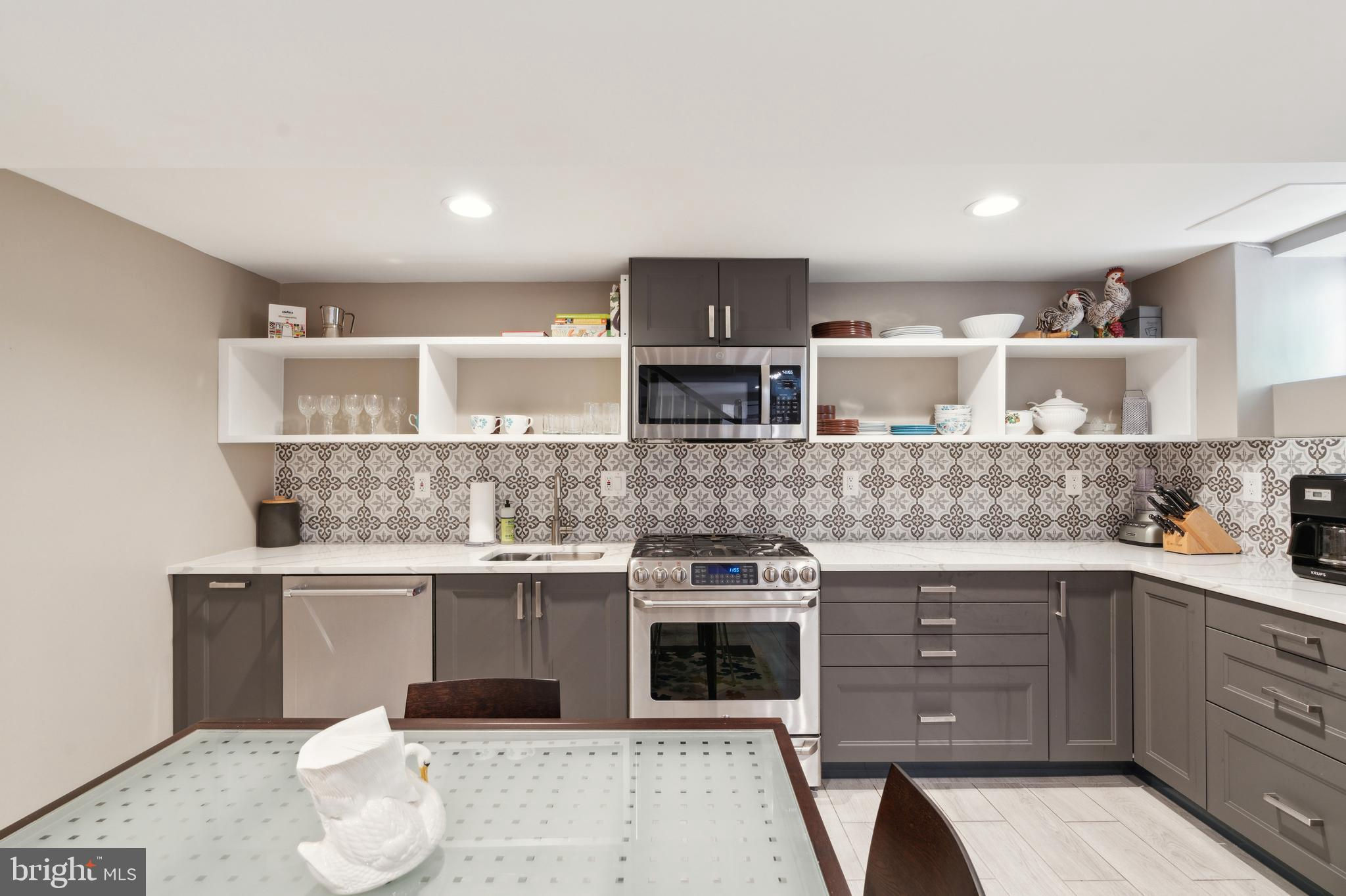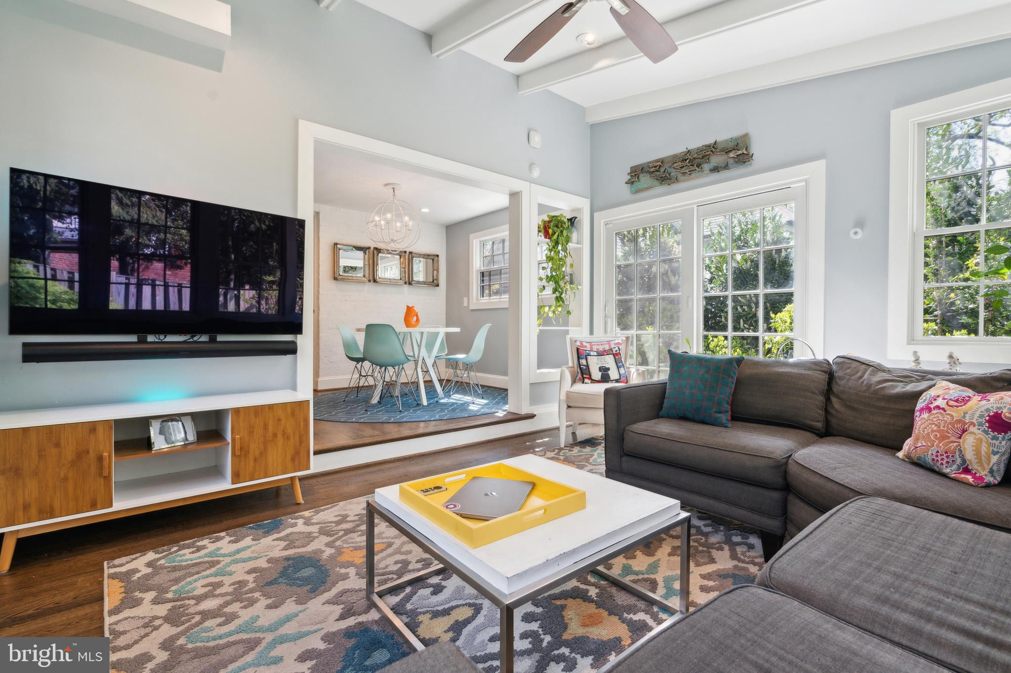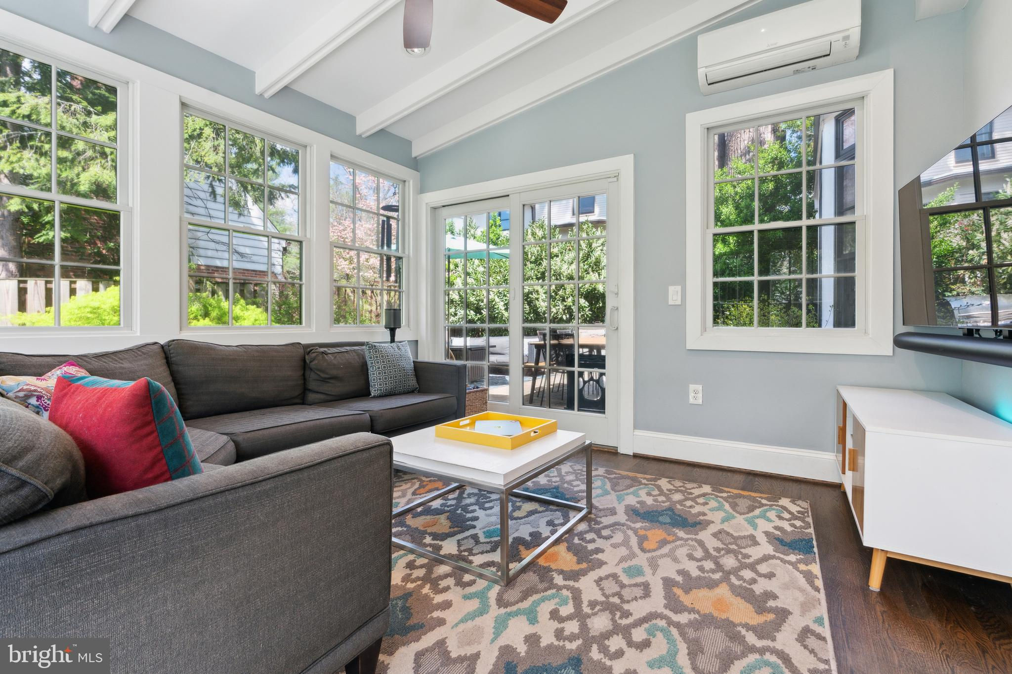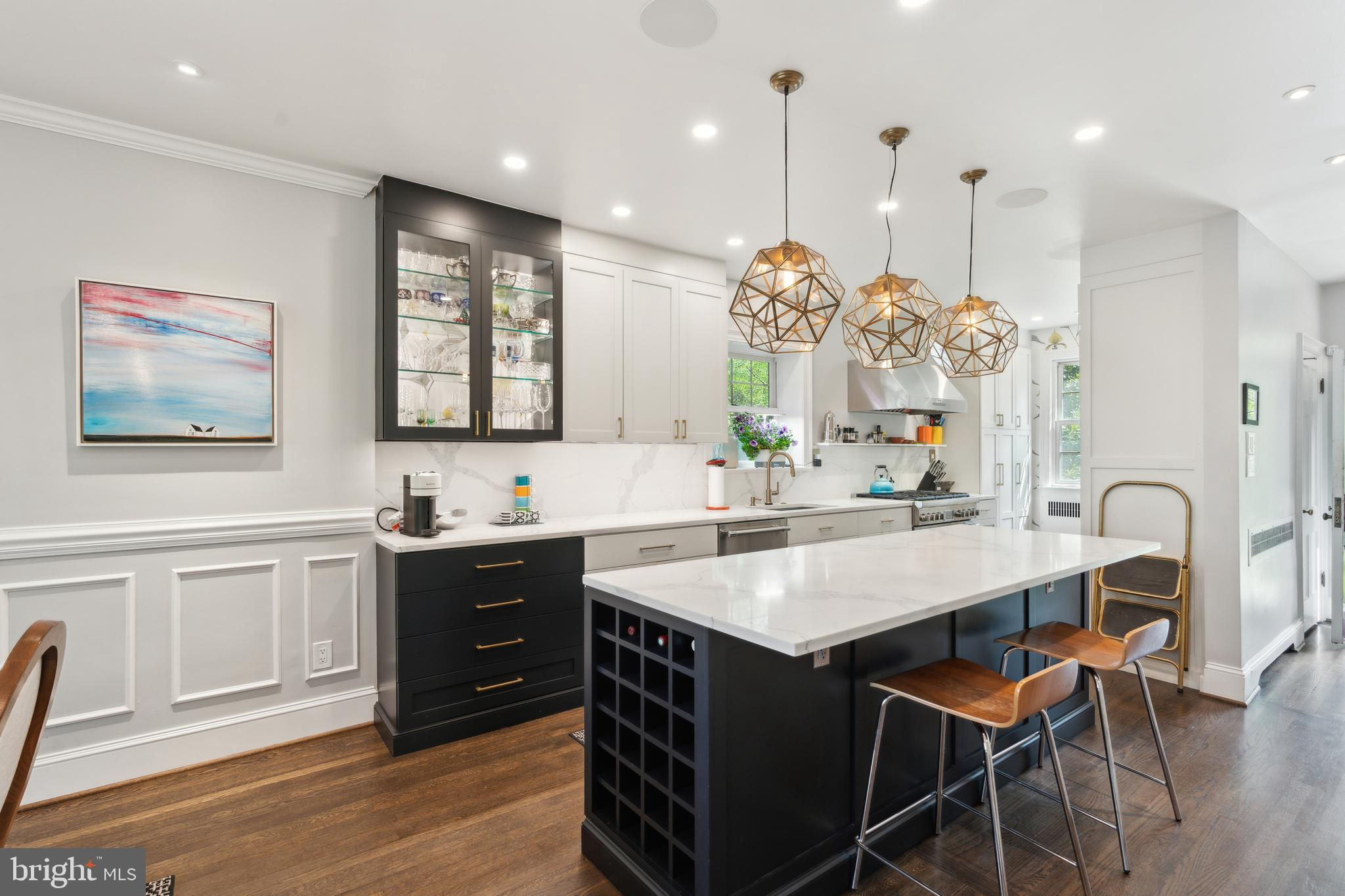Perched elegantly above the street with views of Glover-Archbold Park, this beautifully maintained home in Wesley Heights is a quintessential example of Cape Cod architecture, blended seamlessly with Colonial Revival influences. With its steep roofline, dormered second story, and classic brick construction, 2916 New Mexico Avenue NW offers a timeless aesthetic that’s both stately and welcoming. Inside, you'll find 4 bedrooms--plus a sleeping loft--and 3.5 baths spread over four levels measuring over 3,600 square feet of finished living space. The fully-finished basement offers a complete living area for in-laws, an au pair or guests, with a full kitchen, large living area with wood-burning fireplace, a full bath, a separate bedroom and a laundry room. No guests?--no problem! Turn the basement into an in-home gym or home office. The former garage has been converted into a workroom but could be converted back by opening up the exterior stone wall. The driveway offers convenient off-street parking. On the main level, you'll enter a cozy foyer that leads to a fully renovated kitchen on one side and a welcoming living room with gas fireplace on the other. The circular flow of the main level takes you from a delicious dinner off the gorgeous open kitchen, to cocktails or conversation in the living room, on to board games or a movie in the back sunroom and a game of fetch and relaxing with family and friends in the beautifully landscaped backyard, complete with built-in gas grill. There is also a half bath and stacked laundry on the main level. Upstairs, you'll find three spacious bedrooms and two renovated full baths--including a primary suite with a large walk-in closet/dressing room and a primary bath with dual sinks and radiant floor heating--plus a sleeping loft on the top floor that is a perfect space for a home office, a playroom or a sewing/arts nook. With hardwood floors throughout, two fireplaces, smart home automation, newly remodeled kitchens and baths, numerous systems upgrades and countless other improvements totaling over $600,000 (a full list is available), this beautifully maintained home is not just a house; it’s a turnkey, style-savvy tribute to mid-century design, thoughtfully adapted for modern living.