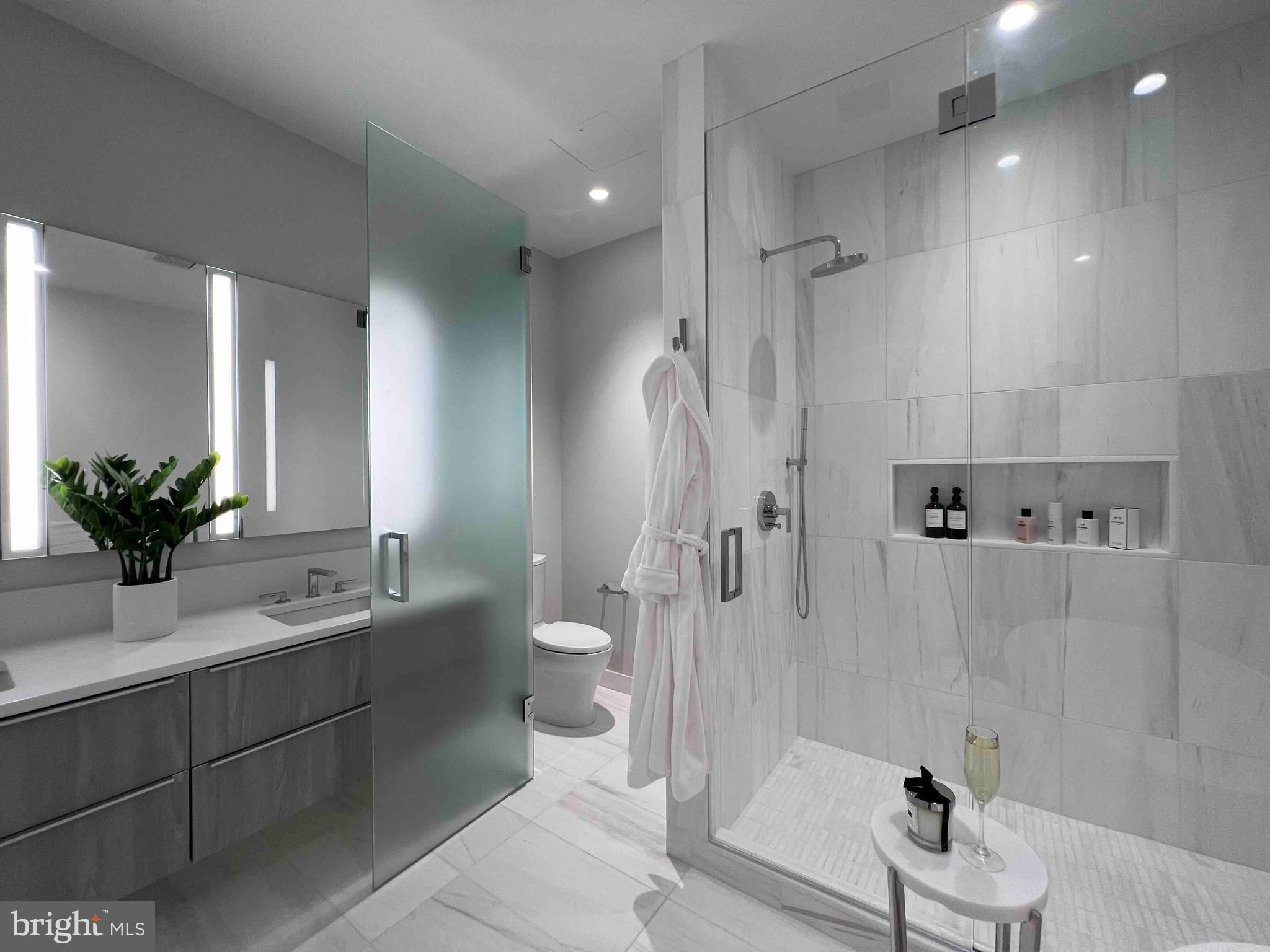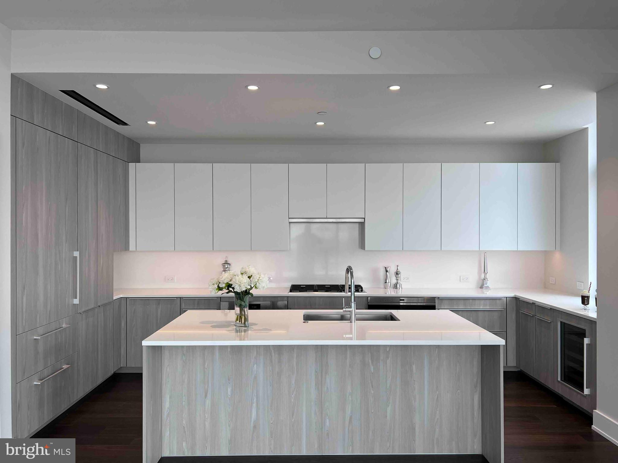 Brand New/Move-In Ready Arthaus, a commanding new residential high-rise in Philadelphia’s performing arts district, presents Unit 2103: A stunning 2-bed, 2.5-bath, 1,860 SF single-level residence with Delaware River and southern views priced at $1,640,000 !!! This maintenance-free, move-in-ready corner home offers high-end interior design, resort amenities, white glove services, and the utmost privacy. Tax abatement is available. Whether you're a busy professional, retiree, or globe trotter, 2103 is a MUST-SEE! Arthaus impresses you from the moment you arrive. The beautifully grained, solid wood door swings open to a gracious foyer that’s long and spacious, perfect for displaying an art collection. There's also a large storage closet, powder room, laundry facilities, and passage to the private sleeping chambers off the foyer. Unobstructed river views fill the great room's windows where kitchen, living, and dining spaces combine in a sophisticated family lounge space. Soaring ceilings, floor-to-ceiling windows, wide-plank Havwood flooring in Fendi, and a weather-protected walk-out balcony make the room feel bright and airy, perfect for every occasion. Situated on the southeast corner of the building, 2103 is one with the sky. There’s nothing as tall as Arthaus anywhere is sight so you can see for miles and the effect is pure zen. The chef’s kitchen is top-notch, with a stylish large center island that seats four. The all polar white matte make a big statement with the Golden Gate quartz countertops and backsplash. The high-end, stainless appliance package includes Wolf, Bosch, Sub-Zero, and Asko appliances, and door fronts have been fully integrated into the cabinet design for a seamless look. The primary suite and one guest bedroom are on the south side of the condominium, with views of the sports stadiums. The second bedroom is a perfect spot for visiting guests. They'll love the south-facing views that go on forever. The guest bathroom features include a walk-shower tiled in Porcelain Calacatta, Kohler toilet, and Poggenpohl single sink vanity in polar white matte topped with super white quartz. The ultra-private owner's suite has two walk-in closets and a large sleeping area with southern views. The best-in-class bathroom package includes a Badeloft soak-in tub, double vanity with Robern mirrors, super white quartz marble and Poggenpohl cabinets, Contempo white marble floors and shower tile, and a Kohler toilet closet. Arthaus is a modern masterpiece crafted by renowned developer Carl Dranoff, designed by Kohn Pedersen Fox, and built by Intech Construction. Its architecture and amenities prioritize wellness and well-being, from the stunning Monet-inspired mosaic in the lobby to the private resort on the 6th and 7th floors, featuring a pool, fitness facilities, spa, salon, pet park, outdoor terraces, lawns, gardens, and more. White glove services include a 24-doorman, concierge, chauffeured town car, and valet. This home comes with 1 parking license. With the 10-year tax abatement, annual real estate taxes are approximately $3,242