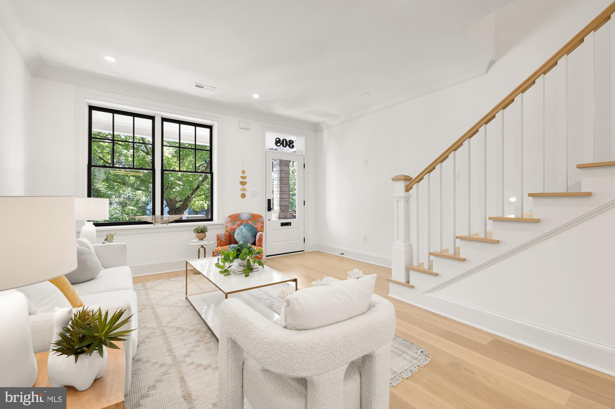 New price! Pridefully renovated and located on one of the most sought after blocks in Capitol Hill, 308 11th St NE is a nearly 3,300 sq ft residence featuring only the finest finishes. The main house offers 5 bedrooms, 3 full baths, and 2 half baths, offering all the options you need. The kitchen is a chef’s delight, featuring paneled designer appliances, custom cabinetry, and a convenient adjacent mudroom. The top floor is an entertainer’s dream featuring a Houzz-worthy wet bar, half bath, bedroom/office, and an expansive roof deck with views of the Washington Monument and Library of Congress. A two-story carriage house features a bonus space with full bath perfect for an au pair suite or office/gym space. The carriage house also has a tiled, climate-controlled garage with Tesla car charging. Inbounds for Maury Elementary School and steps from Lincoln Park, welcome to life on the Hill.