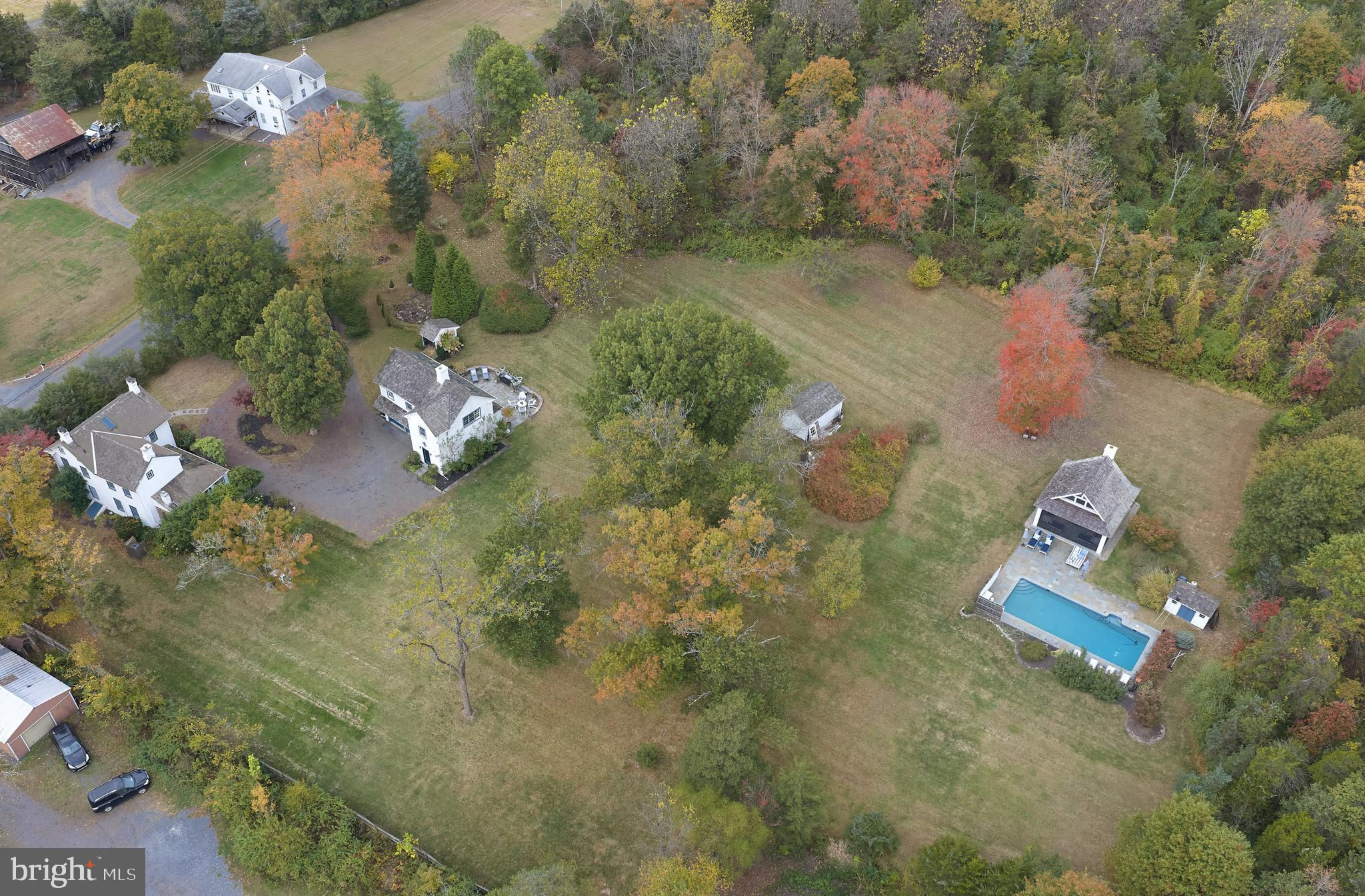 Welcome to year-round resort living at 310 Durham Road! This elegant compound exudes luxury, charm, and sophistication, and offers an experiential lifestyle to rejuvenate your soul! Located in serene Tinicum Township, Bucks County, this nearly 3 acre property includes the Main House built during the mid-18th & early 19th centuries, a recently constructed Carriage House, and a magnificent Pool House. The historic Main House, with newer shake roof, windows, kitchen and baths, has been maintained and expanded with respect to preserving the original architectural integrity. Entering the front door with period hardware, you will be taken by the openness of the spacious Living and Dining Rooms, each with woodburning fireplaces.... the perfect venue for quiet evenings at home or hosting dinner parties with family & friends. The clean & neutral color palate and light colored wide-plank flooring will serve as a pleasing backdrop to showcase your most treasured art and collectables. Enter the cozy Family Room, and you will note the grand walk-in fireplace outfitted with a wood stove, and high, wood-beamed ceilings. The adjoining gourmet kitchen has been designed with no expense spared.... custom cabinetry, quartz countertops, Bosch appliances, and magnificent Italian tilework. This wonderfully functional space can accommodate multiple chefs, and opens to an intimate Breakfast Room, complete with fireplace fitted with a gas stove. The perfect place for morning coffee! Step out to the Trumpet Vine covered stone patio for an intimate dinner.... you and your guests will be transported to the charm of the South of France! A convenient first-floor Full Bath features exposed stone, steam shower, and bidet toilet. Upstairs, the sundrenched Primary Bedroom features a woodburning fireplace, and a luxurious en-suite bath, complete with original fireplace with propane hookup and deep soaking tub. Perfect for relaxing on winter nights! A spacious Guest Room and Hall Bath complete the 2nd floor. Upstairs, the finished attic can be used for additional sleeping space, storage, or office. Across the driveway, a beautiful Carriage House has been recently constructed to complement the period architecture of the Main House. Enter the spacious fully-equipped gym and also find a luxurious full bath and 4-person dry sauna. Upstairs, an expansive studio space can accommodate a multitude of uses, and features wonderful outdoor views and cozy woodburning stove. Outside, extensive hardscaping is a fabulous venue for large gatherings or quiet afternoons at home. To the rear of the property, you will find an expansive heated salt-water pool and breathtaking Pool House, a perfect summer gathering spot! Marvel at the soaring architectural elements of this elegant structure, complete with wood-burning fireplace, and intimate spaces for dining & lounging. The push of a button activates the electronic screens on 3 sides to keep your evening gatherings enjoyable. Enjoy the delights of Frenchtown and New Hope, a few minutes away. Make your appointment today for a glimpse of your elevated lifestyle at this magnificent property. More than a home.... an entertainers dream!