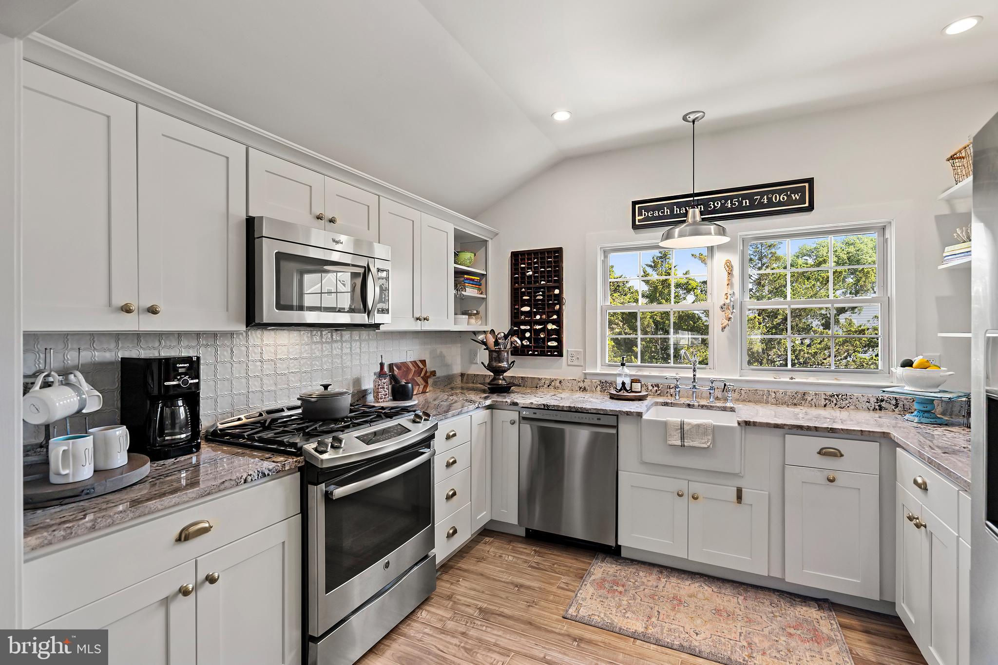 Charming Cape Cod Beach House in LEHYC Area! Discover the perfect blend of classic charm and modern comforts in this beautifully renovated Cape Cod-style home located in the coveted LEHYC area. Raised and thoughtfully updated in 2015, this home has been a highlight of the LBI Holiday Tour and the 2024 Garden Tour, showcasing its exceptional appeal. Features include southern exposure & front porch: enjoy partial bay views from the large, inviting front porch, ideal for soaking up the sun or watching the sunset with a cool drink in hand. Modern Comforts: This home features gas heat and a single-zone central AC system, ensuring comfort throughout the year. A gas line is ready for a fireplace to add a cozy touch. Engineered wood floors stretch across the entire home, complemented by custom blinds, creating a warm and inviting atmosphere. Spacious & Elegant Living: vaulted ceilings with exposed beams enhance the airy, open feel of the living spaces. The attic offers additional storage, perfect for keeping your home organized and clutter-free. The kitchen is a chef’s delight, boasting granite countertops, a stylish tile backsplash, and high-end 6-burner LG appliances. A new dishwasher, open shelves, and a charming farm sink complete this culinary haven. An outdoor oasis; step into your private backyard, an outdoor entertainment paradise. The detached garage has been converted into a versatile entertainment area; The mature landscaping and secluded setting make it feel like a world of its own. And a prime location: situated on a 50 x 100 lot, this home is centrally located between the beach and the bay, offering easy access to walk or bike to town amenities, including shops, amusements, restaurants, nightlife, and the beautiful coastline. With a classic beach house vibe, it is casual, comfortable, and inviting—perfect for entertaining friends and family and creating lasting memories. This is the beach cottage you’ve been dreaming of, ready to welcome you home. Don’t miss this opportunity to own a piece of paradise in the heart of LBI. Now is the time and this is the place!