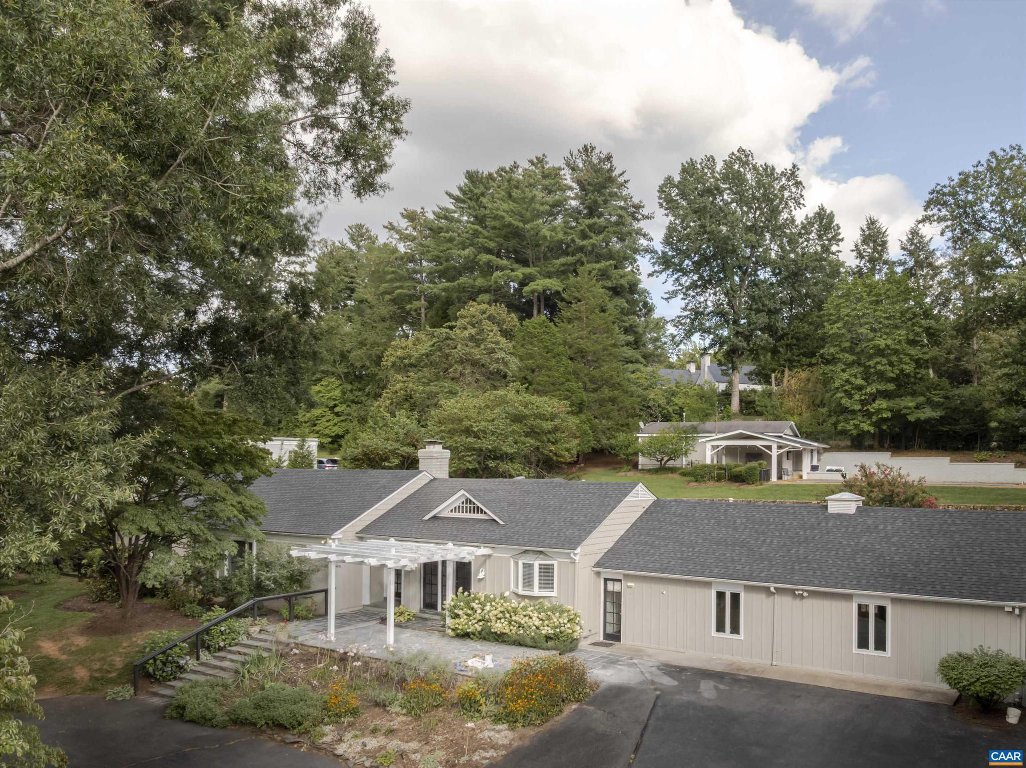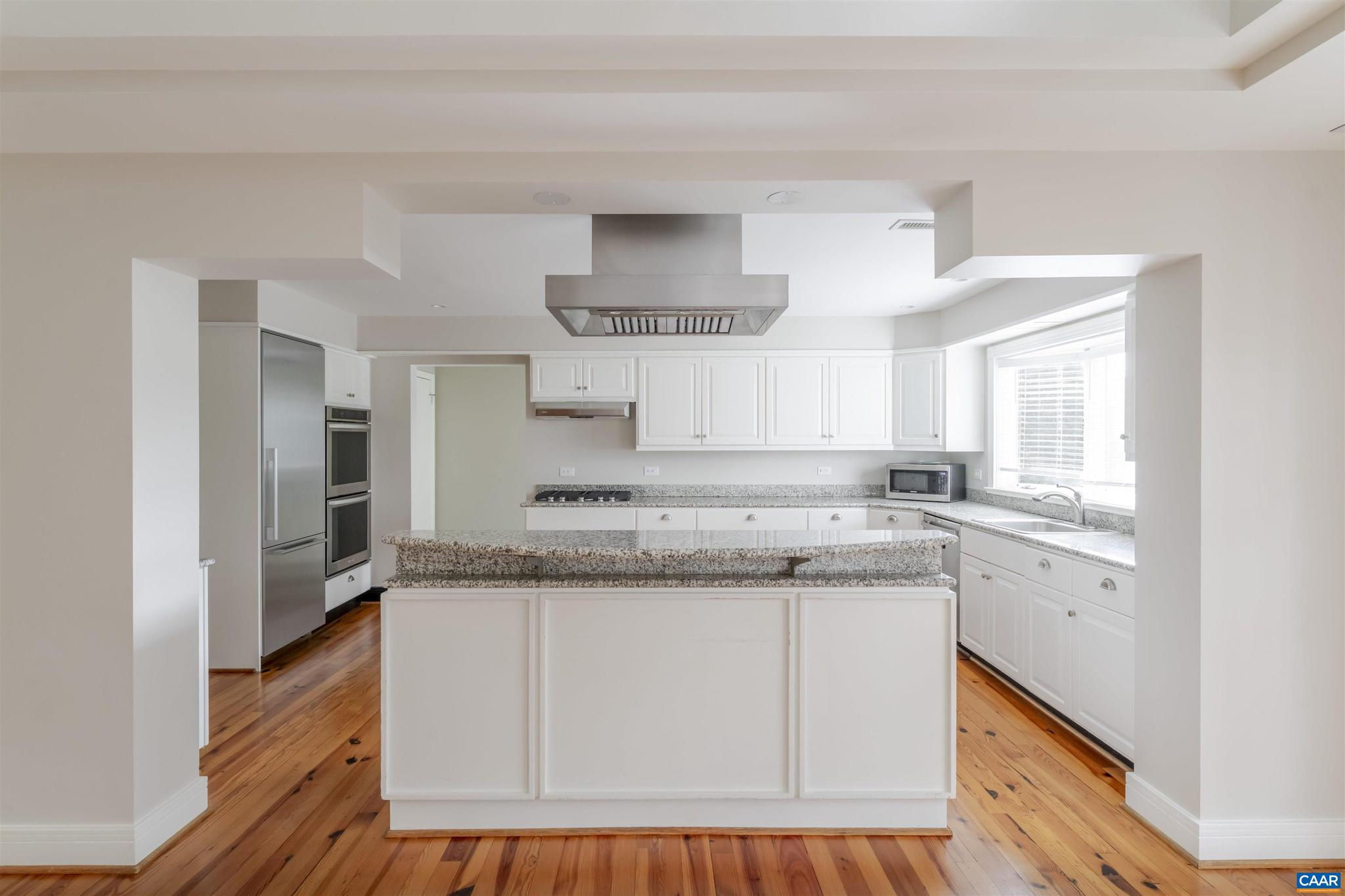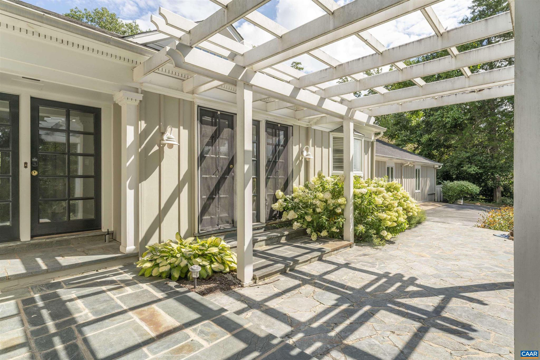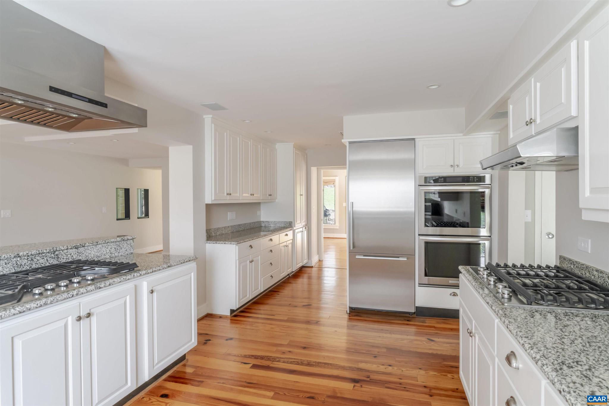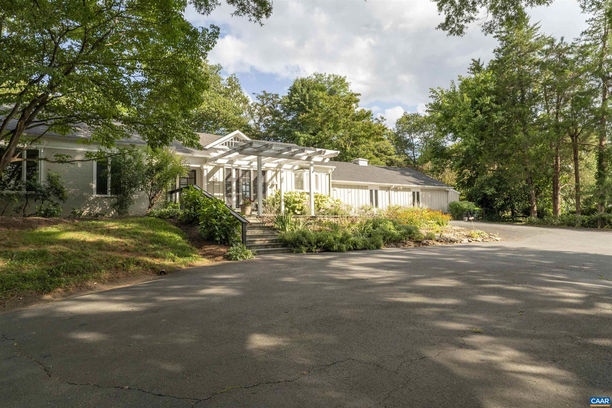 Located in HIGHLY SOUGHT-AFTER BELLAIR NEIGHBORHOOD is this fashionable and completely remodeled 4 bedroom one-level home with many modern features and details including open floor plan, eat-in gourmet kitchen with spacious breakfast and dining areas, large family room and even larger recreation room, tasteful living room with fireplace, plus a huge master bedroom suite with completely modernized bath and dressing room. This home is on an elevated 1.4 acres with panoramic views towards the Birdwood Golf Course. The home also features a lovely and private entertaining area with pool, large concrete terrace and generous pool house with a great room, full kitchen, one bedroom full bath and a large covered exterior porch.,Granite Counter,Painted Cabinets,White Cabinets,Wood Cabinets,Fireplace in Living Room