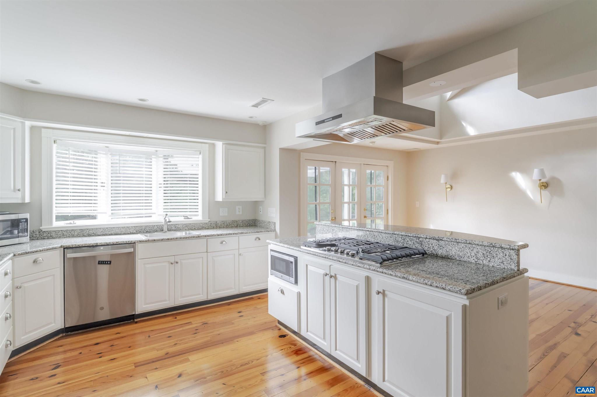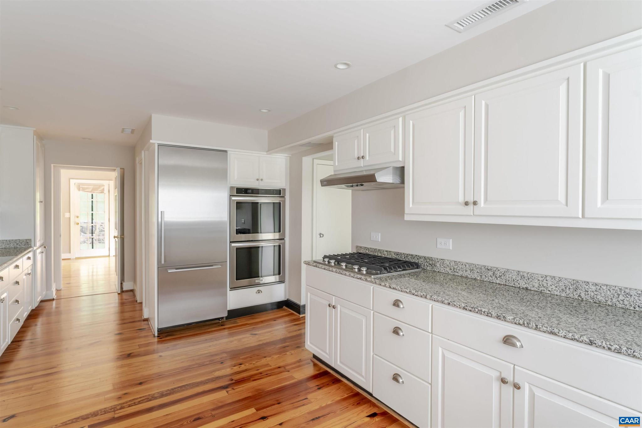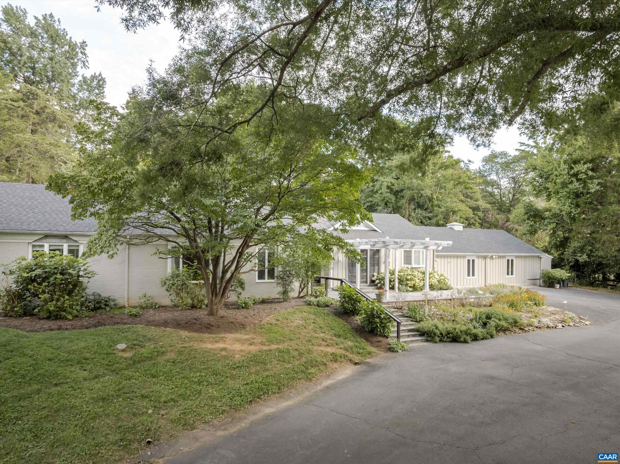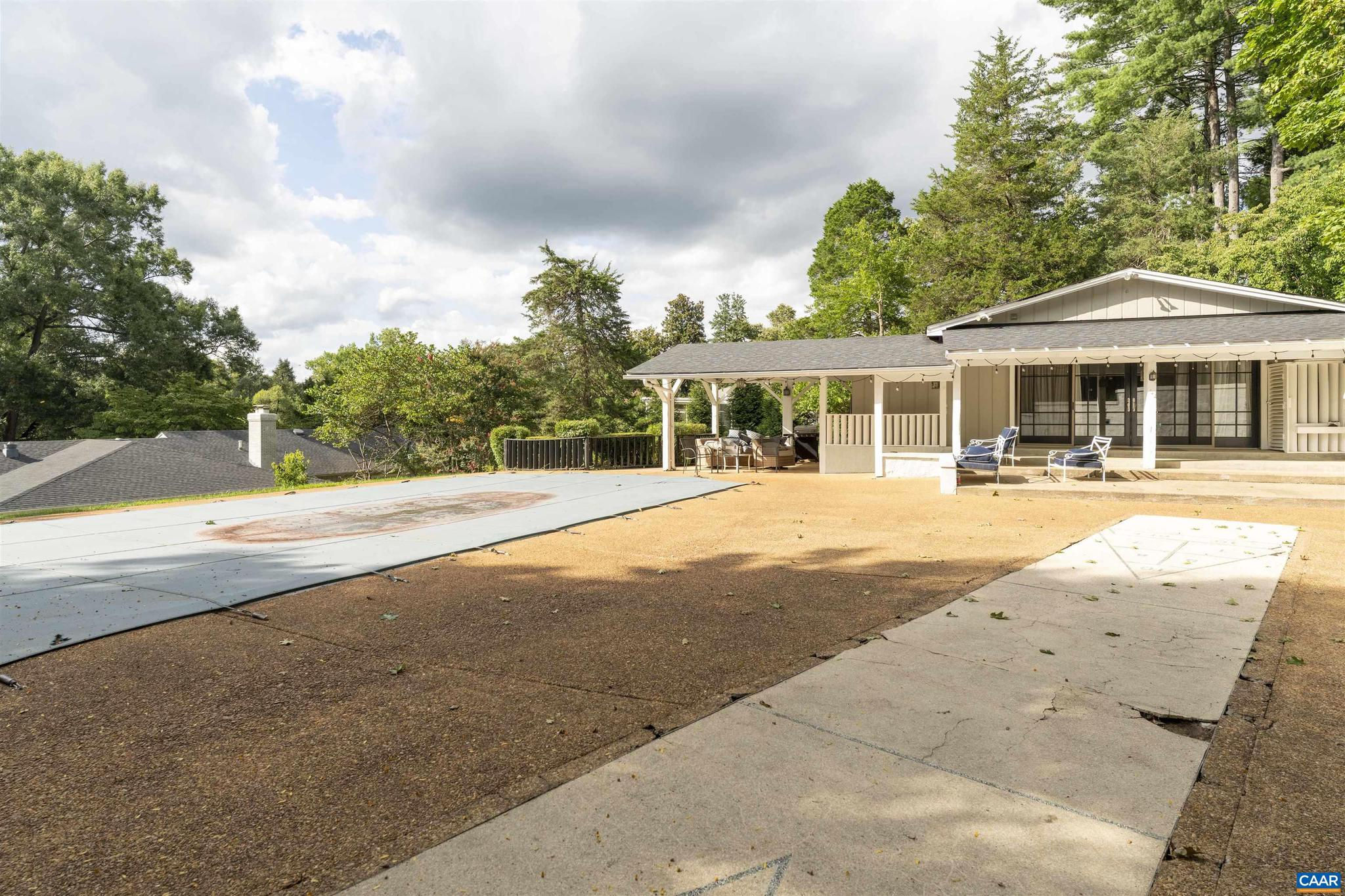 Located in HIGHLY SOUGHT-AFTER BELLAIR NEIGHBORHOOD is this fashionable and completely remodeled 4 bedroom one-level home with many modern features and details including open floor plan, eat-in gourmet kitchen with spacious breakfast and dining areas, large family room and even larger recreation room, tasteful living room with fireplace, plus a huge master bedroom suite with completely modernized bath and dressing room. This home is on an elevated 1.4 acres with panoramic views towards the Birdwood Golf Course. The home also features a lovely and private entertaining area with pool, large concrete terrace and generous pool house with a great room, full kitchen, one bedroom full bath and a large covered exterior porch.,Granite Counter,Painted Cabinets,White Cabinets,Wood Cabinets,Fireplace in Living Room