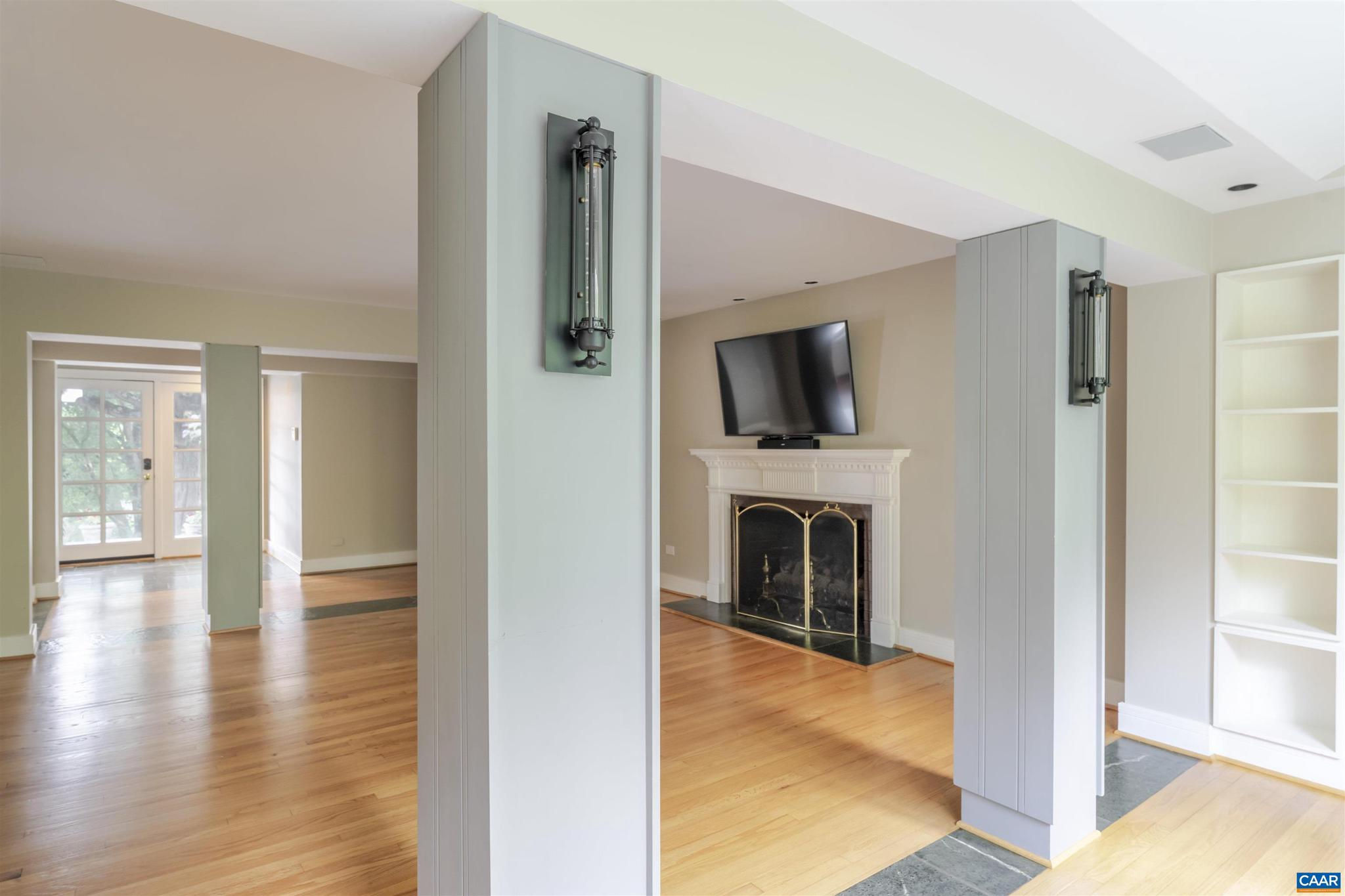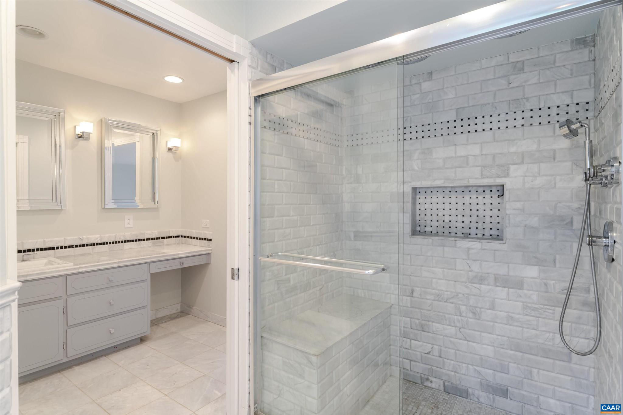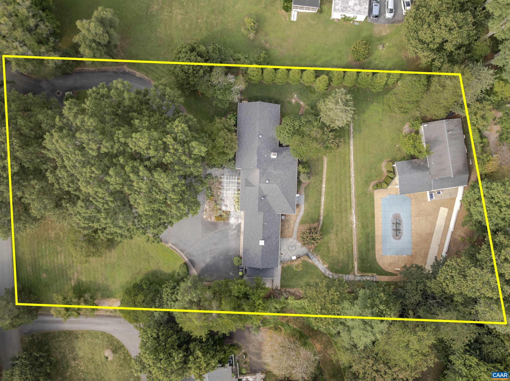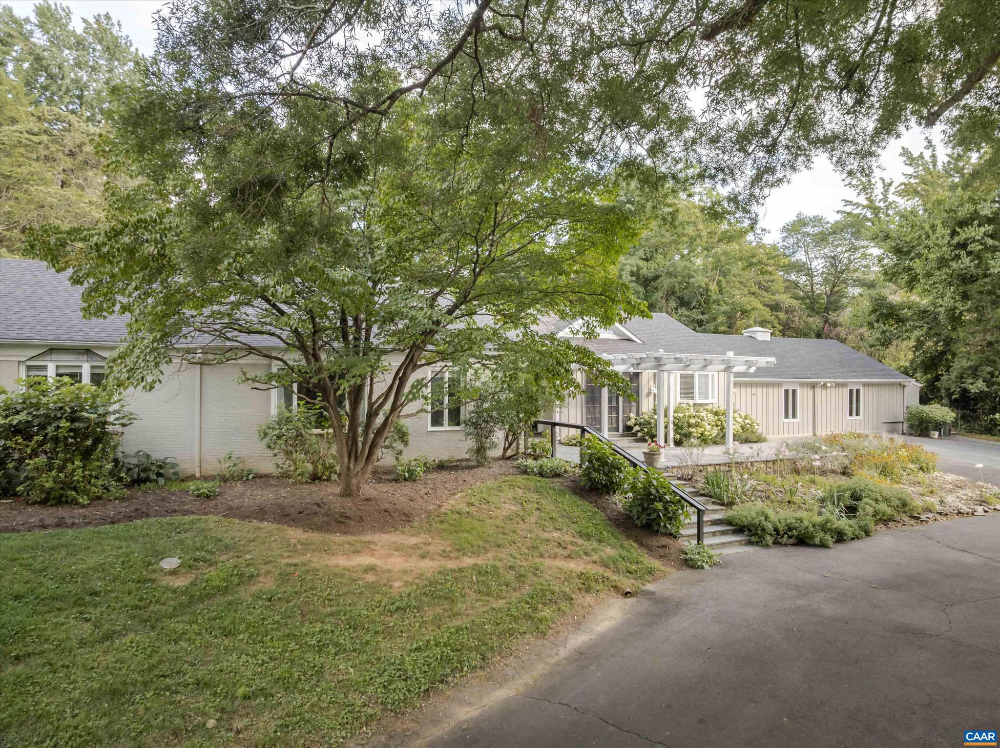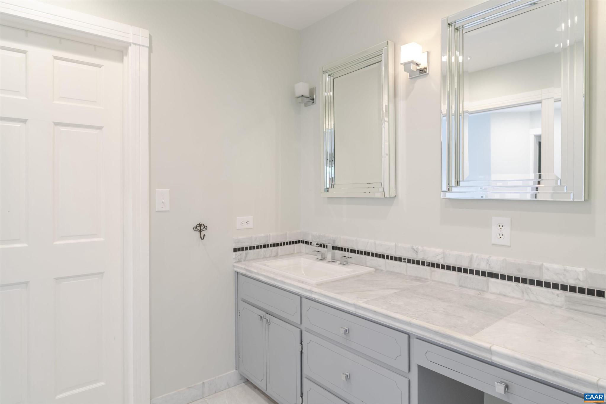 Located in HIGHLY SOUGHT-AFTER BELLAIR NEIGHBORHOOD is this fashionable and completely remodeled 4 bedroom one-level home with many modern features and details including open floor plan, eat-in gourmet kitchen with spacious breakfast and dining areas, large family room and even larger recreation room, tasteful living room with fireplace, plus a huge master bedroom suite with completely modernized bath and dressing room. This home is on an elevated 1.4 acres with panoramic views towards the Birdwood Golf Course. The home also features a lovely and private entertaining area with pool, large concrete terrace and generous pool house with a great room, full kitchen, one bedroom full bath and a large covered exterior porch.,Granite Counter,Painted Cabinets,White Cabinets,Wood Cabinets,Fireplace in Living Room