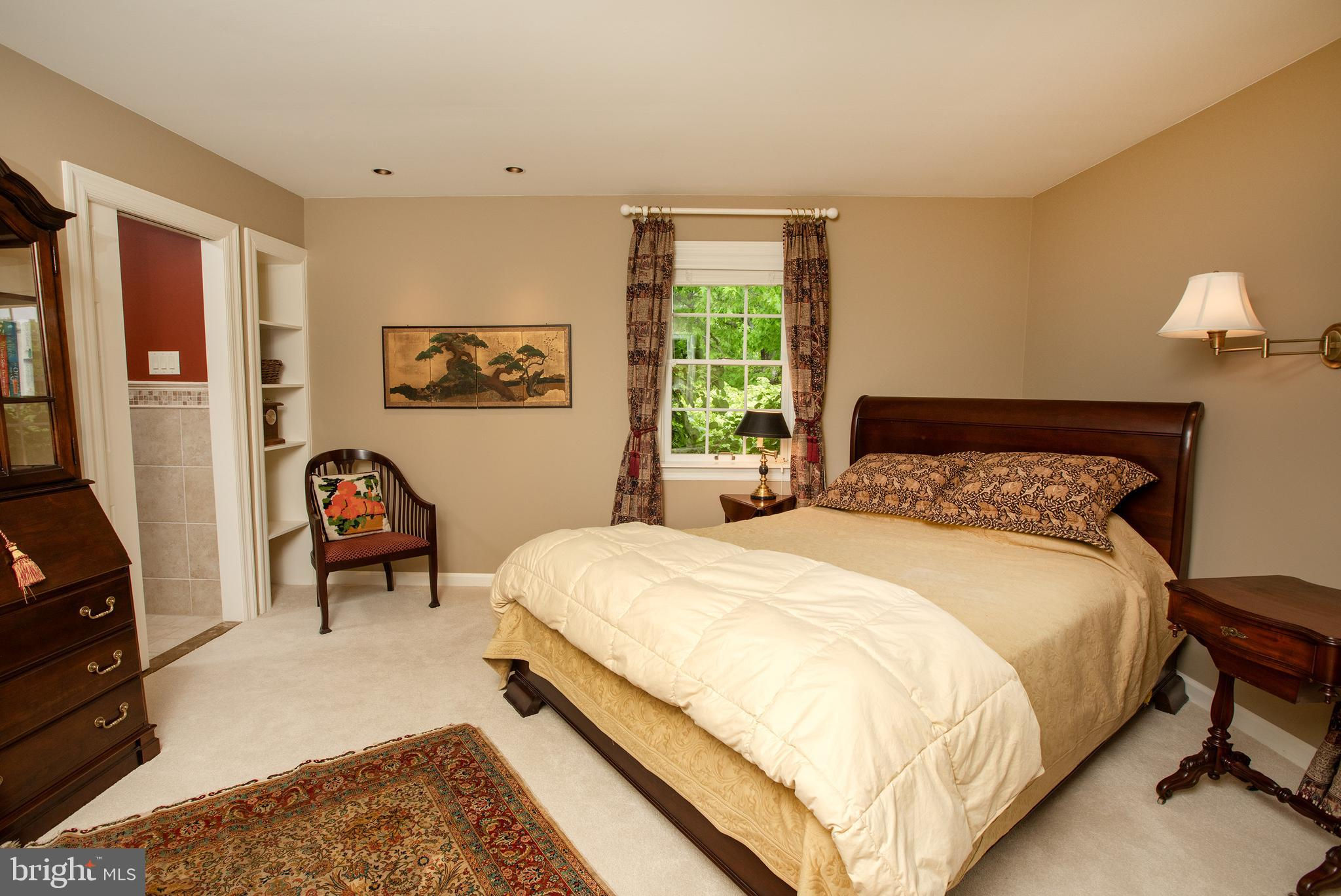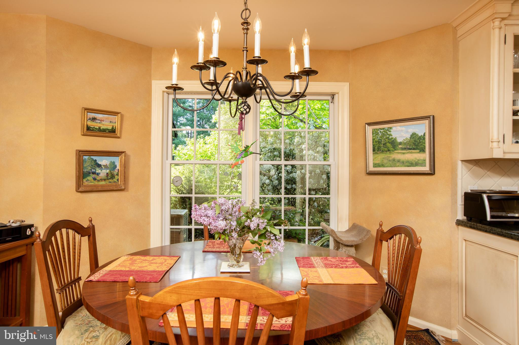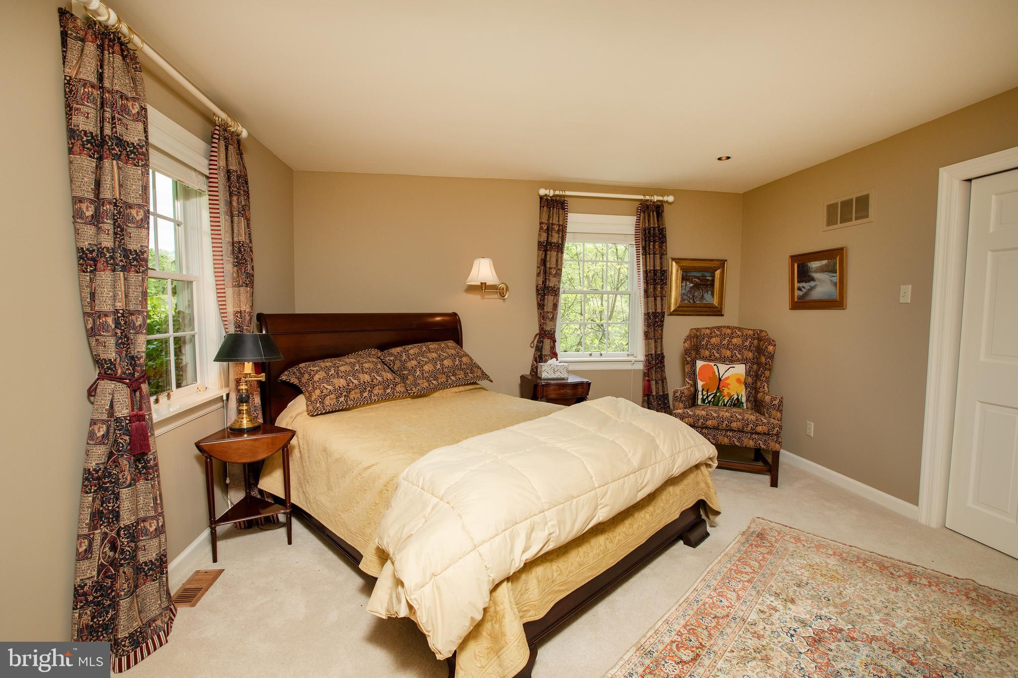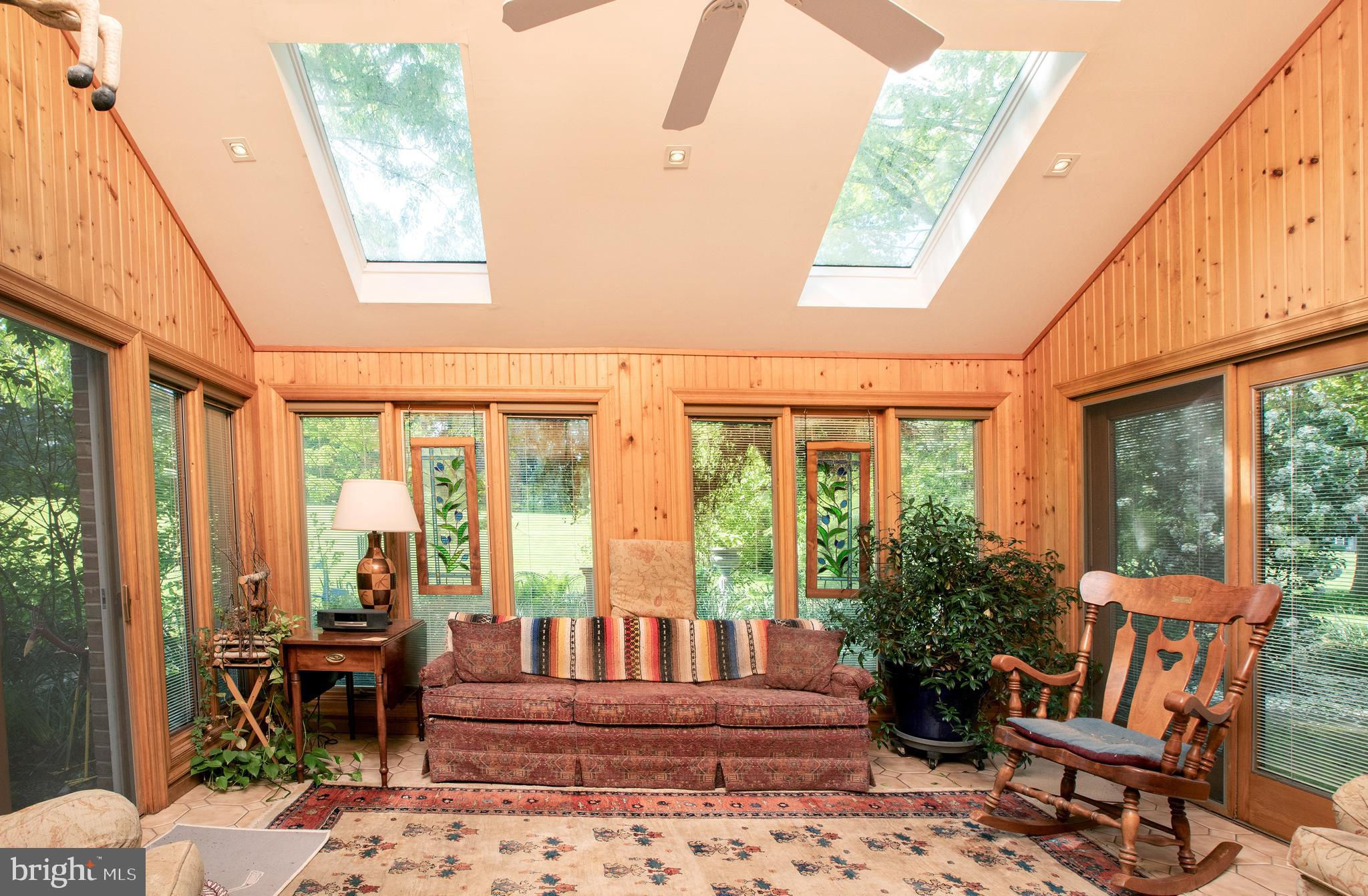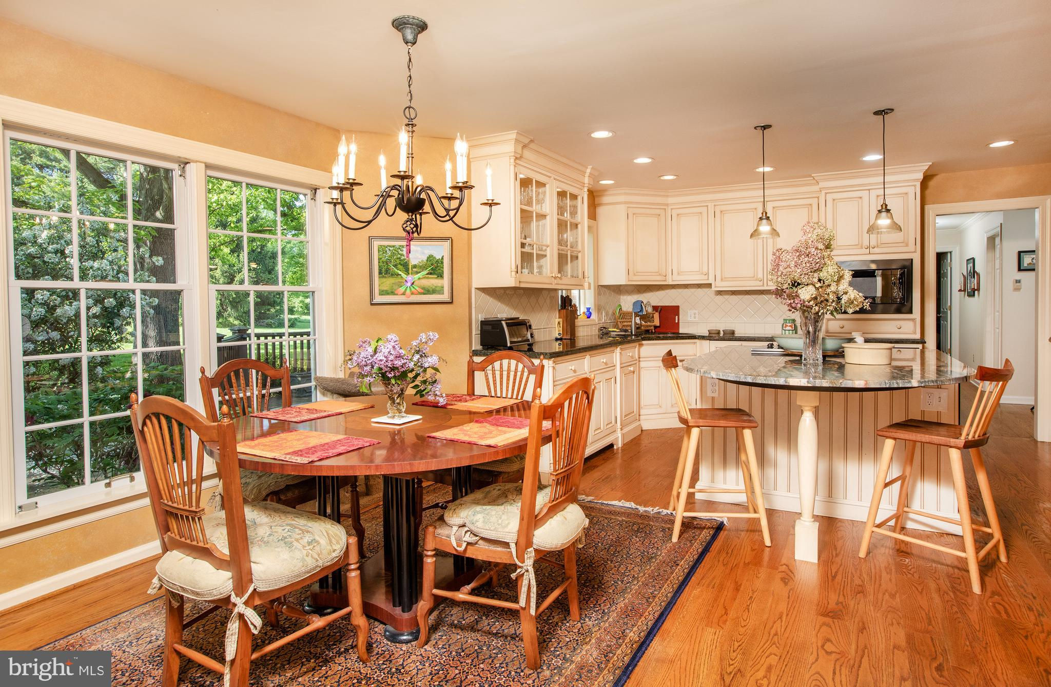 Fronting historic Cuttalossa Rd and creek, this charming Solebury Township cape cod home features a private setting down a winding, tree-lined drive and neatly perched on the top of a hill. Just minutes from downtown New Hope, Doylestown, and primary roads to the greater Delaware Valley area, this flexible floor plan includes a main level full bathroom and the opportunity for a main level master/in-law suite/fifth bedroom or second home office, with quality materials and finishes throughout, and a large flat backyard and swimming pool. Classic Bucks County is celebrated with the over-sized dining room's custom mural painting by local artist Carol Nagel, reflecting the bucolic views out of nearly every window in the home. Show off your cooking skills in the custom kitchen with two wall ovens and Dacor stove top with vent, Sub Zero refrigerator with cabinet-matching front, wine refrigerator, and more all accented by beautiful granite countertops. Two wood-burning fireplaces (one in the office, one in the living room) enhance both work and play areas, and a "four seasons" sun room with high ceilings and skylights offer the perfect entertaining transition area between inside and out: flowing into the rear patio and pergola-covered Trex porch and swimming pool areas. Upstairs are four nicely sized bedrooms, updated bathrooms, and a sprawling master suite with dual private bathrooms, two walk in closets, and private WC's off the shared glass door walk-in shower. Green geothermal HVAC, in the highly desirable NHS school district, and walking distance to the popular local orchard business, enjoy the many historic villages of Solebury just a stone's throw away such as Lumberville on the river and Carversville just minutes away.