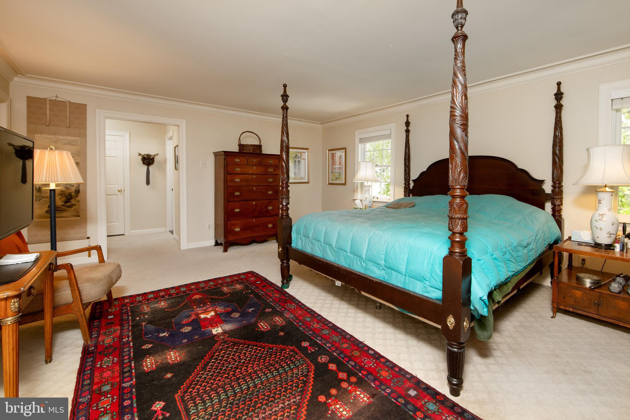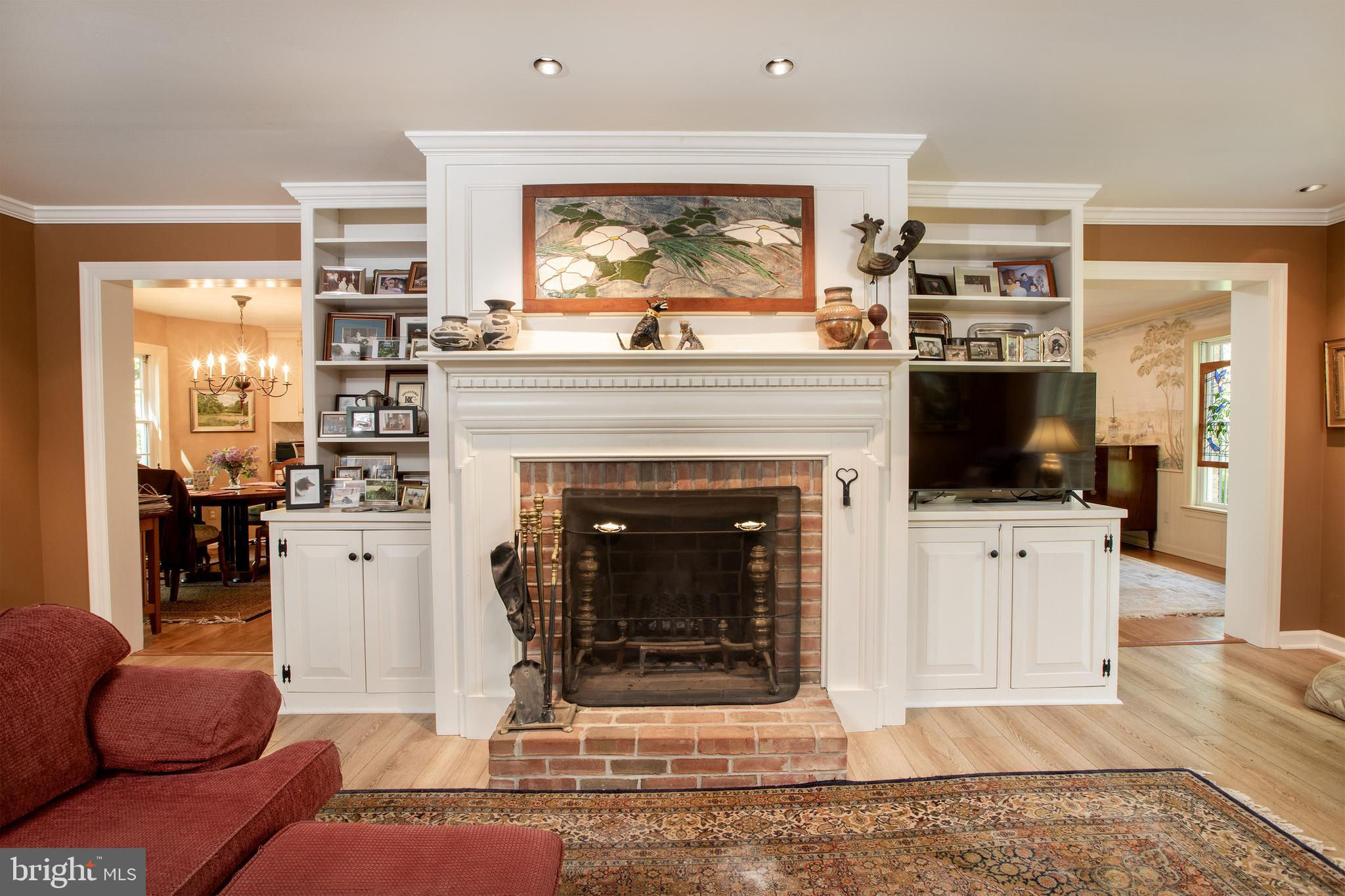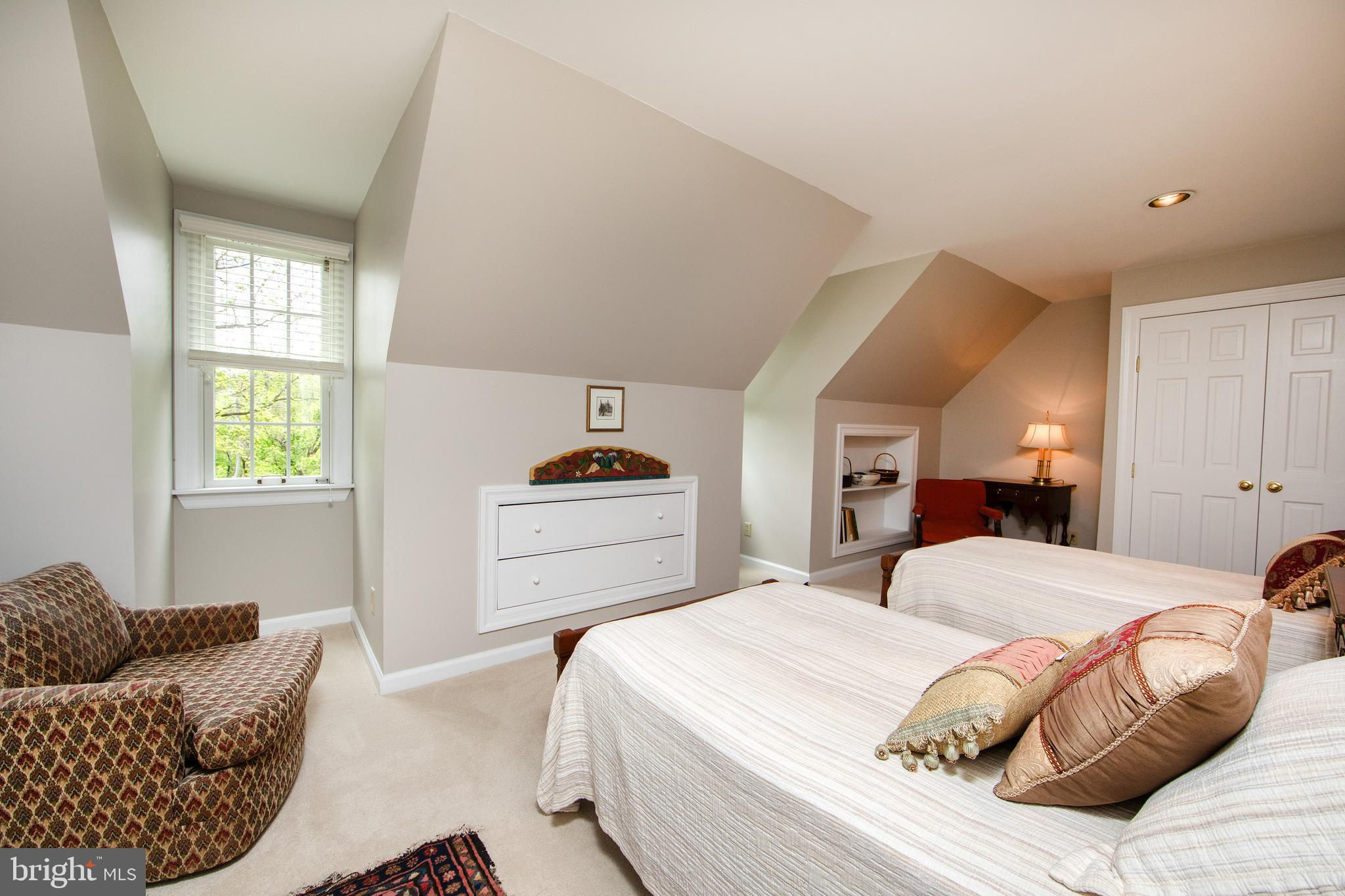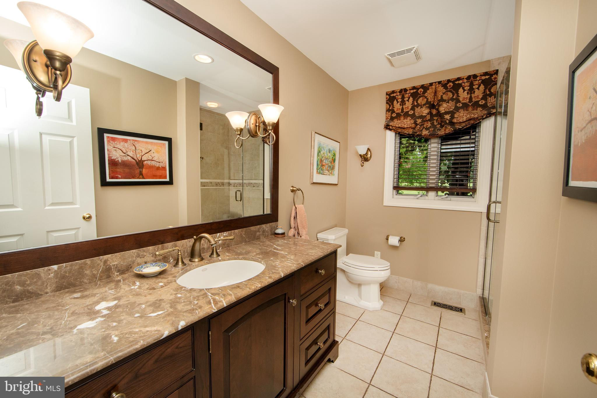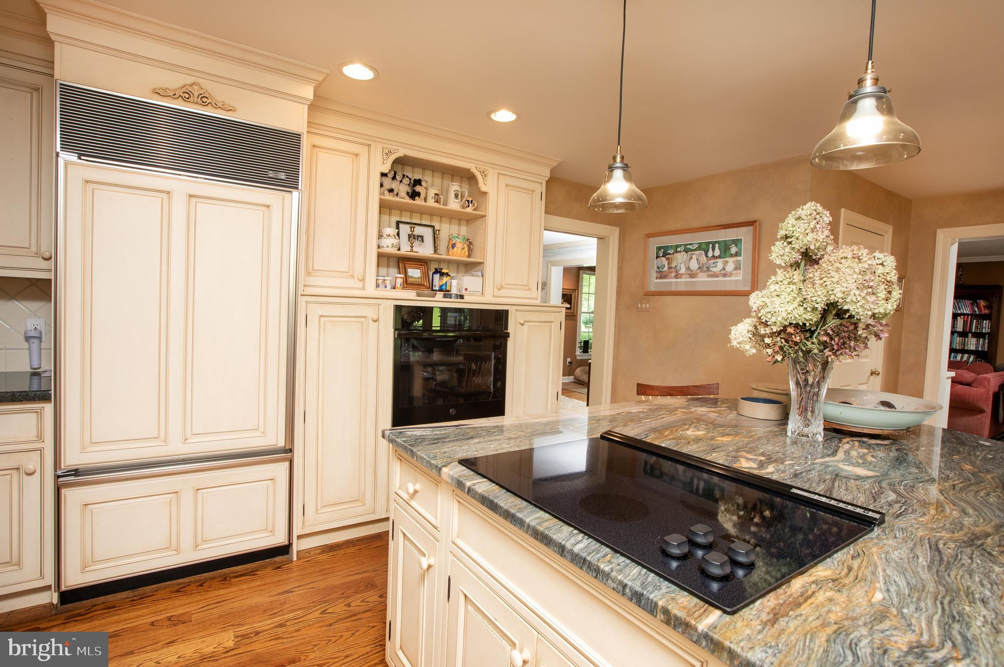 Fronting historic Cuttalossa Rd and creek, this charming Solebury Township cape cod home features a private setting down a winding, tree-lined drive and neatly perched on the top of a hill. Just minutes from downtown New Hope, Doylestown, and primary roads to the greater Delaware Valley area, this flexible floor plan includes a main level full bathroom and the opportunity for a main level master/in-law suite/fifth bedroom or second home office, with quality materials and finishes throughout, and a large flat backyard and swimming pool. Classic Bucks County is celebrated with the over-sized dining room's custom mural painting by local artist Carol Nagel, reflecting the bucolic views out of nearly every window in the home. Show off your cooking skills in the custom kitchen with two wall ovens and Dacor stove top with vent, Sub Zero refrigerator with cabinet-matching front, wine refrigerator, and more all accented by beautiful granite countertops. Two wood-burning fireplaces (one in the office, one in the living room) enhance both work and play areas, and a "four seasons" sun room with high ceilings and skylights offer the perfect entertaining transition area between inside and out: flowing into the rear patio and pergola-covered Trex porch and swimming pool areas. Upstairs are four nicely sized bedrooms, updated bathrooms, and a sprawling master suite with dual private bathrooms, two walk in closets, and private WC's off the shared glass door walk-in shower. Green geothermal HVAC, in the highly desirable NHS school district, and walking distance to the popular local orchard business, enjoy the many historic villages of Solebury just a stone's throw away such as Lumberville on the river and Carversville just minutes away.