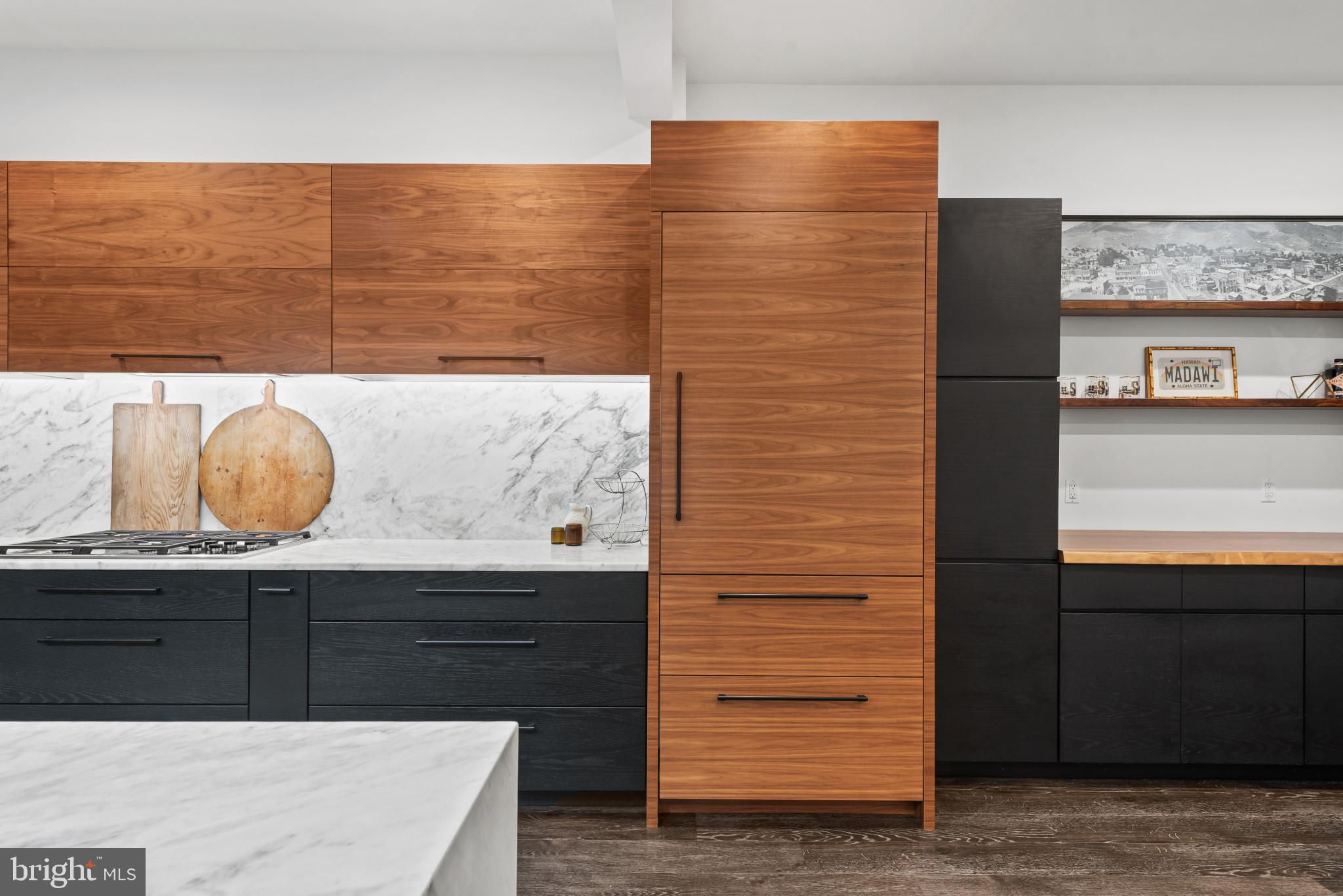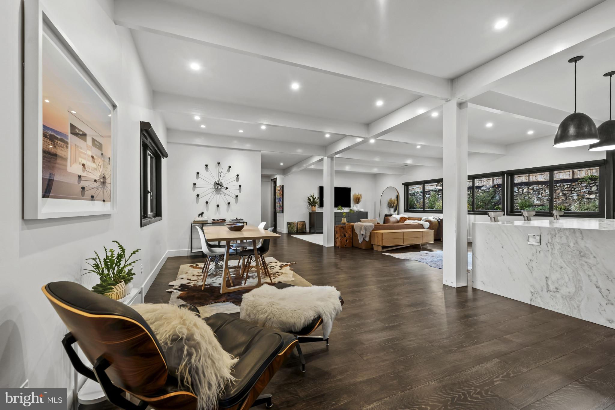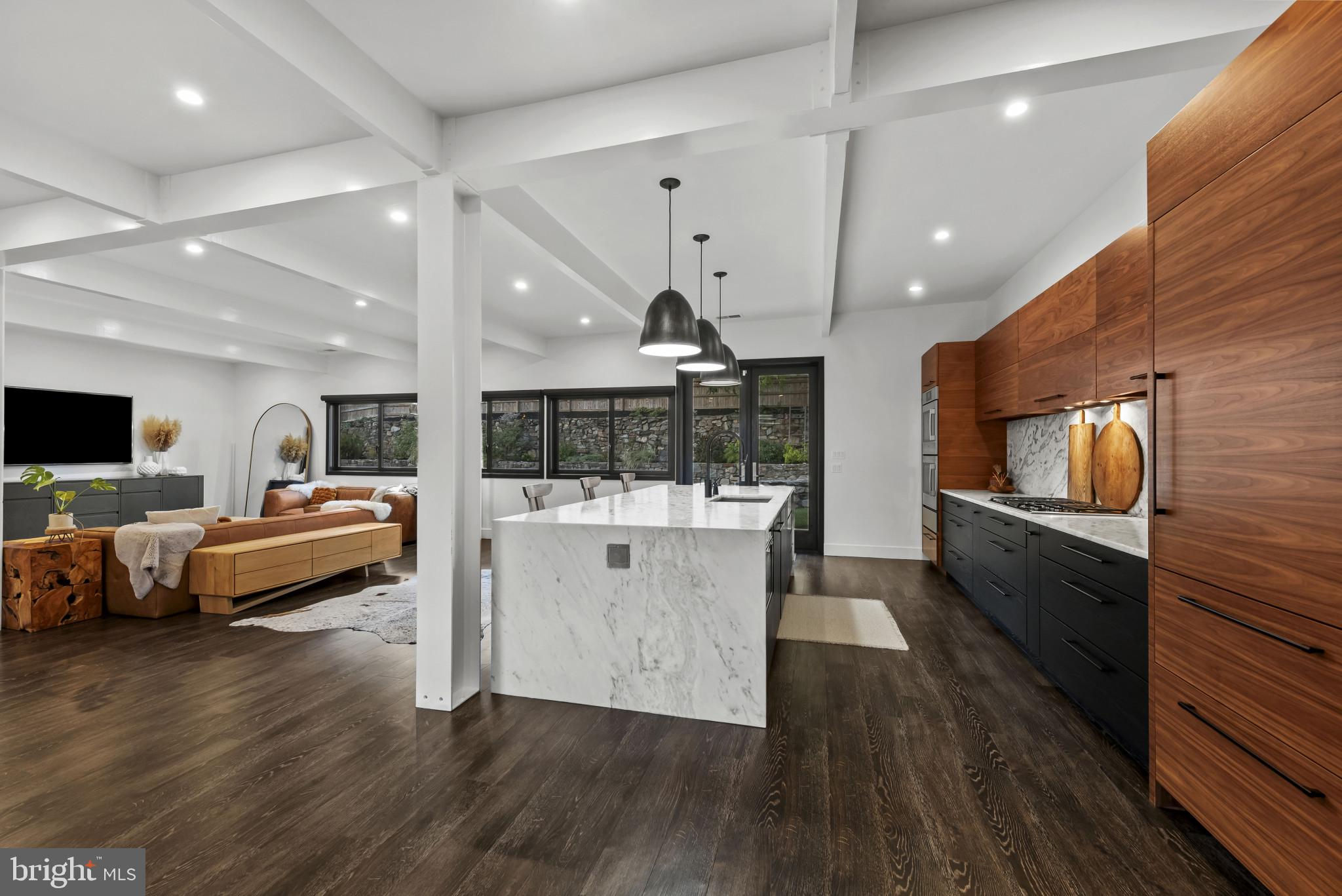 Welcome to 3410 Woodvalley Drive, an unrivaled mid-century modern residence where light, design, and craftsmanship come together. In 2018, the home underwent a full architectural renovation, reconstructed from the inside out with enduring comfort and no detail overlooked. Designed for long-term living rather than resale, every feature blends function and luxury. Passive-solar orientation allows winter sunlight to warm the interiors while roof overhangs limit summer heat. Inside features 10-ft ceilings, exposed beams, wide-plank flooring, and full-height interior and closet doors that stretch nearly floor to ceiling, enhancing the home’s vertical lines and airy feel. The chef’s kitchen includes Wolf, Sub-Zero & Bosch appliances, dual ovens, a five-burner gas range with custom hood, quartzite waterfall island, lift-up cabinetry, hidden outlets, and a drawer-style microwave. The primary suite offers two custom closet systems with built-in drawers and shelving, heated radiant floors, an oversized rain shower, ROHL fixtures, his-and-hers vanities, and custom blackout shades. Additional bedrooms have large windows, sliding barn doors, and built-in closet systems. The mudroom/laundry functions as a secondary prep space and butler’s pantry with deep sink, extra refrigerator, and custom cabinetry. Utility features include a full-home water filtration system and a tankless water heater. The 0.63-acre lot features full yard irrigation, original stone retaining wall with steps to the upper lawn, a six-foot custom wood fence (2023), a glass-door two-car garage, and an attached second storage garage. Architectural up-lighting showcases the home after dark. The backyard offers space for future amenities such as a pool or putting green, while preserving open green space. Modern California living, timeless elegance, and thoughtful design all come together here, a home this intentional and refined is rarely available in Woodvalley.