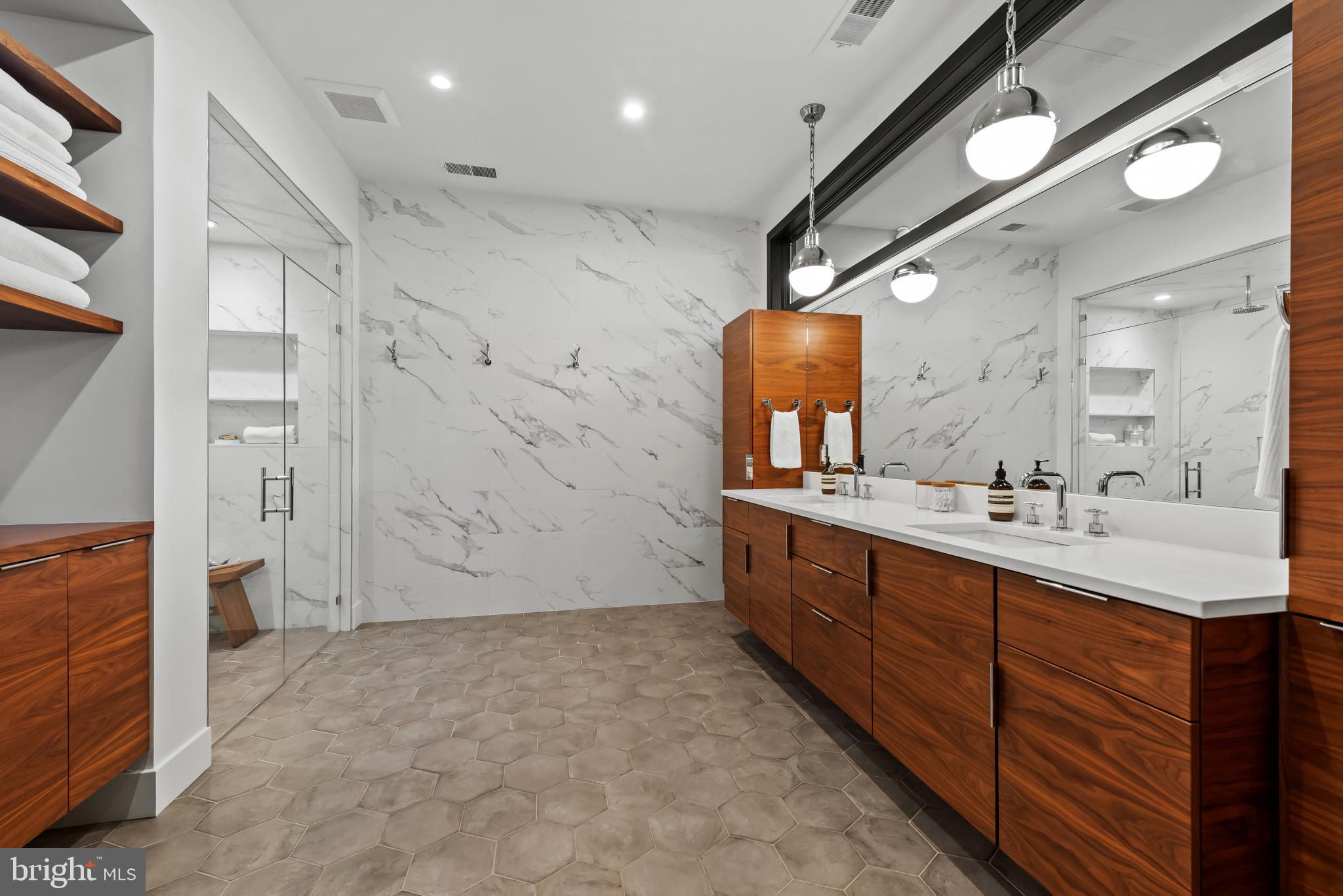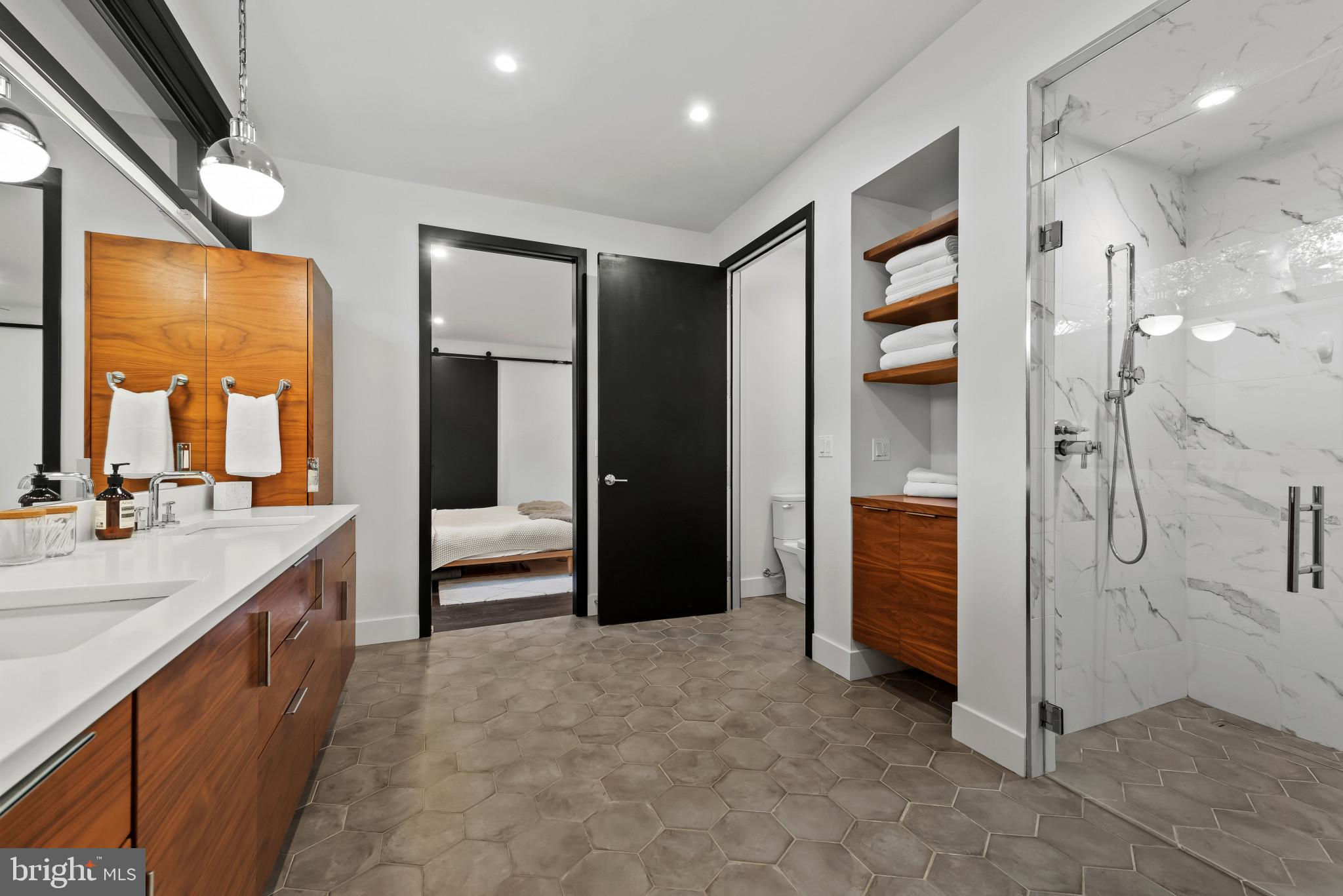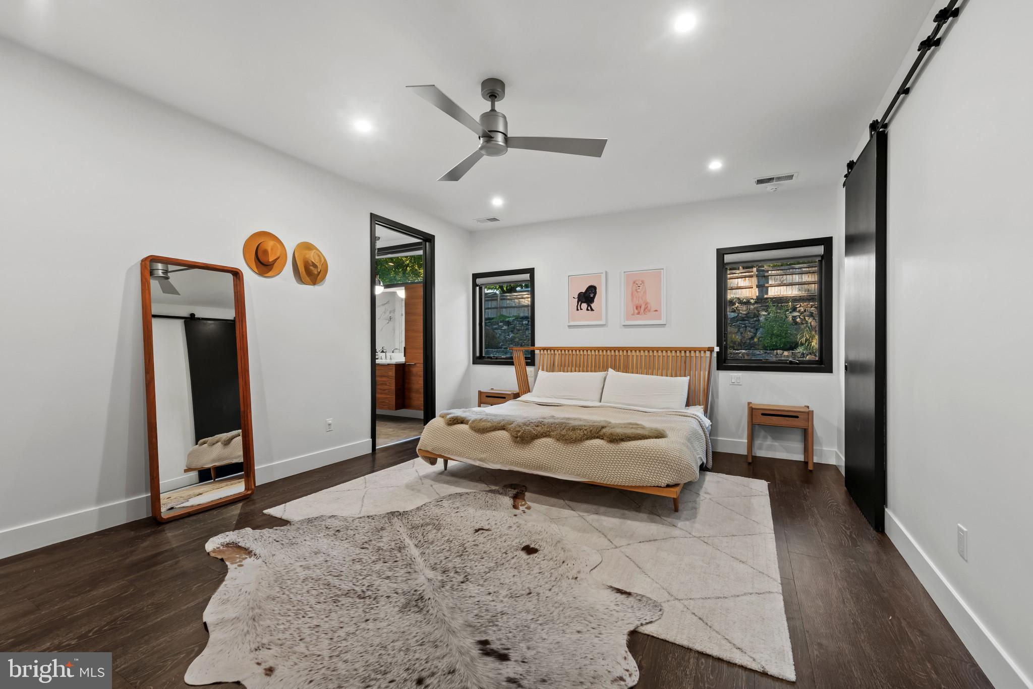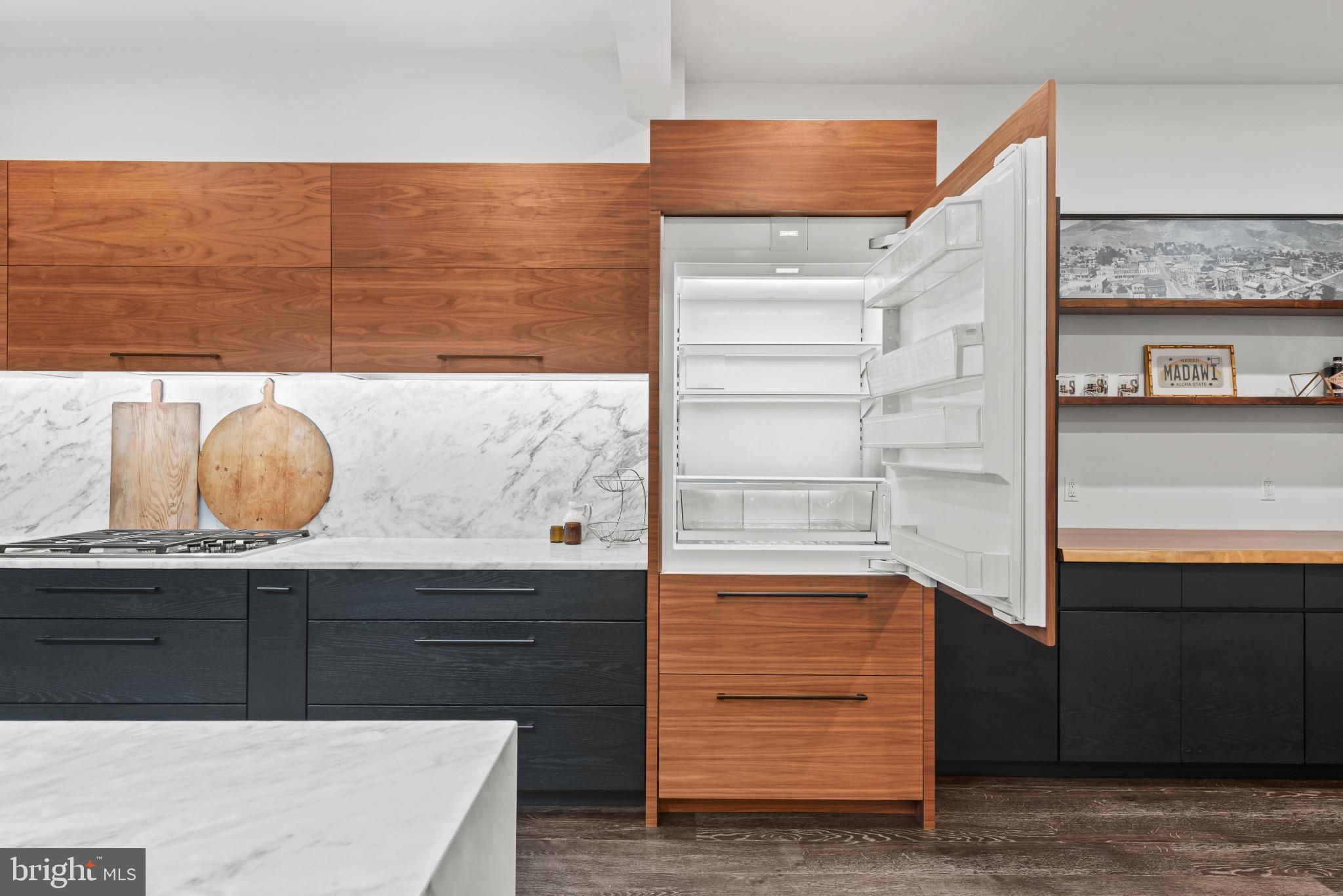 Welcome to 3410 Woodvalley Drive, an unrivaled mid-century modern residence where light, design, and craftsmanship come together. In 2018, the home underwent a full architectural renovation, reconstructed from the inside out with enduring comfort and no detail overlooked. Designed for long-term living rather than resale, every feature blends function and luxury. Passive-solar orientation allows winter sunlight to warm the interiors while roof overhangs limit summer heat. Inside features 10-ft ceilings, exposed beams, wide-plank flooring, and full-height interior and closet doors that stretch nearly floor to ceiling, enhancing the home’s vertical lines and airy feel. The chef’s kitchen includes Wolf, Sub-Zero & Bosch appliances, dual ovens, a five-burner gas range with custom hood, quartzite waterfall island, lift-up cabinetry, hidden outlets, and a drawer-style microwave. The primary suite offers two custom closet systems with built-in drawers and shelving, heated radiant floors, an oversized rain shower, ROHL fixtures, his-and-hers vanities, and custom blackout shades. Additional bedrooms have large windows, sliding barn doors, and built-in closet systems. The mudroom/laundry functions as a secondary prep space and butler’s pantry with deep sink, extra refrigerator, and custom cabinetry. Utility features include a full-home water filtration system and a tankless water heater. The 0.63-acre lot features full yard irrigation, original stone retaining wall with steps to the upper lawn, a six-foot custom wood fence (2023), a glass-door two-car garage, and an attached second storage garage. Architectural up-lighting showcases the home after dark. The backyard offers space for future amenities such as a pool or putting green, while preserving open green space. Modern California living, timeless elegance, and thoughtful design all come together here, a home this intentional and refined is rarely available in Woodvalley.