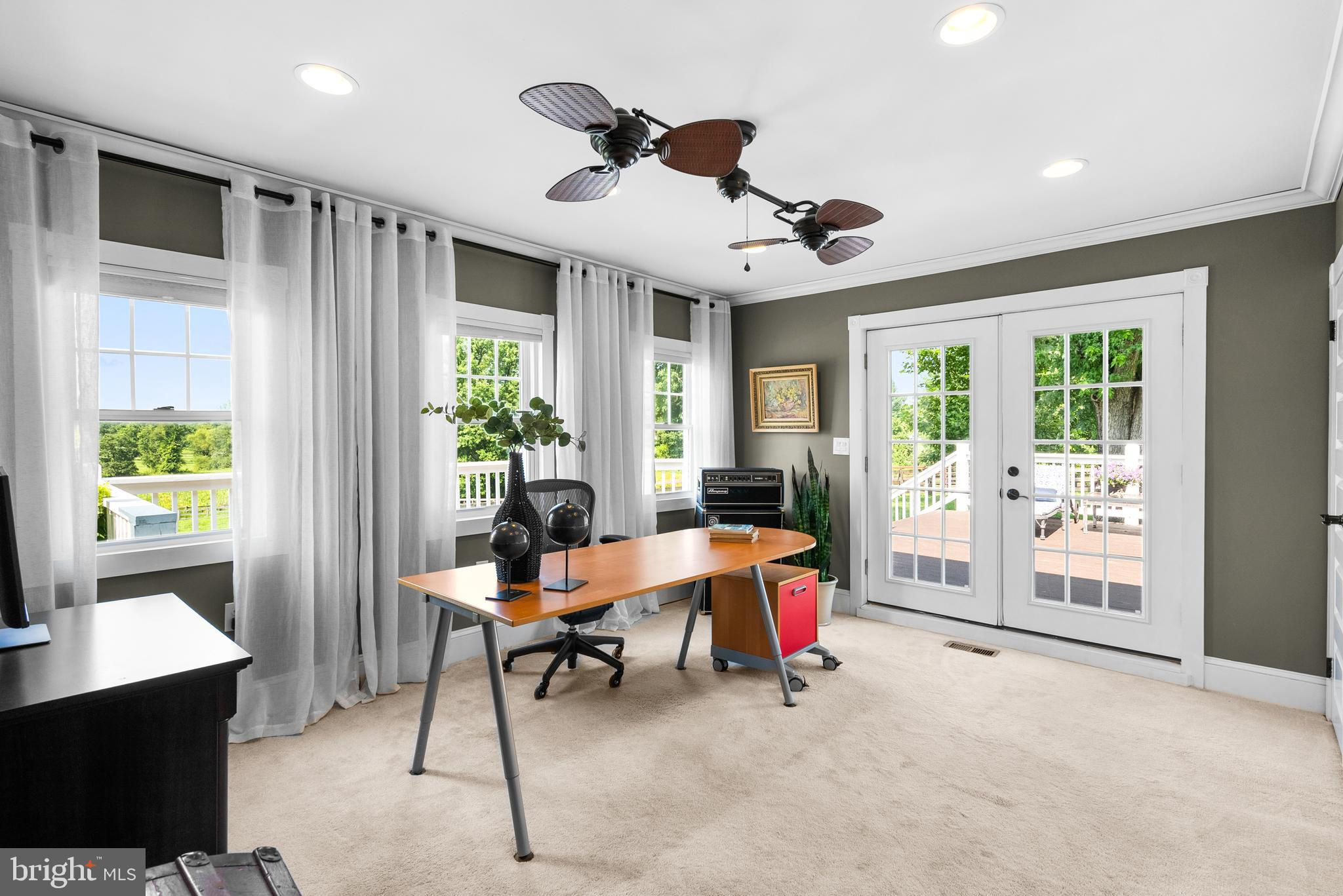 This is the ONE. The entire package. Welcome to Compass Hill Farm, an exceptional equestrian estate located in the heart of Howard County. This 5-bed, 3.5 bath, 4224 sq ft home sits on 10.3 acres of lush pastures, landscaped grounds, and natural beauty. A true turn-key equestrian facility that reflects thoughtful design, care, and maintenance. The property is zoned for blue ribbon schools and within easy access of dining, shopping, and entertainment. All this within 45 min to DC, 30-minutes to Baltimore and 15-minutes to Columbia. The expansive, gorgeous farmhouse reflects rustic authenticity in an atmosphere of refined living. The home is an entertainer's delight, with a large open-concept kitchen and floor plan that centers around the home's showpiece mid-19th century log cabin "heart." Multiple French doors, custom millwork, and over 40 large windows fill the home with light and allow 360-degree views of the property. Take in the seasons from the expansive front porch and watch your horses graze, backlit by stunning sunrises and sunsets. Set back from the road, and buffered by an idyllic meandering stream and riparian habitat, the home and farm offer a refuge of beauty and peace for both horse and human. The discerning equestrian enthusiast will enjoy a 2013 Mennonite-built 5-stall center-aisle carriage barn with heated, custom-built tack room, hot/cold wash rack, large hay loft, rubber bone-paver aisle, and farm-grade, ceiling-mounted fans in each stall. Three-board fenced pastures are optimized for all-season sustainability with upgraded heavy-use areas and heated automatic waterers. A state-of-the-art, all-weather, 100’ x 150' laser-graded riding arena with a bluestone base topped by premium rubber/sand arena footing and a bridle path allows for versatile and year-round schooling. A 40' x 60" pole barn with water and electric offers versatile options for leisure or business. Surrounded by renowned competition venues, world-class clinicians and trainers, and thriving local US Pony Clubs, this estate offers it all. Experience the beauty and serenity of this special estate today.