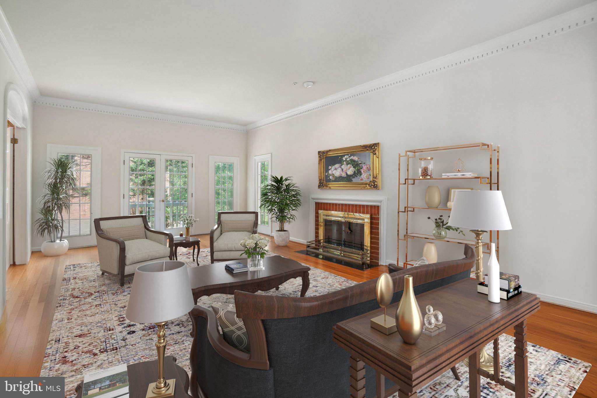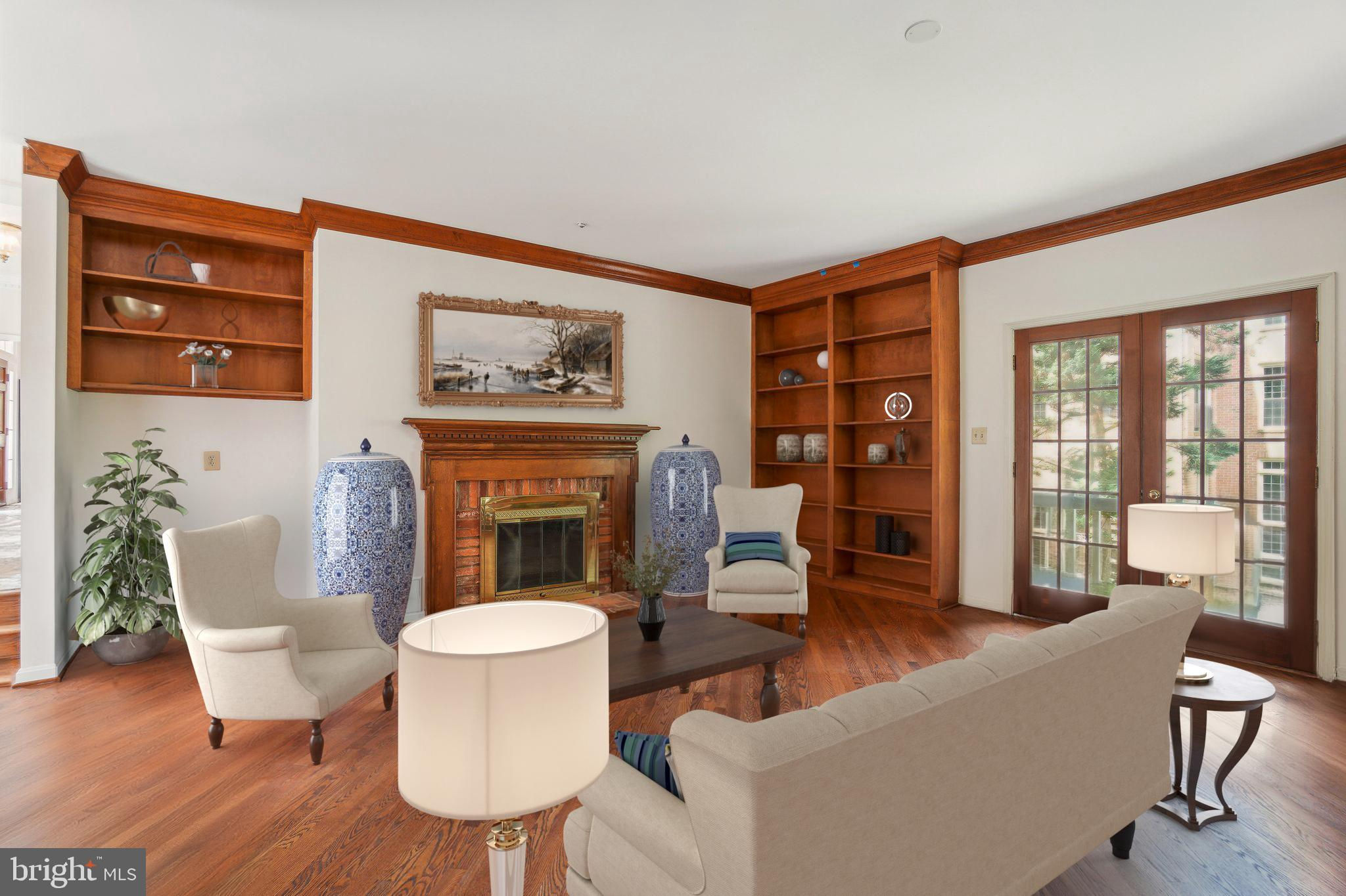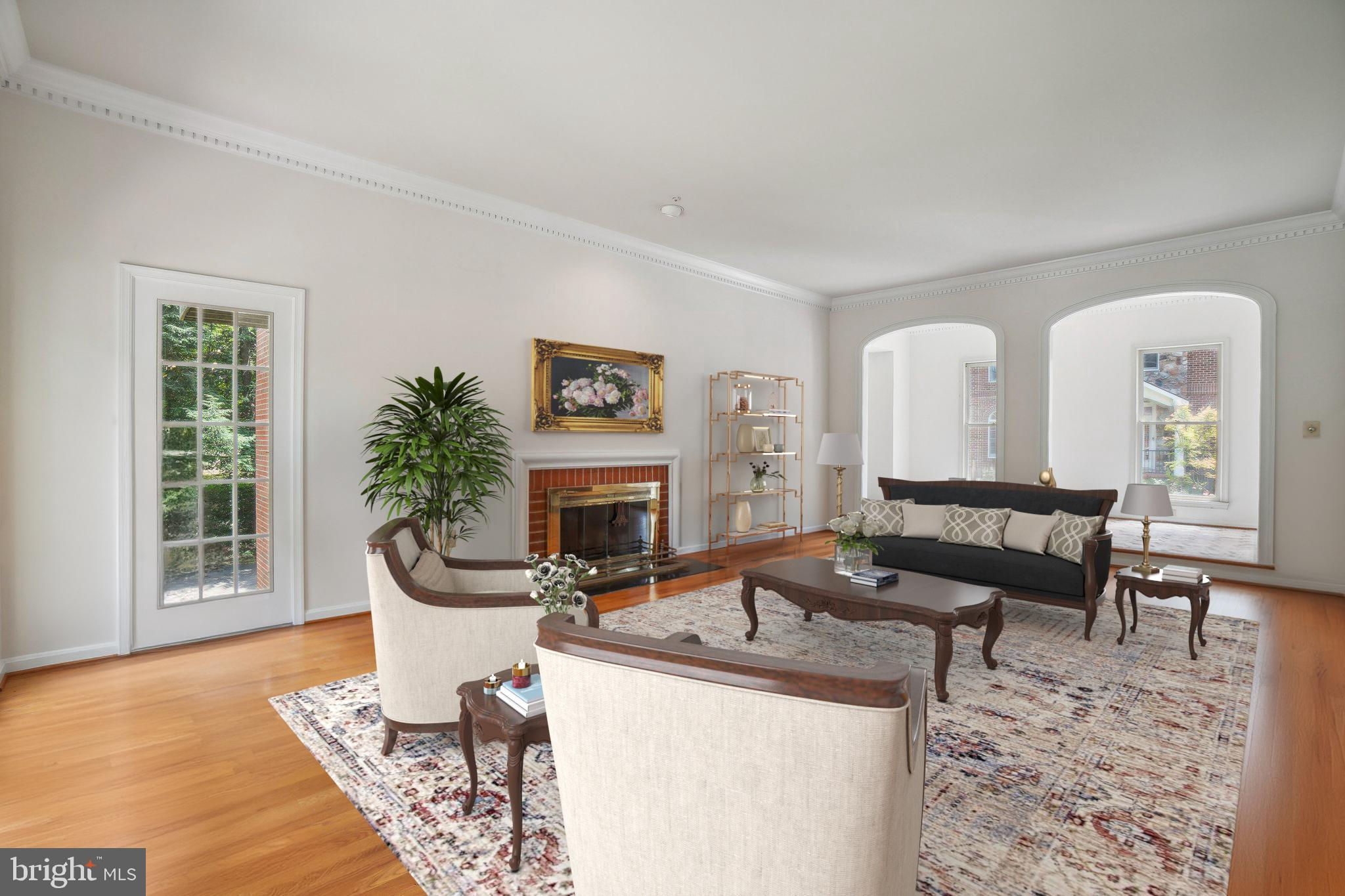 Nestled majestically in the heart of one of Arlington's most esteemed neighborhoods, this classic brick Georgian Colonial residence has 6000+ finished square feet over three floors, exuding high-end finishes and spaces that have timeless charm and subtle sophistication. Discover a grand gallery adorned with five pairs of French doors, beckoning in streams of natural light that dance across the hardwood floors and hand-made American ceramic tile, simultaneously curating intimate spaces and grand entertaining. Begin with a step down living room with 10 ft ceilings, full length windows, crown and dentil molding, and fireplace with a marble hearth. Next, there’s a step down library, also with 10 ft ceilings and crown & dentil molding, with an exceptional Birch Livery bar made from 19th c. french moldings. Library shelving custom made from a 200 year old red oak tree felled on the property. The first floor layout continues with a formal dining room with a second fireplace and White Mariposa marble surround. The grandeur of the central gallery leads directly to the gourmet kitchen with center island, Corian countertops, a suite of stainless steel appliances, two chef prep sinks, gas stove and oven, a breakfast area, butler’s serving pantry, bay window and seamless access to the large rear deck so that the entertainment slips easily into the night air. Upstairs are not one but two Primary Suites. The largest bedroom has a sitting room that is expansive enough to accommodate an eat-in area or home gym, an Azul Baia Brazilian blue marble hearth fireplace, kitchenette with sink/fridge and cabinetry, plus a cantilevered Juliet balcony for taking your morning coffee with the sunrise and birdsong. Luxury continues through glass french doors into the master dressing room with built-in wardrobe and shelving, and the day calmly ends with a refreshing soak in the whirlpool tub, his/her vanities, a second toilet and bidet, double shower heads and skylight above. The upstairs is complete with three additional spacious bedrooms, ample closet storage, and its own electric hot water heater. The lower level is not to be outdone, with a huge gathering space centered around yet another fireplace, a Virginia Pine raised platform ideal for an eating area or burgeoning busker musician, a third wet bar and kitchenette, full bath, bay window and fifth fireplace. The wine cellar is swoon-worthy with racks made from the same 200 year old red oak tree that was felled on the property. A majority of the lower level is above ground, making this as sun filled as the upper two stories; walkout to the rear patio and deck. Brand new Basement flooring has been updated to a light oak luxury vinyl plank! Utility room provides a brand new GE washer/dryer, roughed in wiring for potential spa, two-zoned heat pump system, two-zoned hot water system (one gas, one electric) and upgraded 400 amp electrical panel. Side-loading garage and expansive driveway provides 5-6 parking spaces and boat, ensuring convenience and ease for all occasions. The enviable lot has a mature, varied landscaping with edible fruit and vegetable trees and raised gardens, plus extensive outdoor-feature lighting. Of further interest, the property’s western property line divides Arlington and McLean and would have, historically, been part of George Washington’s survey and Civil War memorabilia has been found on the Lot! Less than a mile from Washington Golf and Country Club and Marymount University, just down the street to the highly-sought Jamestown Elementary school, a mecca of coffee shops and dining areas nearby, this location is undeniably Central to so many choices and offers a stress-free commute in multiple directions!