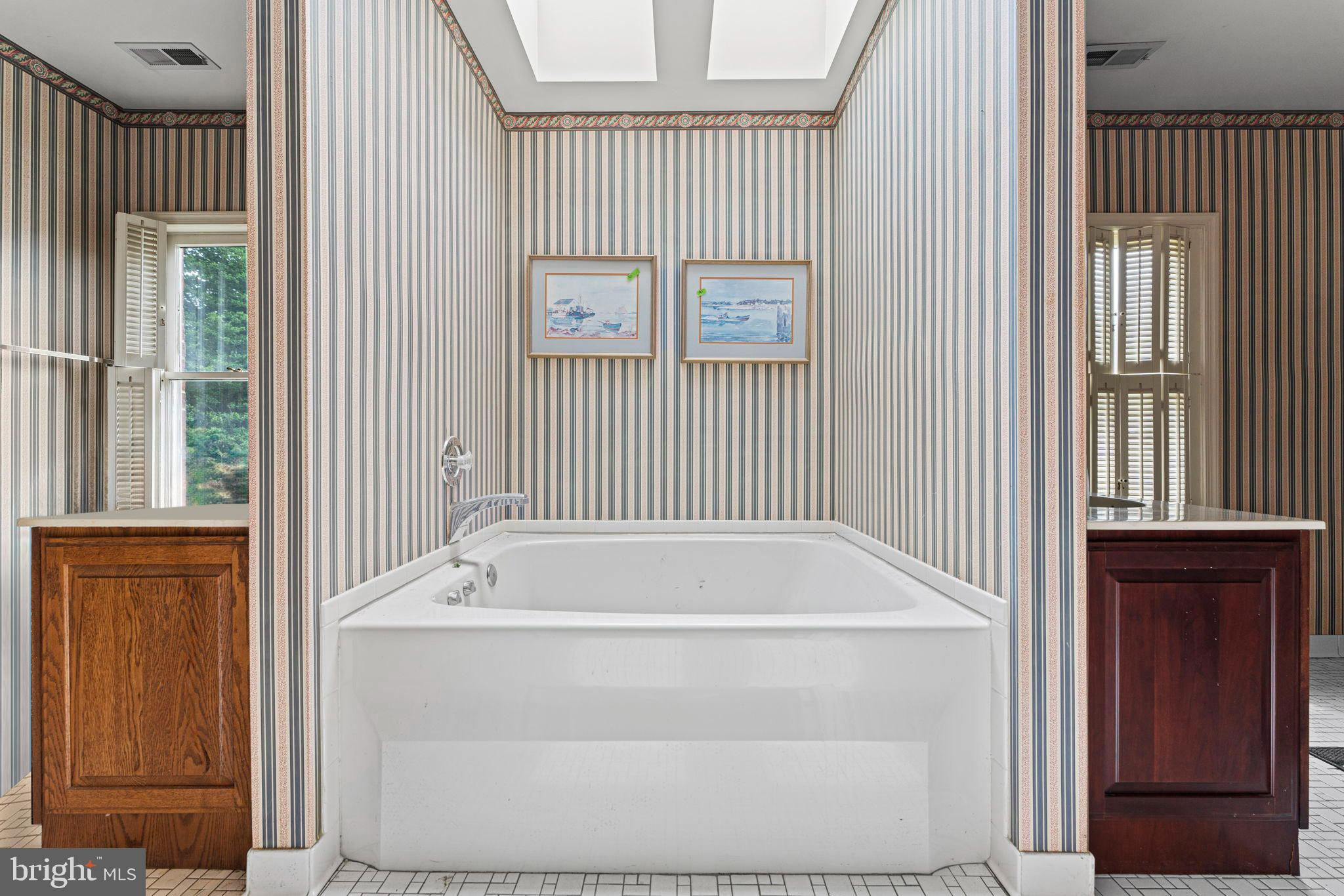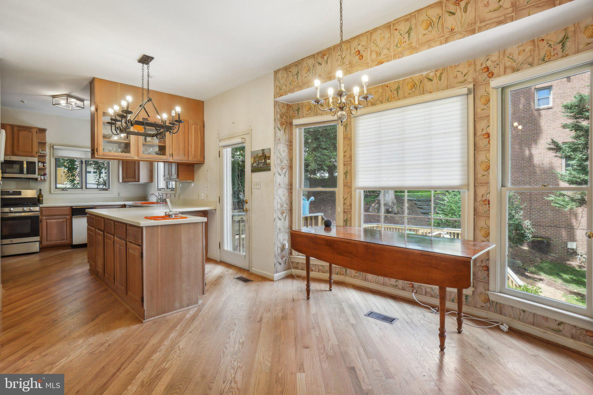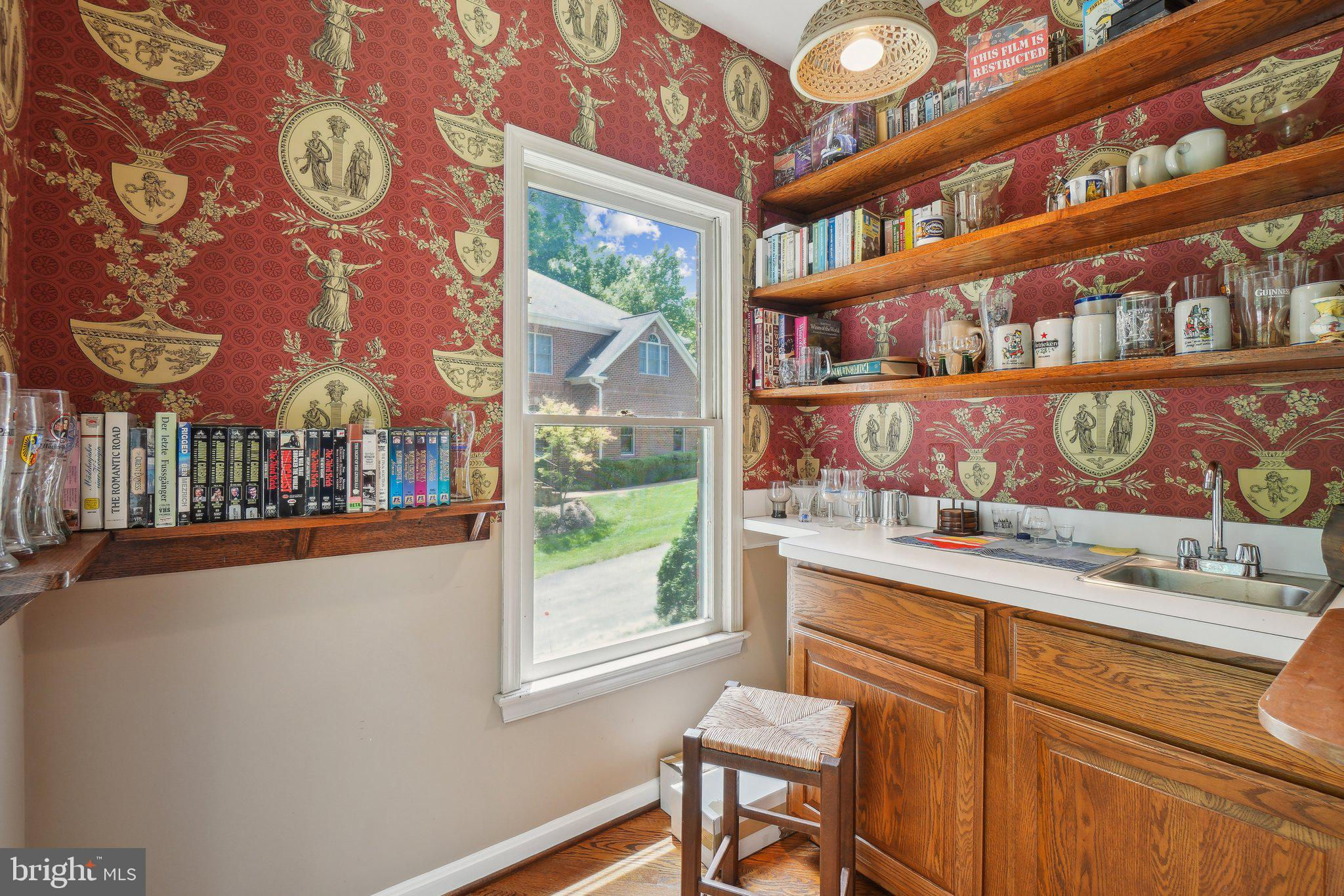 Nestled majestically in the heart of one of Arlington's most esteemed neighborhoods, this classic brick Georgian Colonial residence has 6000+ finished square feet over three floors, exuding high-end finishes and spaces that have timeless charm and subtle sophistication. Discover a grand gallery adorned with five pairs of French doors, beckoning in streams of natural light that dance across the hardwood floors and hand-made American ceramic tile, simultaneously curating intimate spaces and grand entertaining. Begin with a step down living room with 10 ft ceilings, full length windows, crown and dentil molding, and fireplace with a marble hearth. Next, there’s a step down library, also with 10 ft ceilings and crown & dentil molding, with an exceptional Birch Livery bar made from 19th c. french moldings. Library shelving custom made from a 200 year old red oak tree felled on the property. The first floor layout continues with a formal dining room with a second fireplace and White Mariposa marble surround. The grandeur of the central gallery leads directly to the gourmet kitchen with center island, Corian countertops, a suite of stainless steel appliances, two chef prep sinks, gas stove and oven, a breakfast area, butler’s serving pantry, bay window and seamless access to the large rear deck so that the entertainment slips easily into the night air. Upstairs are not one but two Primary Suites. The largest bedroom has a sitting room that is expansive enough to accommodate an eat-in area or home gym, an Azul Baia Brazilian blue marble hearth fireplace, kitchenette with sink/fridge and cabinetry, plus a cantilevered Juliet balcony for taking your morning coffee with the sunrise and birdsong. Luxury continues through glass french doors into the master dressing room with built-in wardrobe and shelving, and the day calmly ends with a refreshing soak in the whirlpool tub, his/her vanities, a second toilet and bidet, double shower heads and skylight above. The upstairs is complete with three additional spacious bedrooms, ample closet storage, and its own electric hot water heater. The lower level is not to be outdone, with a huge gathering space centered around yet another fireplace, a Virginia Pine raised platform ideal for an eating area or burgeoning busker musician, a third wet bar and kitchenette, full bath, bay window and fifth fireplace. The wine cellar is swoon-worthy with racks made from the same 200 year old red oak tree that was felled on the property. A majority of the lower level is above ground, making this as sun filled as the upper two stories; walkout to the rear patio and deck. Brand new Basement flooring has been updated to a light oak luxury vinyl plank! Utility room provides a brand new GE washer/dryer, roughed in wiring for potential spa, two-zoned heat pump system, two-zoned hot water system (one gas, one electric) and upgraded 400 amp electrical panel. Side-loading garage and expansive driveway provides 5-6 parking spaces and boat, ensuring convenience and ease for all occasions. The enviable lot has a mature, varied landscaping with edible fruit and vegetable trees and raised gardens, plus extensive outdoor-feature lighting. Of further interest, the property’s western property line divides Arlington and McLean and would have, historically, been part of George Washington’s survey and Civil War memorabilia has been found on the Lot! Less than a mile from Washington Golf and Country Club and Marymount University, just down the street to the highly-sought Jamestown Elementary school, a mecca of coffee shops and dining areas nearby, this location is undeniably Central to so many choices and offers a stress-free commute in multiple directions!