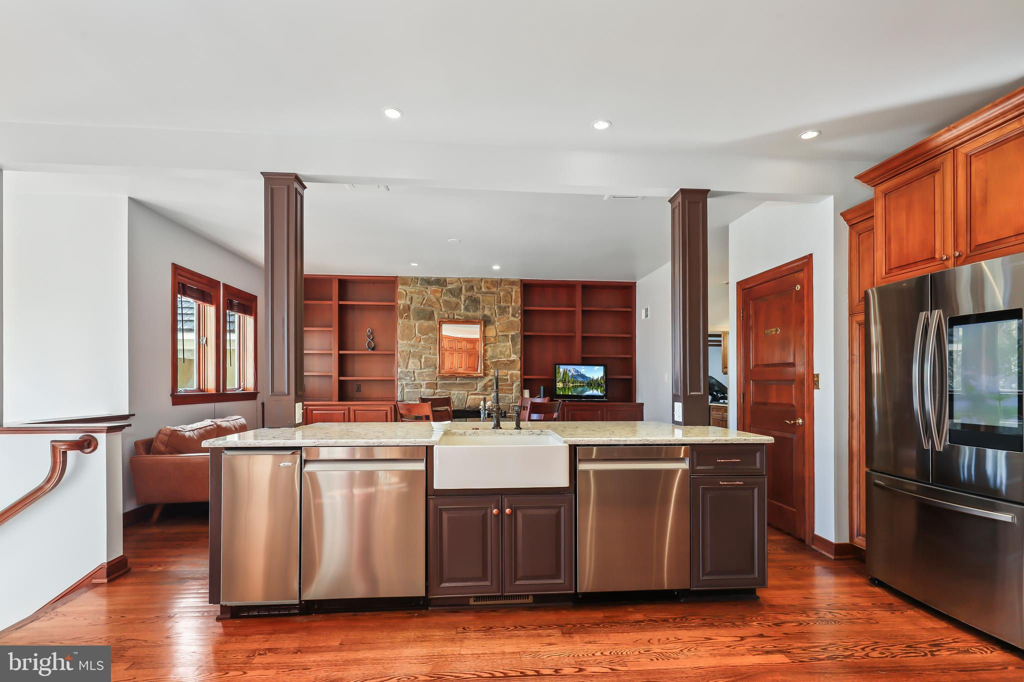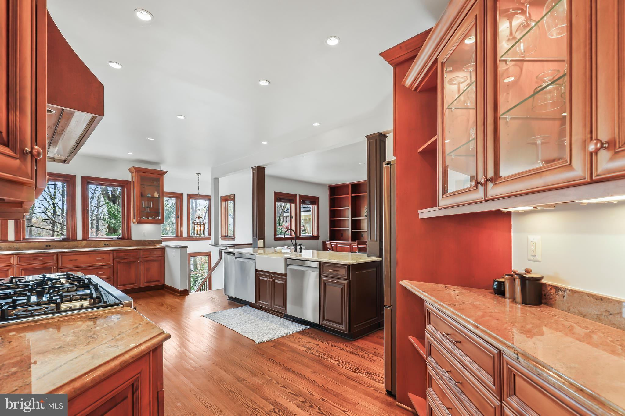 Professional exterior photos coming 4/15. Beautiful European style adaptable and multigenerational house on a very large lot for Arlington, 10 minutes away from Georgetown DC. With an elevator servicing all three floors and a fully independent in-law suite and a garage for car collectors. The house was fully renovated in 2022. There are 2 bedrooms with full bathrooms upstairs. The owner's bedroom is very spacious with a large walk-in closet and a large space for multilevel shoe-rack for shoe-lovers. Daylight embraces the room, bathroom, and closet from sunset to sundown through the windows and skylights. The ground floor includes a very well lit wooden office space, gas fireplace room, and dining room. The huge kitchen (with a wood fireplace) has a remodeled island with a big counter (with bar space on one side) and farmhouse sink makes your cooking and dining experience extremely pleasant. The in-law suite (or guest house) is independent and has its own kitchen, washer/dryer, heating/cooling system, attached garage, entry and exit, and pool access. The bedroom has a walk-in closet and a large beautiful Italian full bathroom. The bottom floor leads to the backyard and the heated pool. It has includes three bedrooms and 2 bathrooms. One of the bedrooms is owner's bedroom with a walk-in closet space and a full bathroom. Detached from the house is the second garage space fitting 4 cars. The front of the house has wonderful grass and the cobble area and drive way can fit another 10 cars for those who like large gatherings and pool parties!