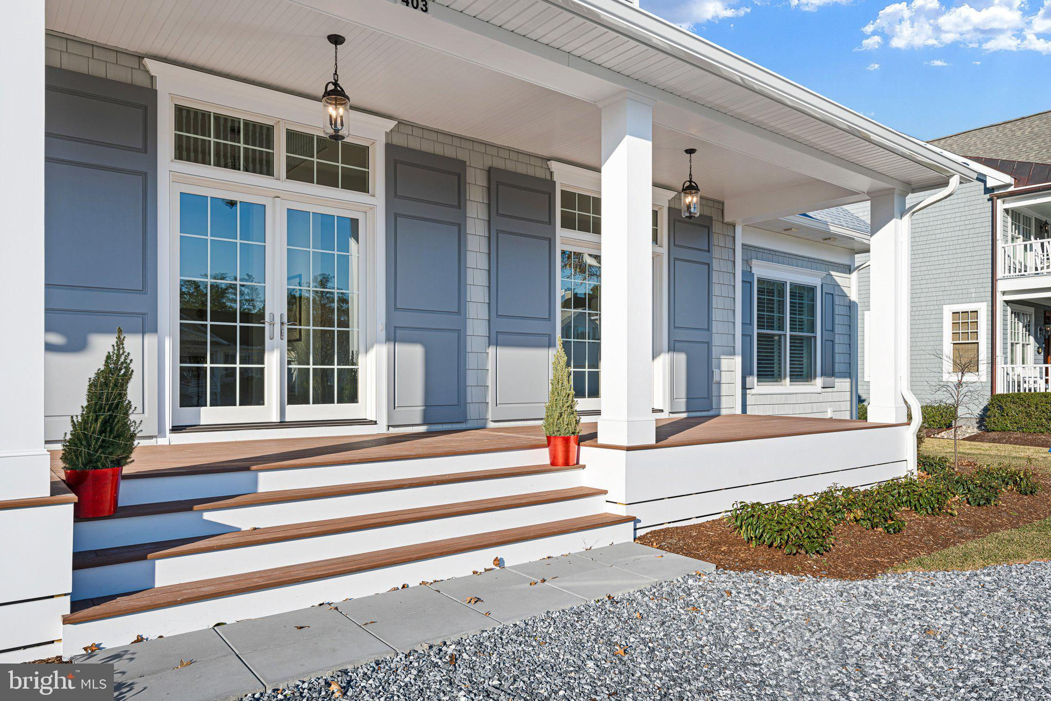 Welcome to 403 Canal Way East, an extraordinary brand-new custom build in the highly sought-after Bethany Beach community of Salt Pond. This luxurious 4,800 square foot residence is a masterpiece of thoughtful design and elegance, nestled on a generous one-third acre corner lot overlooking the 14th fairway of The Salt Pond Golf Course. As you approach via the circular drive, the expansive front porch and stunning double door entry set the tone for the exquisite interior. Step into the grand two-story foyer, adorned with wood floors and custom inlay, and be immediately captivated by the elegant formal living room with a fireplace to your left and a formal dining area to your right. Both spaces feature French doors that open onto the front porch, creating an inviting flow for entertaining. The heart of this home is the open concept living area, where the gourmet kitchen stands as a testament to luxury and functionality. It boasts stunning quartz countertops, a commercial-grade, six burner Wolf cooktop with griddle, double ovens, a Sub-Zero refrigerator, and a hidden microwave. The central island offers barstool seating and a prep sink, complemented by a generous pantry and ample storage. Adjacent is a beautifully appointed butler’s pantry with high-end cabinetry, a wine fridge, and a lighted display cabinet. The adjoining family dining area features a built-in bay window seat with storage, seamlessly flowing into the bright living space with coffered ceilings, a fireplace, and custom cabinetry. French doors lead to a stunning all-season sunroom with vaulted ceiling, alongside an adjacent screened porch—ideal spots for relaxation. The main level also includes two spacious ensuite bedrooms with luxurious bathrooms, featuring double sinks and thoughtful accessibility features. The primary suite offers a private deck with a trellis, a soaking tub, and a walk-in closet with custom cabinetry. High ceilings and exquisite wood floors throughout enhance the home's generous and unified atmosphere. Completing the main level is an oversized two-car garage with commercial-grade doors, epoxy floors, and access to a mudroom that connects to the screened porch and an outdoor shower. Modern comforts are assured with the home's dual geothermal HVAC system. The second floor offers a vast open space perfect for a variety of uses, along with a large bonus room ideal for a home office or additional living space. Two more ensuite bedrooms and two ample walk-in storage areas add to the home's versatility. Every detail, from custom tile work to high-end moldings and art niches, underscores the unparalleled quality of this home. Salt Pond is a vibrant community featuring an executive 18-hole golf course, recreational center, pools, tennis and pickleball courts, and more. Its prime location offers proximity to the beach and easy access to nearby dining and recreational opportunities, making it a perfect haven for Delaware beach lovers. Experience the unique blend of luxury and convenience that 403 Canal Way East offers—truly a must-see residence.