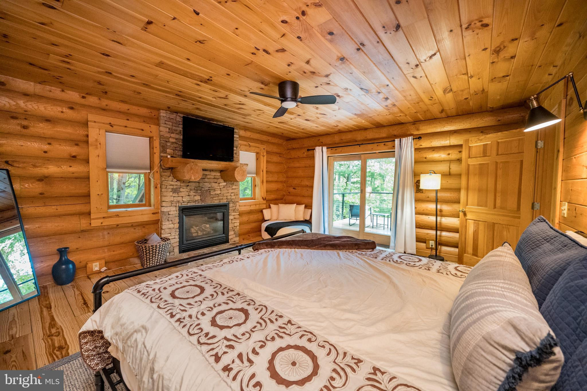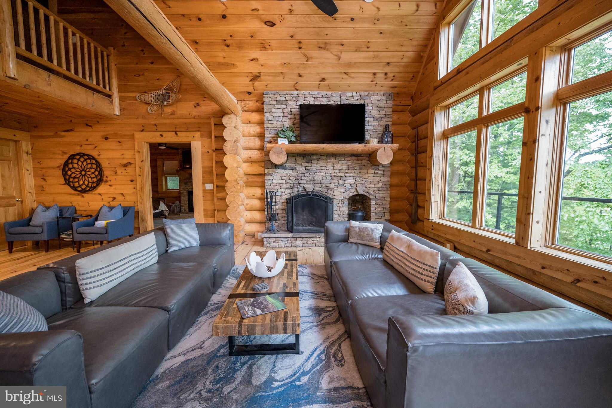 Discover the perfect blend of rustic charm and modern luxury at 425 Hines Drive In Northglade Hills. This is a proven vacation rental named Ar'ya Relaxed Chalet, a stunning five-bedroom, four and one half-bathroom log-style home located in the desirable North Glade Hills community on Deep Creek Lake. This beautifully maintained lakefront property offers year-round enjoyment with spacious living areas, private lake access, and upscale amenities—ideal as a full-time residence, vacation home, or investment opportunity. Set on a picturesque, wooded 1.62 acre lot with 162 feet of lake frontage, the home welcomes you with cathedral ceilings, exposed beams, and a dramatic wall of windows in the great room that floods the interior with natural light. The open-concept layout includes a warm and inviting living space anchored by a stone fireplace, creating the perfect gathering spot in any season. The main-level primary suite is a true retreat, complete with a gas fireplace, a jetted soaking tub, a walk-in shower, and direct access to the expansive deck. Four additional bedrooms—including one with a private bath and others well-suited for guests, children, or use as a home office—offer flexible living options for any lifestyle. The fully equipped kitchen features stainless steel appliances, abundant cabinetry, and generous counter space, making it ideal for both everyday living and entertaining. The adjacent dining area opens to a wrap-around deck, seamlessly connecting indoor and outdoor spaces and offering scenic views of the surrounding trees and lake. On the lower level, a spacious family and game room offers , an incredible wet bar for entertaining, a pool table, shuffleboard, and multiple mounted televisions—creating the perfect space for relaxation, recreation, or hosting guests. Just outside, the lower patio provides access to the outdoor hot tub and a beautifully landscaped fire pit area overlooking the lake, perfect for evening gatherings under the stars. A gently sloping path leads from the home to the shoreline, where a dedicated boat slip awaits—ideal for boating, swimming, or simply enjoying the calm waters of Deep Creek Lake. The home is situated on a private, quiet street within a well-maintained community, offering privacy and convenience, with easy access to local amenities. With over 4640 square feet of finished living space, two fireplaces (gas and wood-burning), a gently sloping driveway with ample parking, and a proven history of vacation rental income potential, Ar'ya Relaxed Chalet is a rare opportunity to own a lakefront gem in one of Western Maryland’s most sought-after destinations. Conveniently located just minutes from Deep Creek Lake State Park, Wisp Resort, ASCI, local dining, shopping, and year-round outdoor recreation, this home truly has it all. RAILEY REALTY IS NOT THE CARETAKER OF PROPERTIES LISTED BY IT. DURING INCLEMENT WEATHER CONDITIONS, PROSPECTIVE PURCHASERS AND THEIR AGENTS ASSUME ALL LIABILITY ASSOCIATED WITH OR BY WEATHER AT THE PROPERTY.