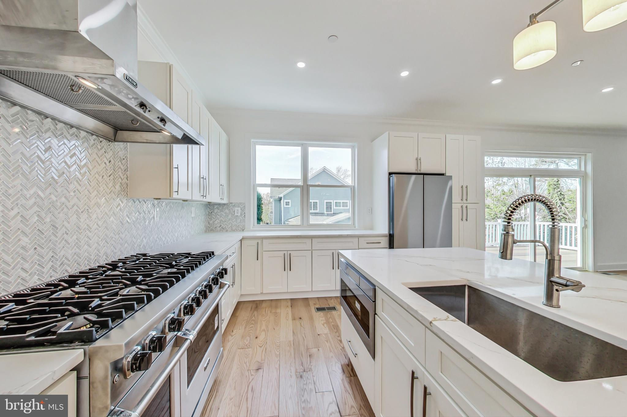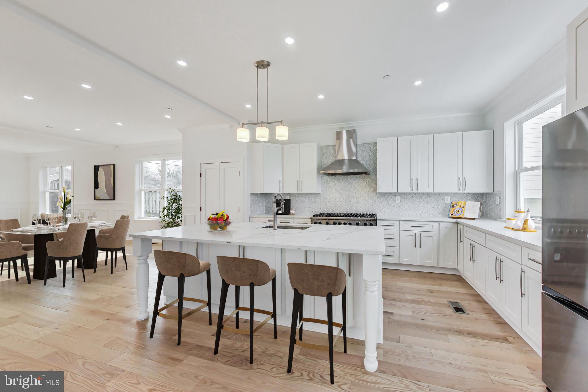 Price Reduction. Experience luxury and convenience in this breathtaking 7-bedroom home, nestled in a prime Kensington location that boasts unparalleled walkability. As you step inside this 5000+ Sq Ft home, you are greeted by an open main level, featuring an expansive living and dining area that seamlessly adjoins the gourmet kitchen. This culinary haven is equipped with top-of-the-line appliances, such as a 8-burner professional Viking range, an oversized island, quartz countertops, a large pantry, and an abundance of storage, making it a chef's dream. The adjoining family room, anchored by a modern electric fireplace, offers an elegant, yet cozy retreat with views of the large composite deck and perfectly sized yard. The main level also includes a big, bright office and a nice half bath, adding to the functionality of the space. The upper level features a huge primary bedroom with a beautiful en-suite boasting a soaking jetted tub, a separate walk-in shower, a lovely double-vanity and a private toilet room. An additional large bedroom with an-ensuite and walk-in closet, plus 3 more sizable bedrooms, a tastefully designed bathroom, and a laundry room complete this very functional upper level. Venture downstairs to the basement, where you'll find two extra bedrooms, a den, a full bathroom, and a large rec room complete with a wet bar area, wine cooler, and quartz countertops, offering endless possibilities for entertainment and relaxation The location of this home is a true highlight, with an array of restaurants, stores, coffee shops, wine bars, and supermarkets all within half a mile. Commuters will appreciate the proximity to the Kensington MARC and the Red Line Metro at Strathmore, both just 5 minutes away, as well as easy access to 495. Rock Creek Park, less than half a mile away, provides a serene escape for nature enthusiasts. Don't miss the chance to make this impressive, conveniently located home your own sanctuary. See virtual tour link.