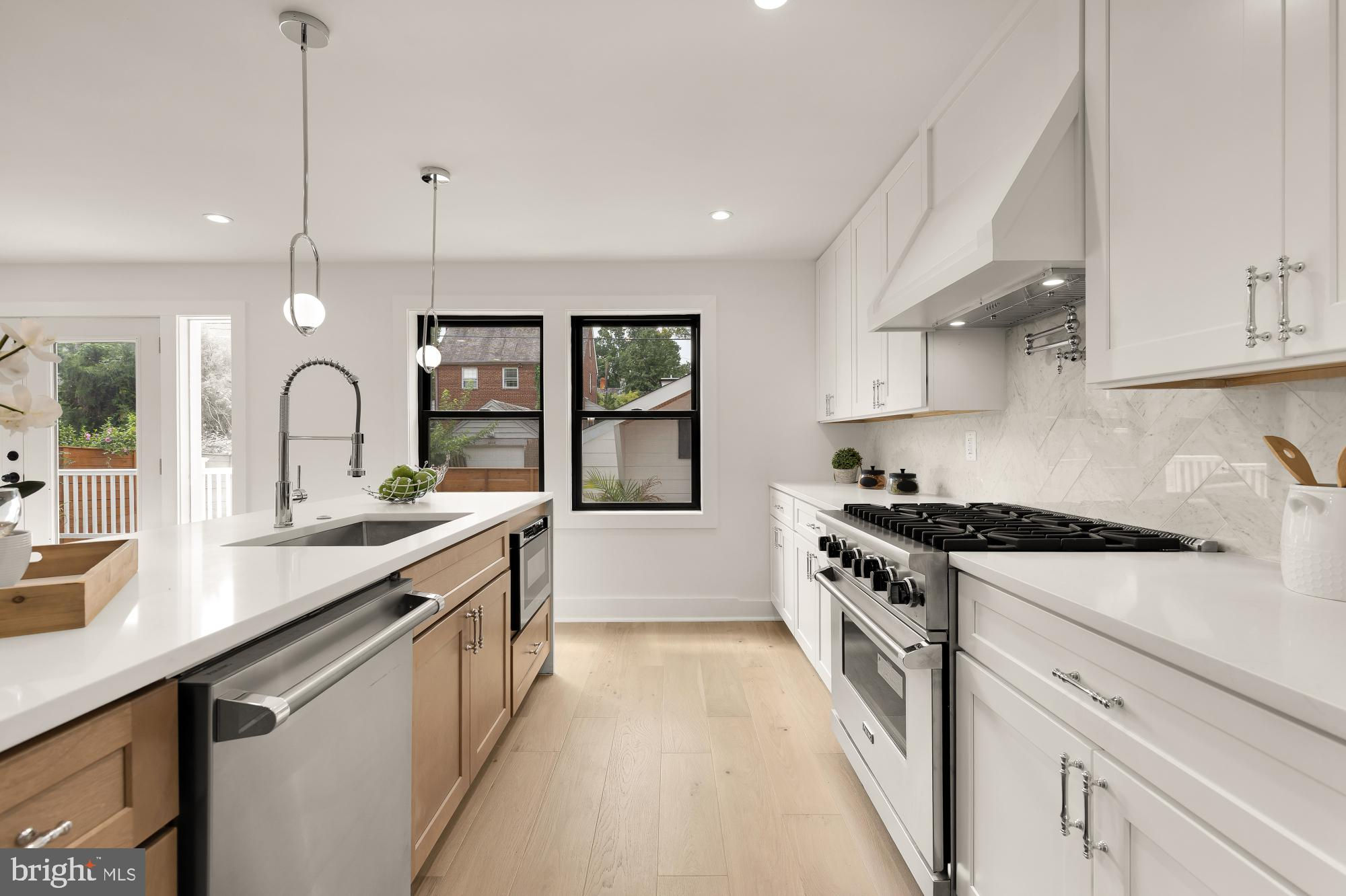 Newly renovated home in coveted AU Park is spacious and gets great natural light throughout. The main floor includes a living room with a wood-burning fireplace and a large formal dining room, a family room, a gourmet kitchen with quartz countertops and a powder room. The family room opens to a big private, fenced yard with a deck and garage parking. Upstairs has three large bedrooms, each with a dedicated full bath and walk-in closet. The primary bedroom has a luxurious spa-like bathroom featuring a soaking tub, shower, and double vanities. The 4th floor includes yet another living room/flex space plus a bedroom, full bath and a playroom! The walkout lower level includes a 5th bedroom, a wet bar and the 5th full bathroom. Centrally located on a beautiful tree-lined block and just a 5-minute walk to the AU/Tenleytown metro, Whole Foods, Target and tons of restaurants and amenities.