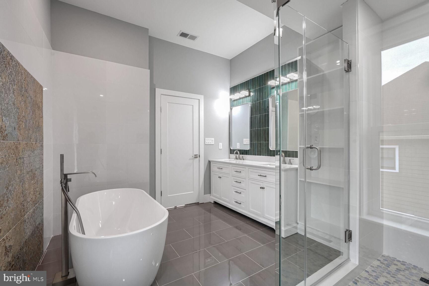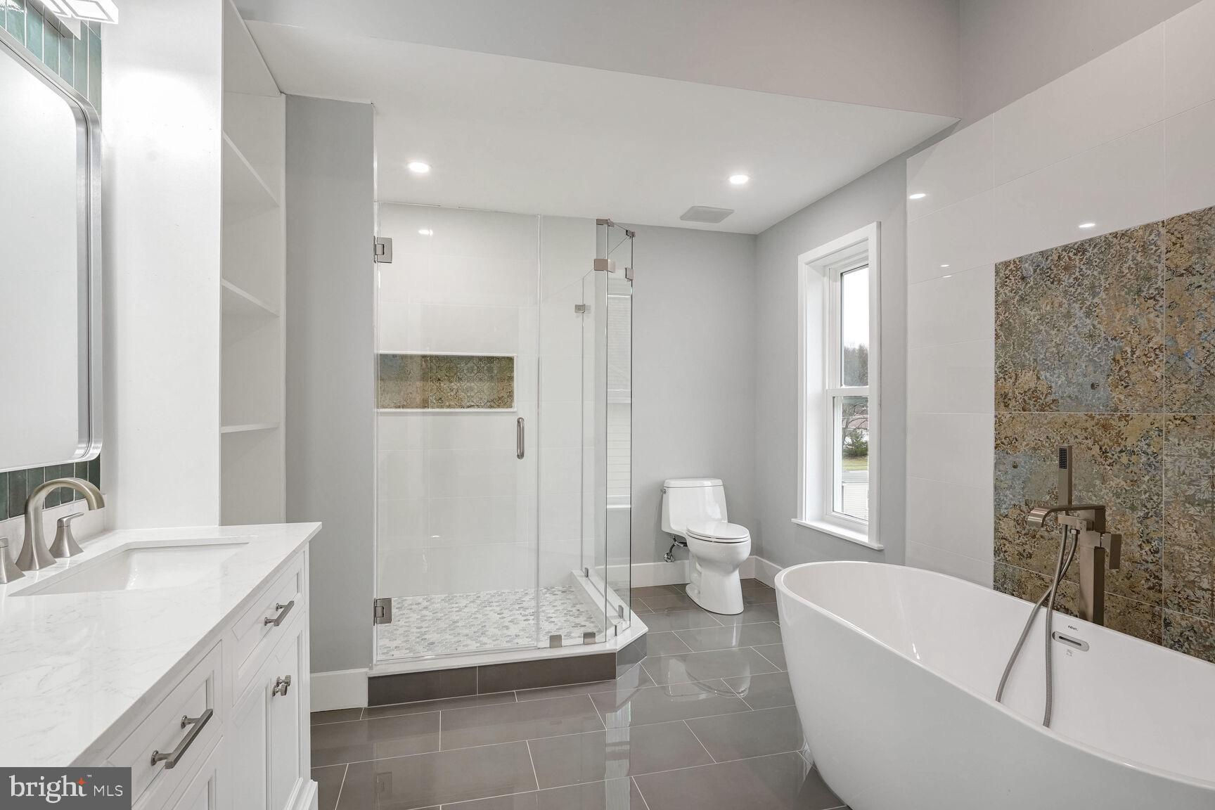 Price Reduction! Stunning New Construction – Prime Location! Located just 3 minutes from I-495, this exceptional home offers seamless access to Tysons, Washington, D.C., and Maryland, making commuting effortless. Step inside to be greeted by a grand, high-ceiling living room bathed in natural light from floor-to-ceiling windows. At its heart, a sophisticated electric fireplace adds warmth and elegance. The spacious dining area is enhanced by exquisite ambient lighting, creating the perfect setting for gatherings. A thoughtfully designed first-floor bedroom with a full bath offers flexibility for guests or multi-generational living. The two-car garage provides added convenience, featuring an extra two feet of space on each side for easier access. The beautifully designed laundry room comes equipped with high-end washer and dryer units. The expansive gourmet kitchen boasts a large island, abundant cabinetry, and a walk-in pantry with built-in shelving. It seamlessly connects to an outdoor space, offering potential for a future patio or entertainment area. Ascending to the second floor, a secondary living space awaits—perfect for family entertainment. Four generously sized bedrooms, each with its own en-suite bath, provide comfort and privacy for all residents. Every inch of this home is meticulously designed for functionality, ensuring no wasted space. A perfect blend of luxury, convenience, and modern living!