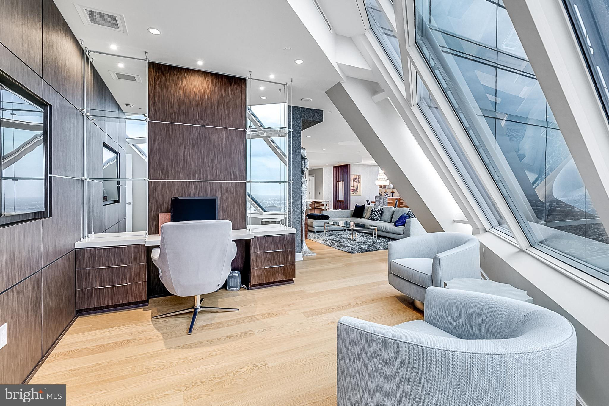 THE VIEW BELONGS TO YOU - Enjoy breathtaking panoramic skyline views from this sprawling three bedroom plus den, four and a half bath PENTHOUSE RESIDENCE in the sky. Soaring 54 stories above the city, this one-of-a-kind architectural masterpiece boasts over 2,650 square feet of magnificent living space and offers some of the most incredible skyline, sunset and river views you won't find anywhere else. The living and dining areas feature dramatic ceiling heights, gleaming hardwood floors, and walls of architectural windows which flood your space with an abundance of light. The chef's kitchen showcases marble countertops, SNAIDERO cabinetry, and SUB-ZERO and MIELE appliances. The main bedroom suite offers picture perfect views, an oversized walk-in closet and two separate marble bathrooms. The lavish main bathroom boasts double floating sink vanities, an oversized soaking tub and a large glass enclosed shower. The second and third bedrooms are both generously proportioned and feature ample closet space and ensuite bathrooms. A bespoke den area offers additional space perfect as a work from home office. A multitude of designer details, sophisticated built-ins, and approximately 2 years remaining on the tax abatement complete this former developer's model home at Two Liberty Place. Association fees include a 24-hour concierge, chauffeur-driven car service, state-of-the-art fitness center, endless pool, steam showers and saunas, and a residents' lounge. Perfectly situated in the center of it all, this residence is steps away from fine dining, one-of-a kind shopping, world-renowned cultural destinations, and exciting nightlife.