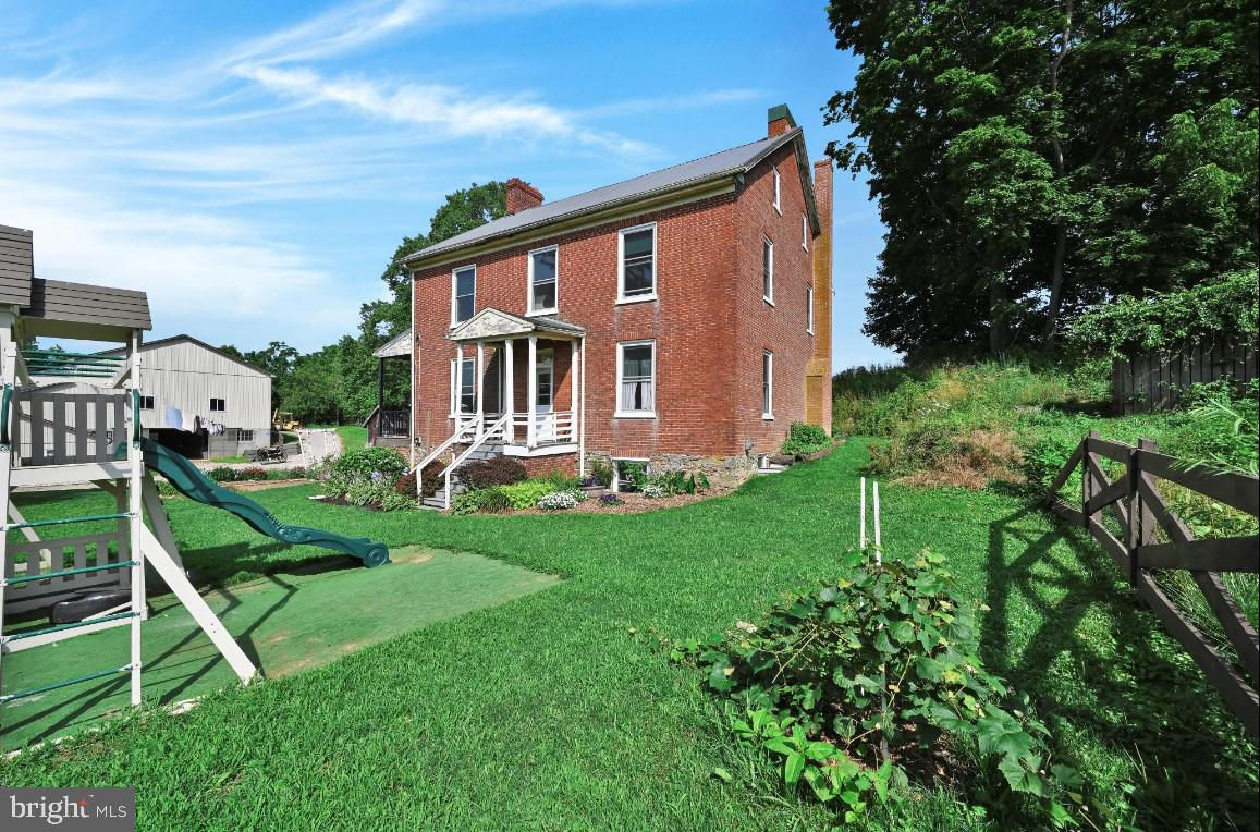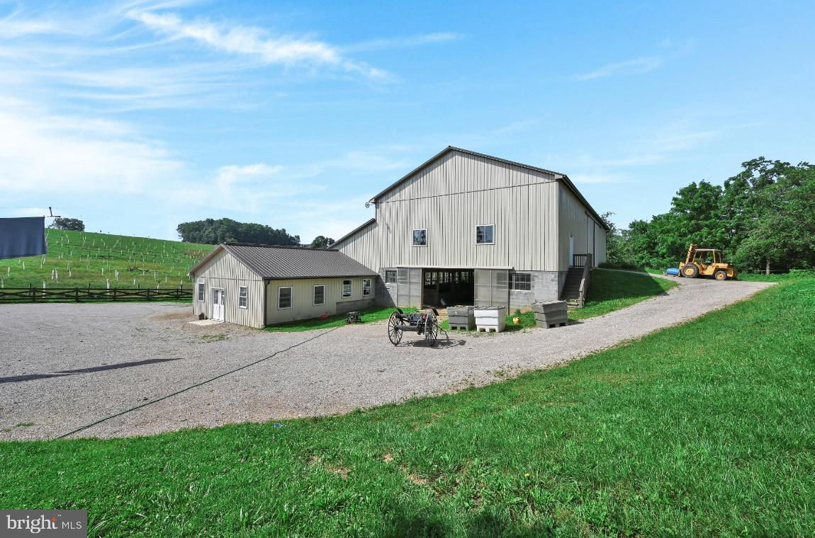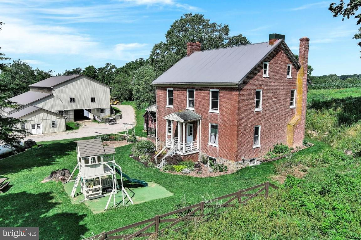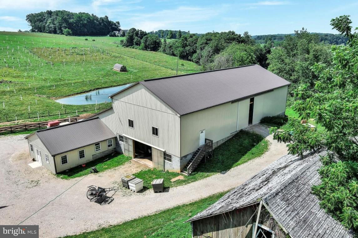 Private 83-acre farm with 75 tillable acres and 2,632 SF updated brick farm house including 4 bedrooms, two bathrooms, family and living room. The free stall barn, horse barn, and farm store building area are all built new a few years ago. 80 acres consist of Chester Silt Loam dirt with 0 and 8 % slope. The pond is large and beautiful. There are 40 acres that are fenced in for pasture that has not been sprayed for years. The 40 acres of pasture is able to be transferred as organic acreage. The spacious modern country kitchen has exposed beams, brick fireplace, and is open to the dining room area and living room. The family room has an original stone fireplace and hearth area with stunning varied width original wood floors. The varied width original wood floors are throughout the house. Both bathrooms have been updated. The full size walk out lower level has the original walk-in stone fireplace, windows providing natural sunlight and room for many uses.