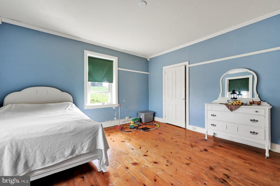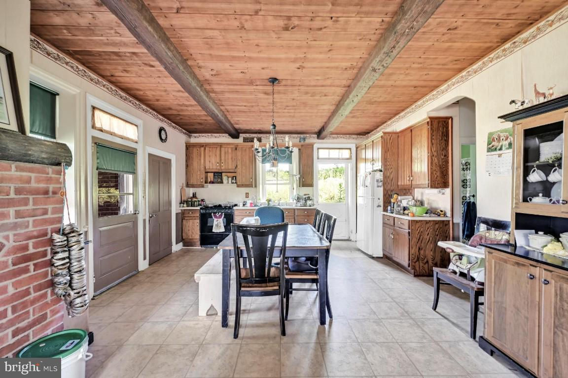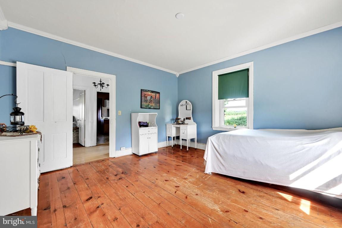 Private 83-acre farm with 75 tillable acres and 2,632 SF updated brick farm house including 4 bedrooms, two bathrooms, family and living room. The free stall barn, horse barn, and farm store building area are all built new a few years ago. 80 acres consist of Chester Silt Loam dirt with 0 and 8 % slope. The pond is large and beautiful. There are 40 acres that are fenced in for pasture that has not been sprayed for years. The 40 acres of pasture is able to be transferred as organic acreage. The spacious modern country kitchen has exposed beams, brick fireplace, and is open to the dining room area and living room. The family room has an original stone fireplace and hearth area with stunning varied width original wood floors. The varied width original wood floors are throughout the house. Both bathrooms have been updated. The full size walk out lower level has the original walk-in stone fireplace, windows providing natural sunlight and room for many uses.