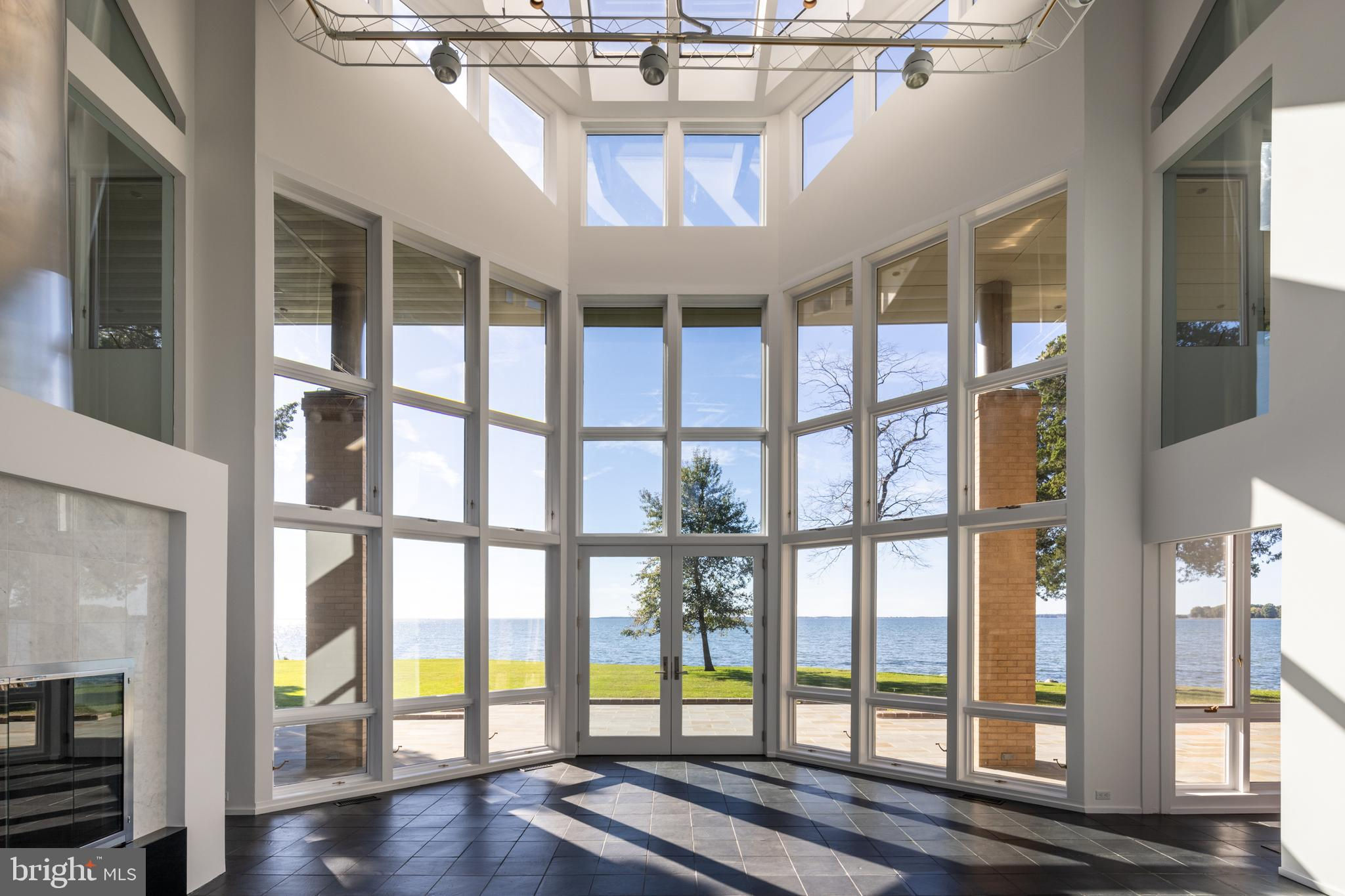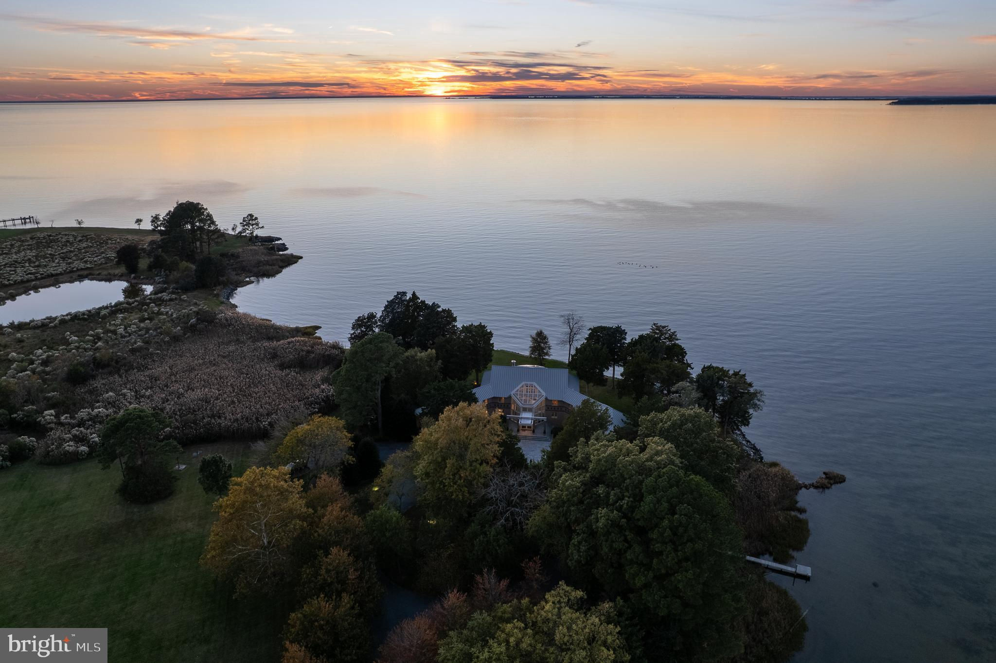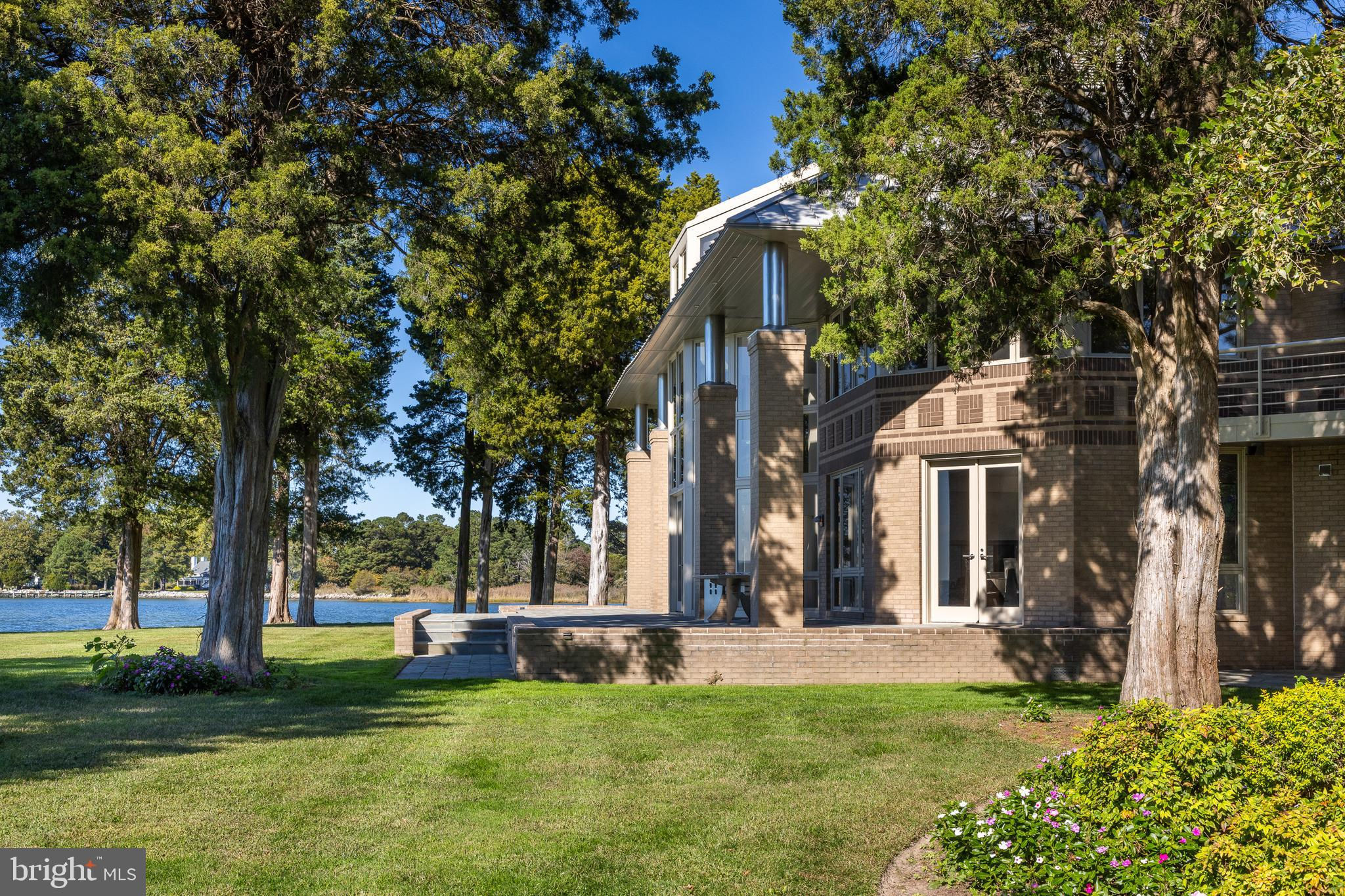 Tucked within a canopy of trees along Maryland’s Eastern Shore, this remarkable home rests quietly beside the Choptank River. The setting feels worlds away, eighty acres of meadows and woodland that open gently to more than 1,800 feet of private shoreline, where a western exposure captures breathtaking sunsets reflected across the water. The residence at 5084 Ferry Neck Road was shaped by owners whose careers in fine contemporary art inspired a deeply thoughtful approach to design, one that explored geometry, light, and proportion with an almost abstract eye. The resulting octagonal plan draws the landscape into every room, creating a calm rhythm of space and view. A low, horizontal brick façade settles the home into its surroundings, while a lifted roofline and generous overhangs give shelter and balance. Inside, a sweeping staircase curves upward through the central volume, a graceful gesture that anchors the home with quiet strength. In 2024, the property underwent a comprehensive renewal. Porcelain countertops, new glazing, and refined lighting bring a fresh modern sensibility while honoring the original architecture. Approached by a long, tree-lined drive, the home reveals itself gradually, first a glimmer through the woods, then an opening to water and sky. Beyond its immediate beauty, the land itself offers a rare opportunity, with the potential to create a divisible waterfront homesite should the next owner wish to explore it. What remains most striking, however, is its sense of comfort, a home that is inviting, shaped by art, nature, and time.