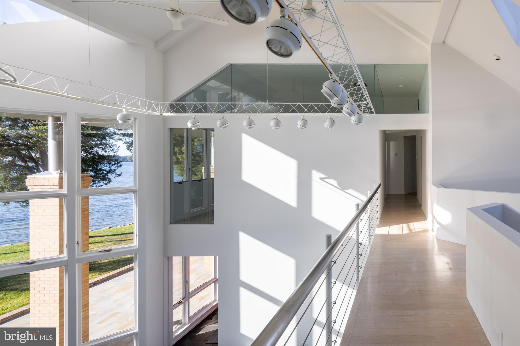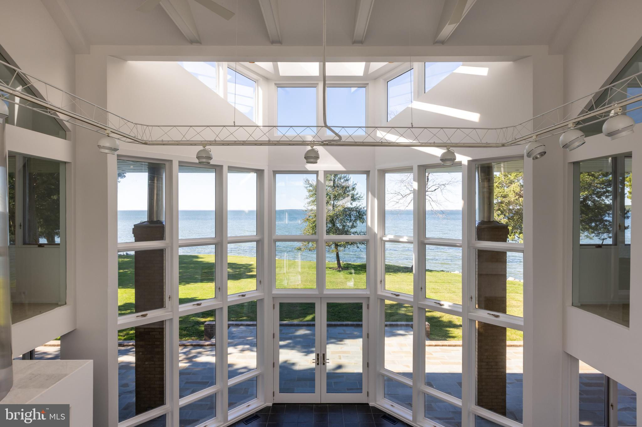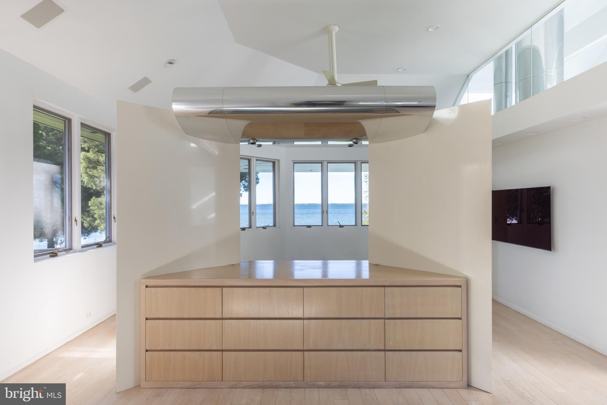 Tucked within a canopy of trees along Maryland’s Eastern Shore, this remarkable home rests quietly beside the Choptank River. The setting feels worlds away, eighty acres of meadows and woodland that open gently to more than 1,800 feet of private shoreline, where a western exposure captures breathtaking sunsets reflected across the water. The residence at 5084 Ferry Neck Road was shaped by owners whose careers in fine contemporary art inspired a deeply thoughtful approach to design, one that explored geometry, light, and proportion with an almost abstract eye. The resulting octagonal plan draws the landscape into every room, creating a calm rhythm of space and view. A low, horizontal brick façade settles the home into its surroundings, while a lifted roofline and generous overhangs give shelter and balance. Inside, a sweeping staircase curves upward through the central volume, a graceful gesture that anchors the home with quiet strength. In 2024, the property underwent a comprehensive renewal. Porcelain countertops, new glazing, and refined lighting bring a fresh modern sensibility while honoring the original architecture. Approached by a long, tree-lined drive, the home reveals itself gradually, first a glimmer through the woods, then an opening to water and sky. Beyond its immediate beauty, the land itself offers a rare opportunity, with the potential to create a divisible waterfront homesite should the next owner wish to explore it. What remains most striking, however, is its sense of comfort, a home that is inviting, shaped by art, nature, and time.
